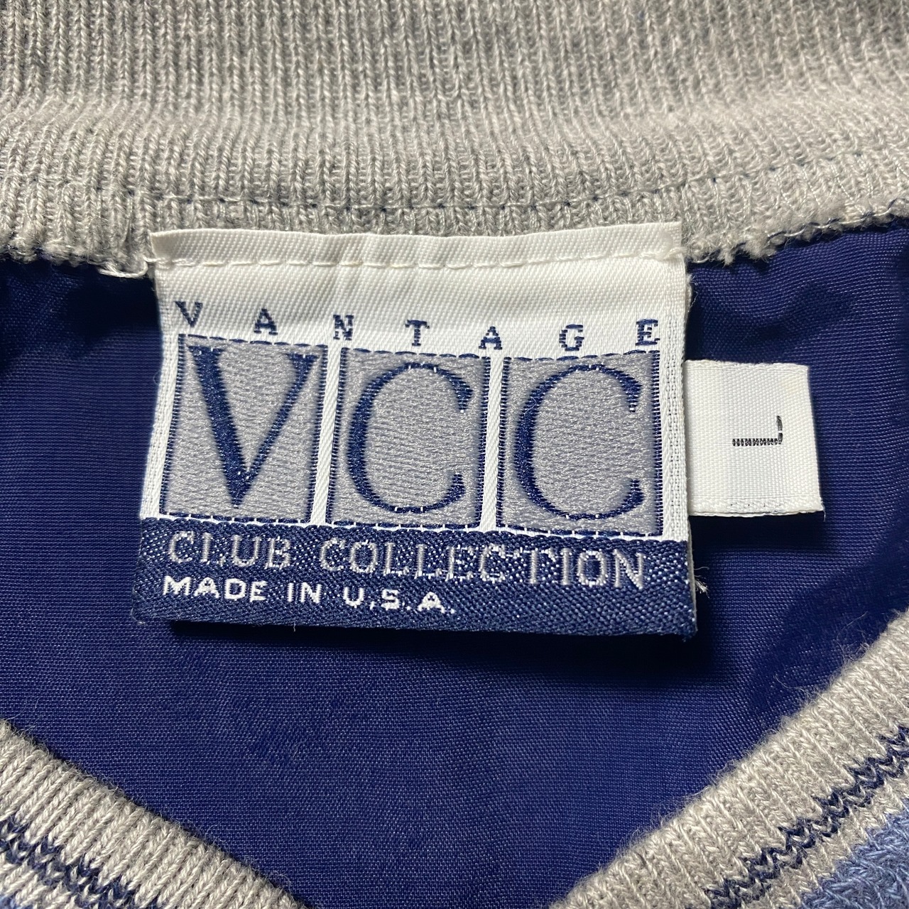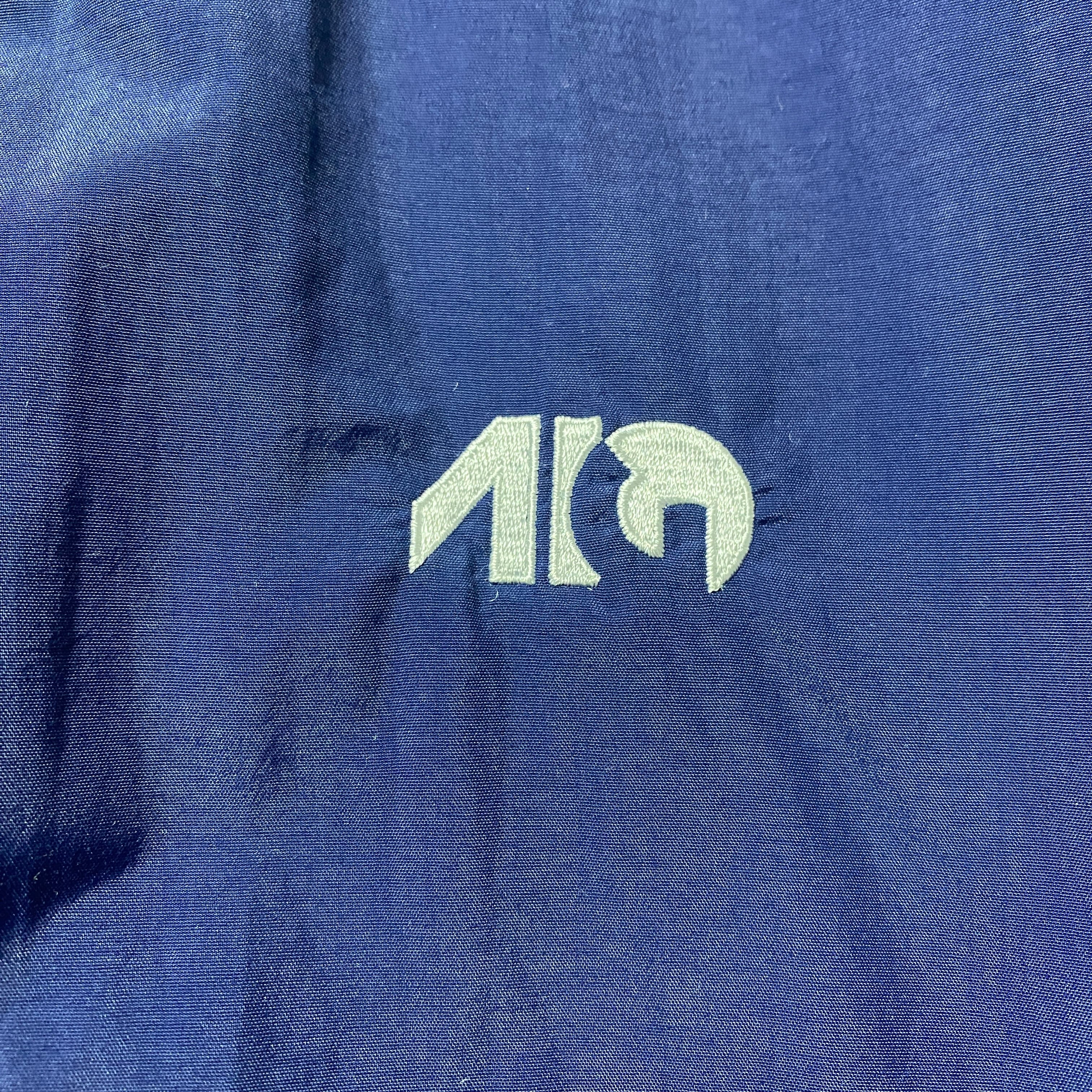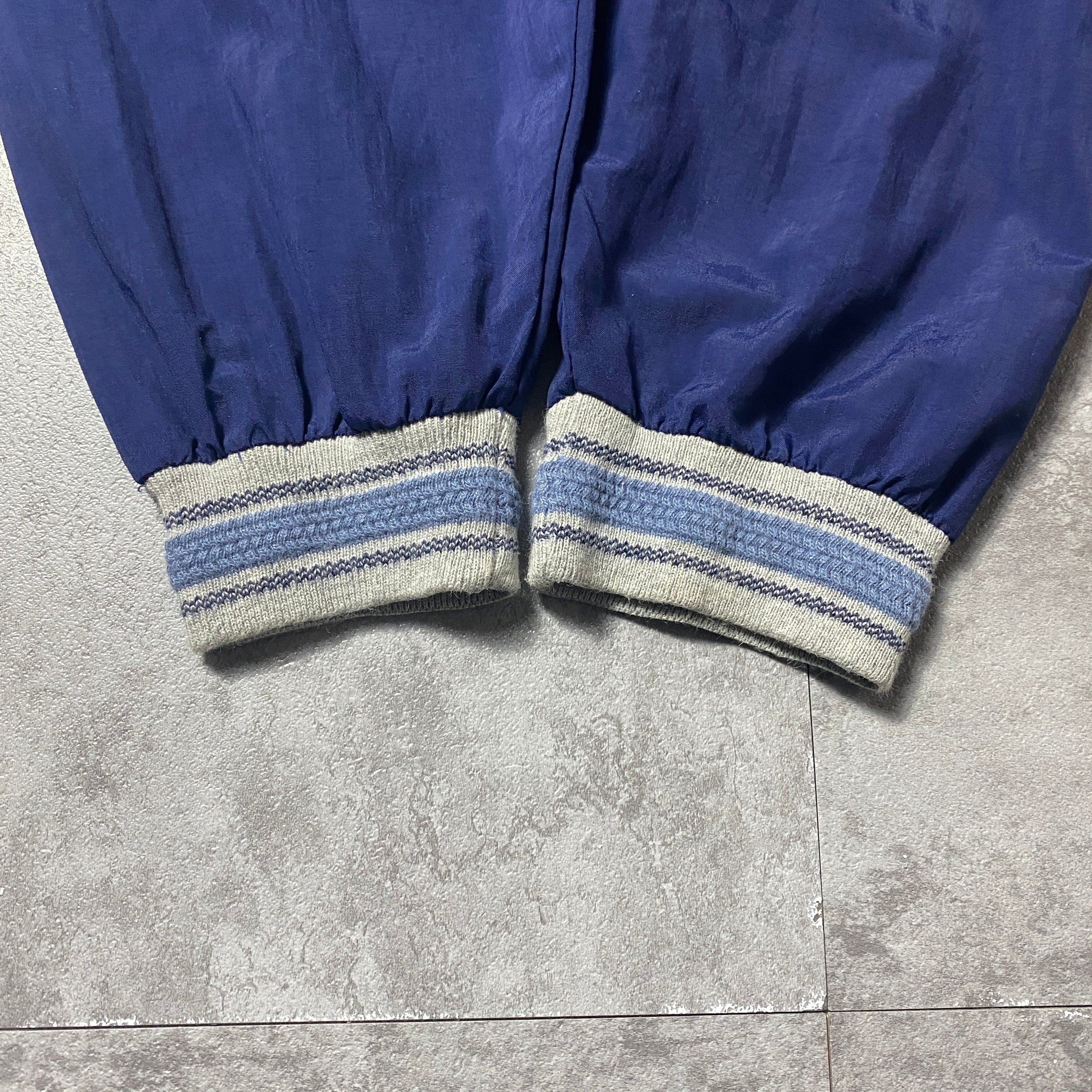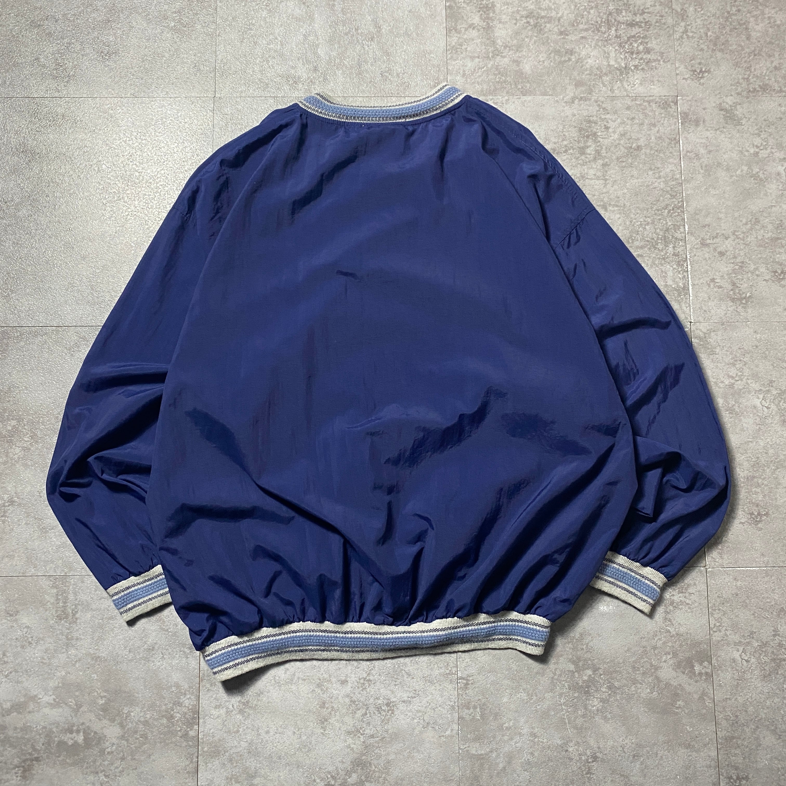 【USA製】90's Vantage Club Collection "VCC" 刺繍ワンポイント ラインリブ ネイビー ナイロンプルオーバー