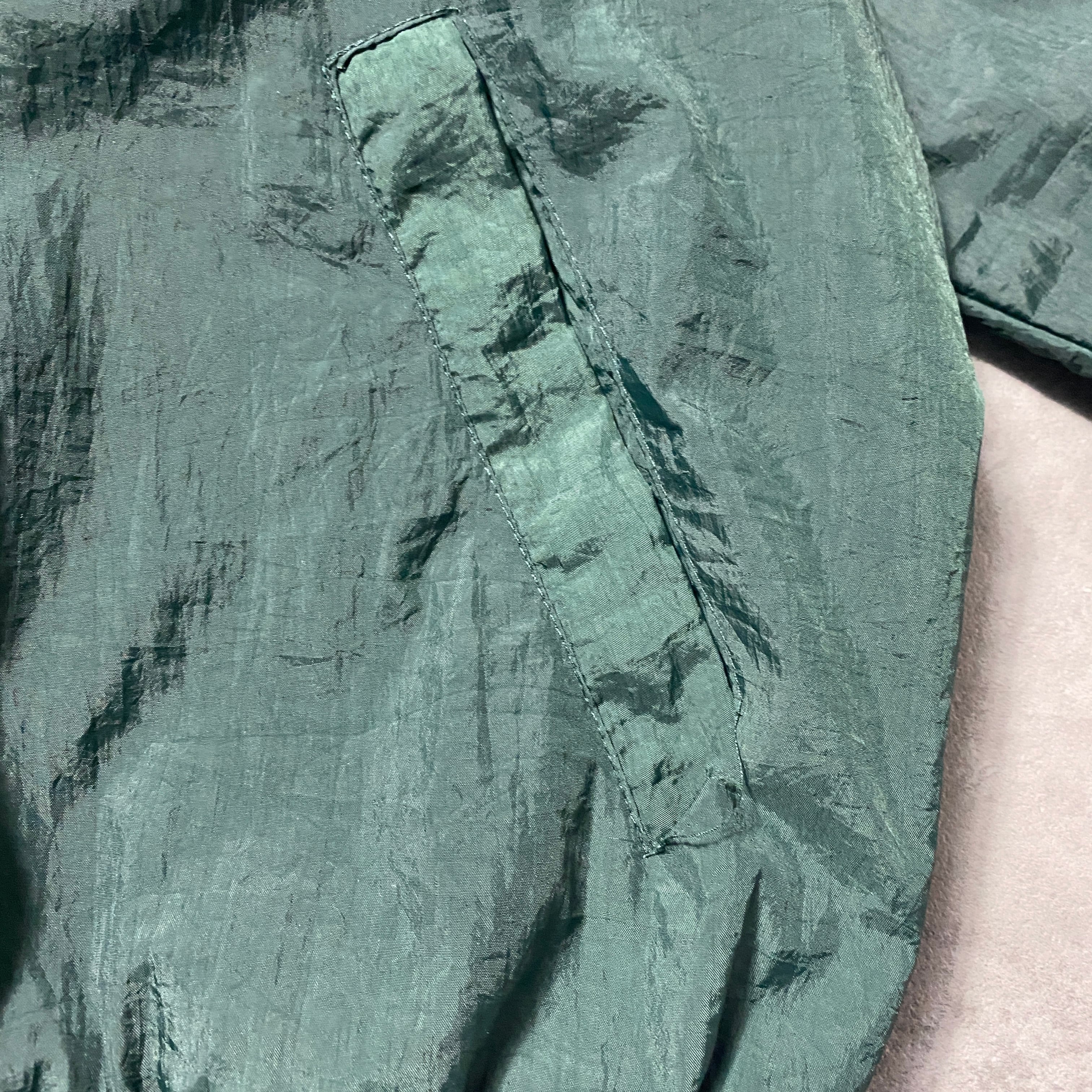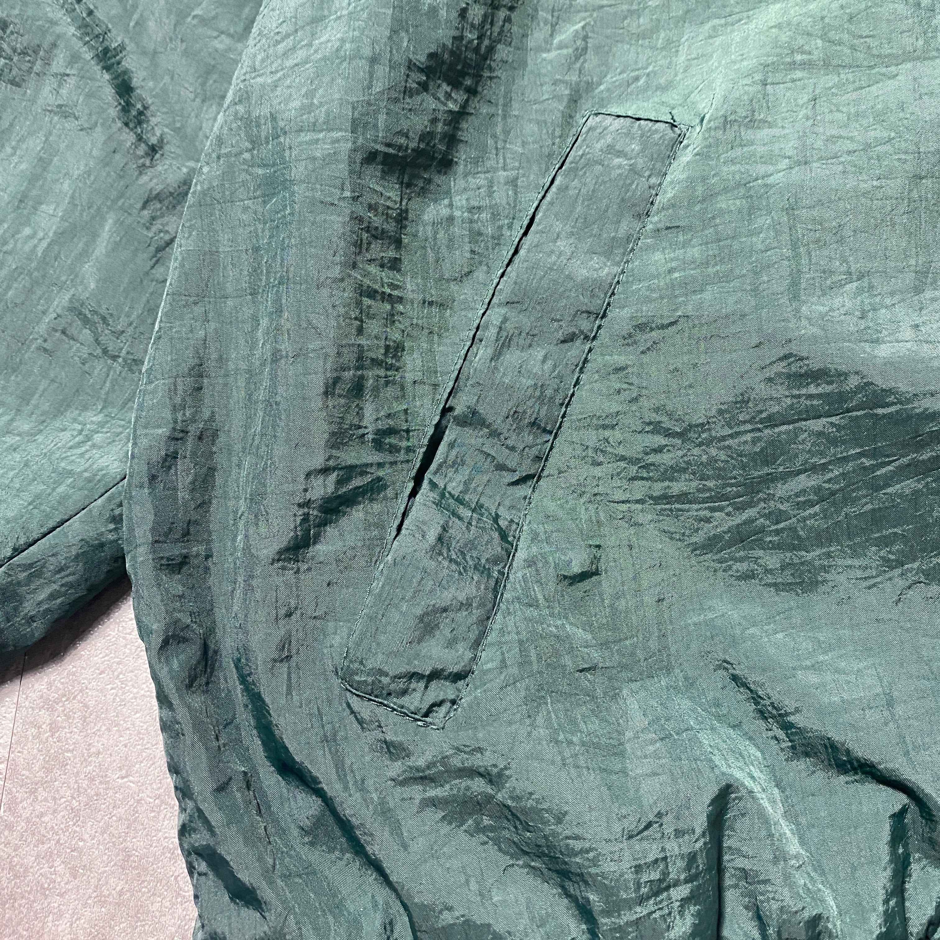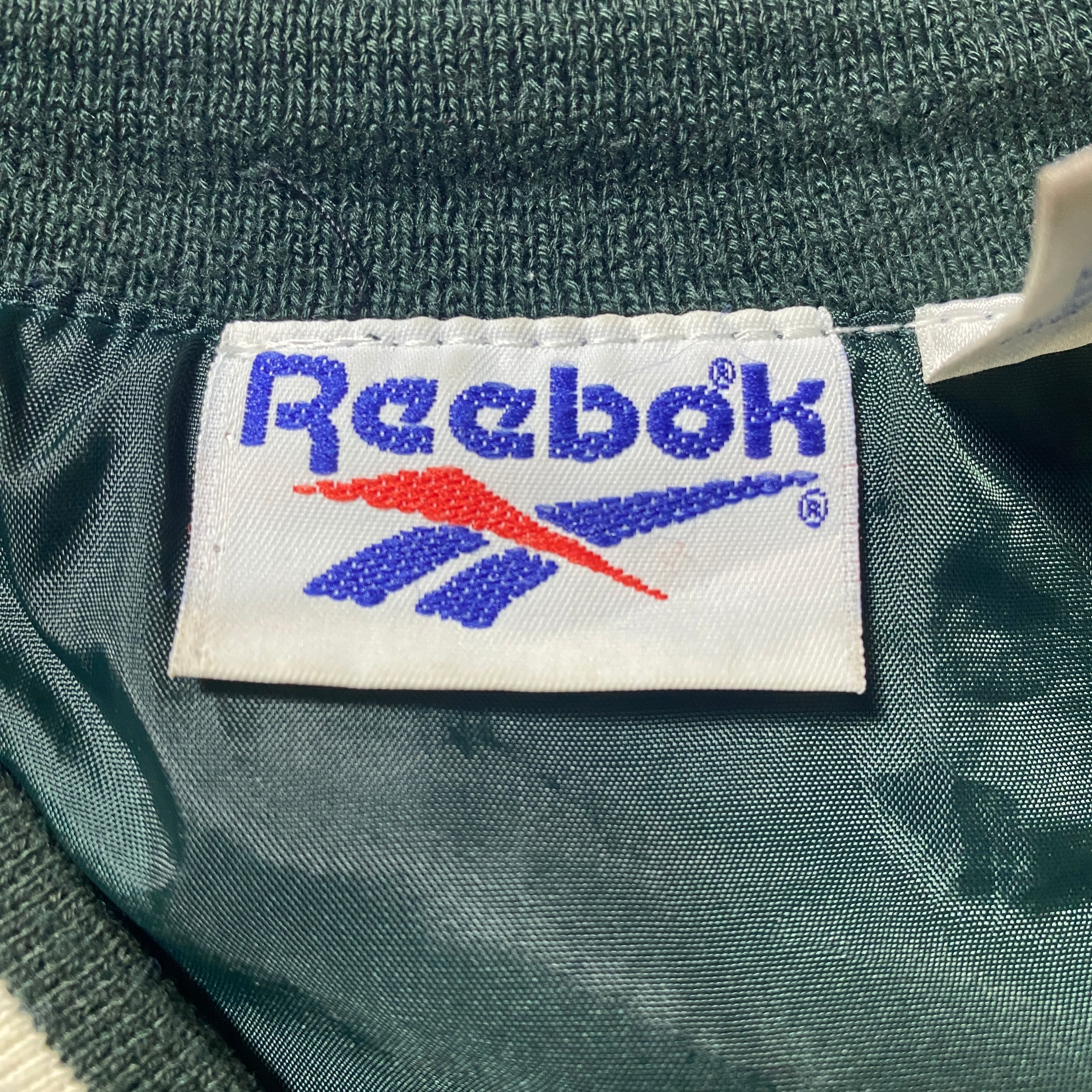 【Size.XL】90's Reebok リーボック 刺繍ワンポイント ベクターロゴ ラインリブ グリーン ナイロンプルオーバー