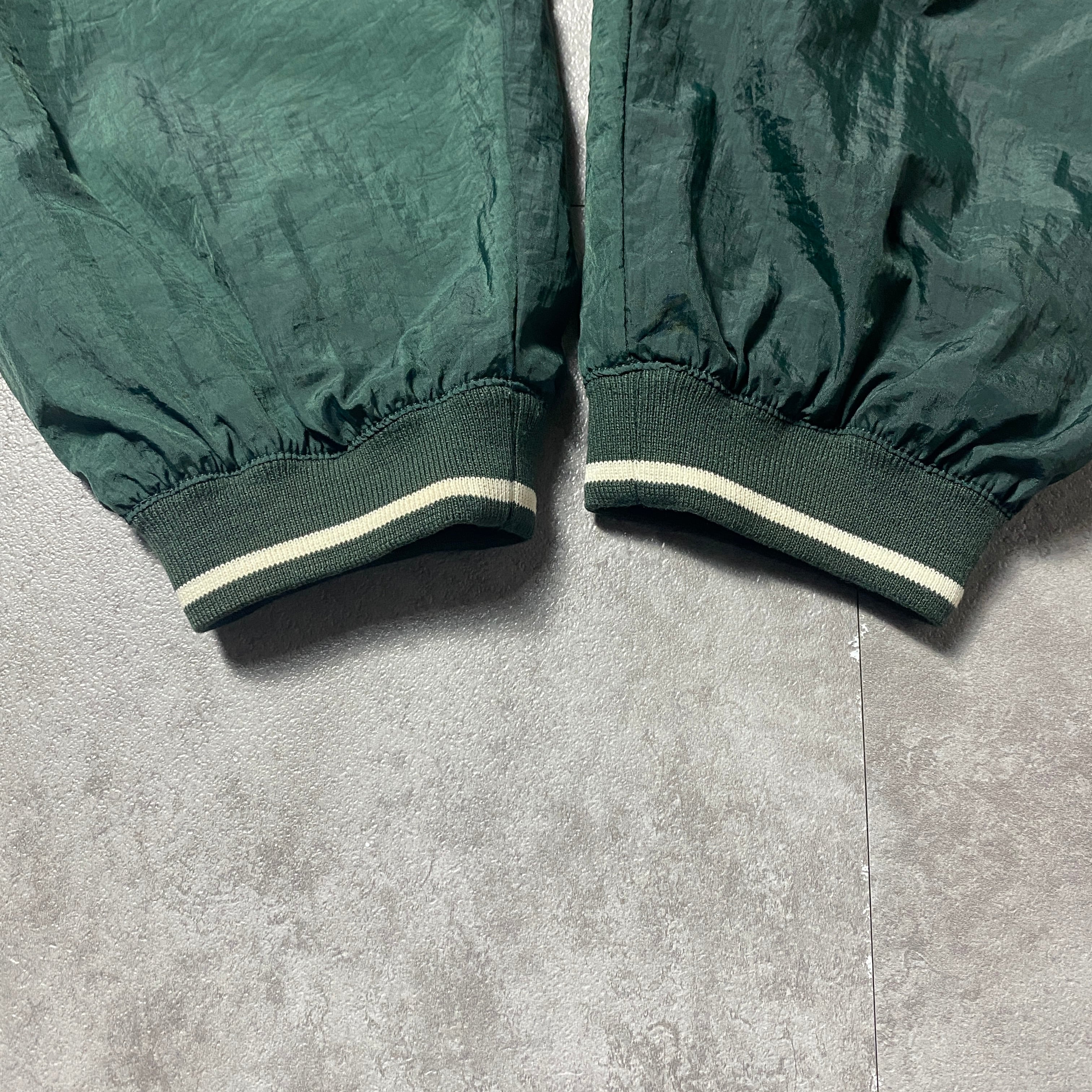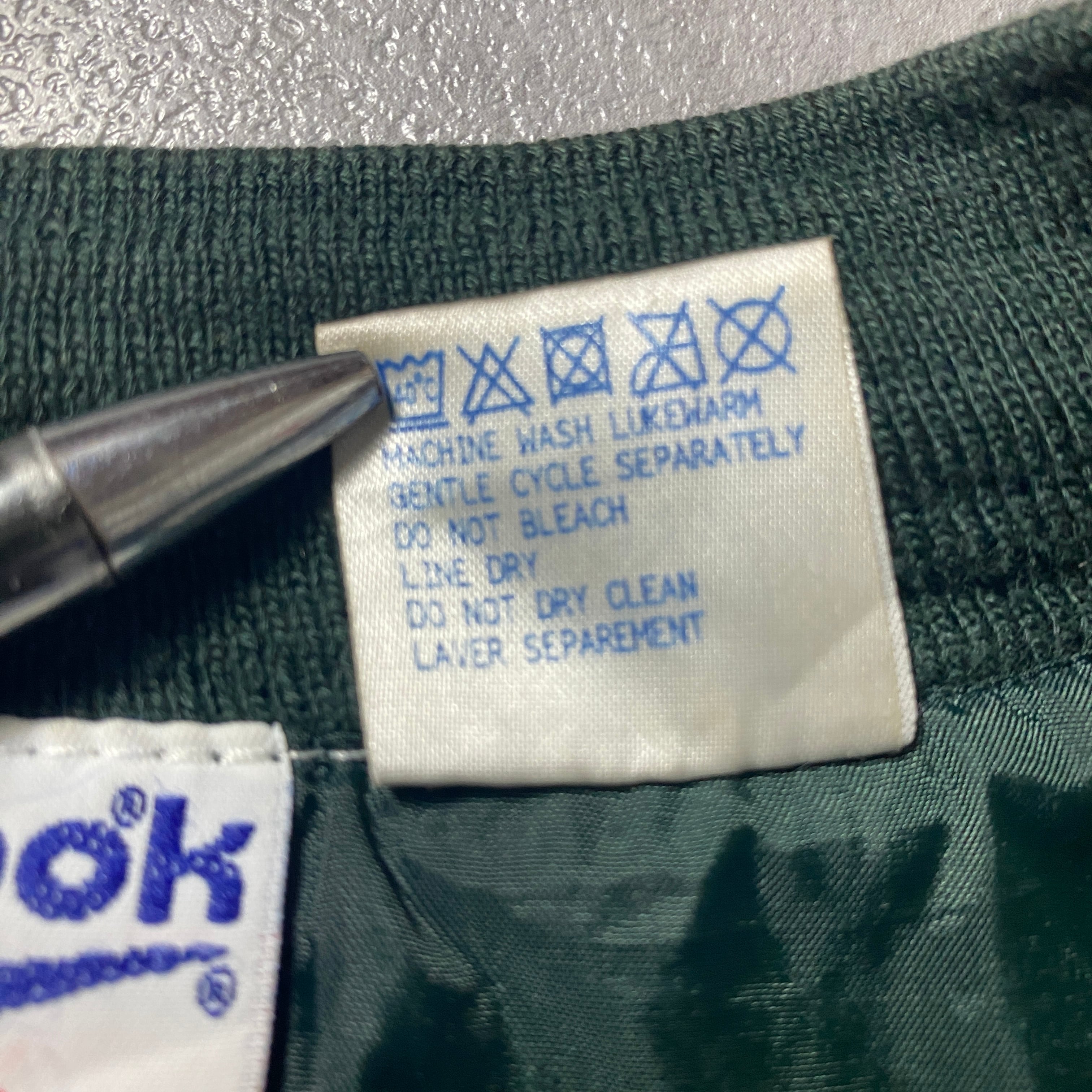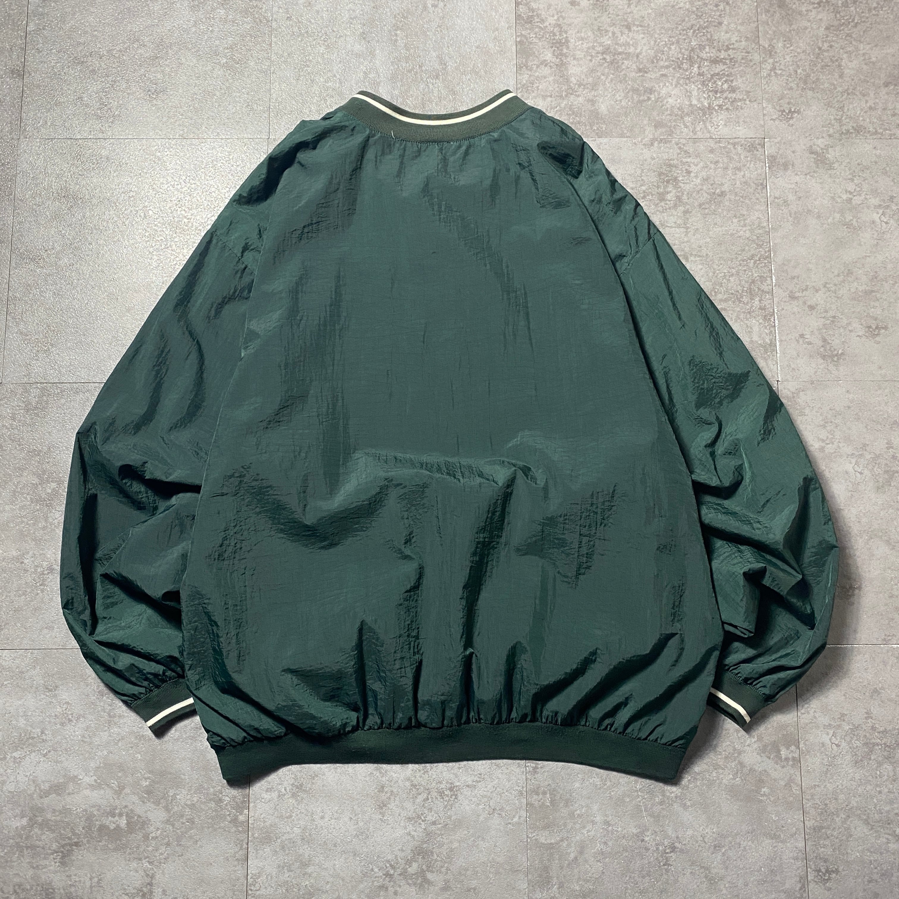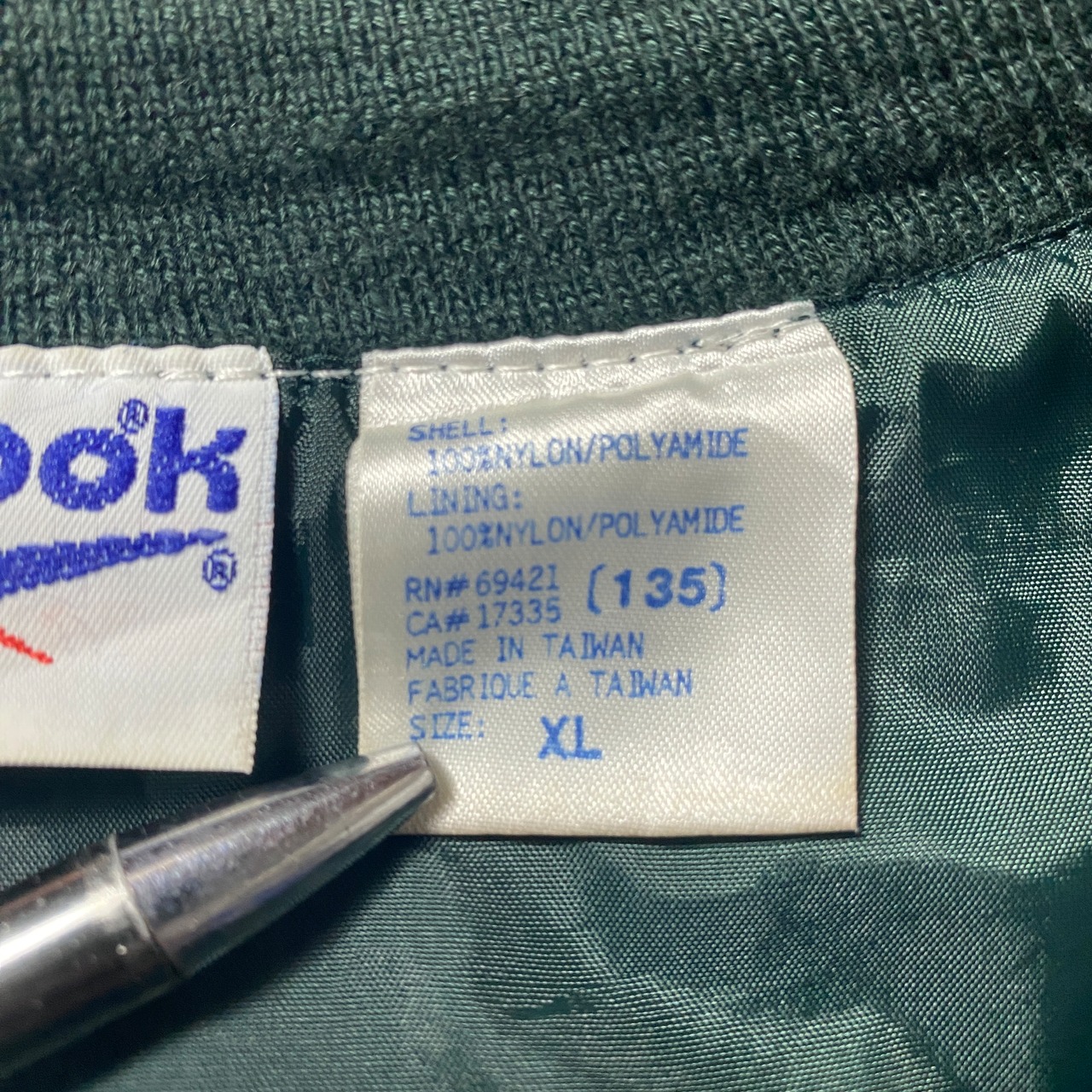 【Size.XL】90's Reebok リーボック 刺繍ワンポイント ベクターロゴ ラインリブ グリーン ナイロンプルオーバー