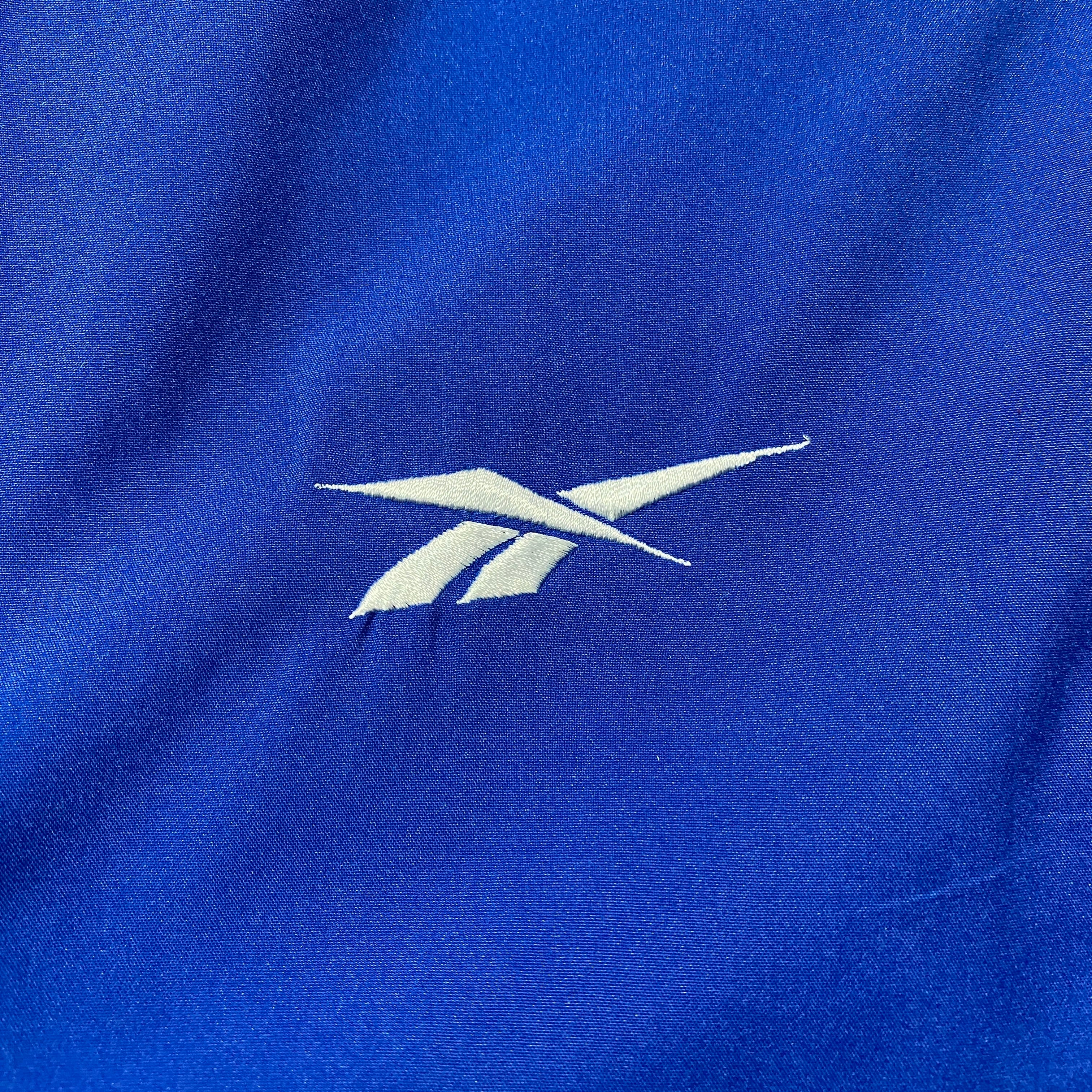 00's 90's Reebok リーボック 刺繍ワンポイント ベクターロゴ ラインリブ XXXLサイズ ブルー ナイロンプルオーバー