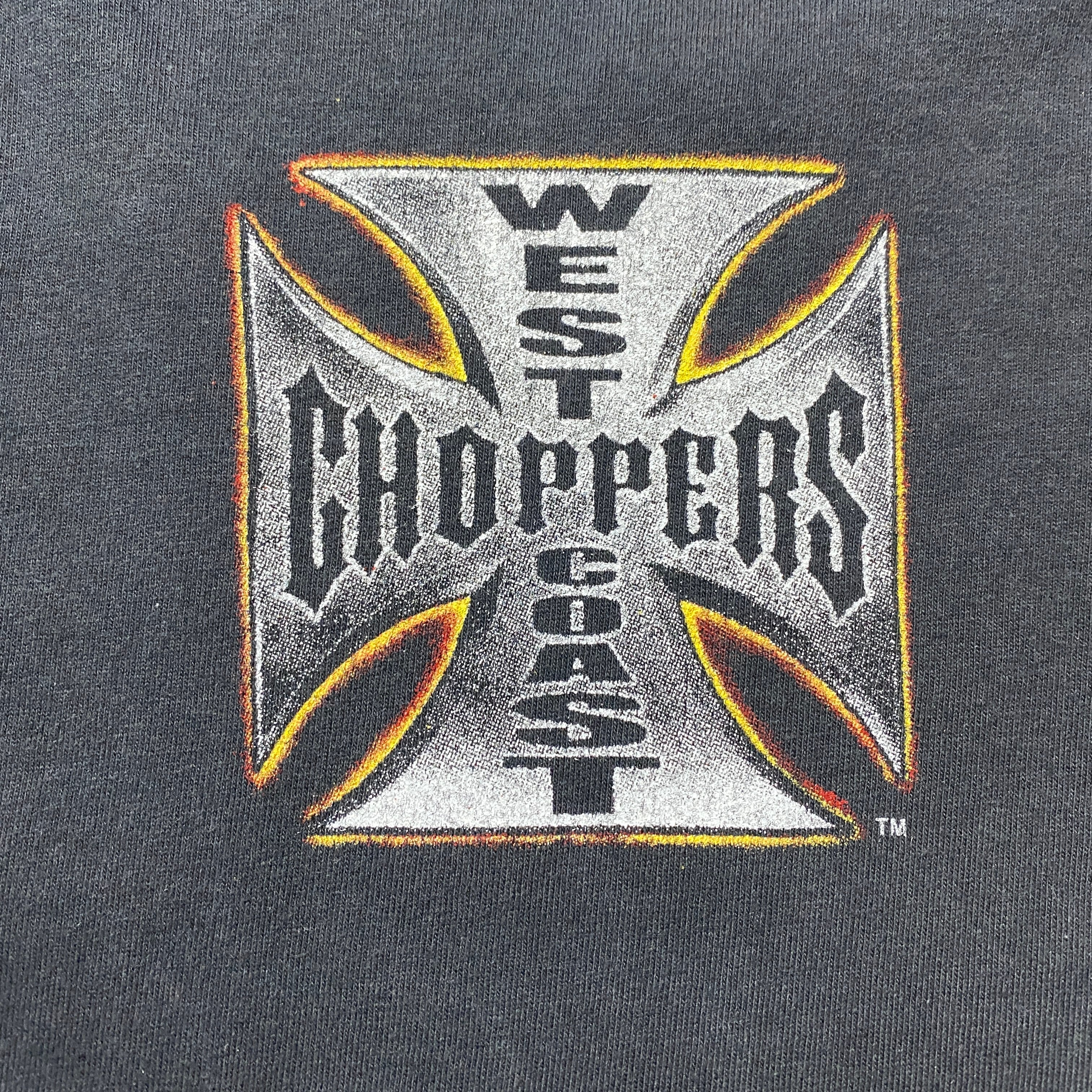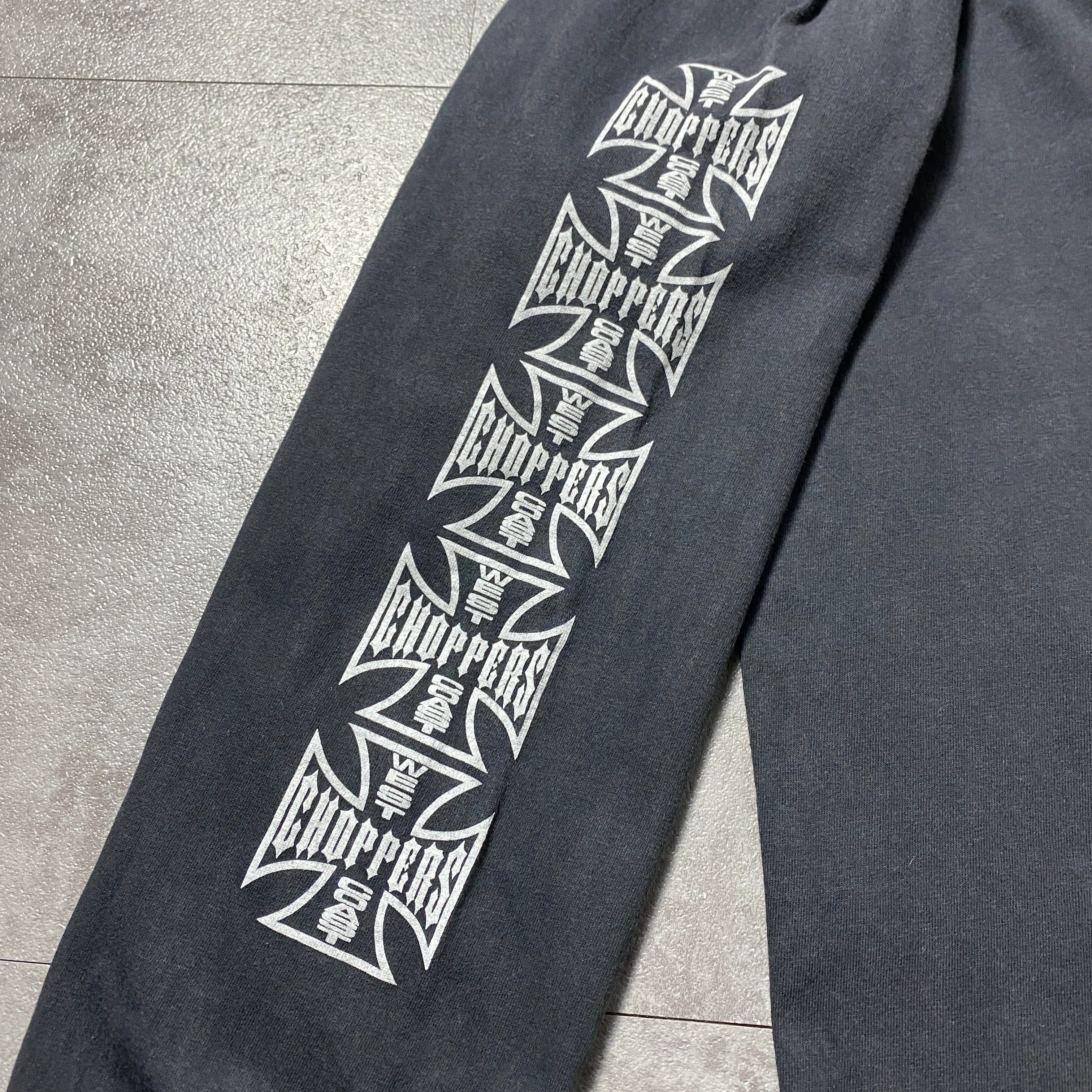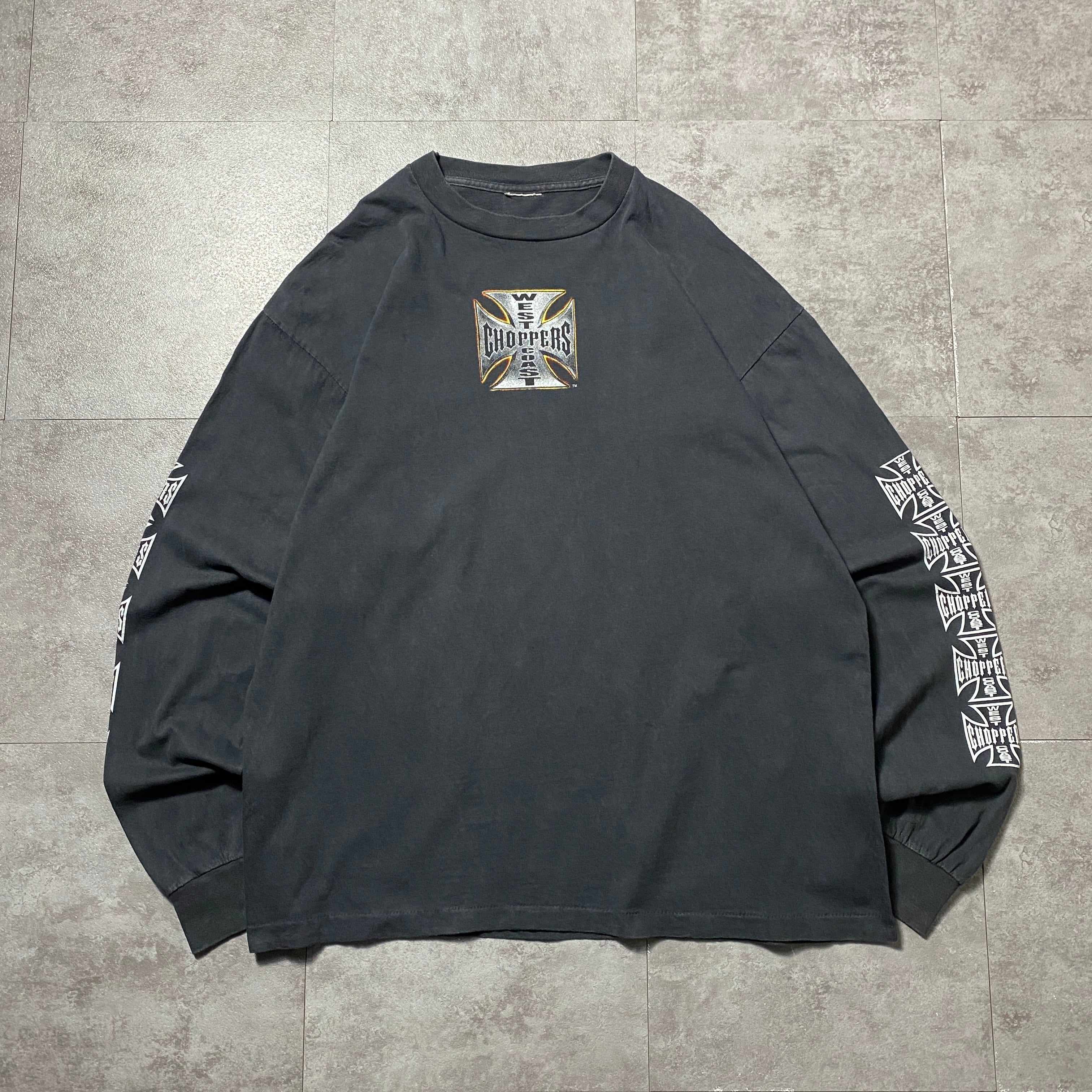 WEST COAST CHOPPERS boot leg ウエストコーストチョッパーズ ブート アイアンクロス バックプリント アームプリント シングルステッチ ブラック 黒 Tシャツ ロンT
