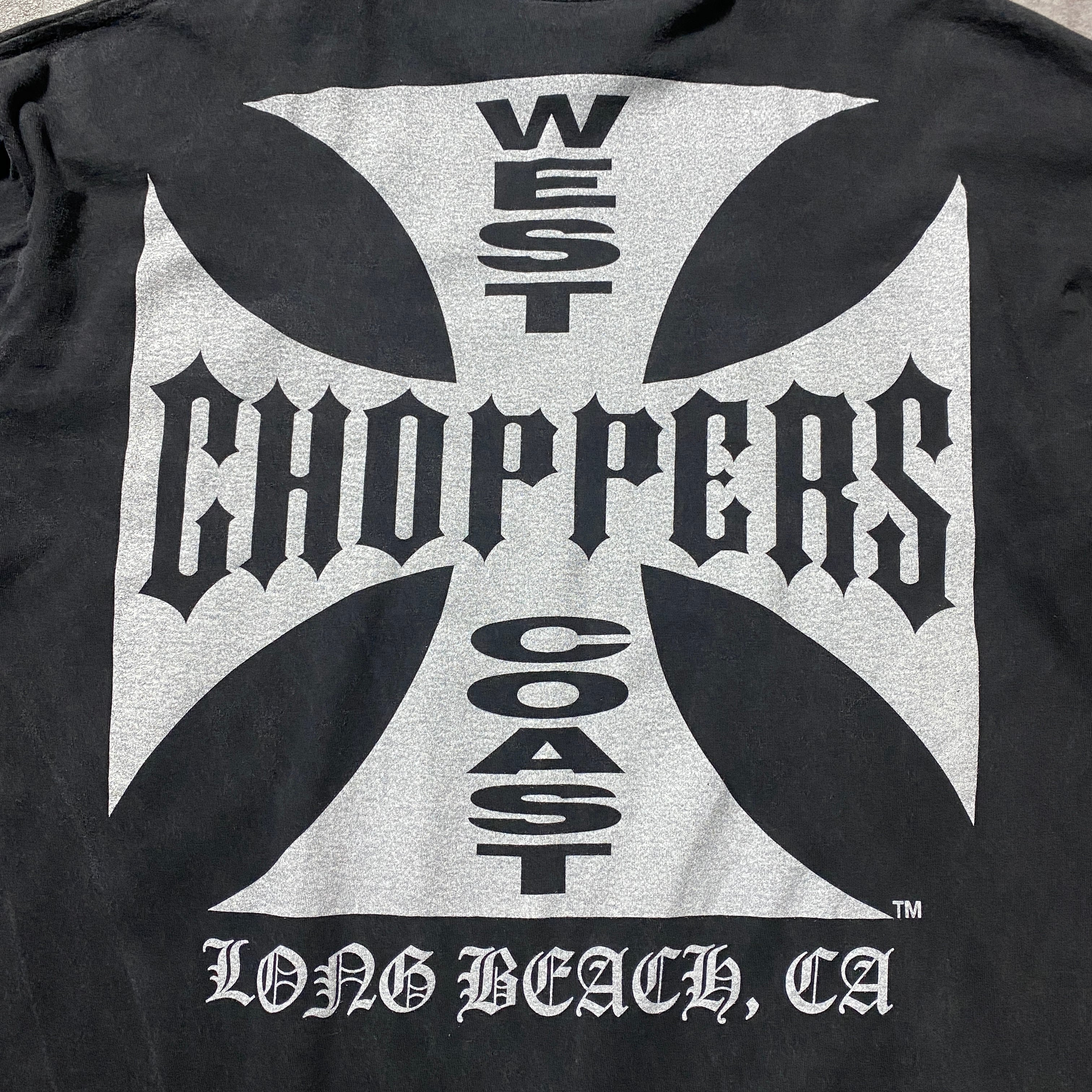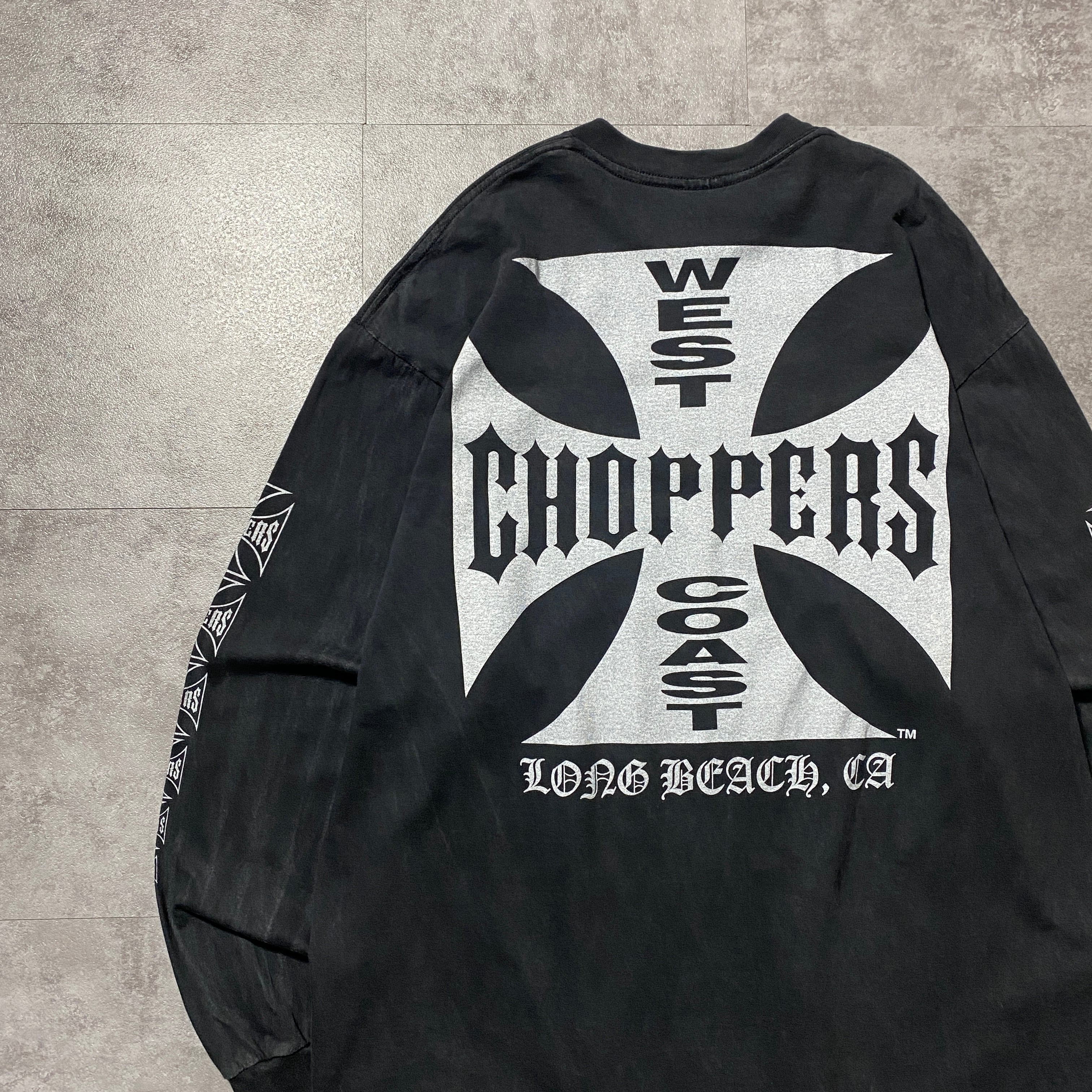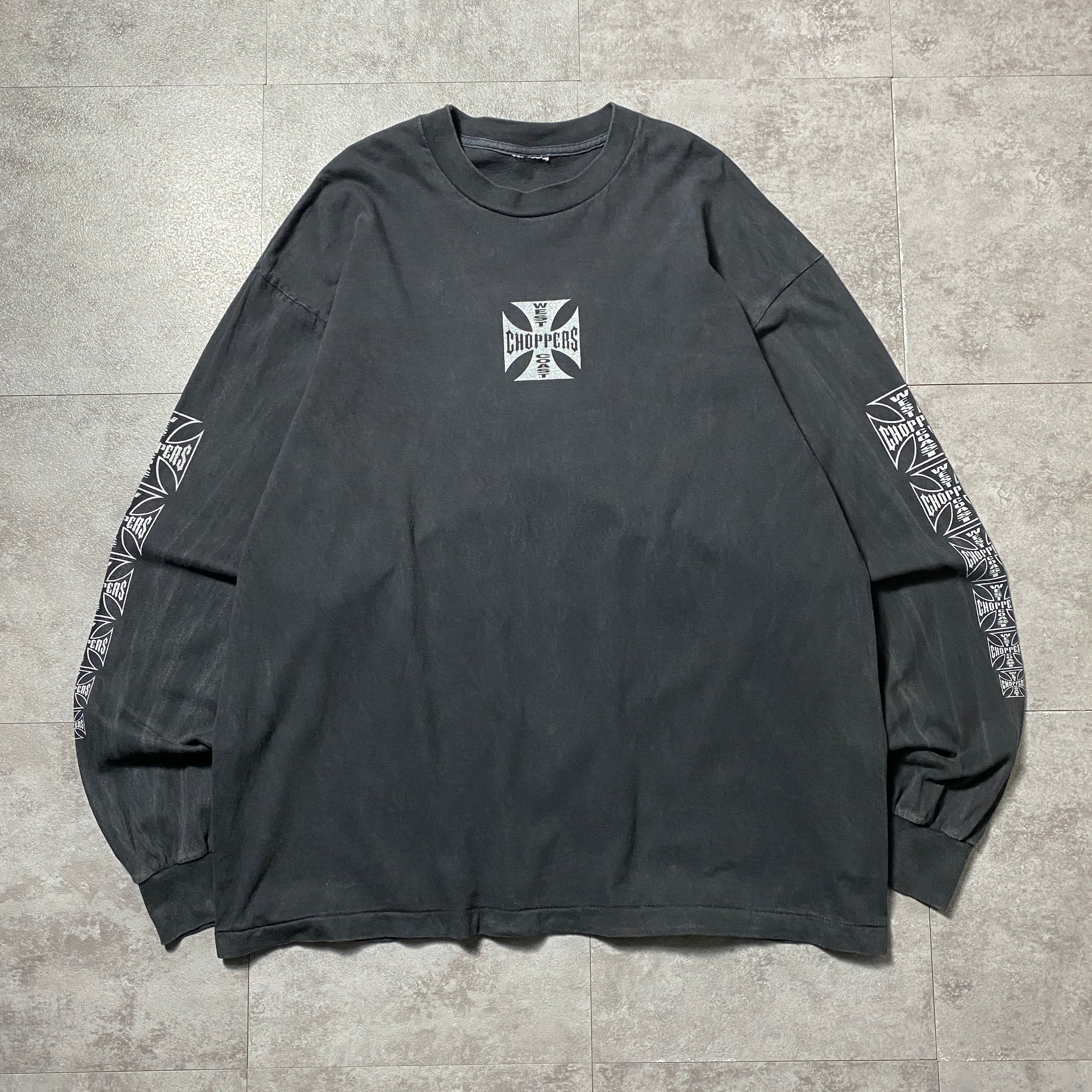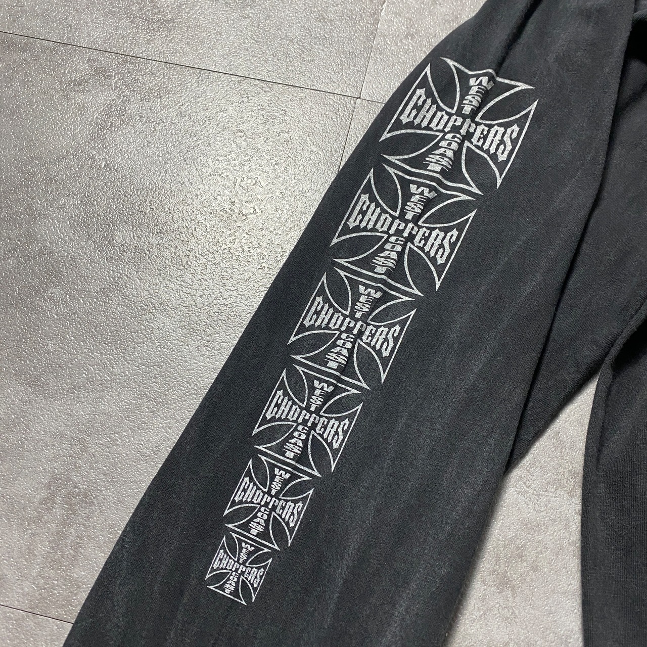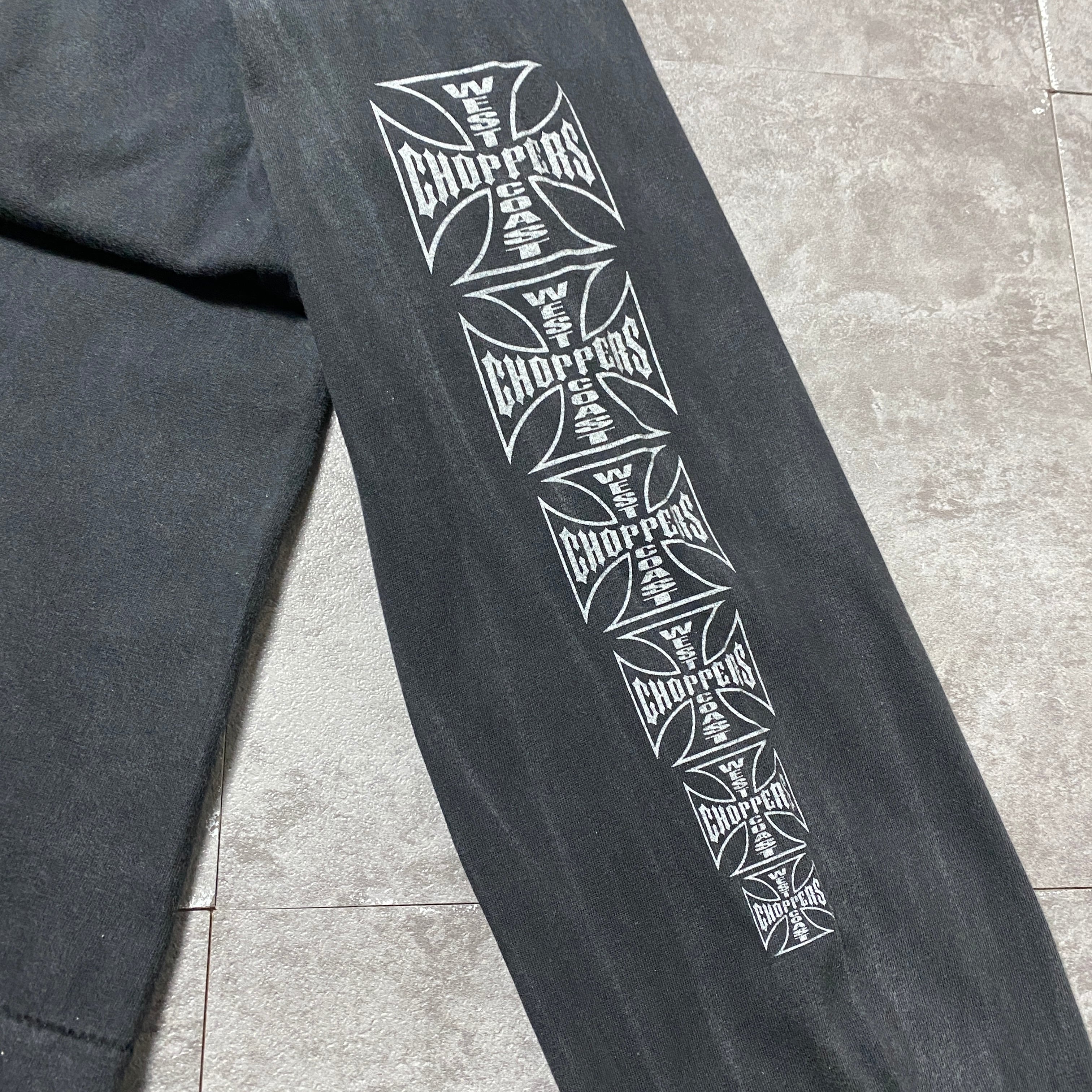 WEST COAST CHOPPERS boot leg ウエストコーストチョッパーズ ブート アイアンクロス バックプリント アームプリント シングルステッチ ブラック 黒 Tシャツ ロンT