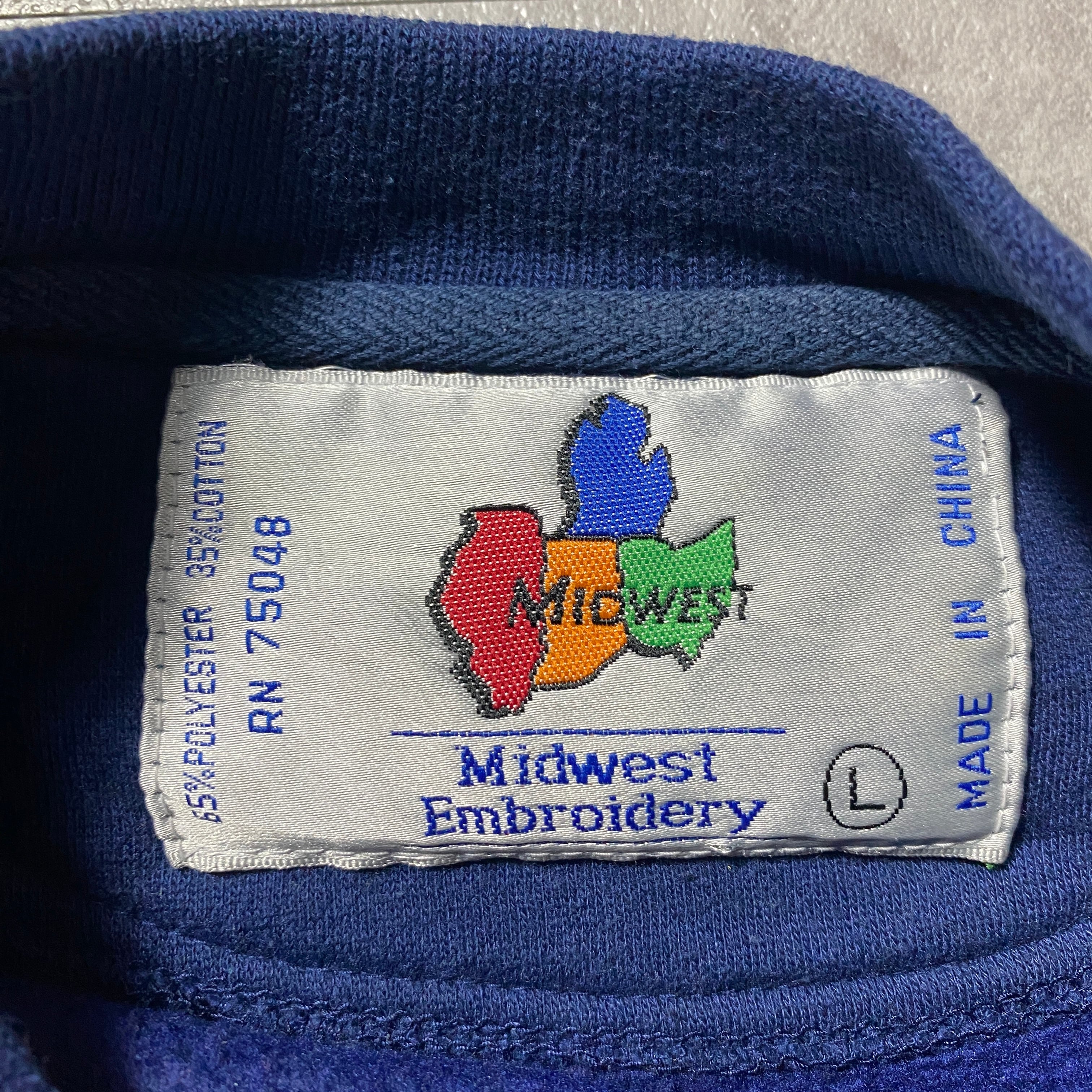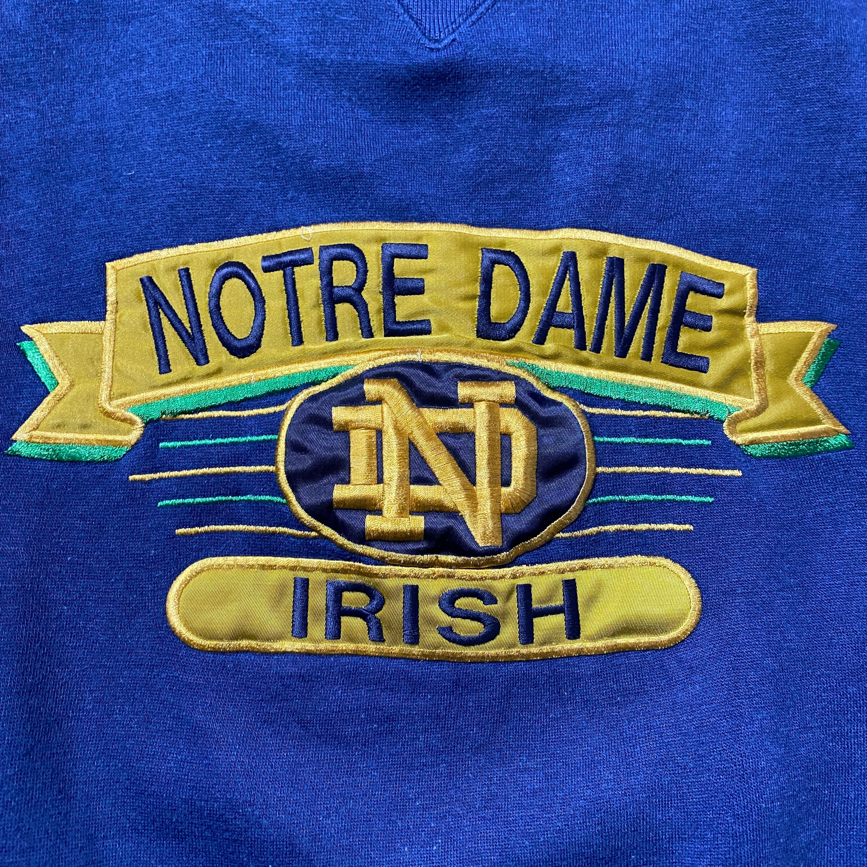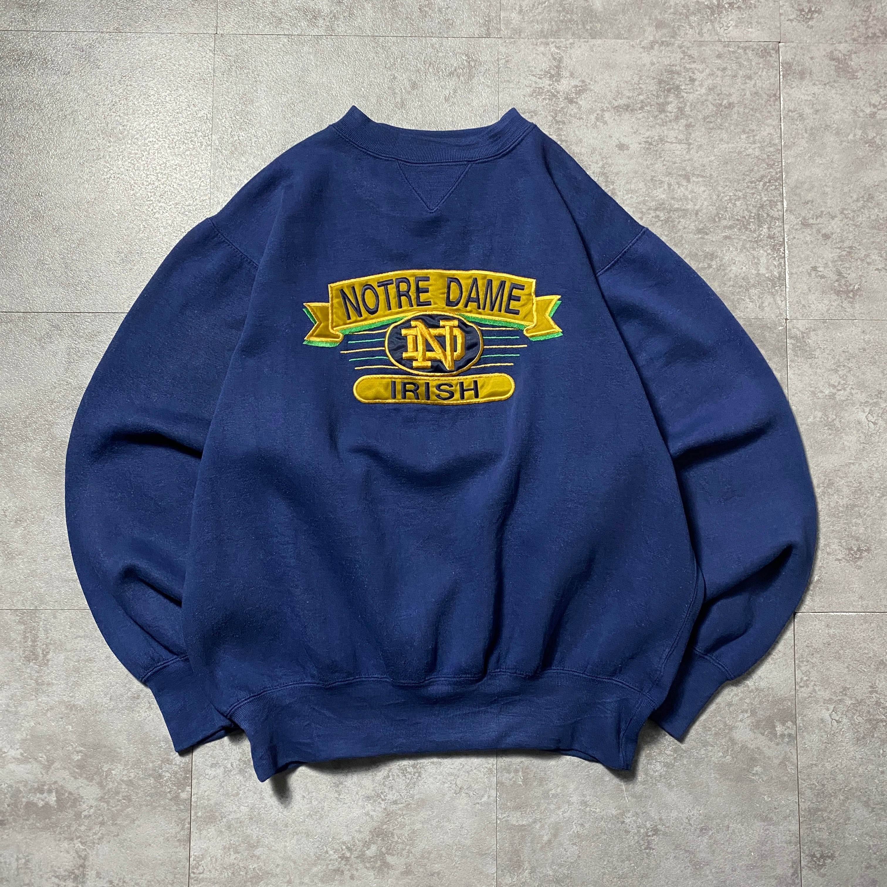90's MIDWEST NORTRE DAME IRISH ノートルダム大学 刺繍カレッジロゴ ネイビー スウェット トレーナー