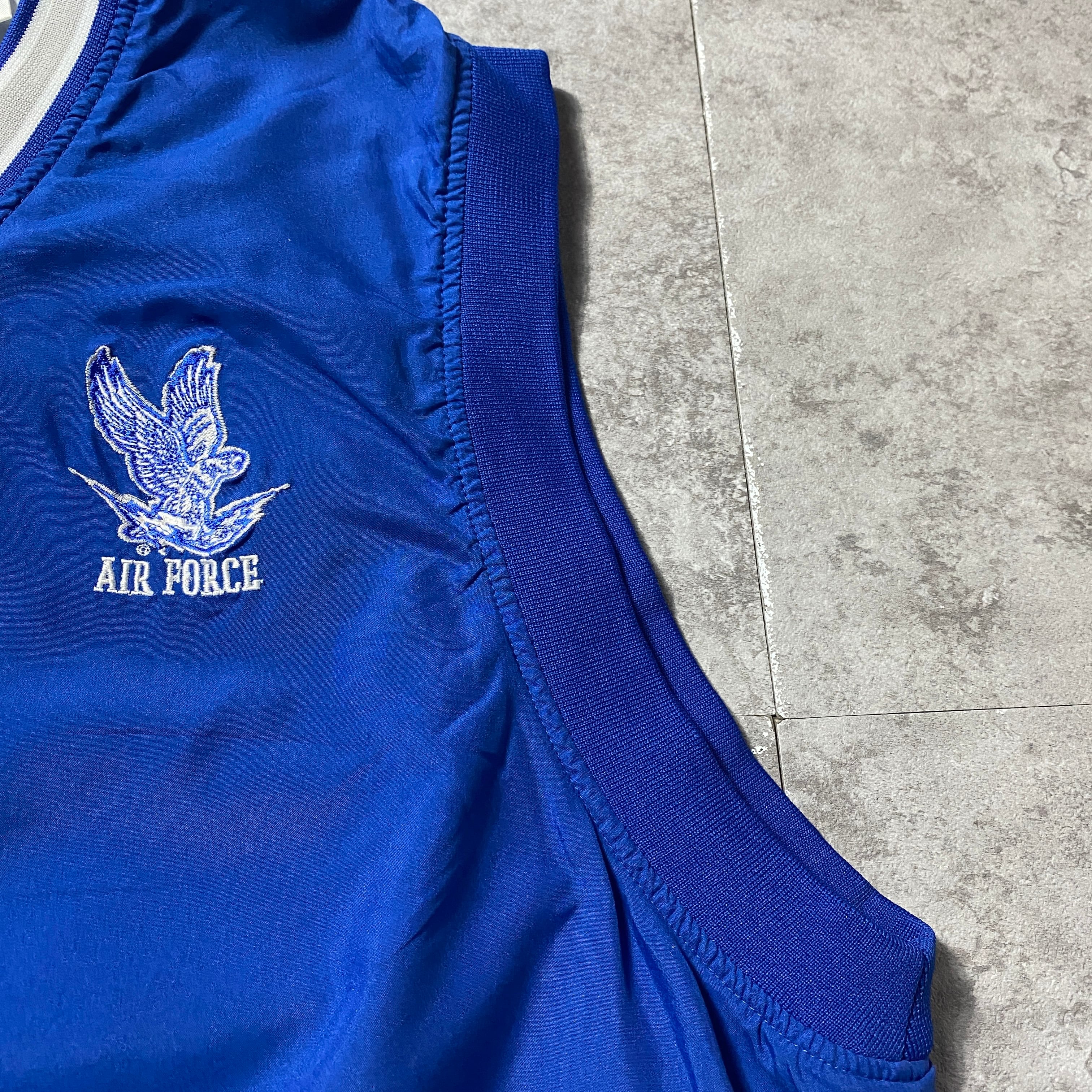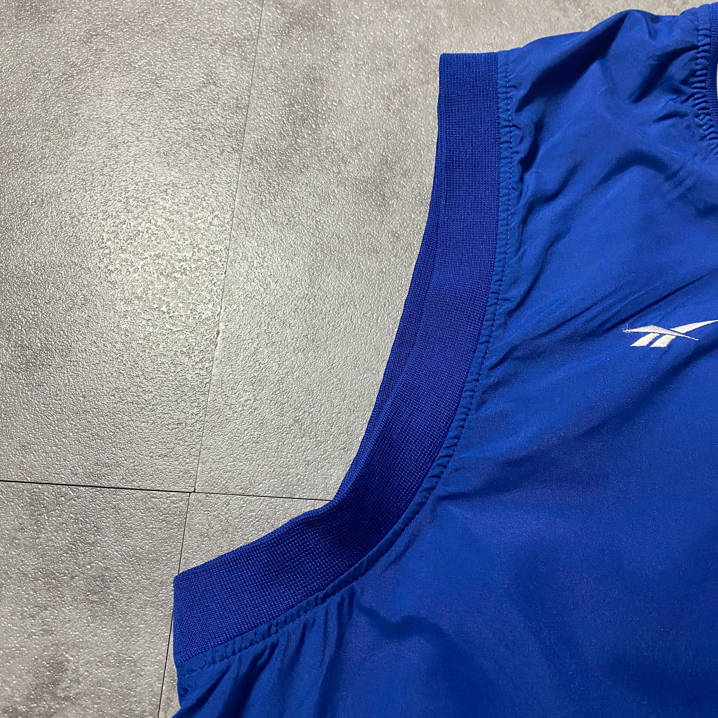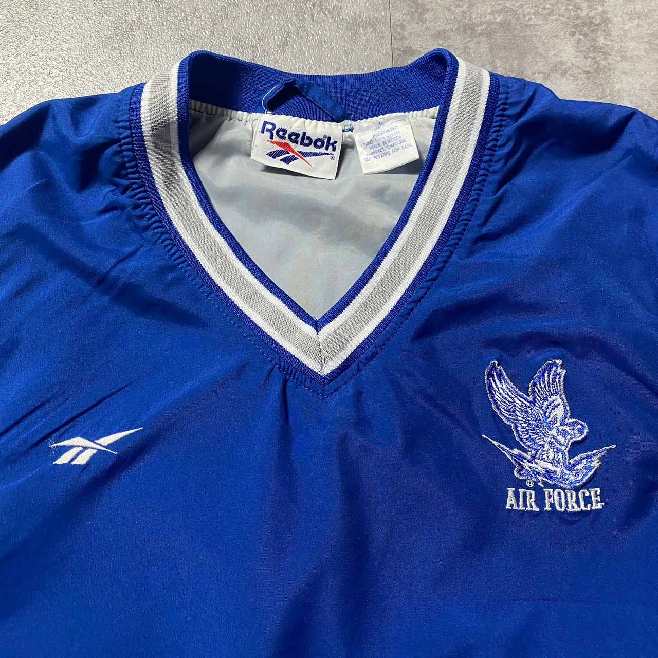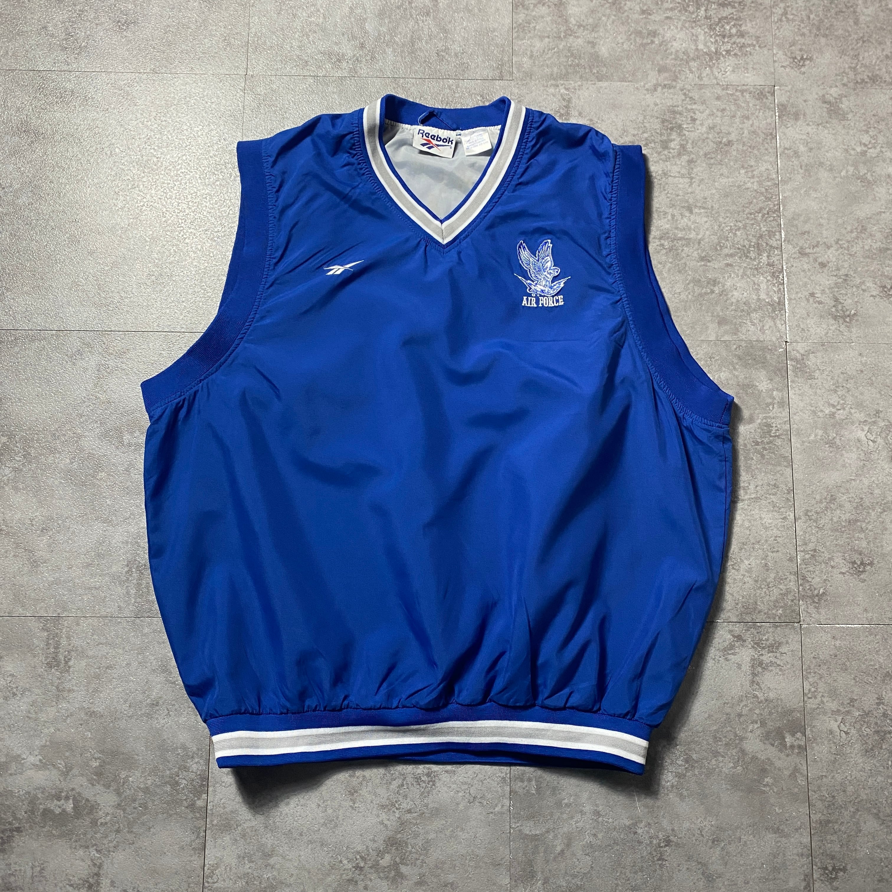 90's Reebok Air Force リーボック エアフォース 刺繍ロゴ ラインリブ ブルー ナイロンベスト ナイロンプルオーバー