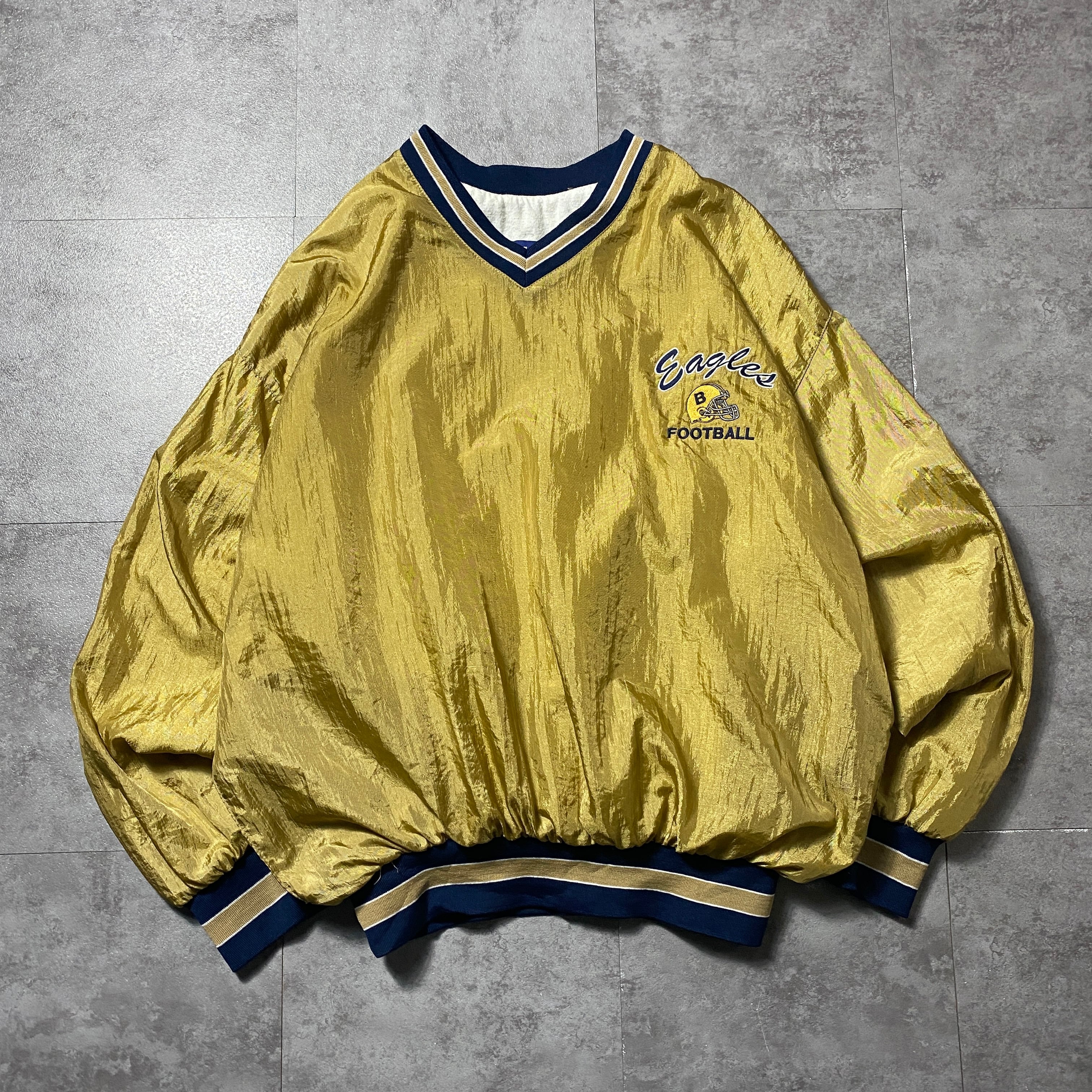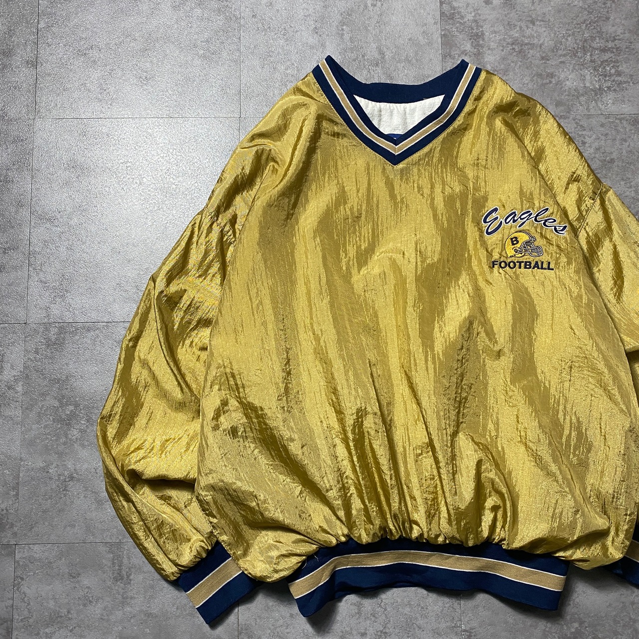 80's 90's Holloway Eagles Football イーグルスフットボール アメフト チームロゴ刺繍 ゴールド ラインリブ ナイロンプルオーバー