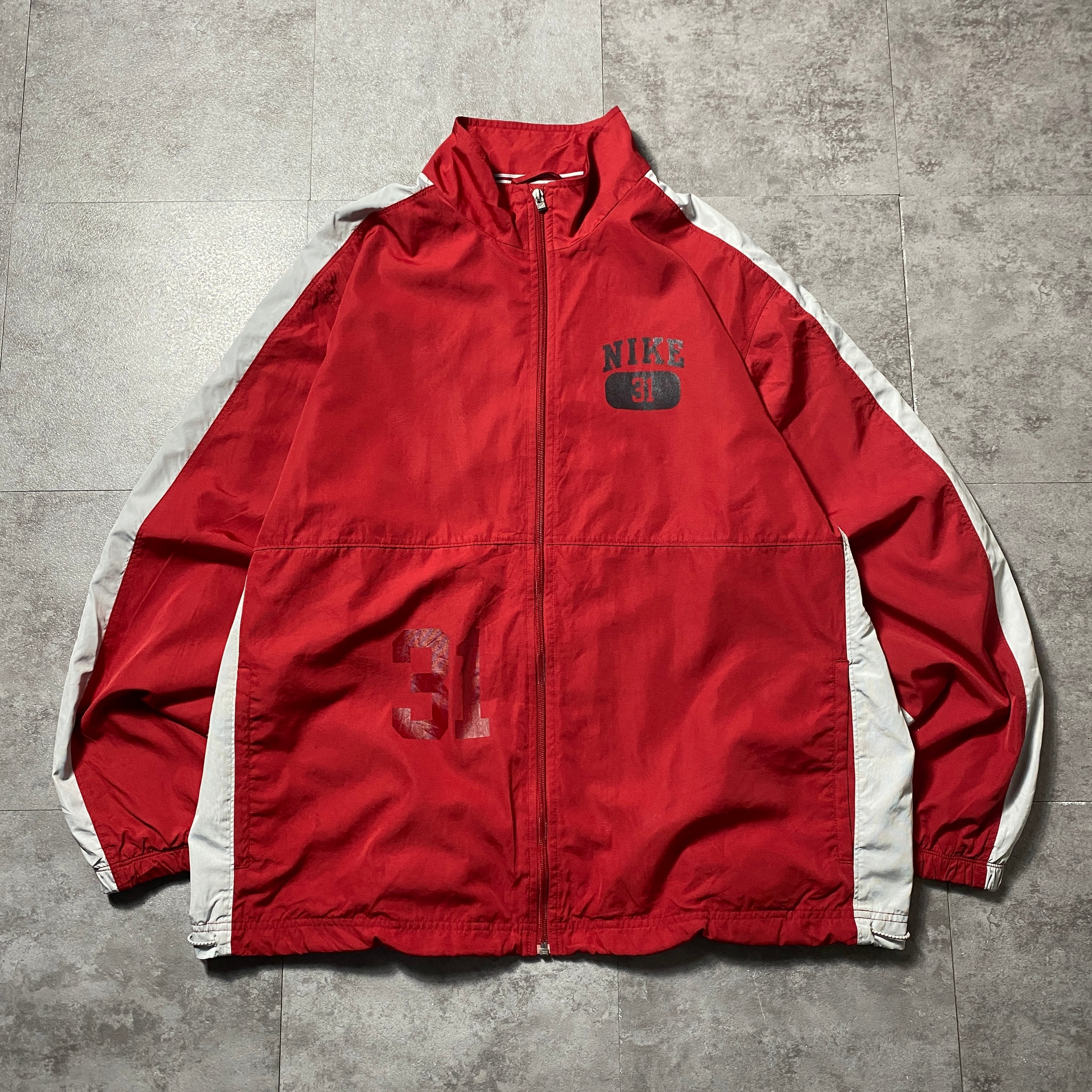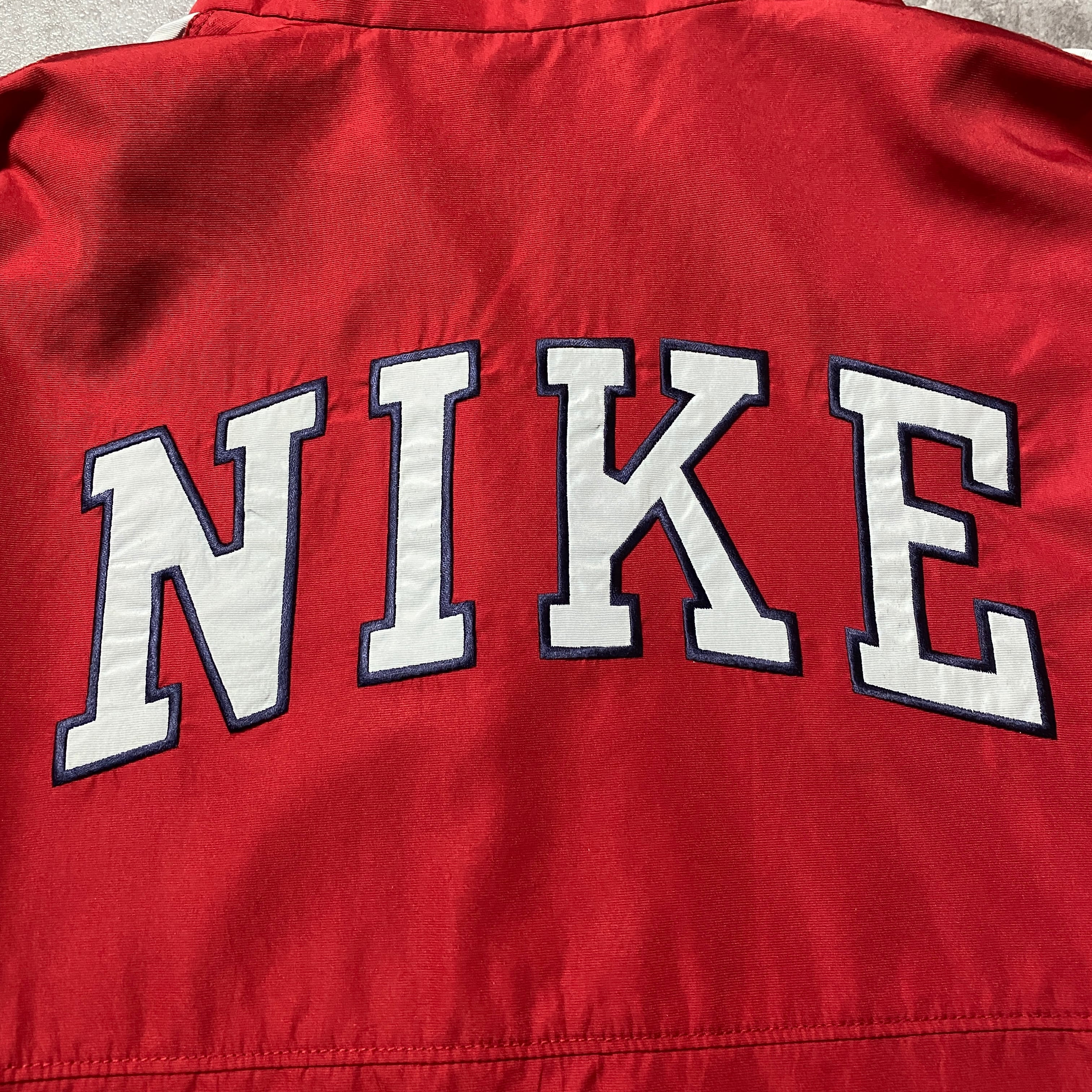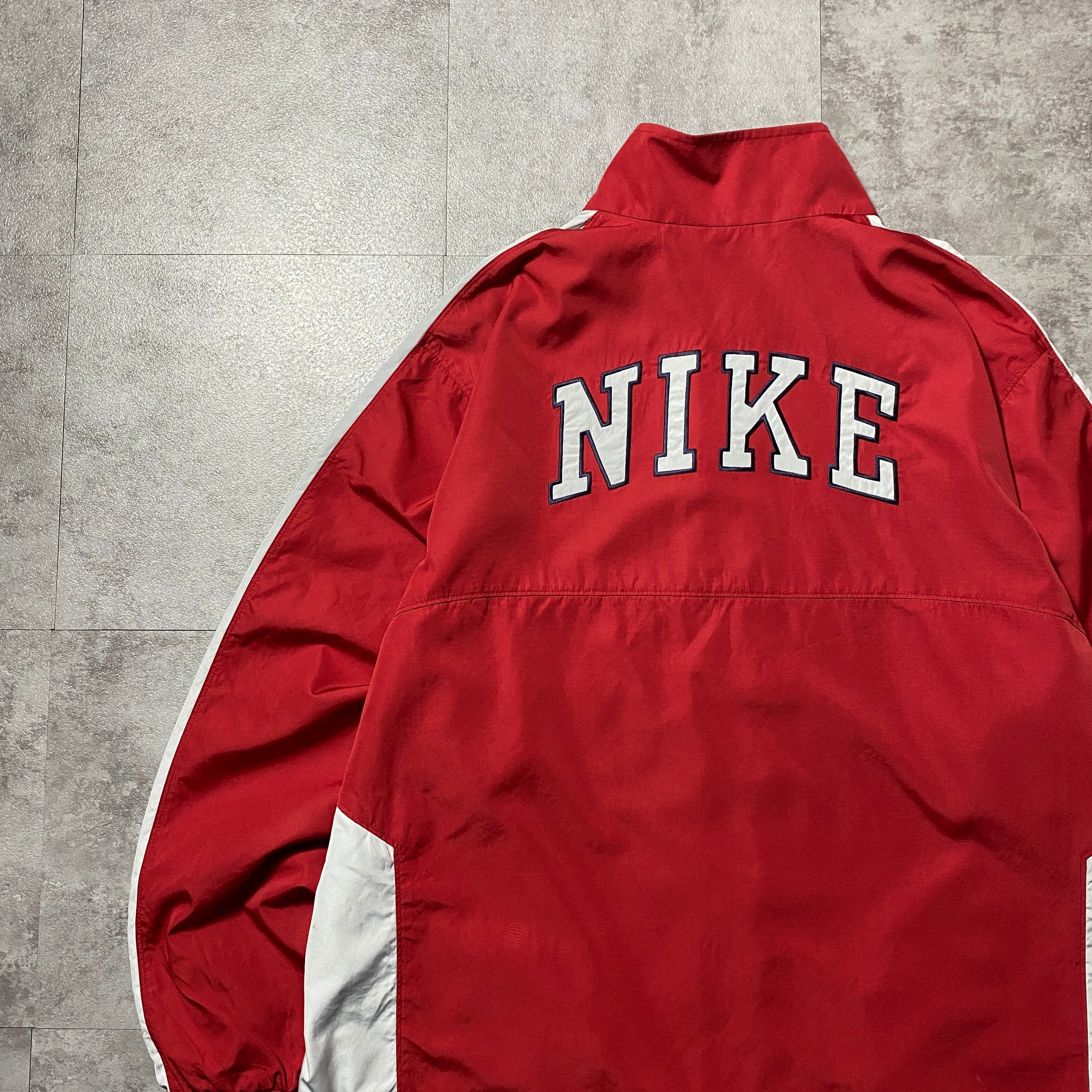00's NIKE ナイキ ワンポイント プリント 刺繍バックロゴ サイドライン レッド 赤 ナイロンジャケット