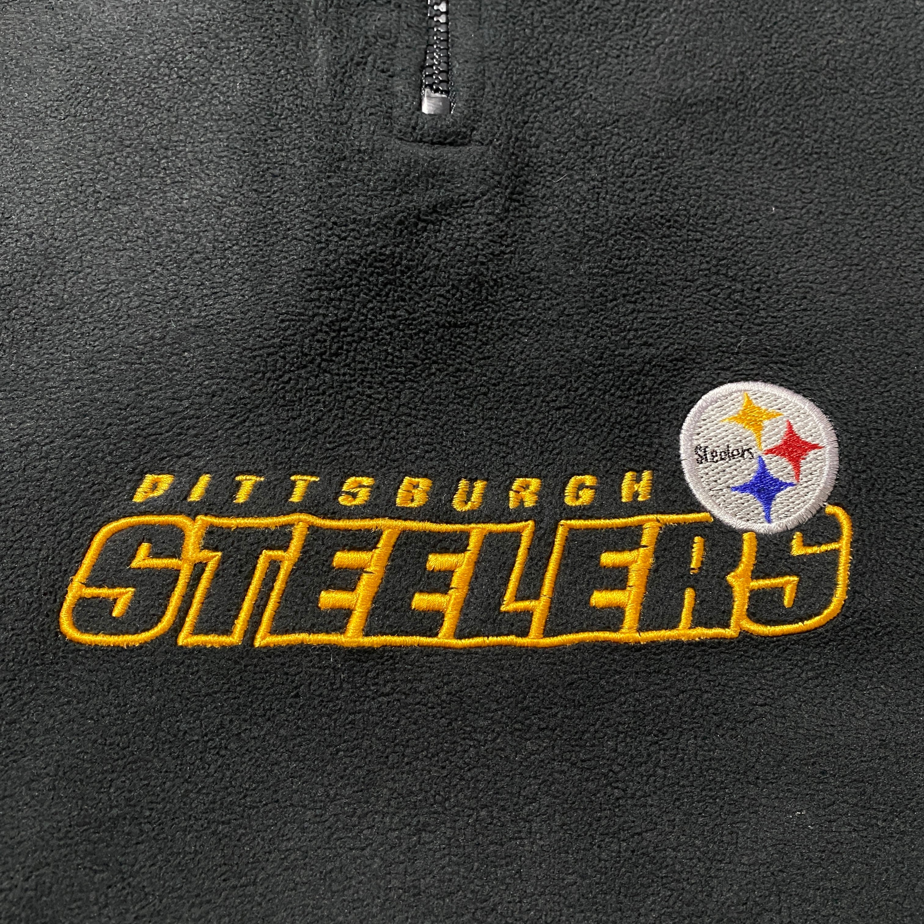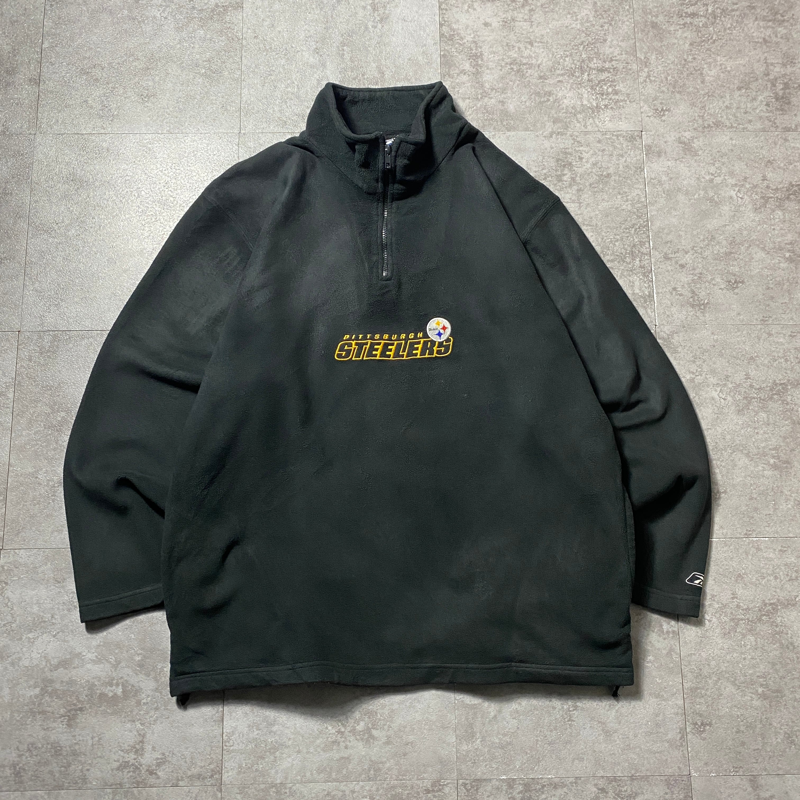 【Size:XL】90's Reebok NFL Steelers リーボック スティーラーズ ハーフジップ 刺繍ロゴ ブラック 黒 フリース スウェット トレーナー