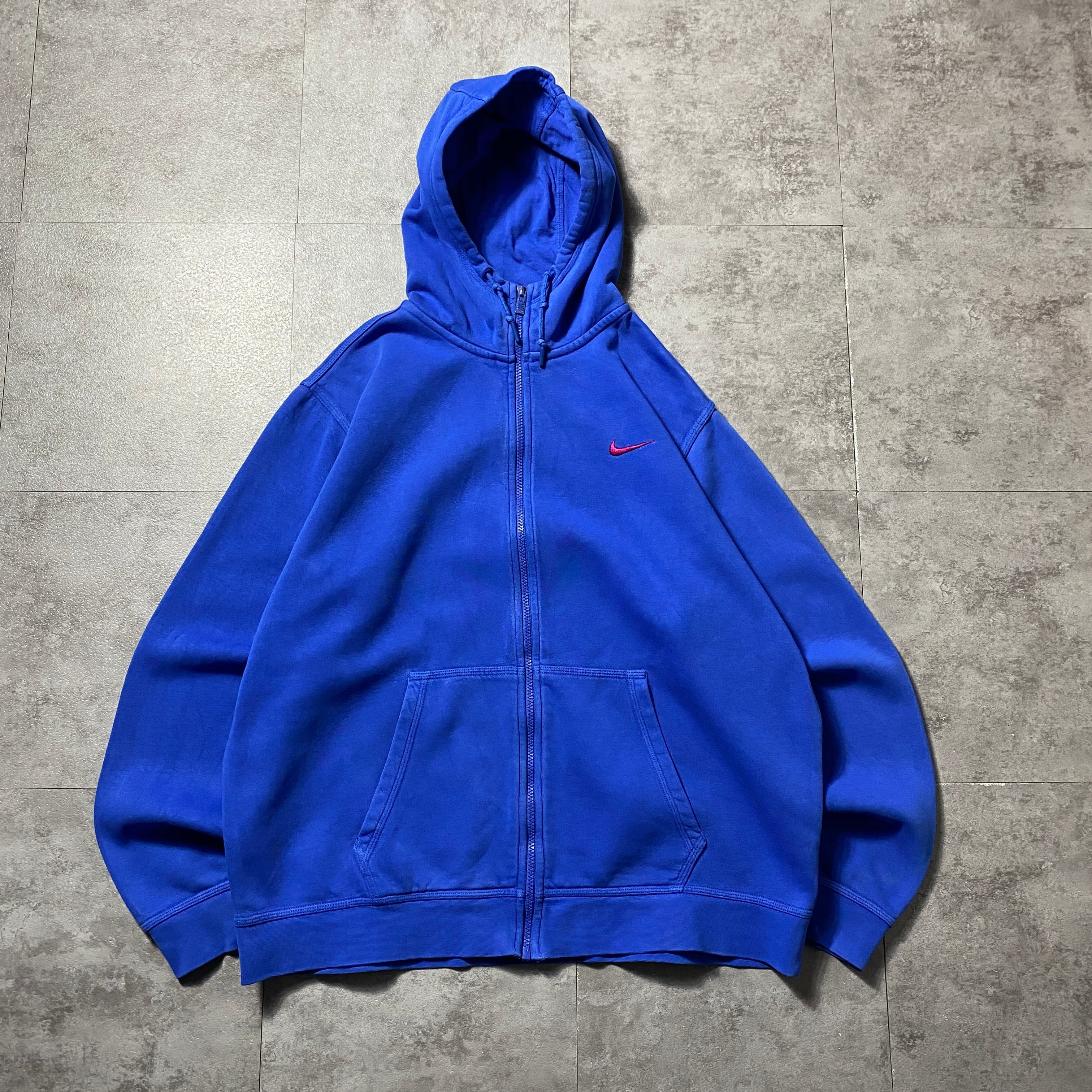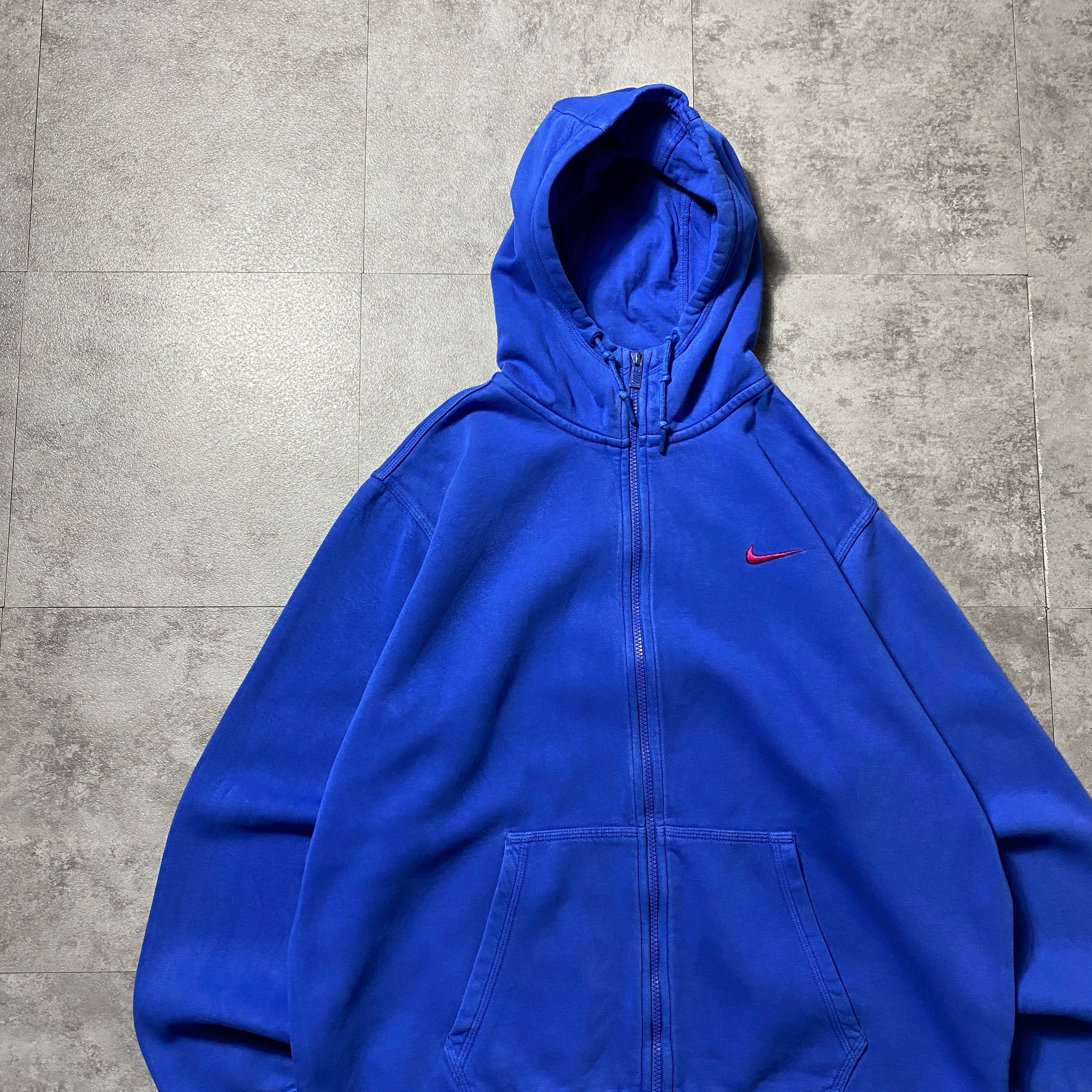 【Size.XL】NIKE ナイキ スウォッシュ 刺繍ワンポイント ブルー スウェット ジップパーカー