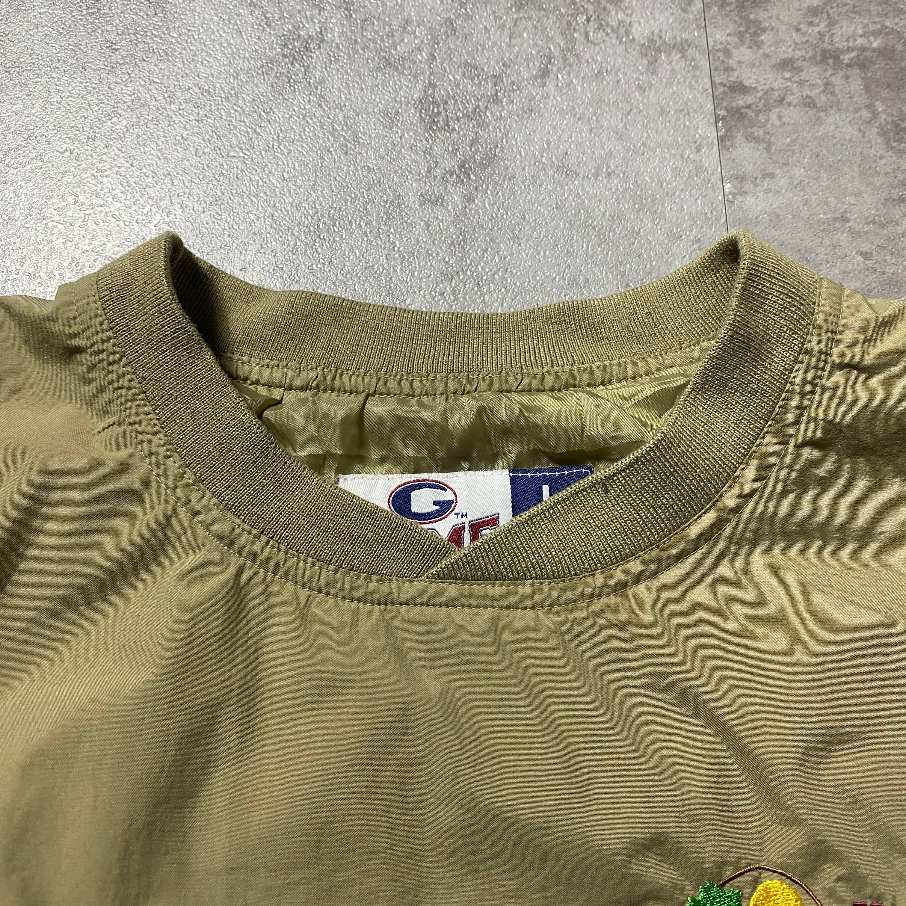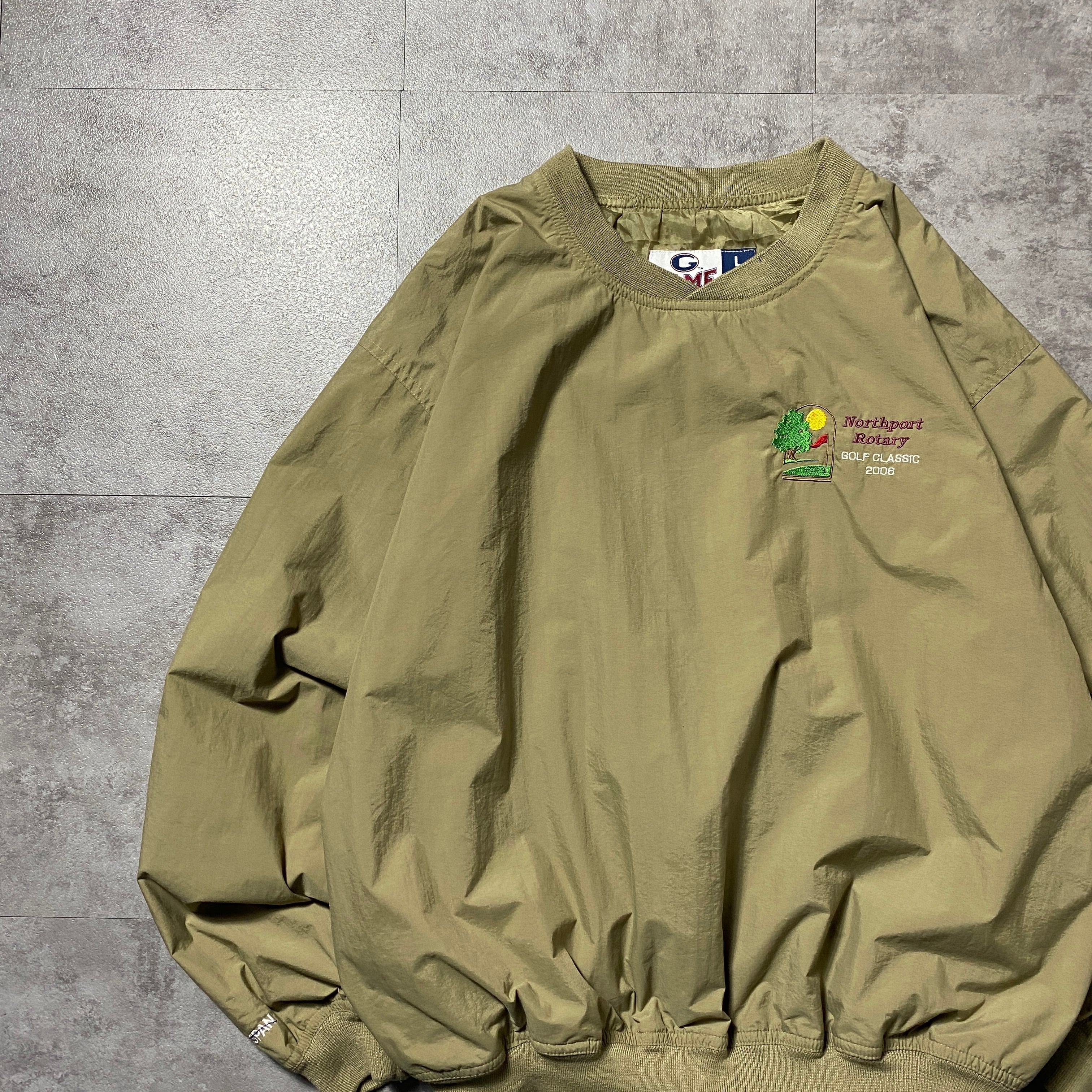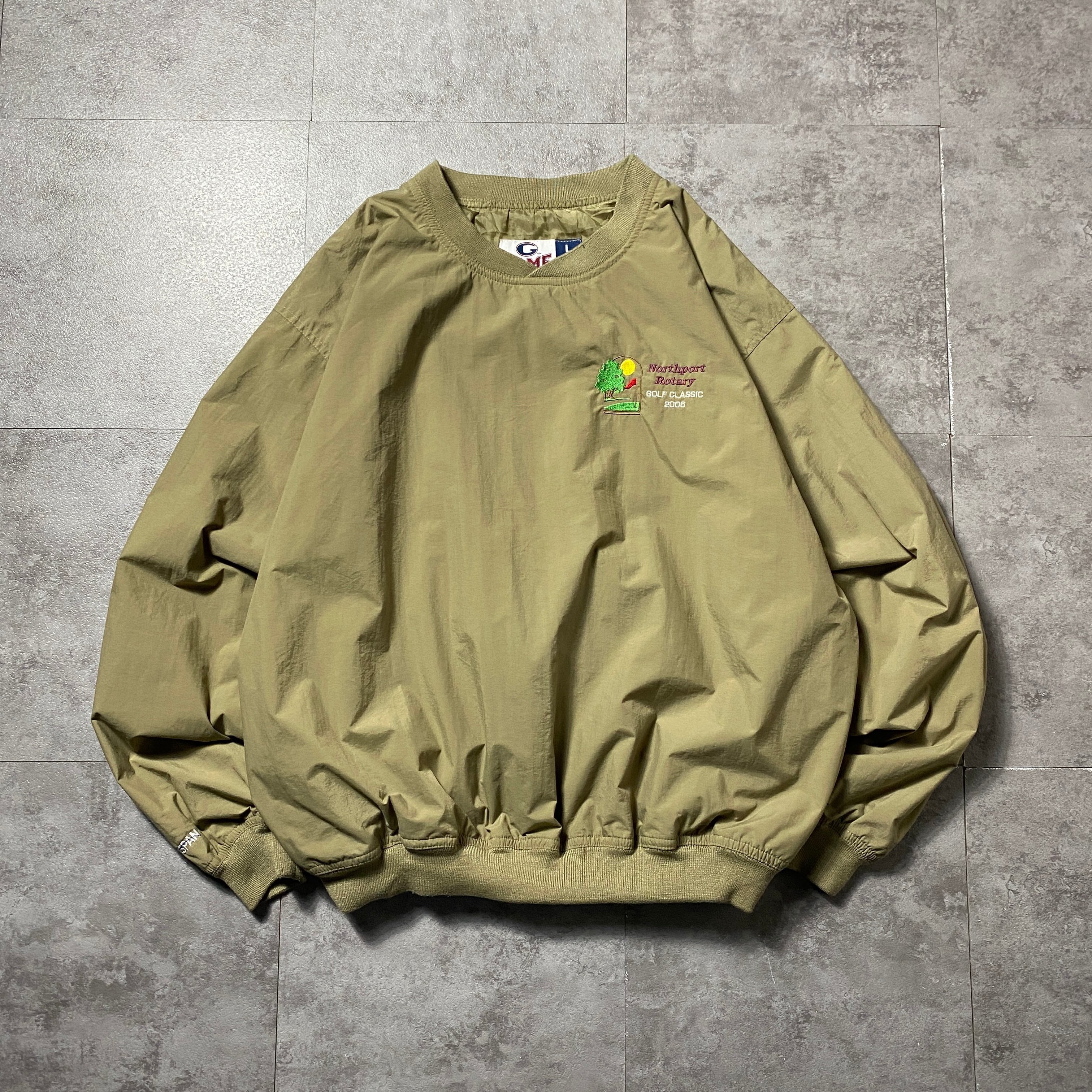 90's GAME ゲーム 刺繍ワンポイント 企業ロゴ ベージュ ナイロンプルオーバー