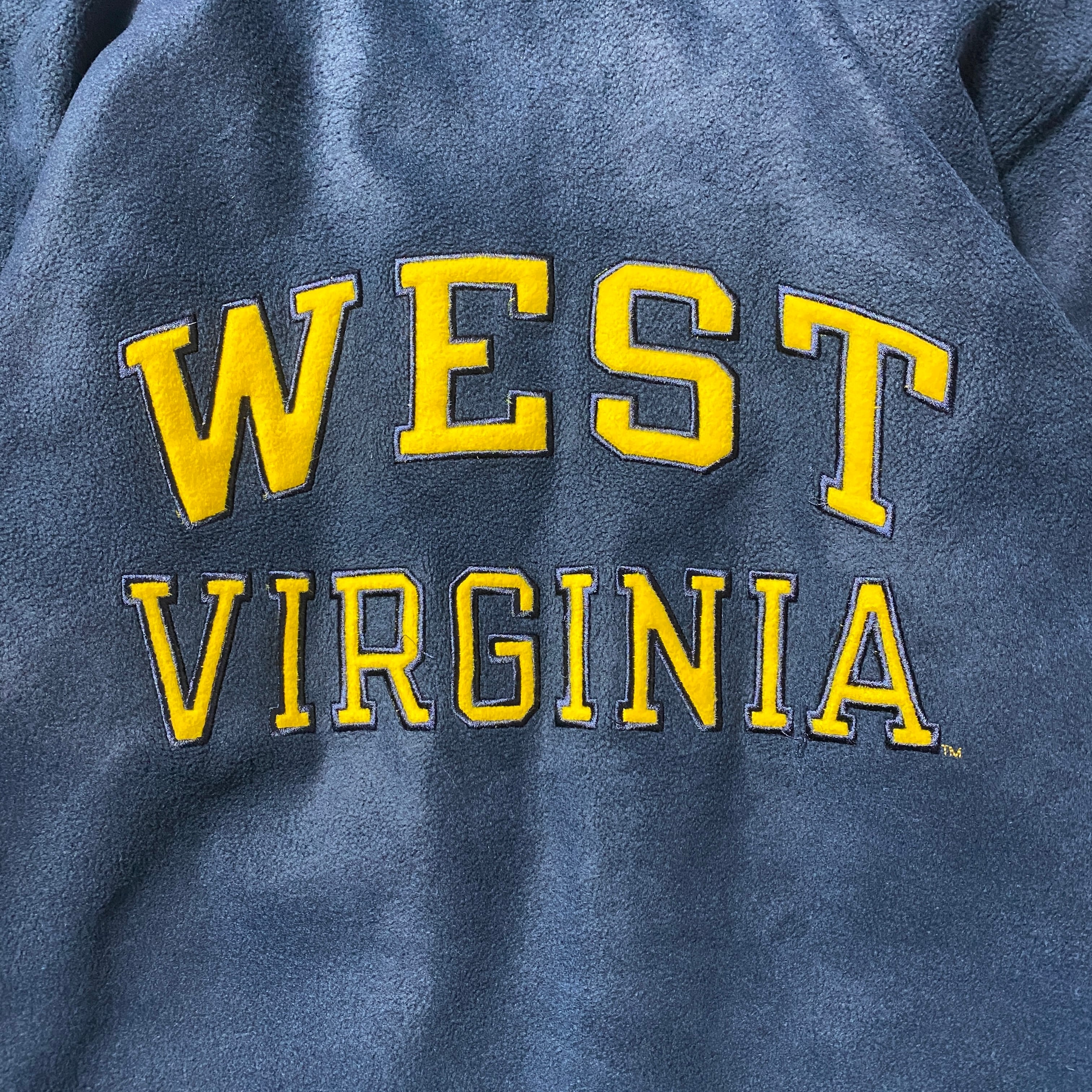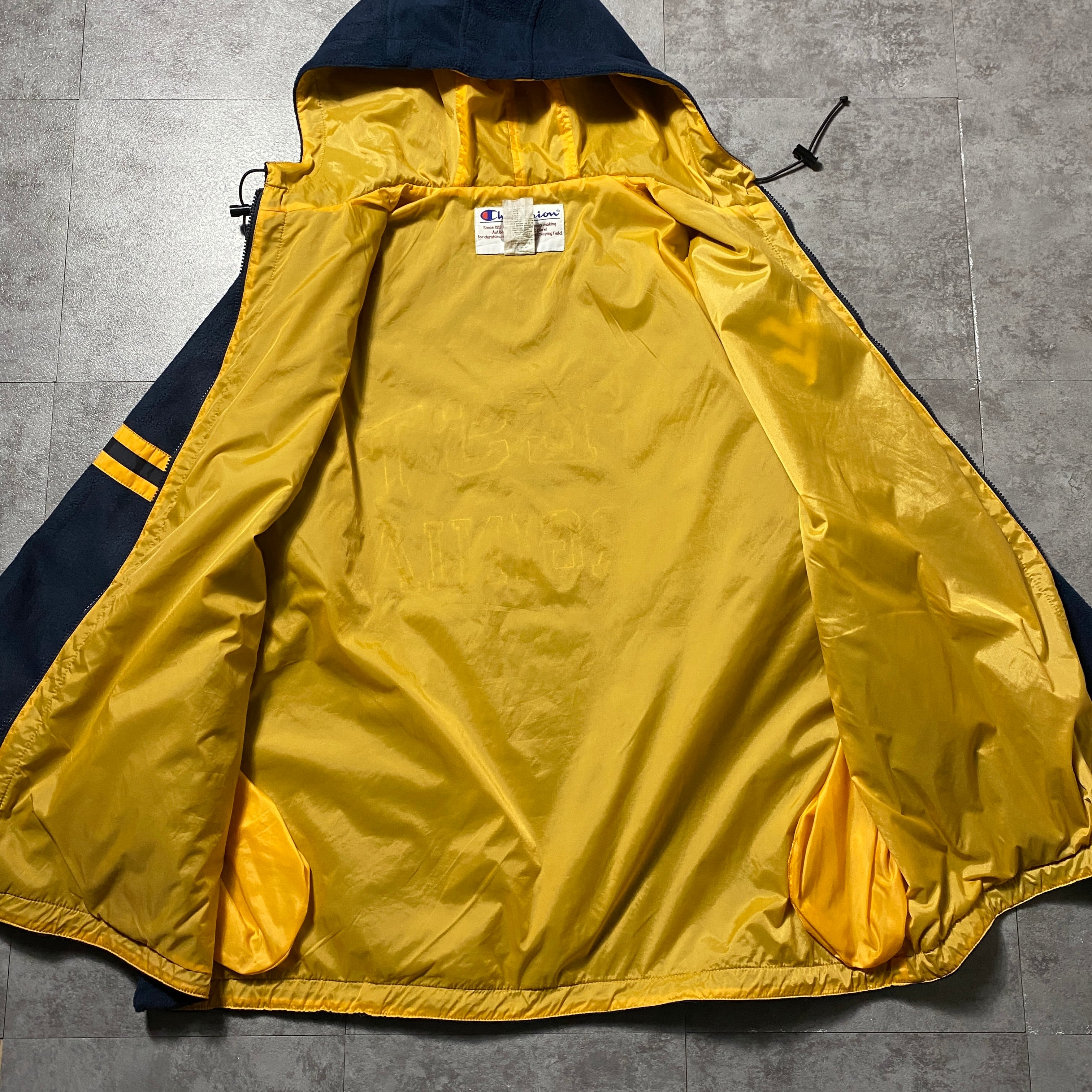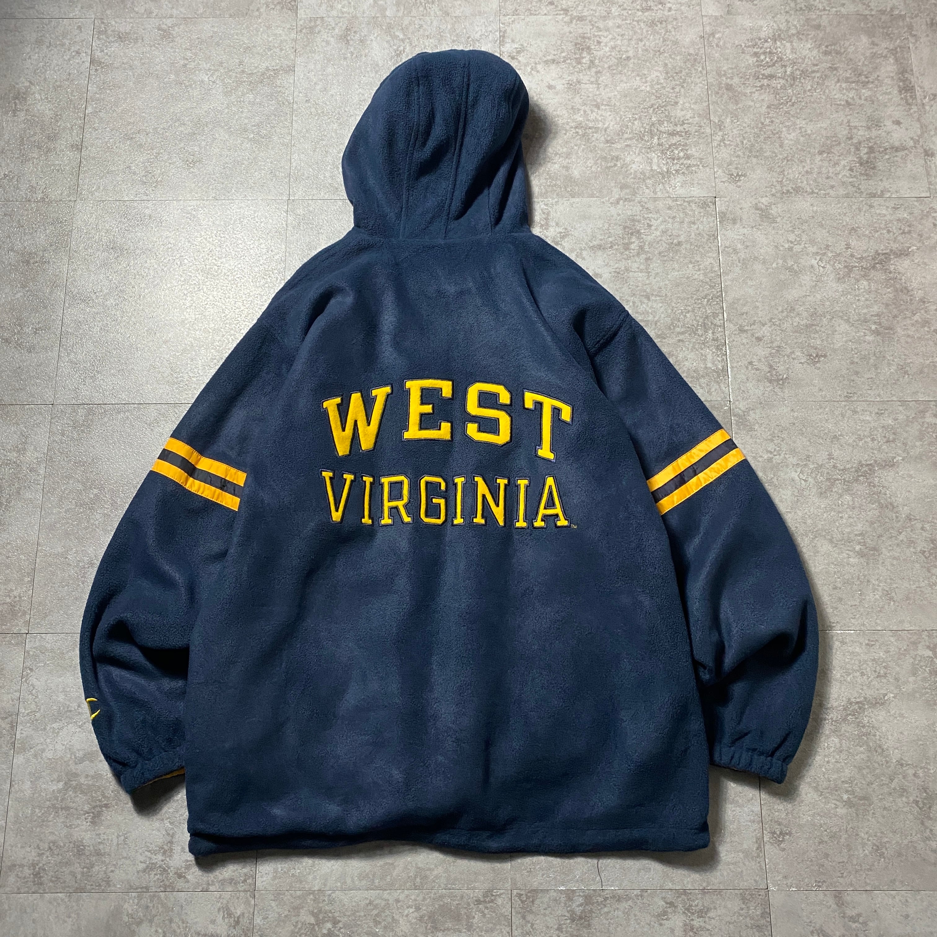 【Size:XL】90's Champion チャンピオン ウエストバージニア 刺繍カレッジロゴ フード付 ネイビー フリースジャケット パーカー