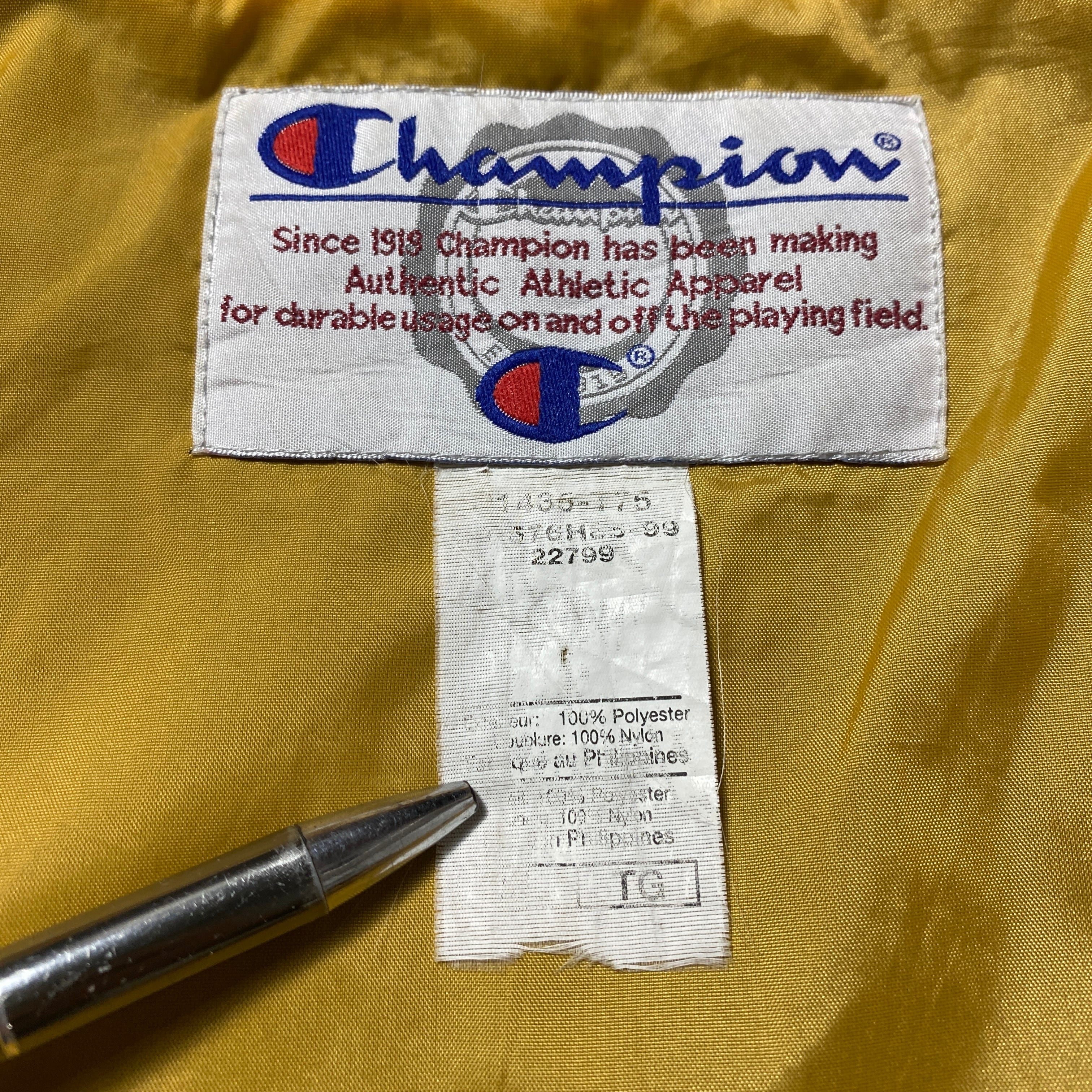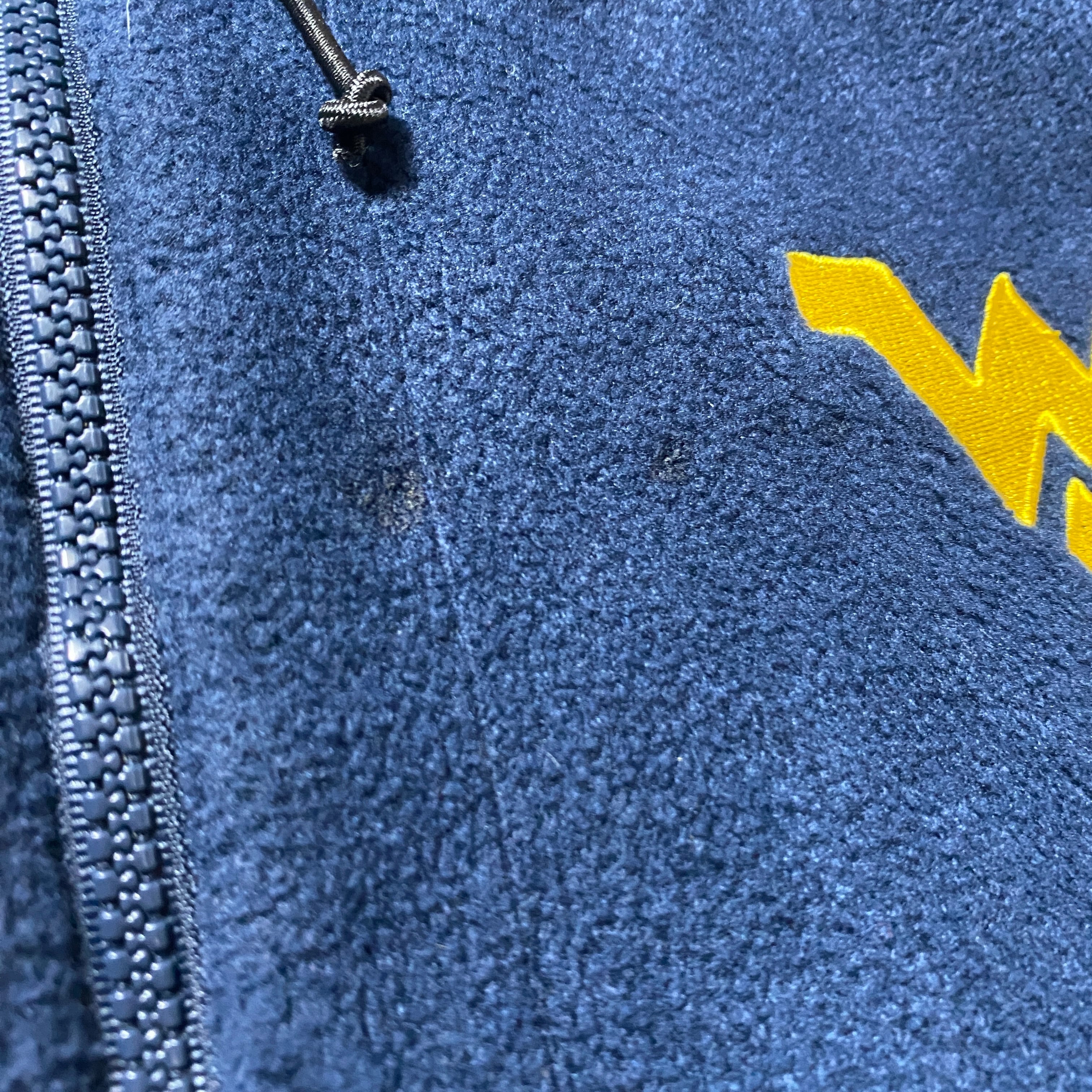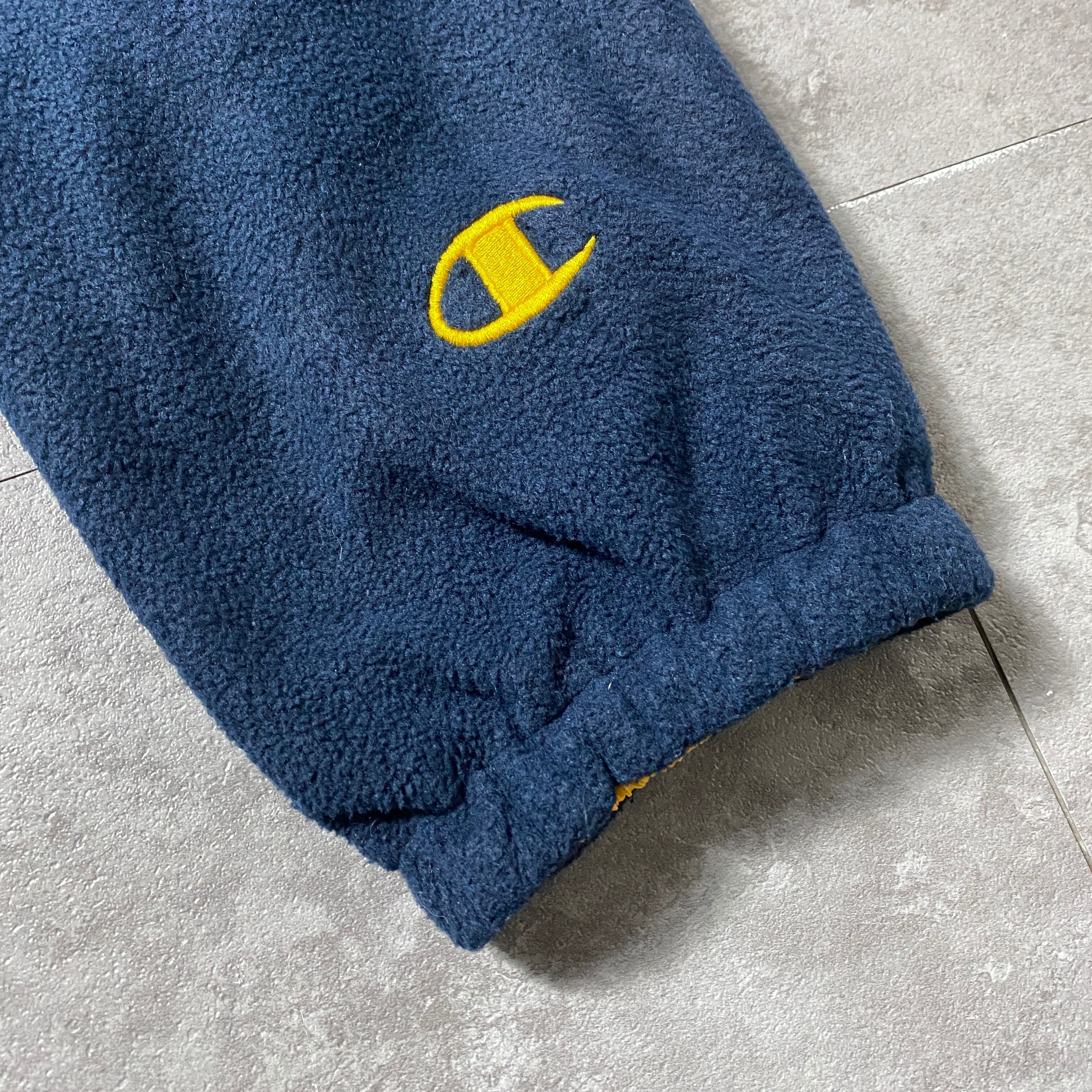 【Size:XL】90's Champion チャンピオン ウエストバージニア 刺繍カレッジロゴ フード付 ネイビー フリースジャケット パーカー