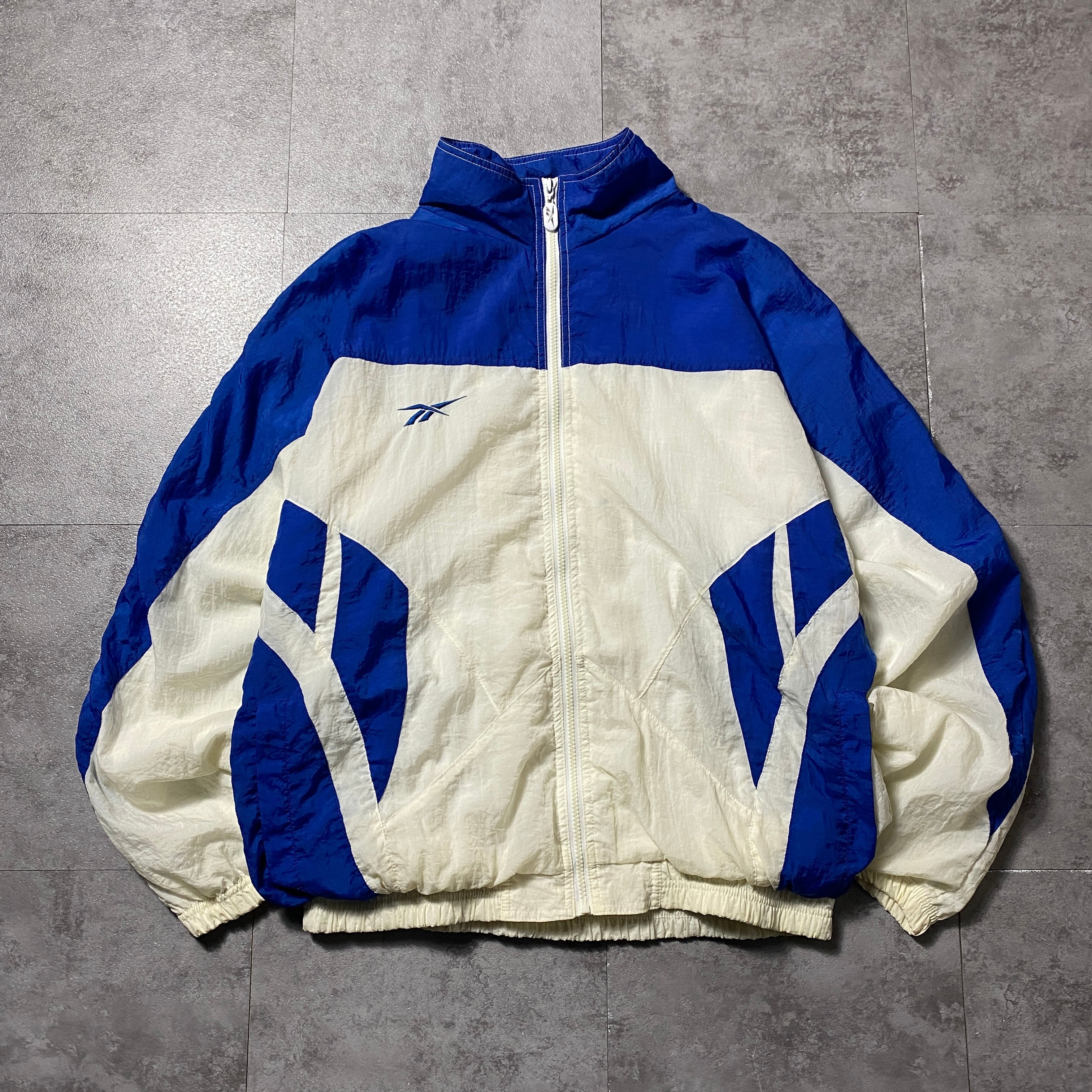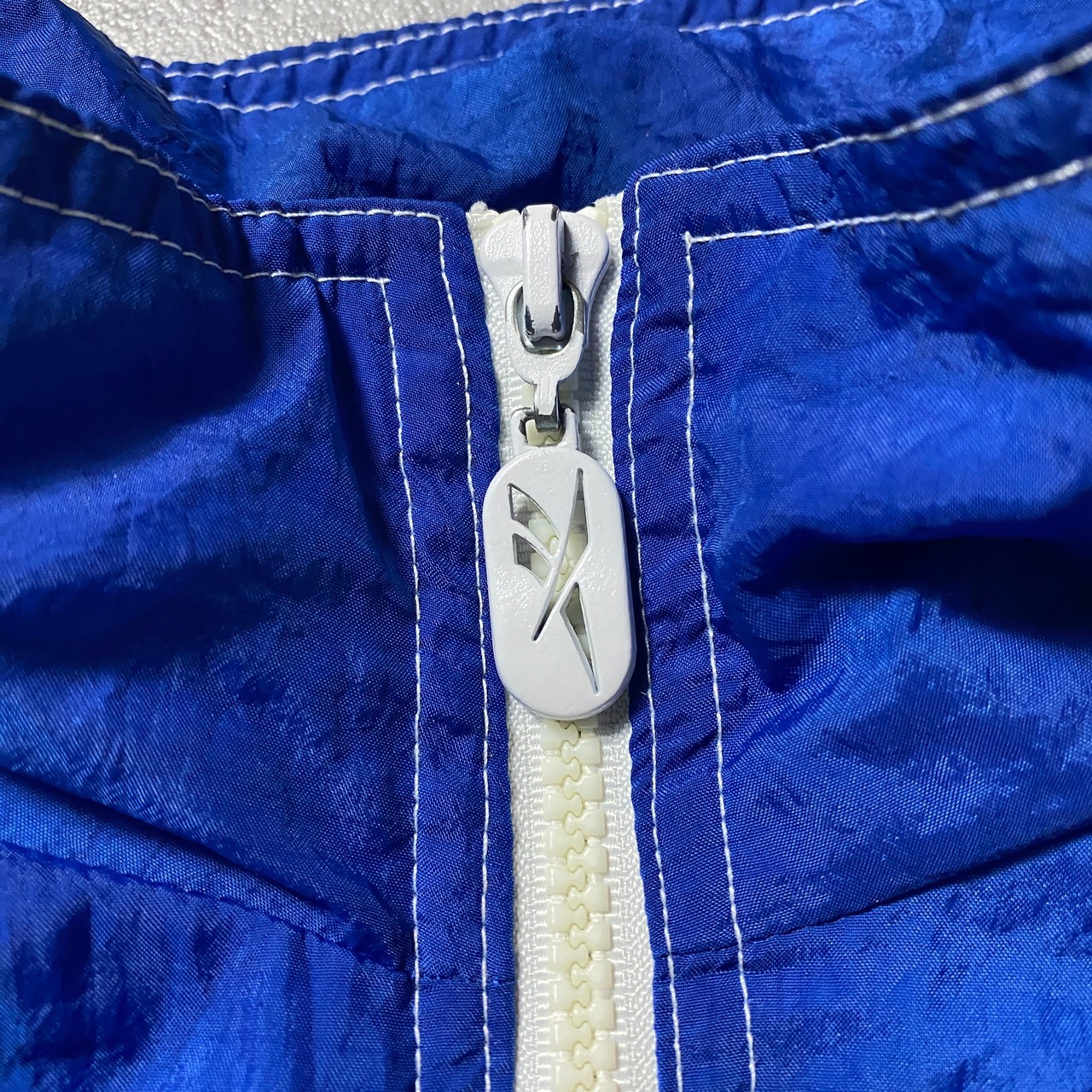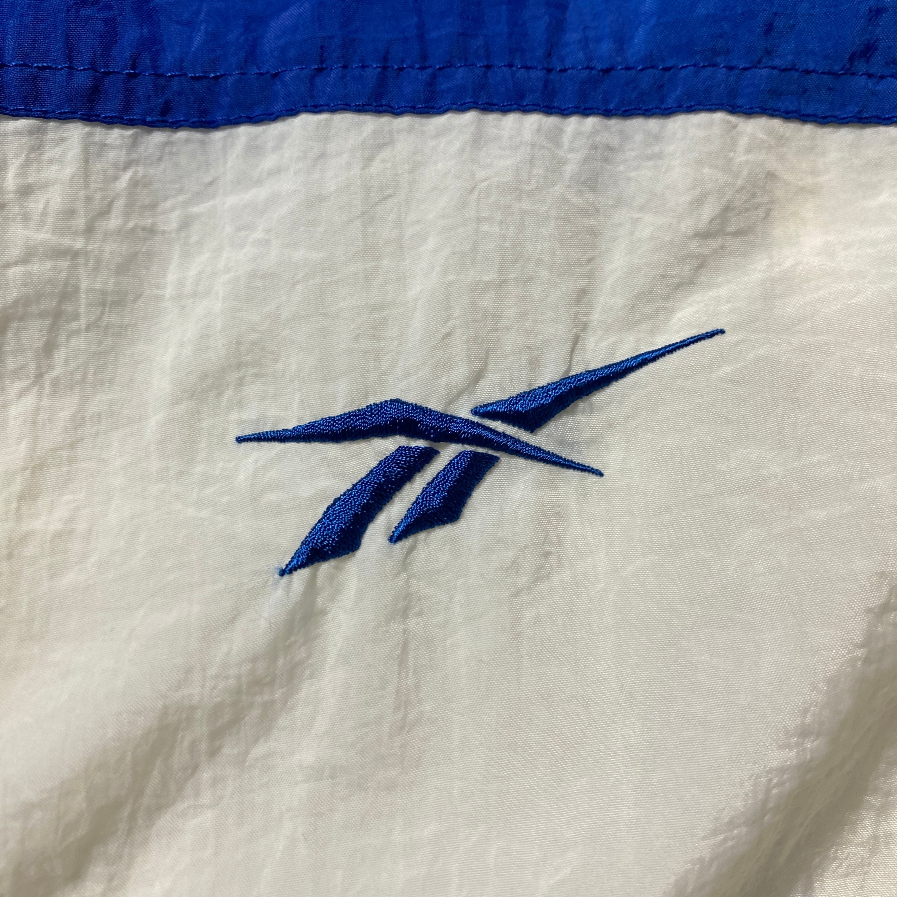 90's Reebok リーボック 刺繍ワンポイント ベクターロゴ ブルー ホワイト ナイロンジャケット