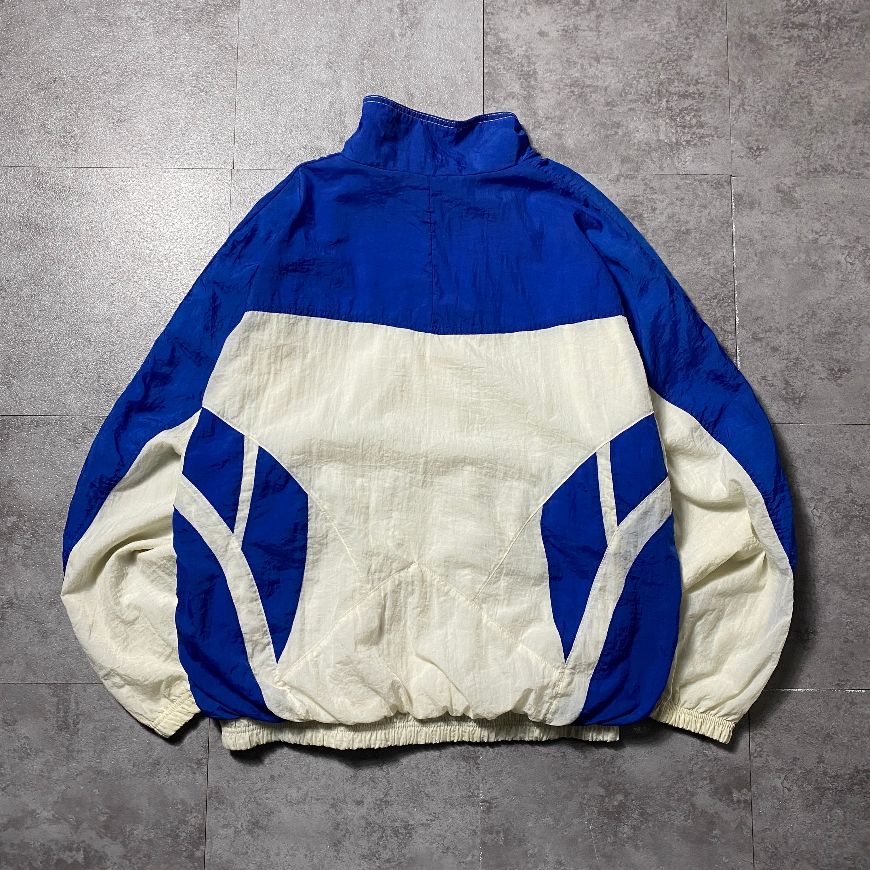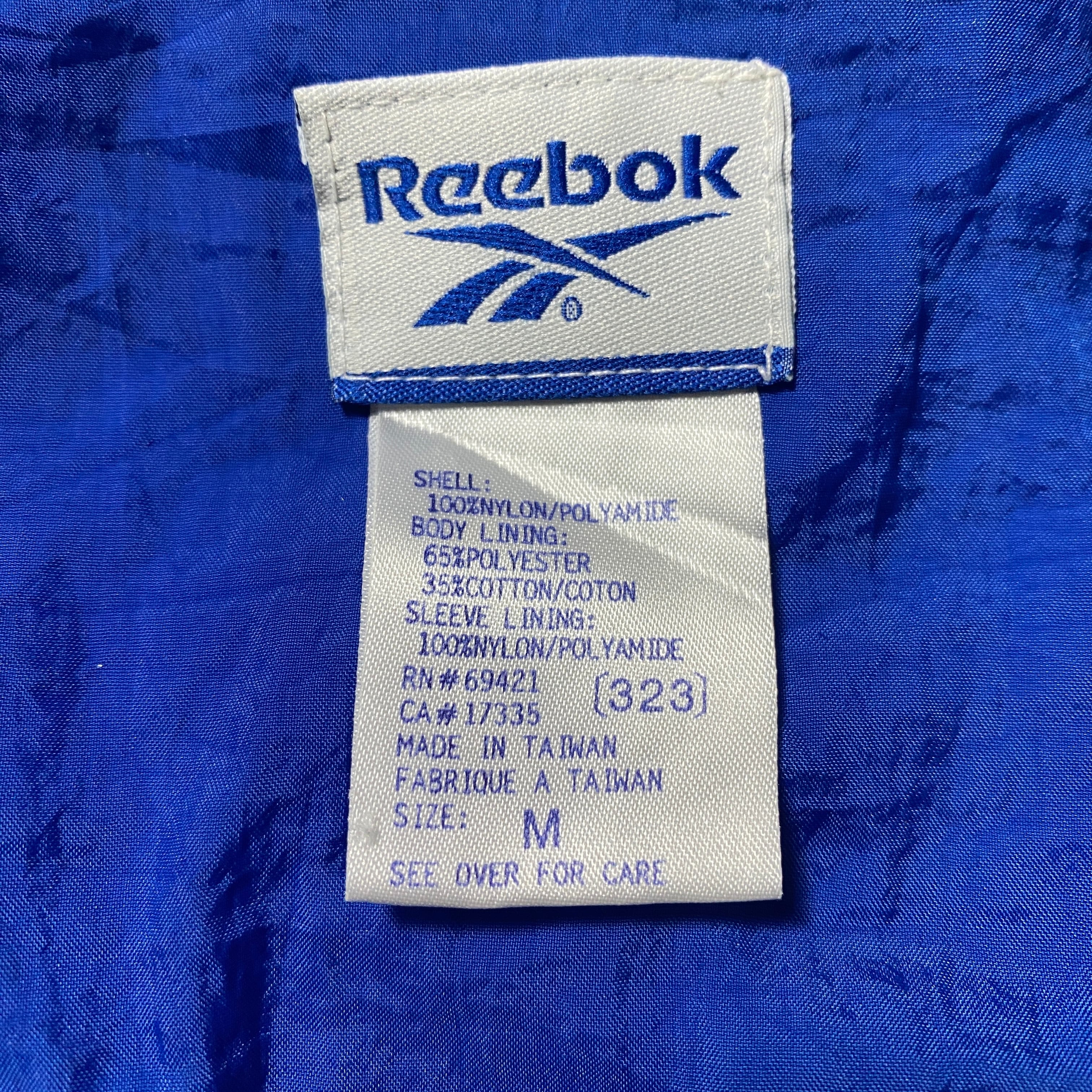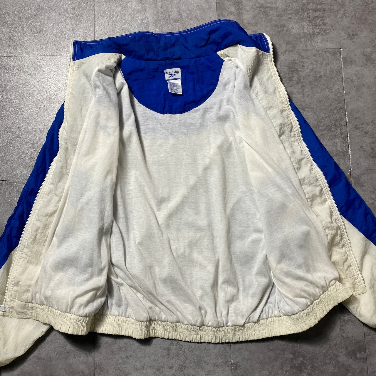 90's Reebok リーボック 刺繍ワンポイント ベクターロゴ ブルー ホワイト ナイロンジャケット