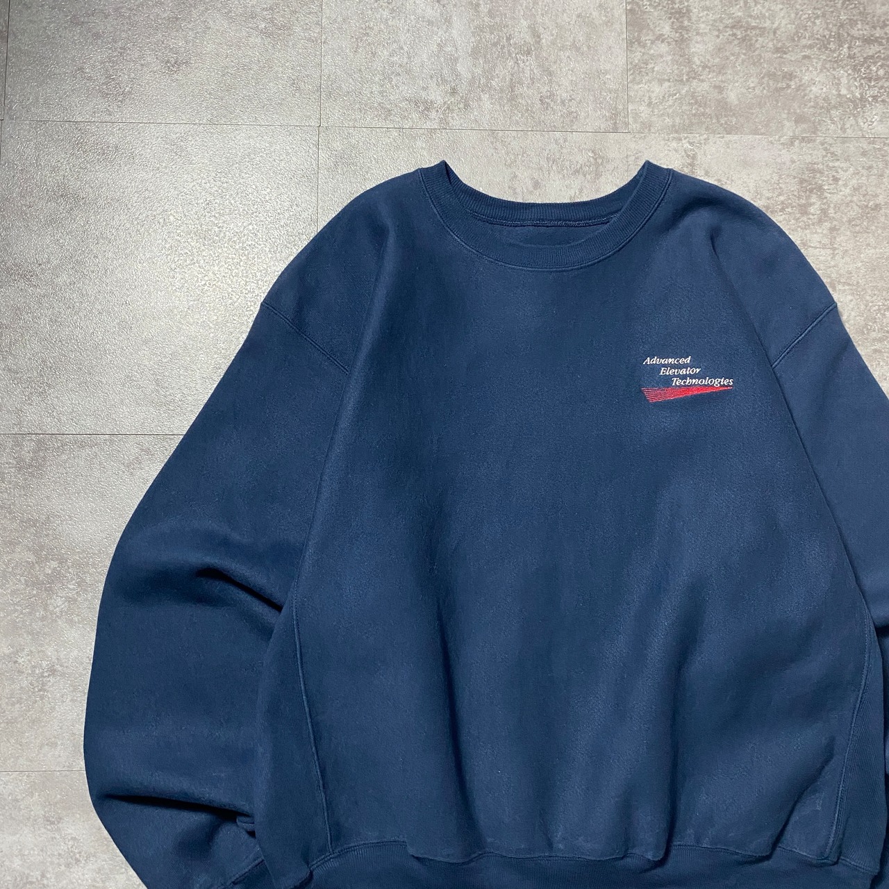 00's Champion チャンピオン プレミアムリバースウィーブ 刺繍ワンポイント 企業ロゴ ネイビー スウェット トレーナー
