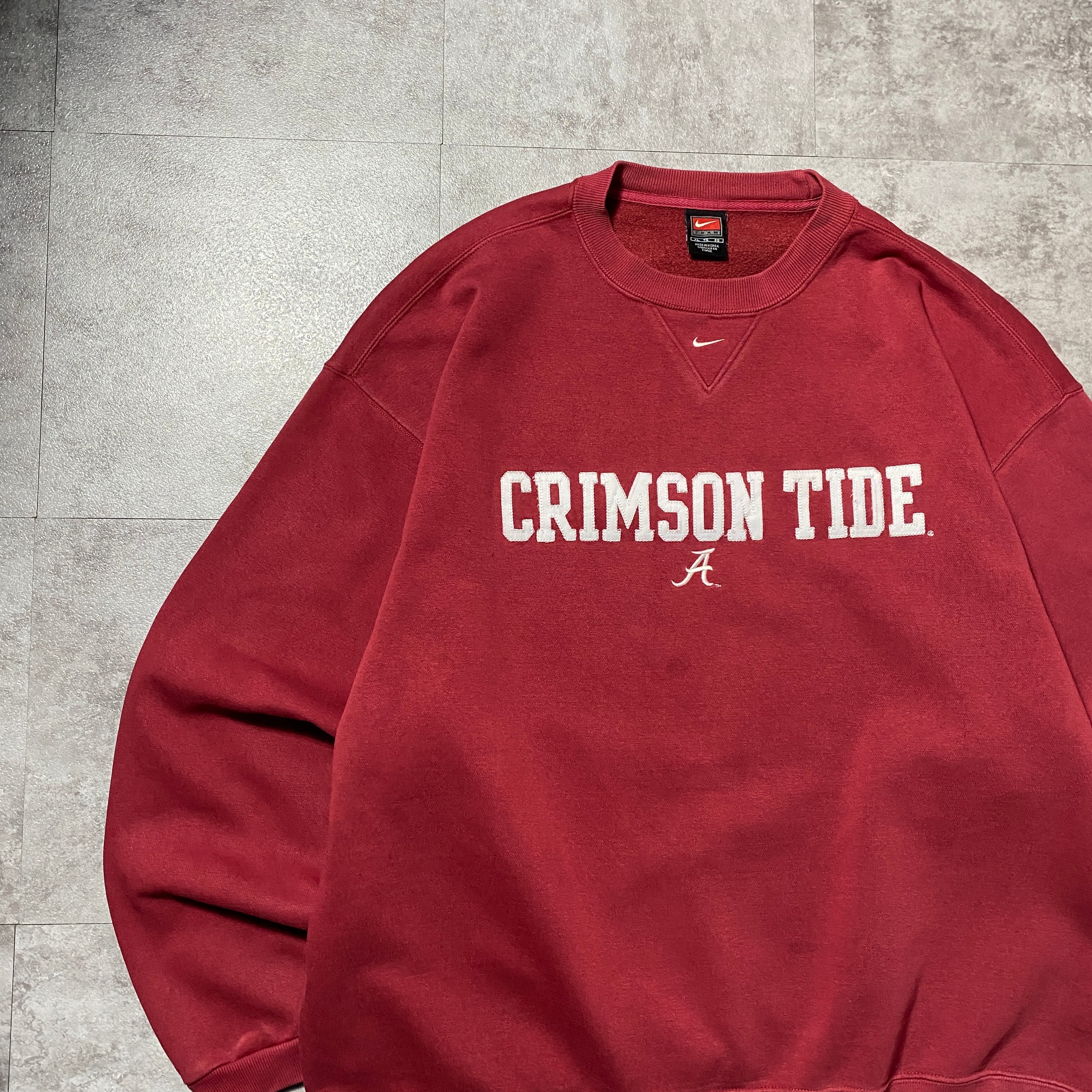 【Size:XL】00's NIKE CRIMSON TIDE ナイキ クリムゾン・タイド カレッジロゴ センタースウォッシュ 刺繍ロゴ 前V ワインレッド スウェット トレーナー