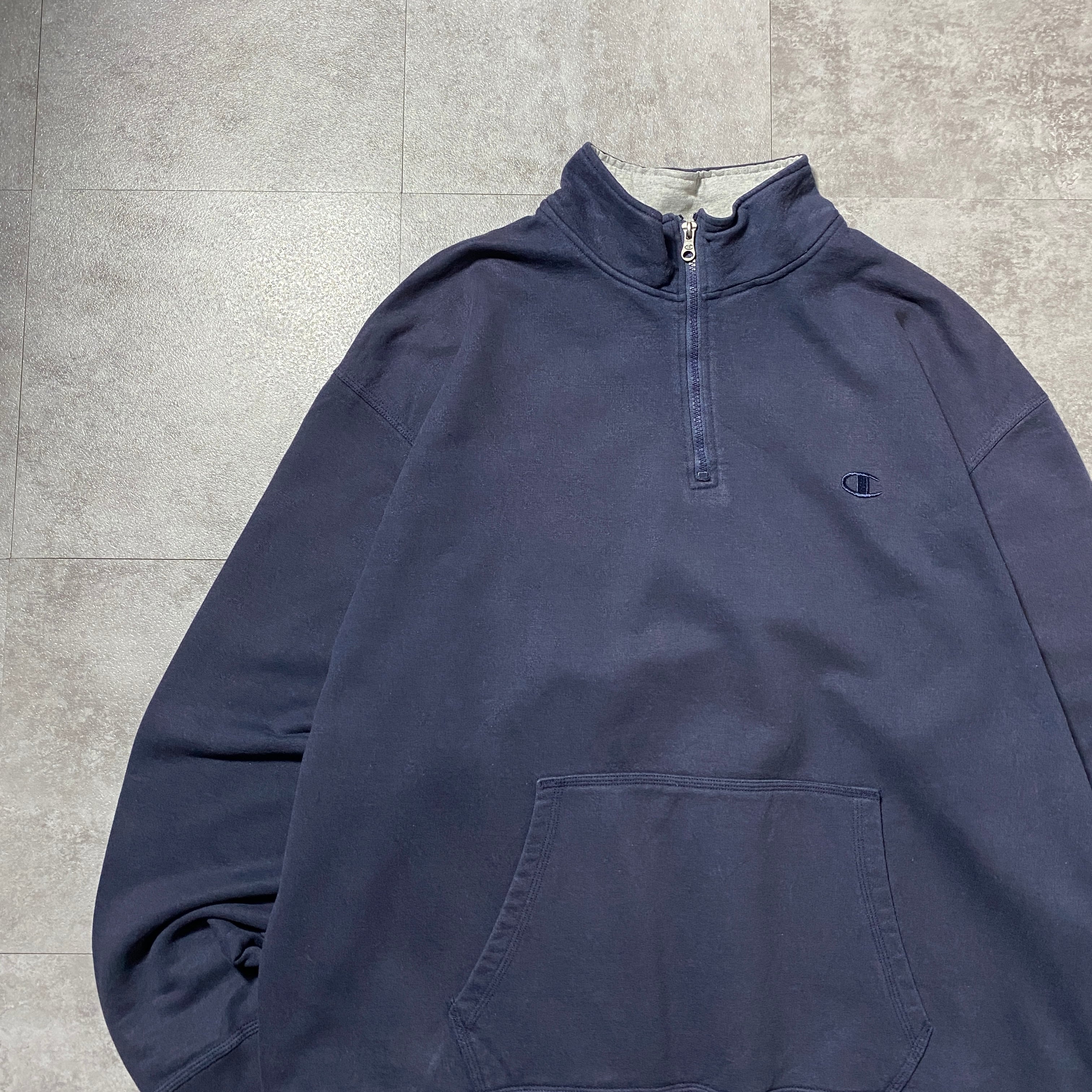 Champion チャンピオン 刺繍ワンポイント ハーフジップ ネイビー スウェット トレーナー