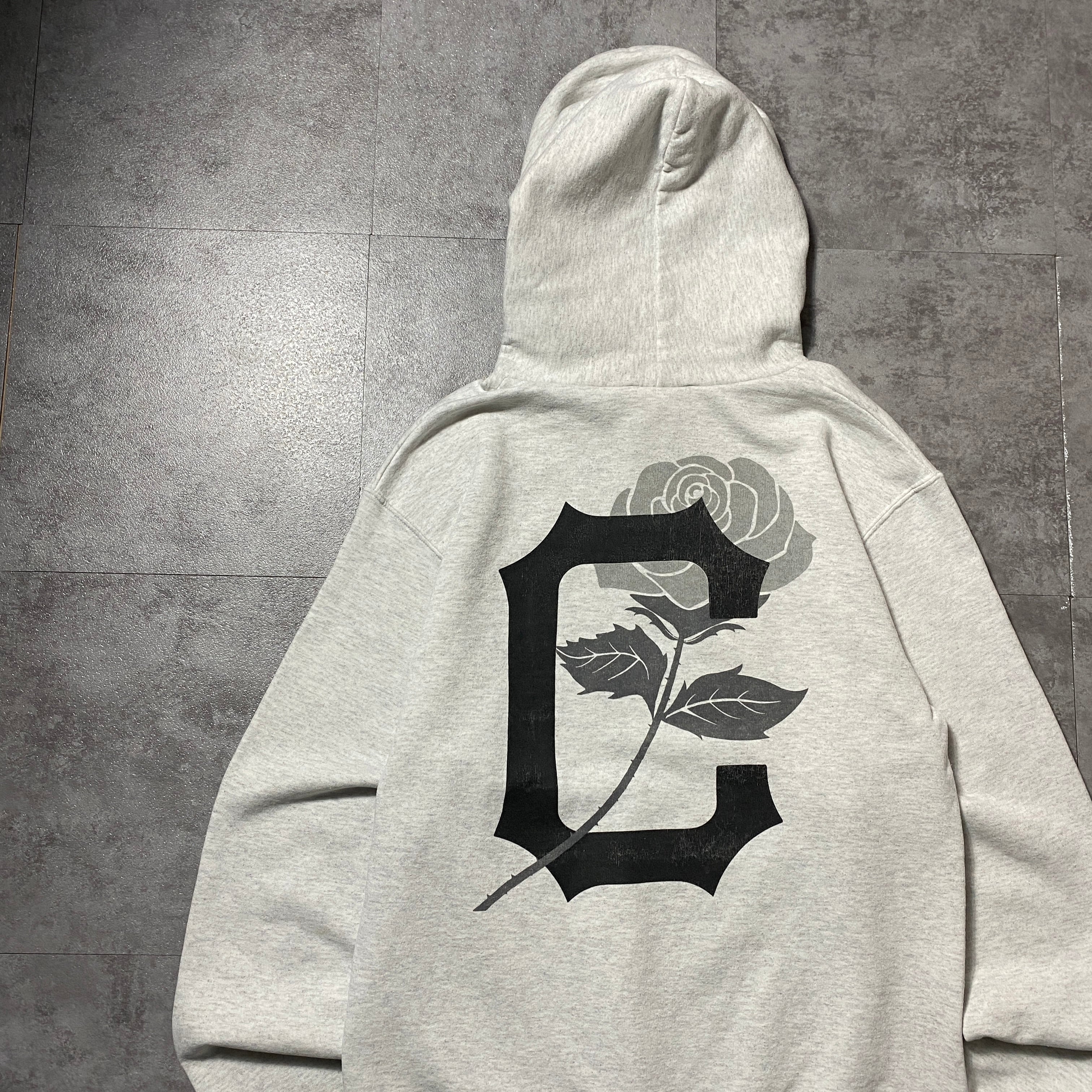 00's Champion チャンピオン Cロゴ×バラ バックプリント カレッジテイスト オールドイングリッシュ グレー スウェット パーカー