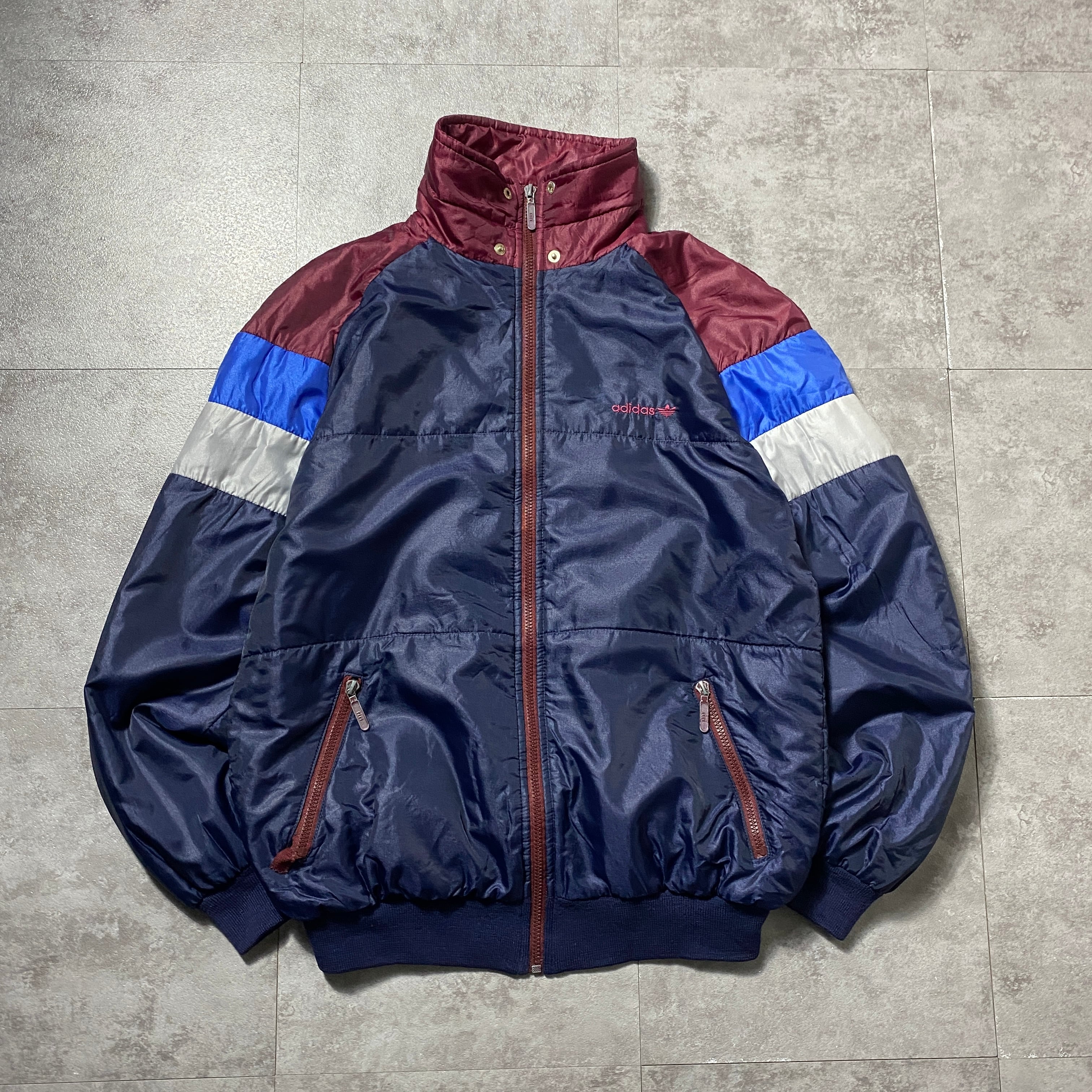 【イタリア製】超希少70's-80's Euro adidas ユーロアディダス ririジップ(スイスの老舗高級ジッパーメーカー) トレフォイル 刺繍ロゴ リブ付き ナイロンジャケット