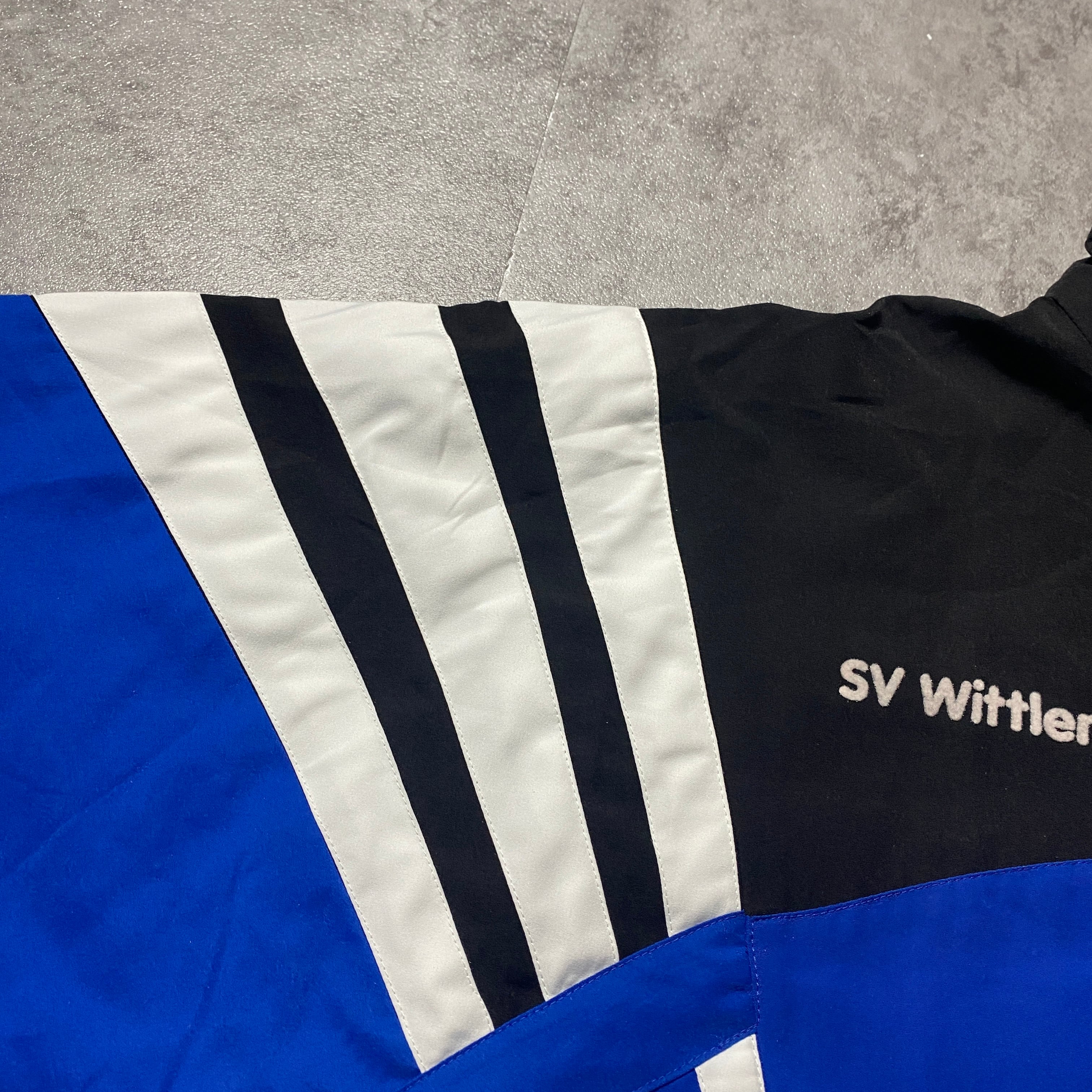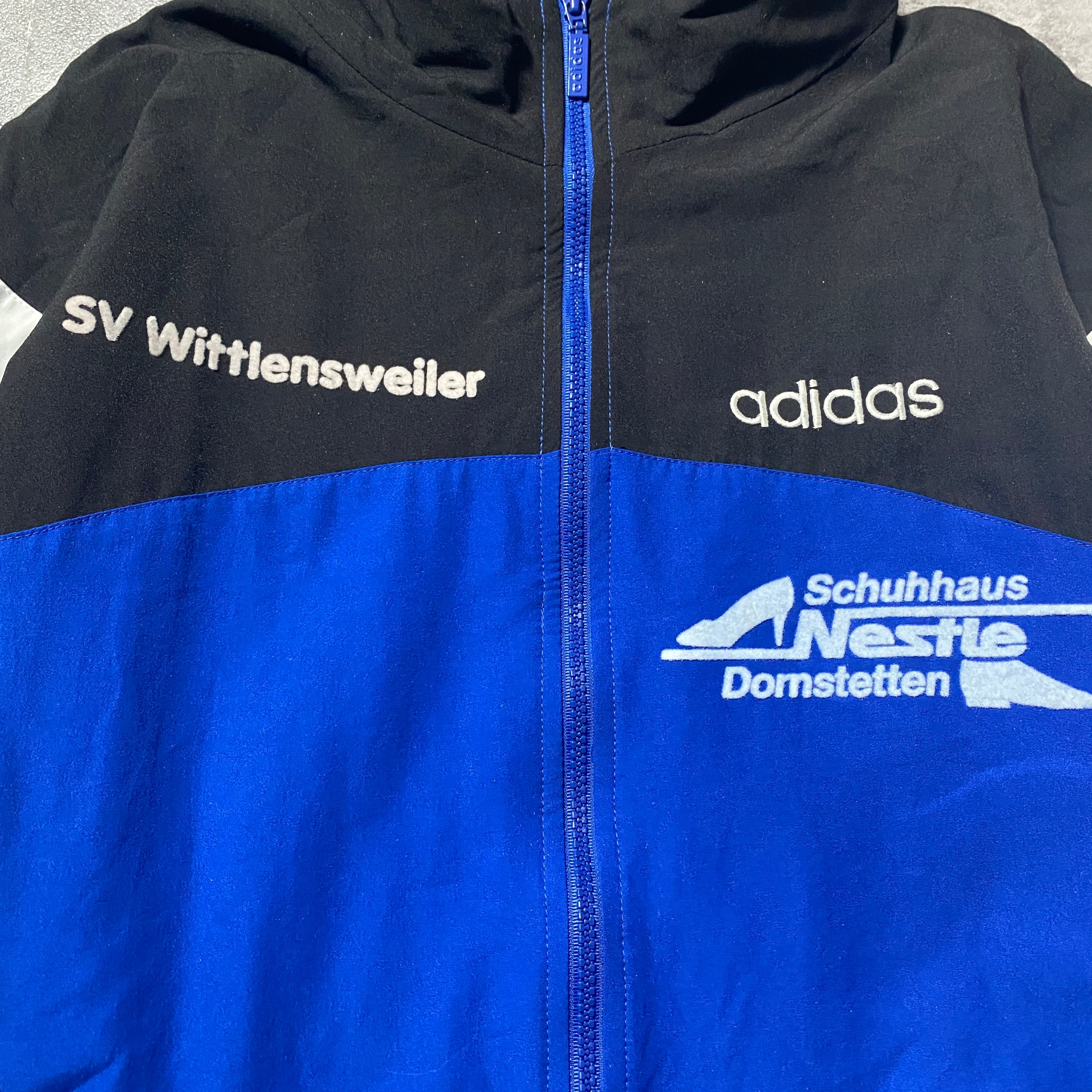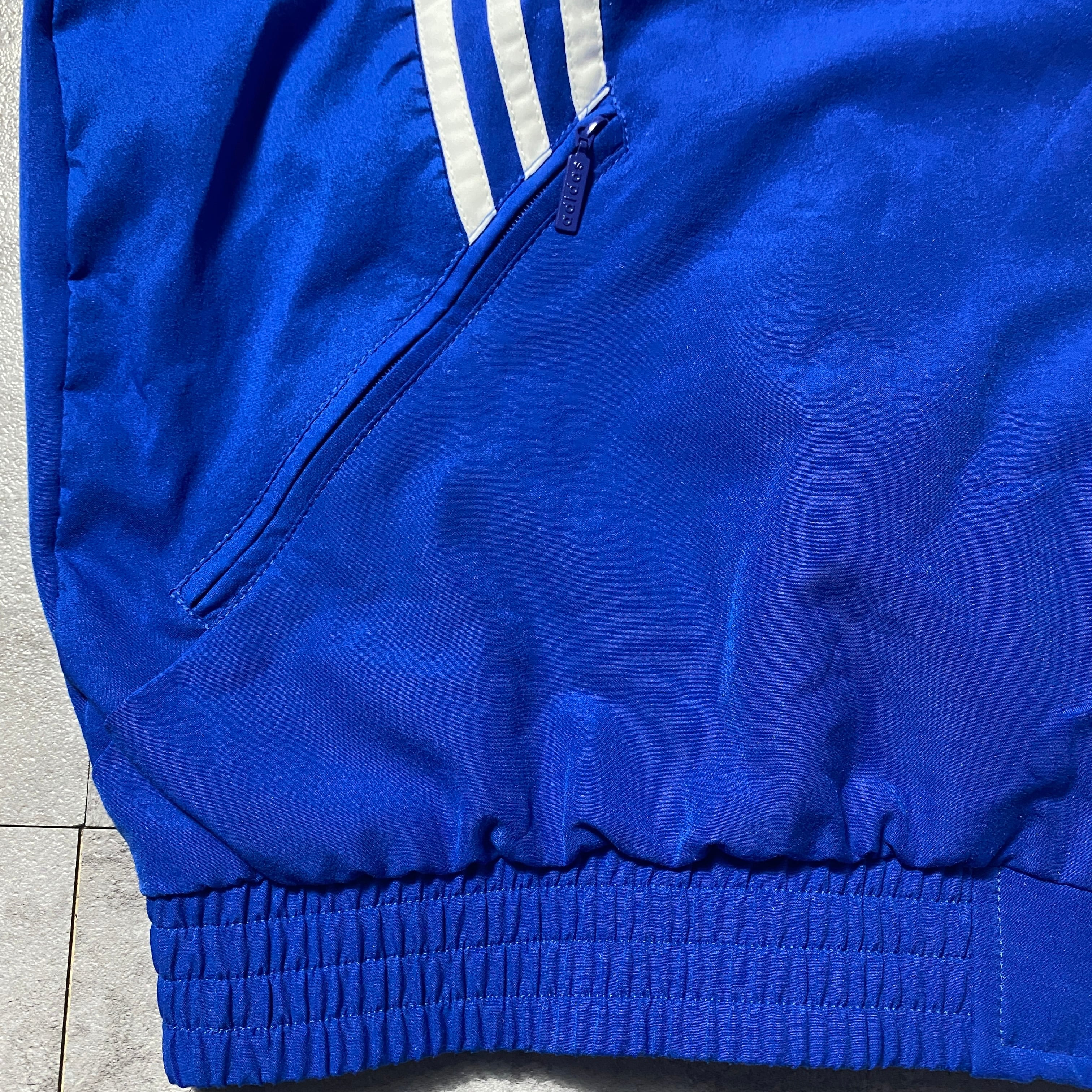 【Size:XL】90's-00's adidas アディダス 刺繍ロゴ フェルト企業ロゴ ブルー ナイロンジャケット【Size:XL】90's adidas アディダス 刺繍ロゴ フェルト企業ロゴ ブルー ナイロンジャケット