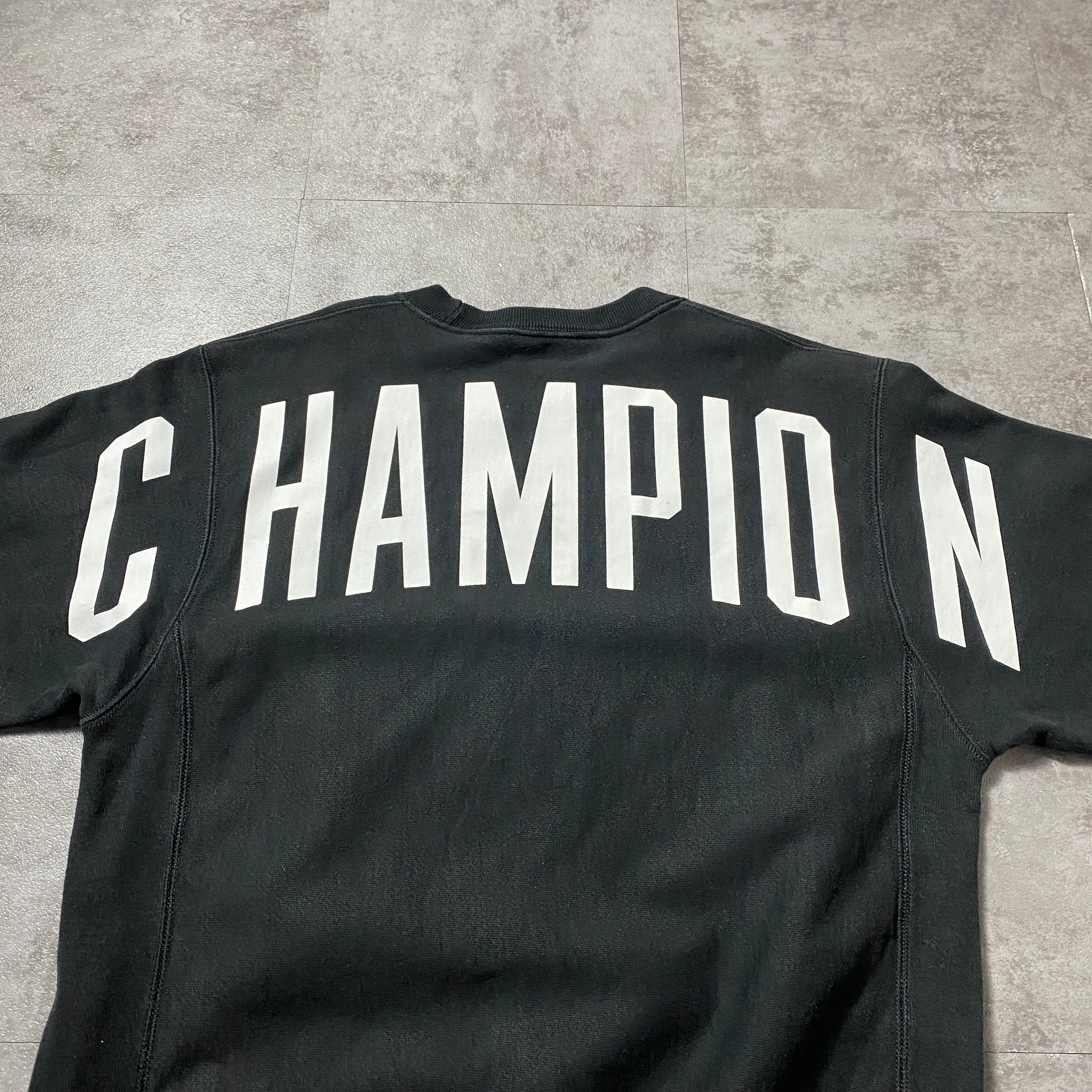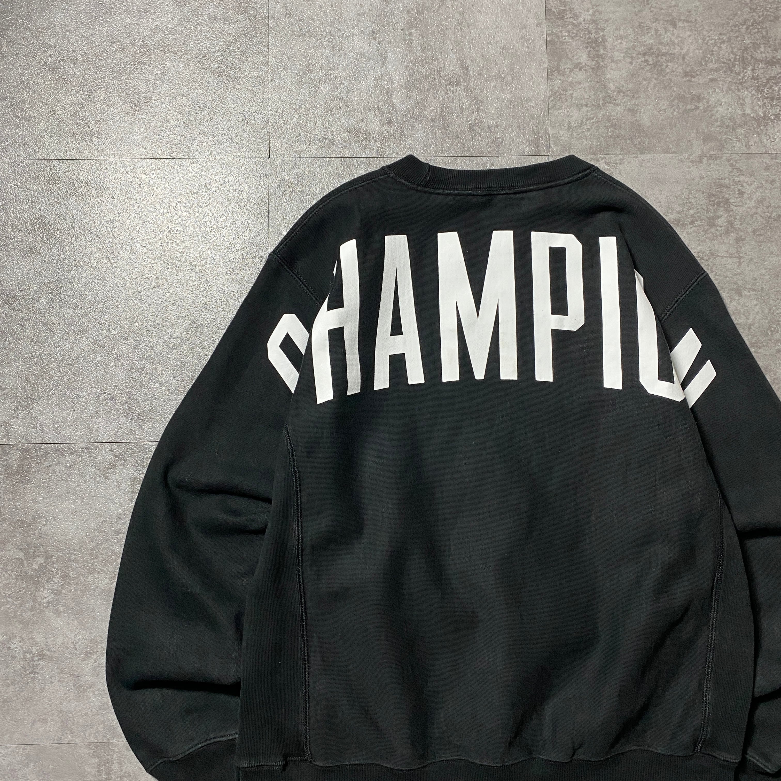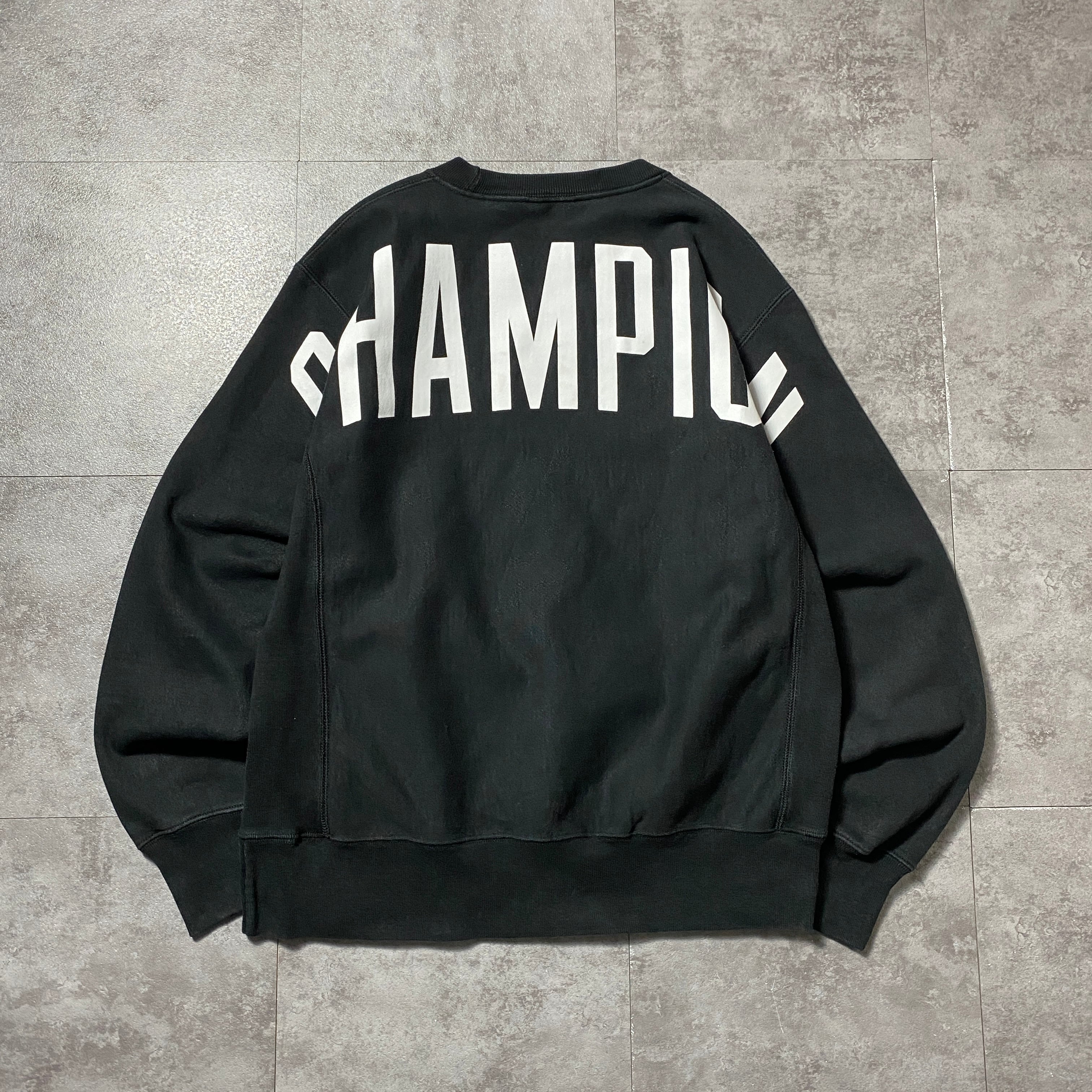 00's Champion チャンピオン リバースウィーブ 刺繍ワンポイント バックプリント ブラック 黒 スウェット トレーナー