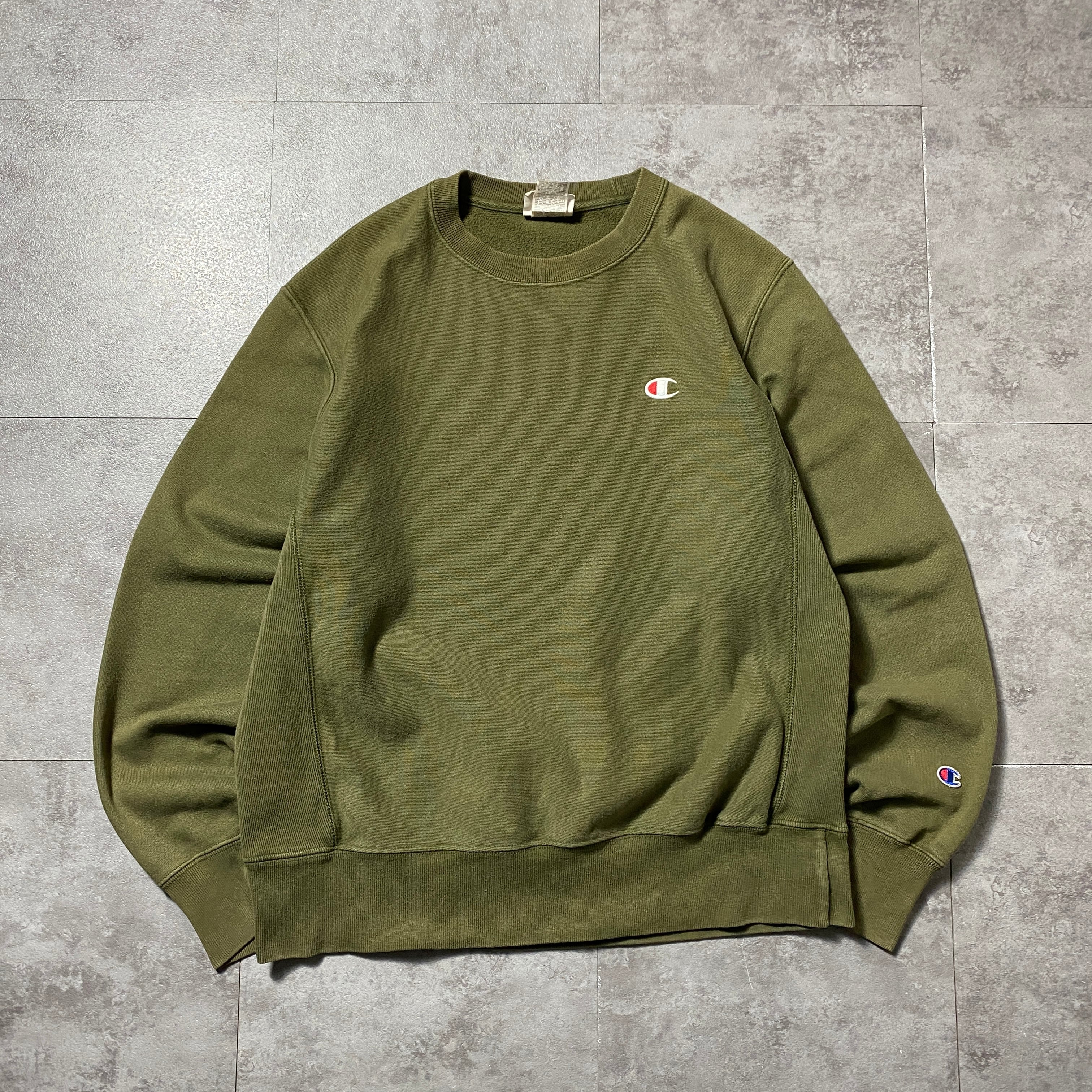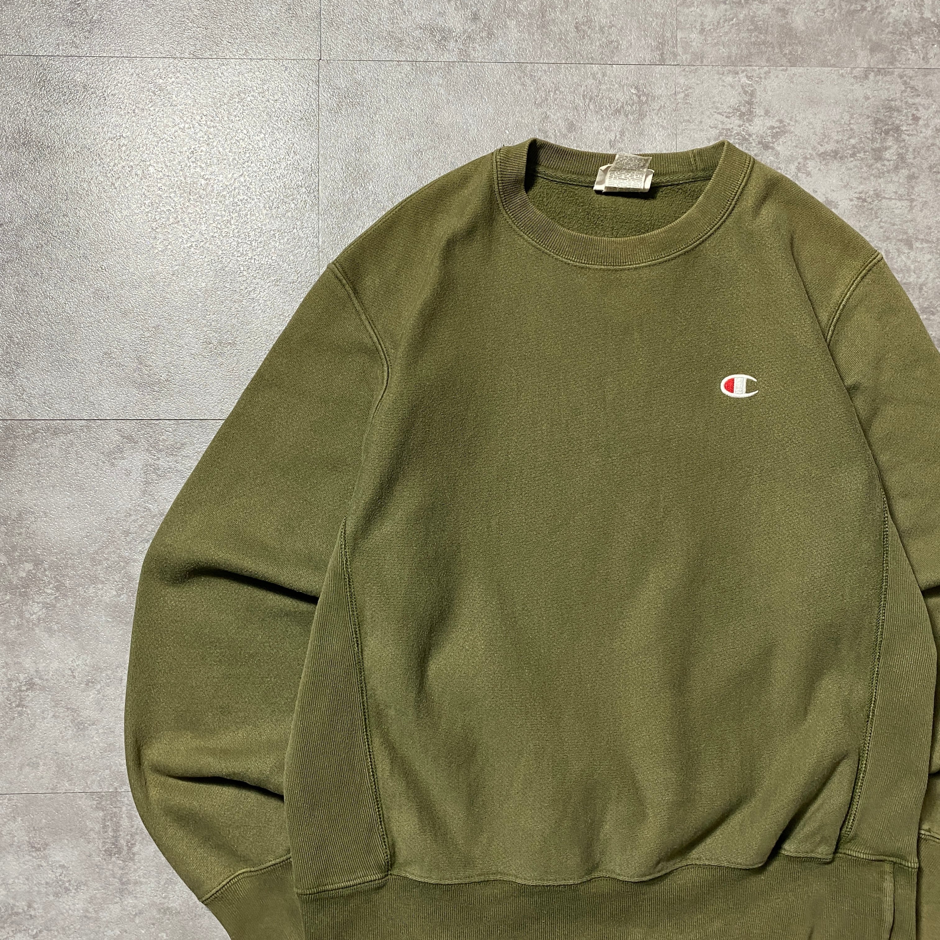 00's Champion チャンピオン リバースウィーブ 刺繍ワンポイント カーキグリーン スウェット トレーナー