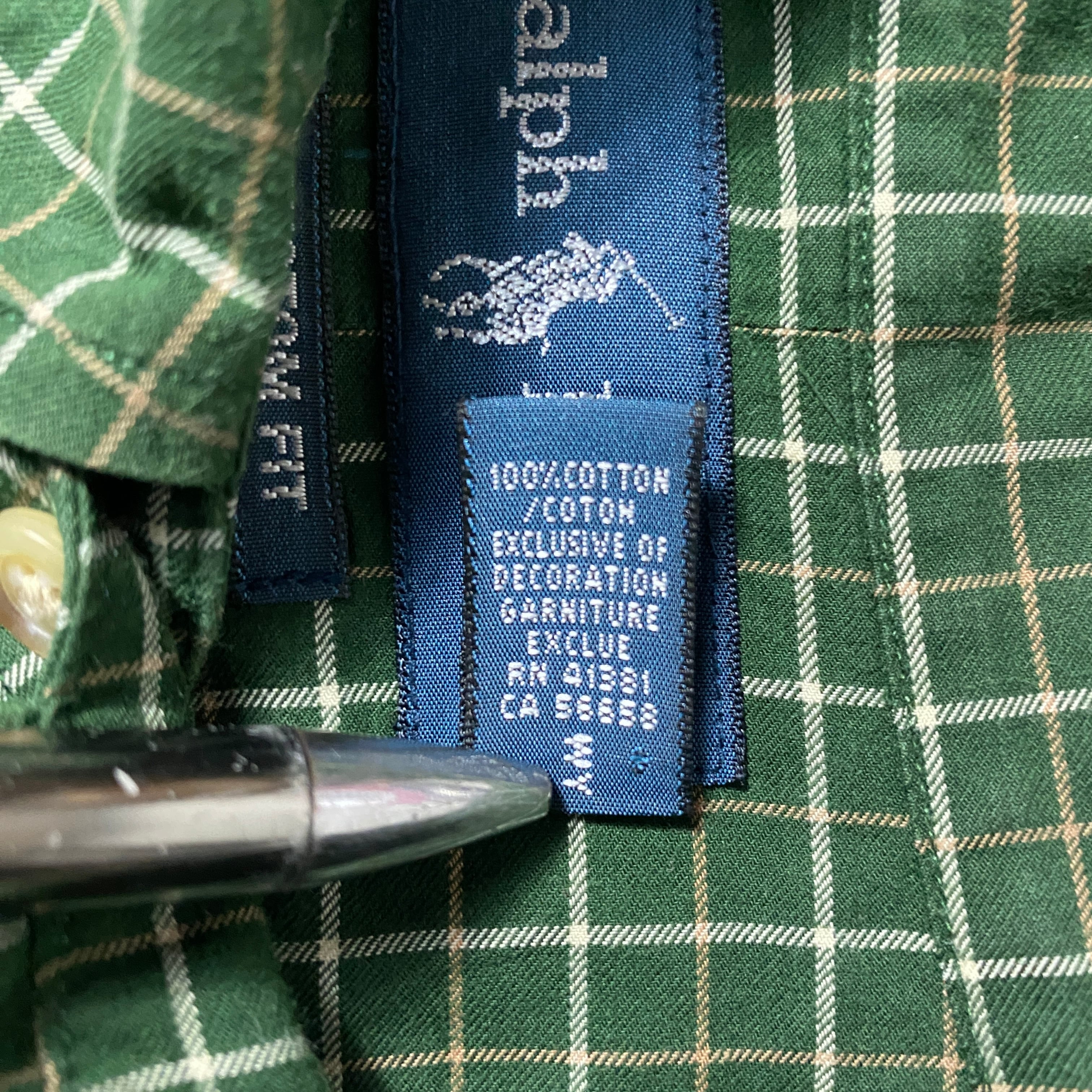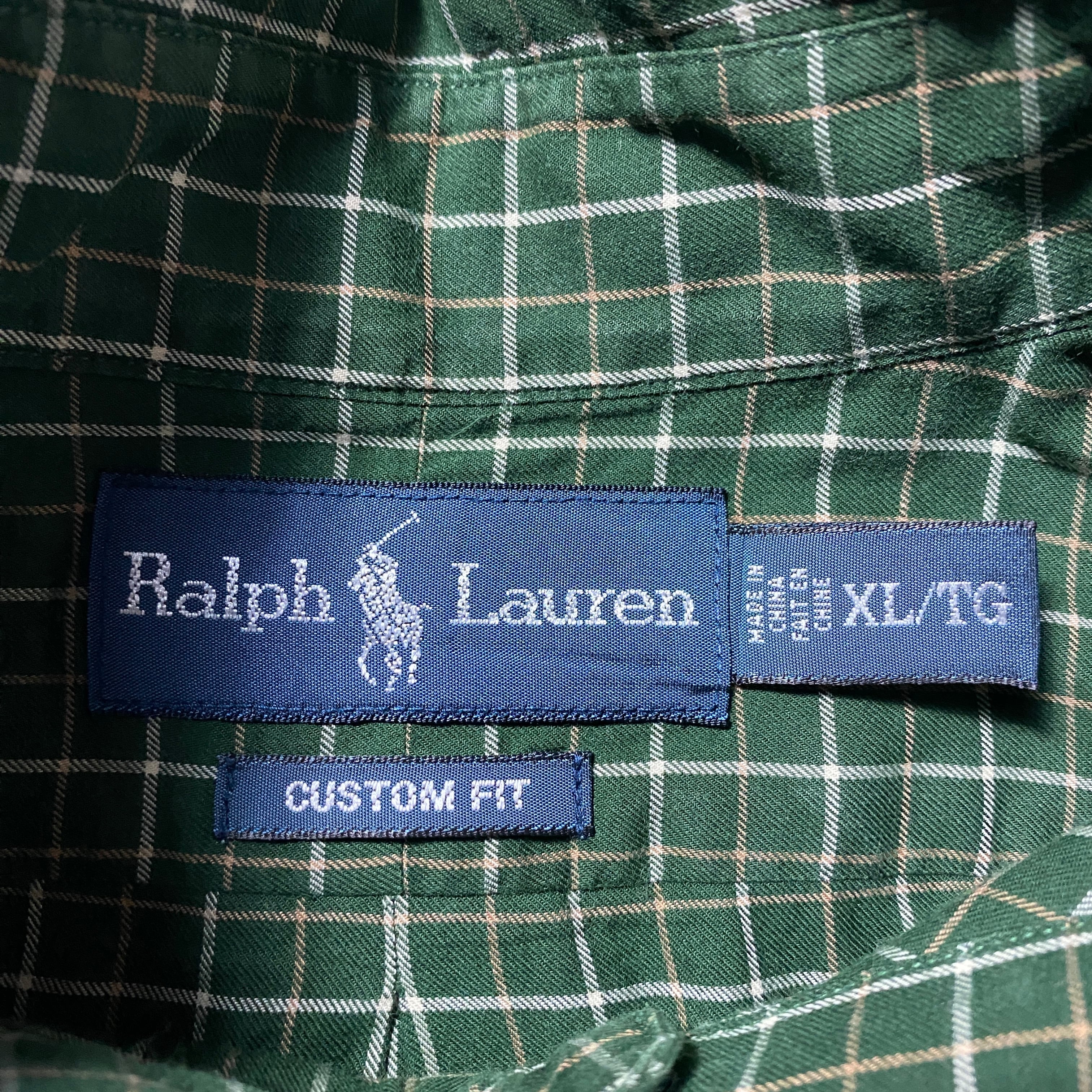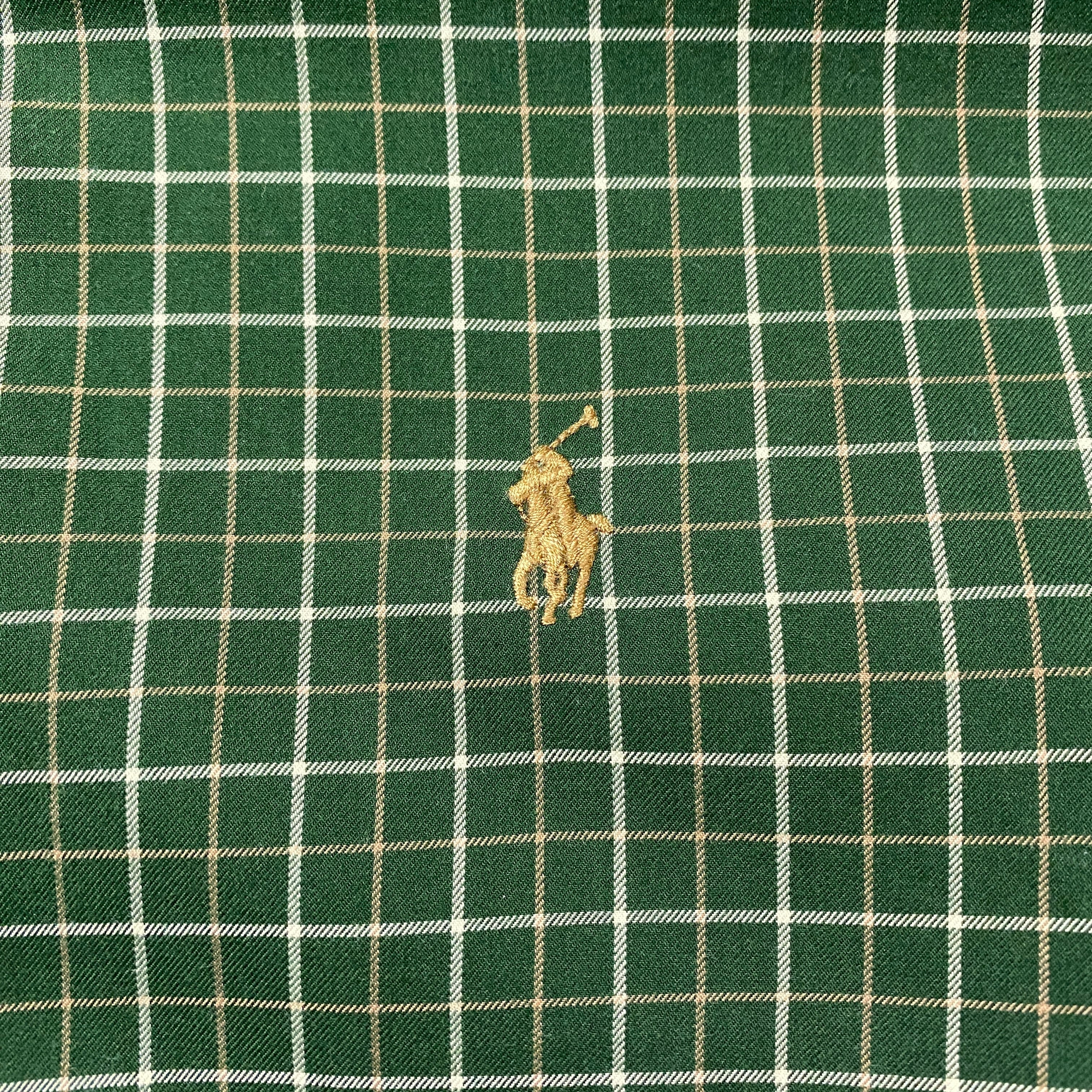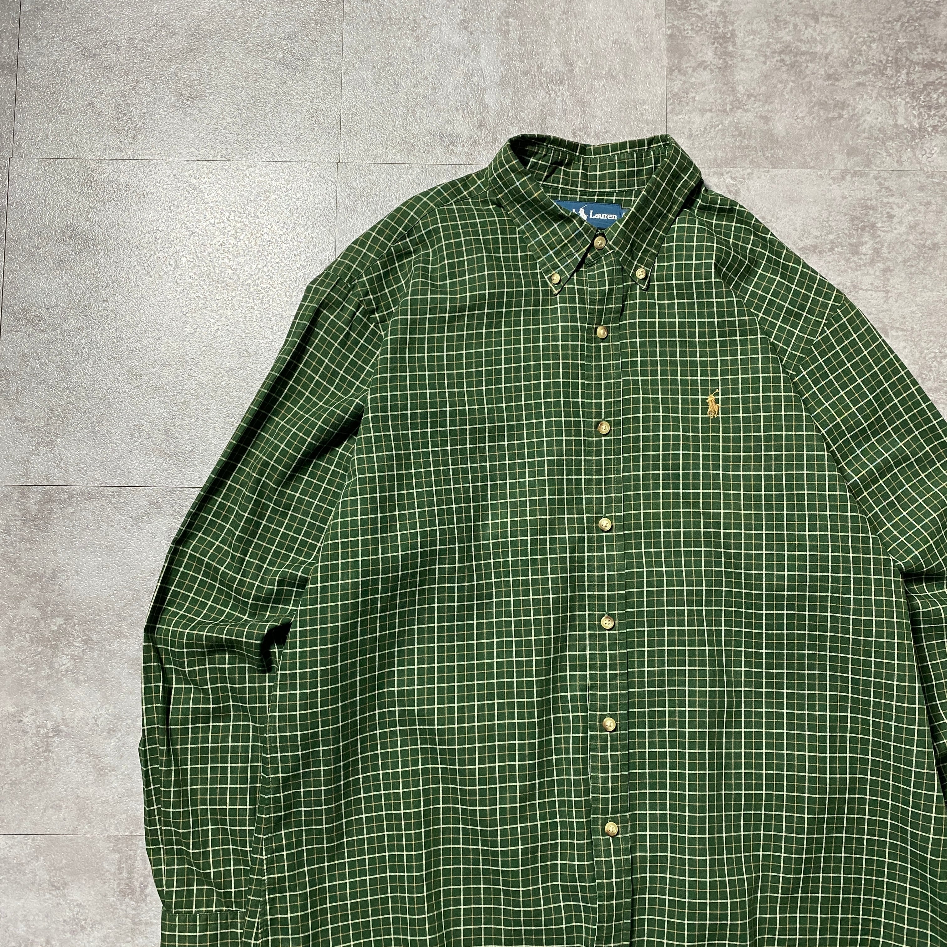 【Size:XL】90's-00's Ralph Lauren ラルフローレン 刺繍ロゴ ポニー グリーン グラフチェック 総柄 ボタンダウンシャツ