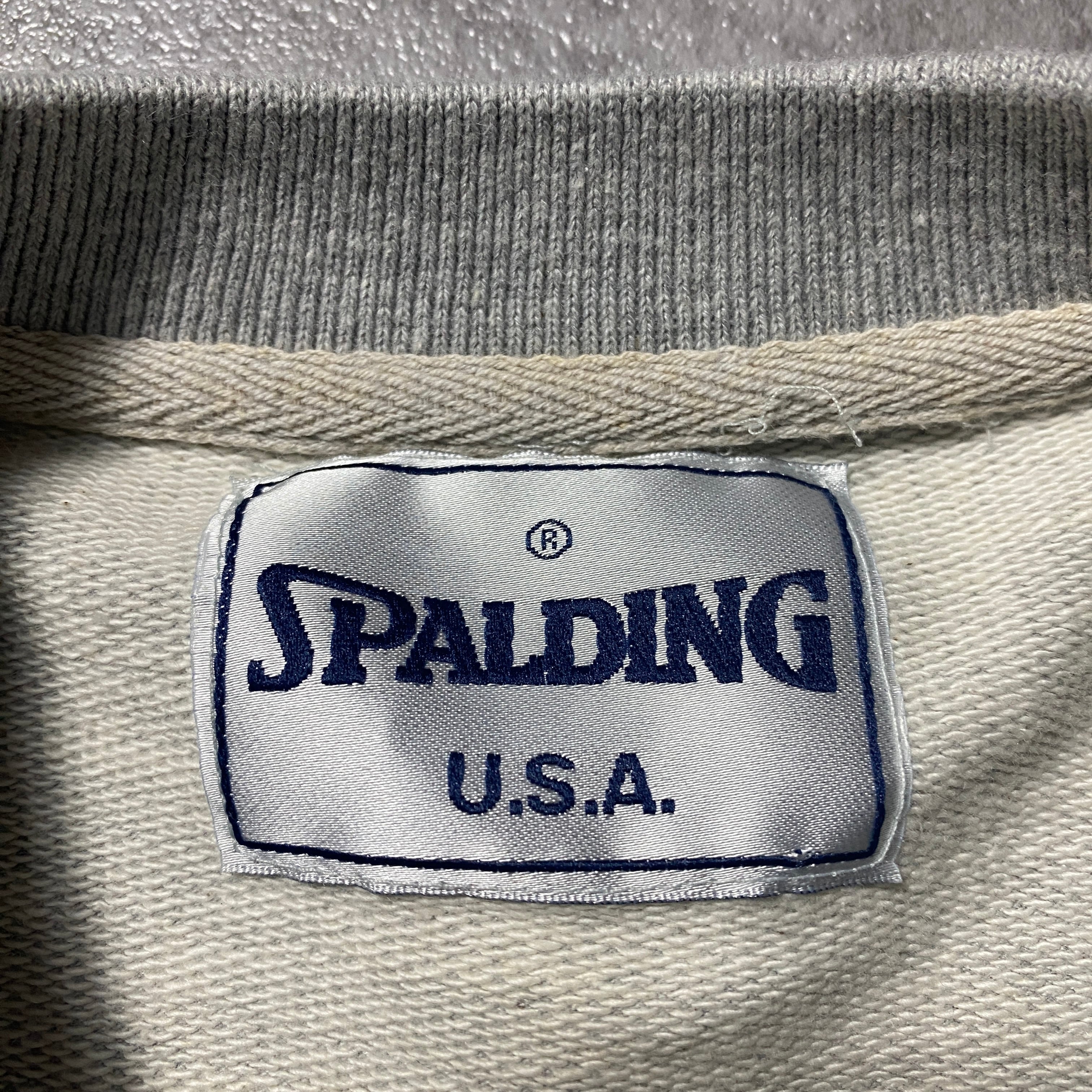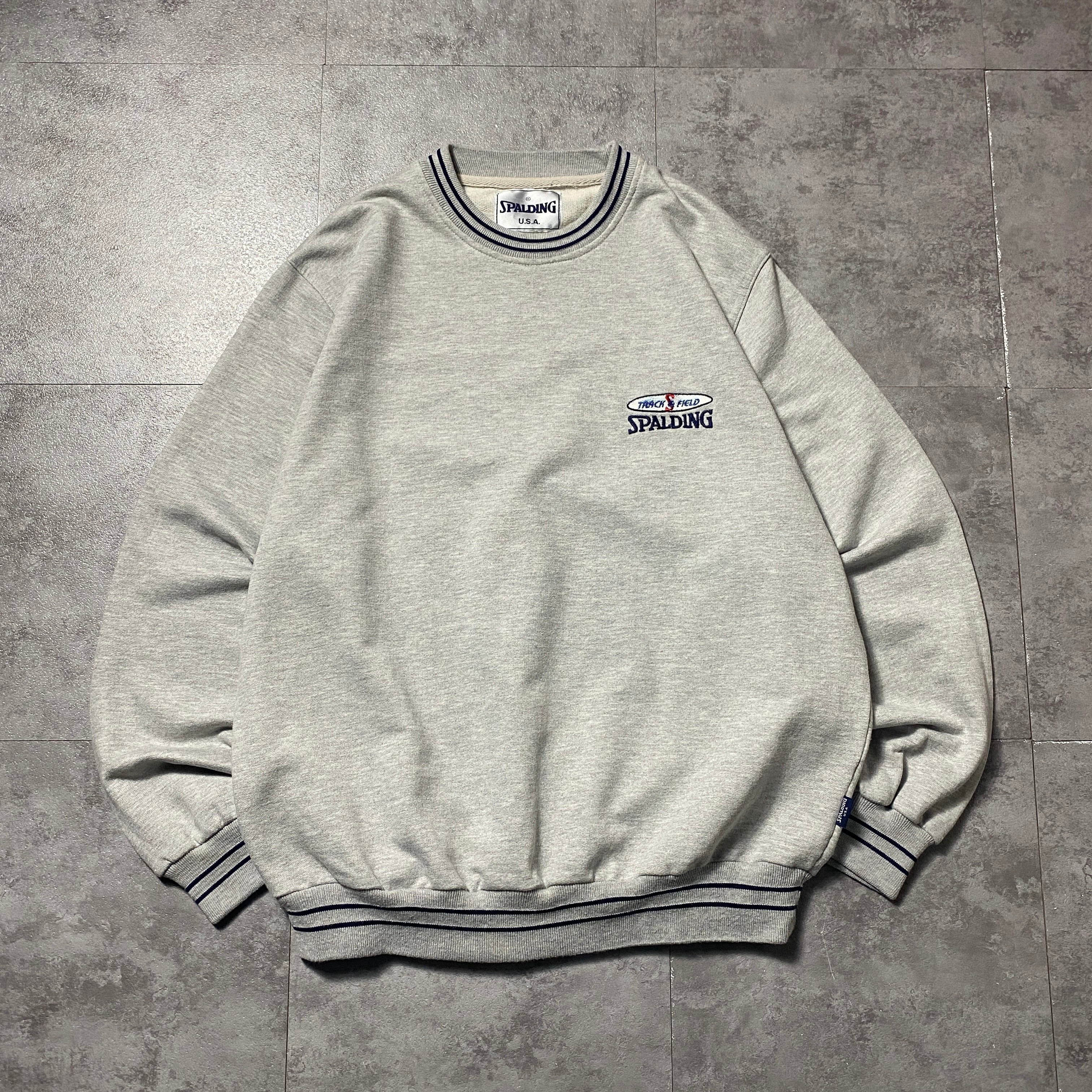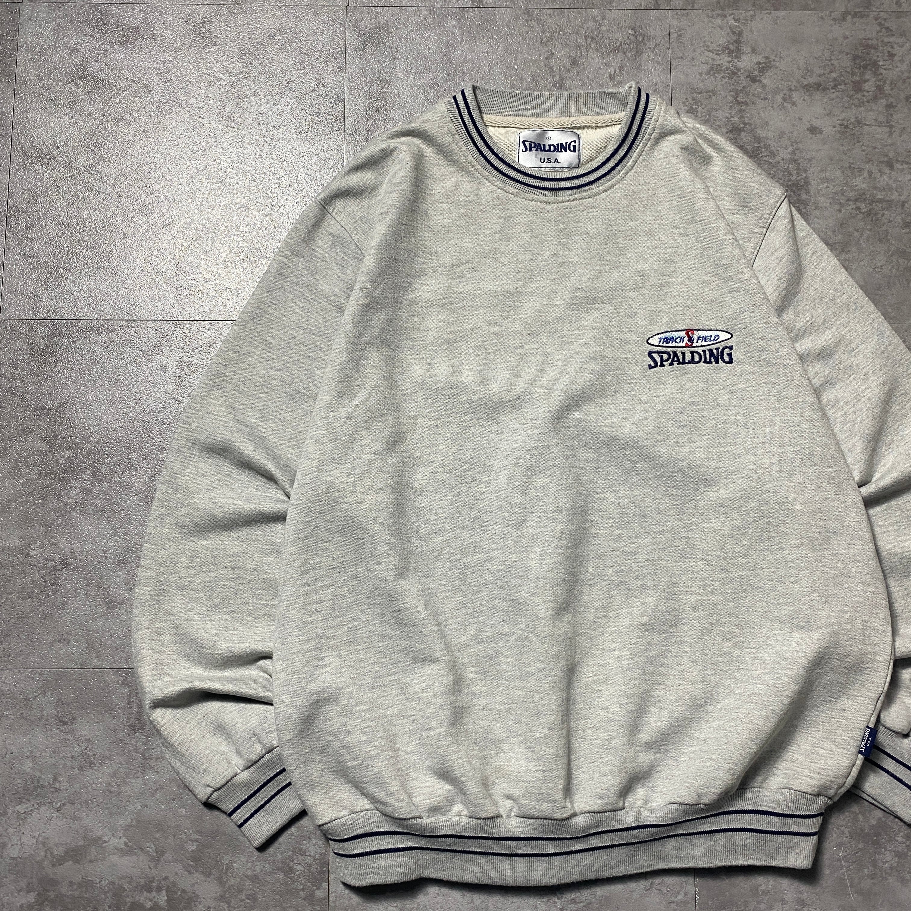 90's-00's SPALDING スポルディング 刺繍ワンポイント ラインリブ グレー スウェット トレーナー