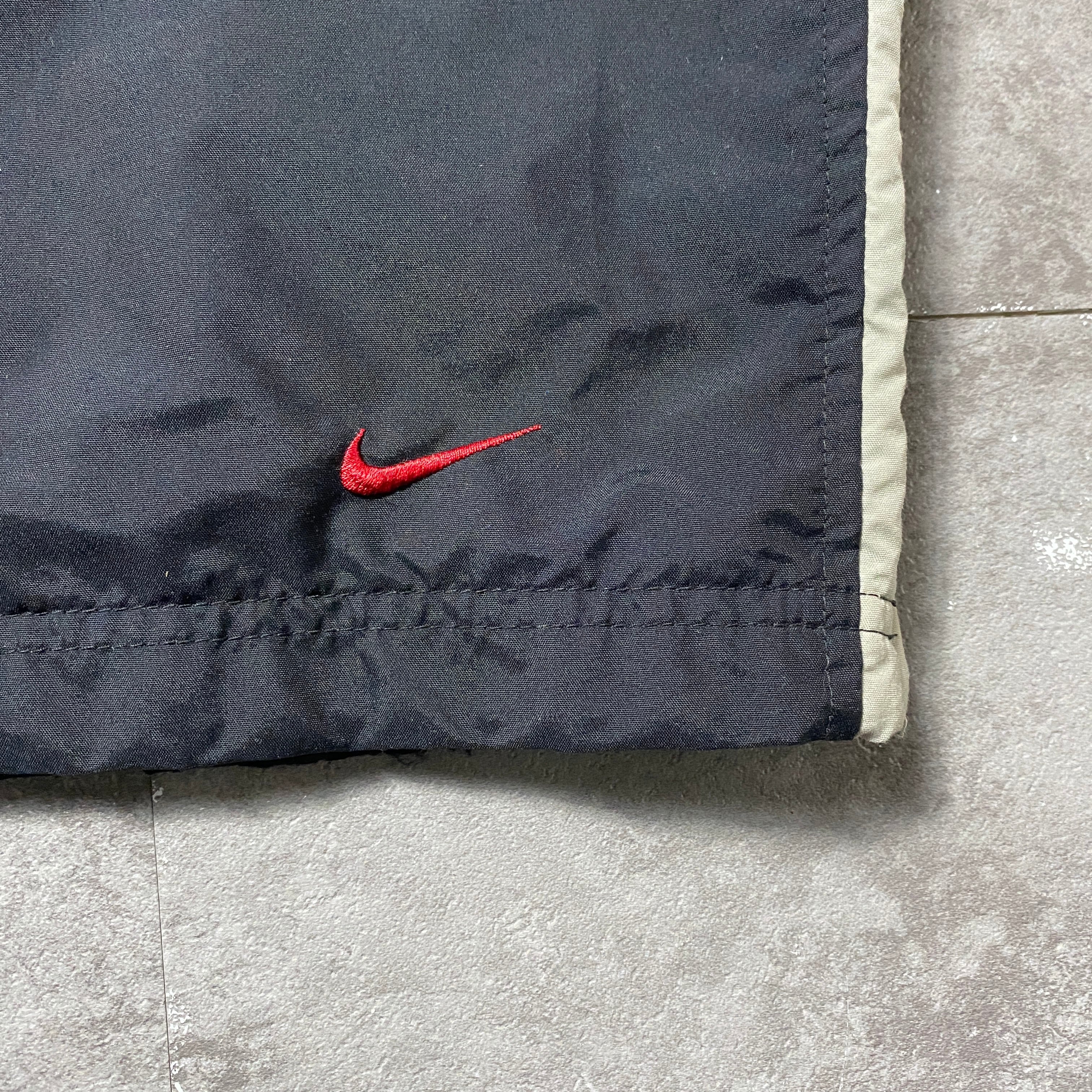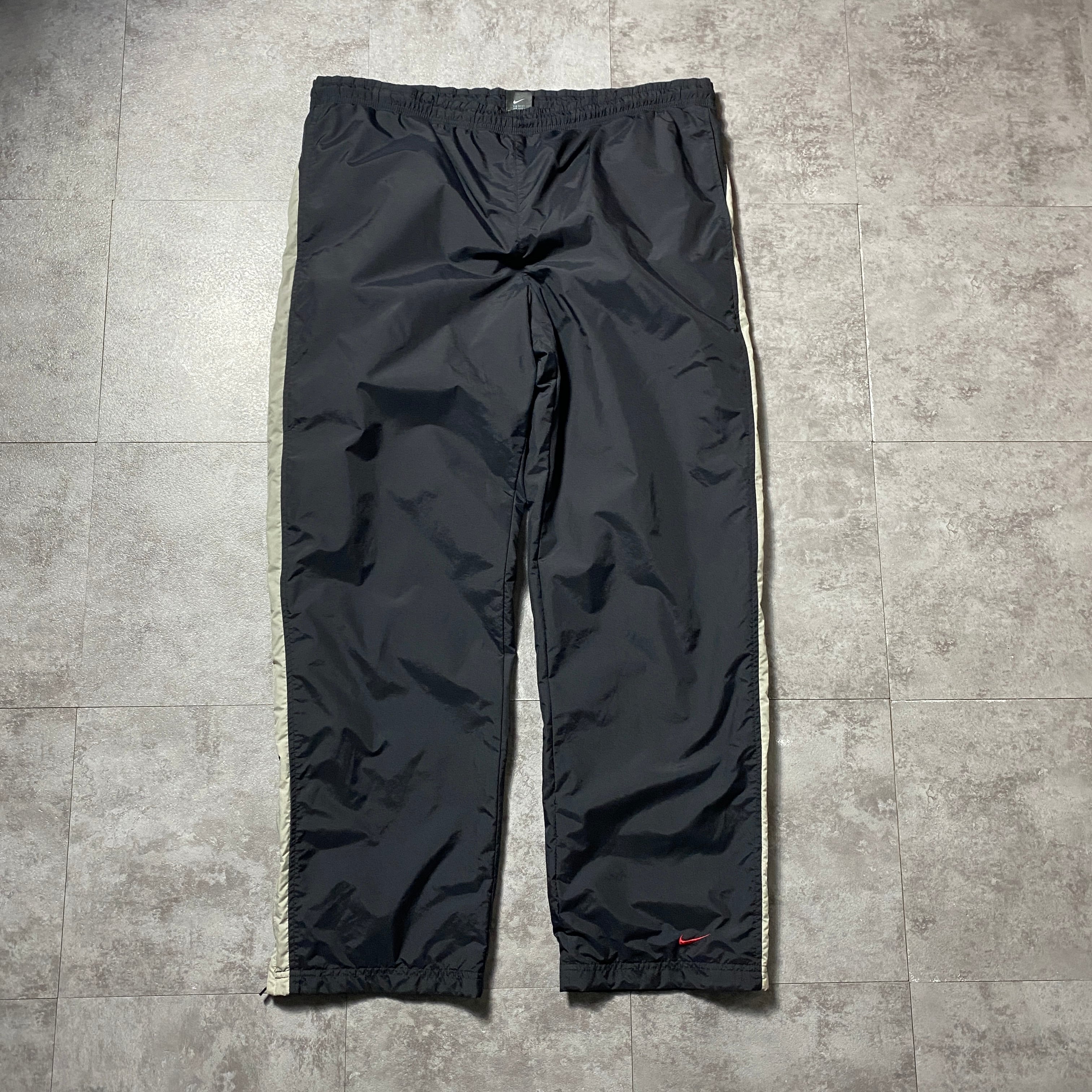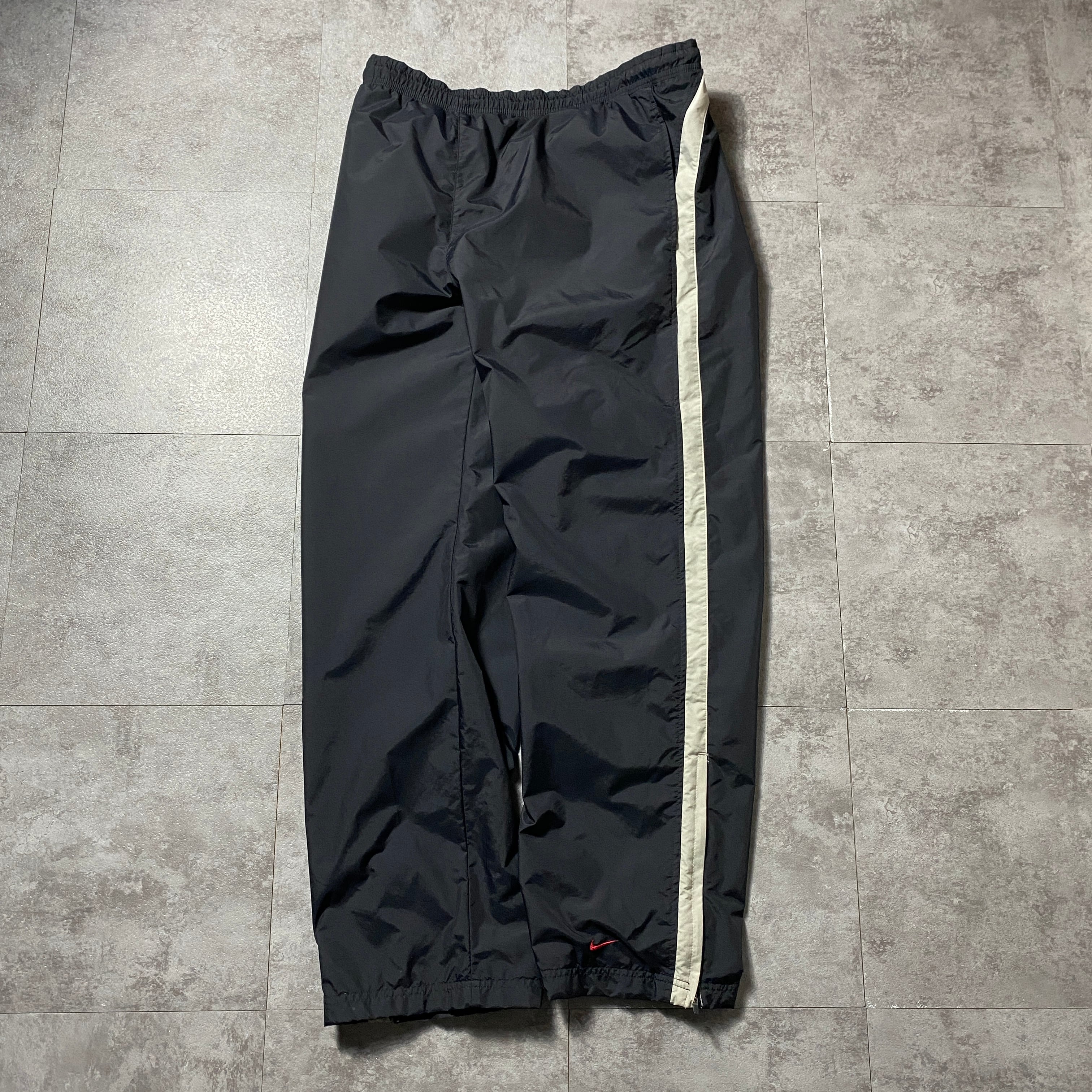 00's NIKE ナイキ スウォッシュ 刺繍ロゴ サイドライン ウエストゴム ナイロン ブラック トラックパンツ