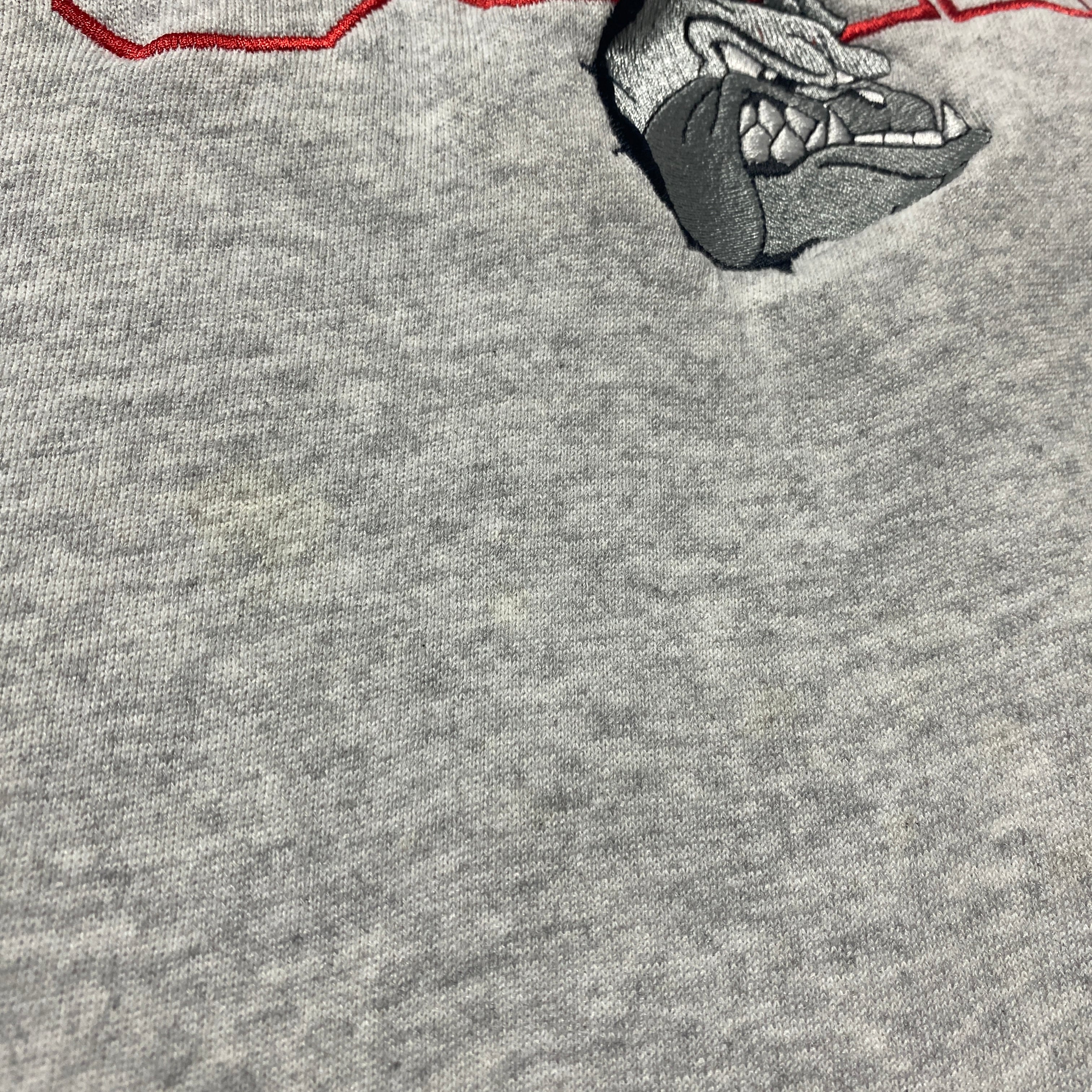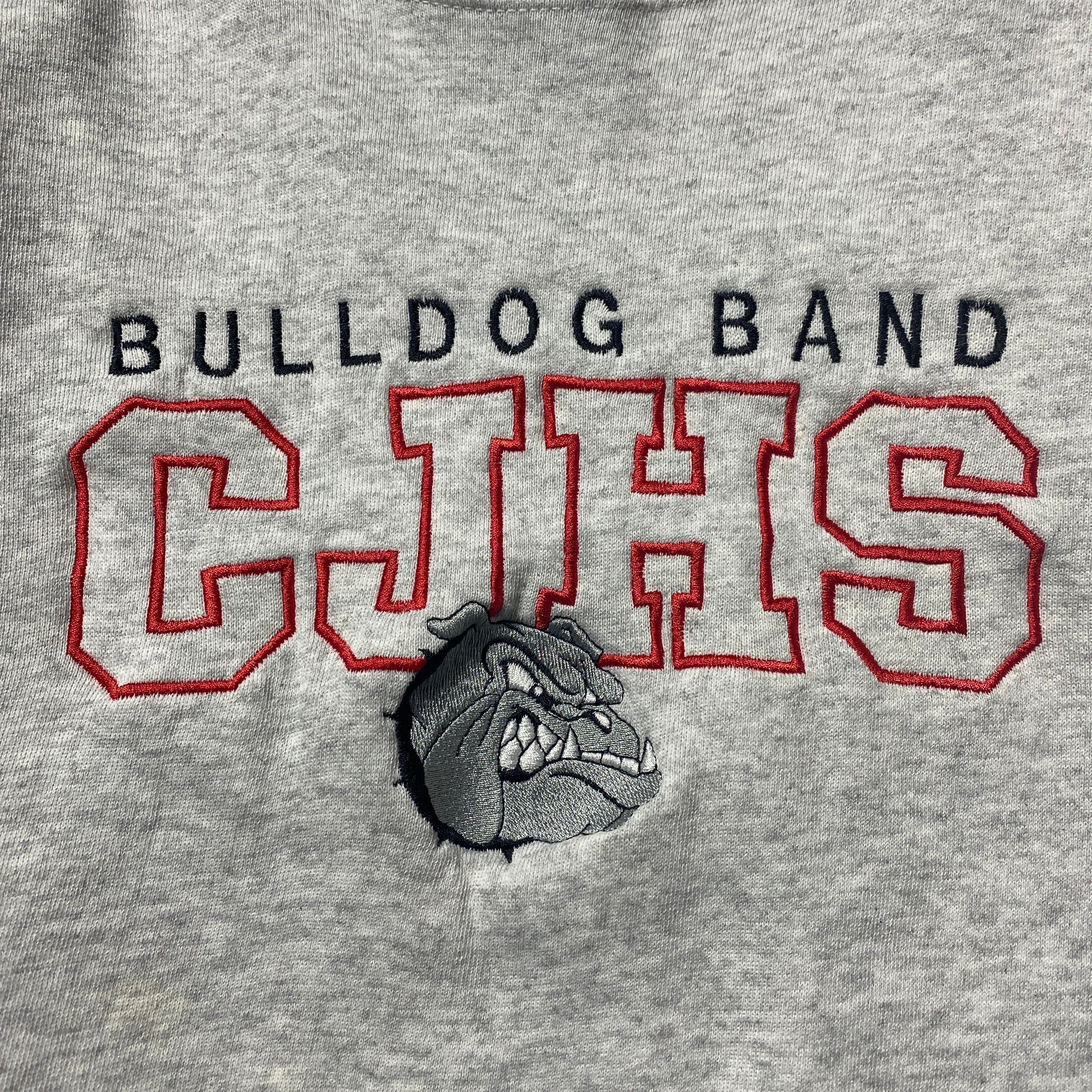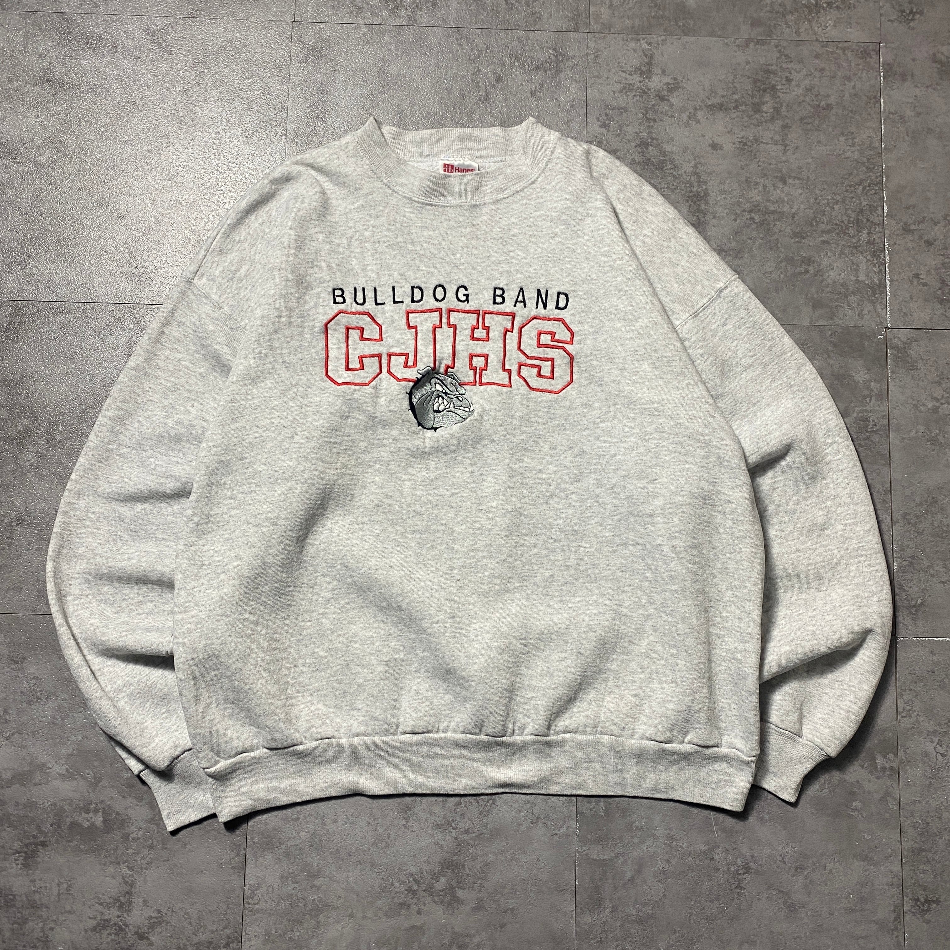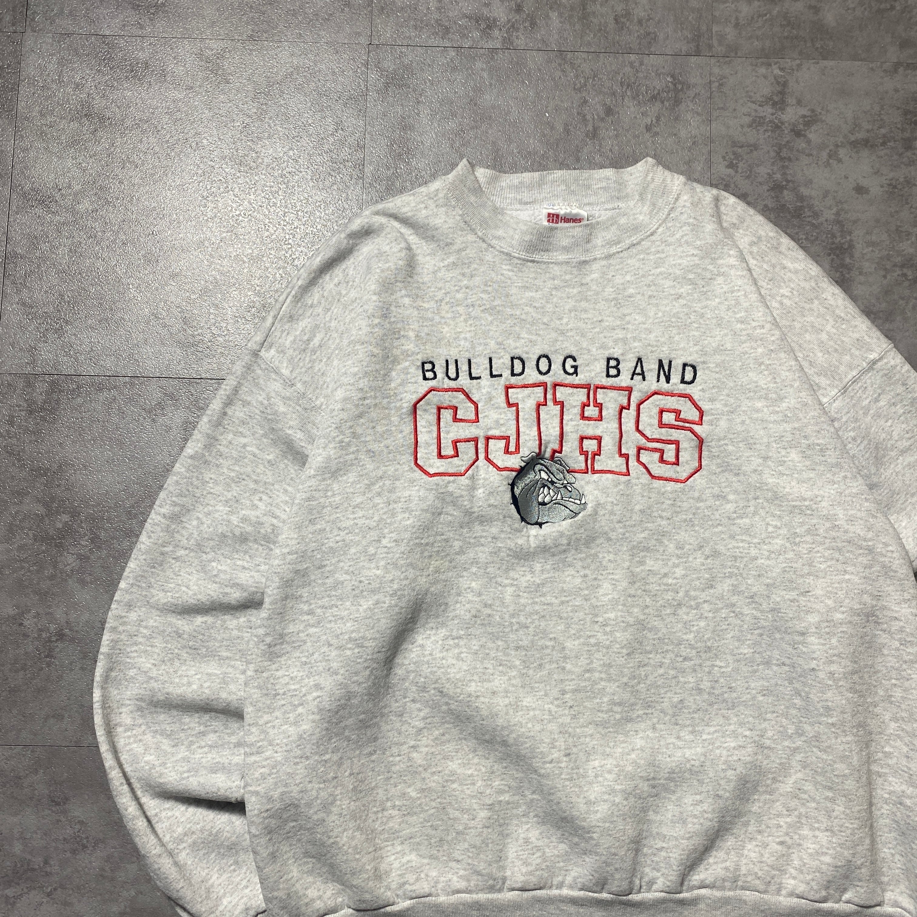 【USA製】90's Hanes Bulldog Band ヘインズ ブルドッグバンド カレッジテイスト 刺繍ロゴ XLサイズ グレー スウェット トレーナー