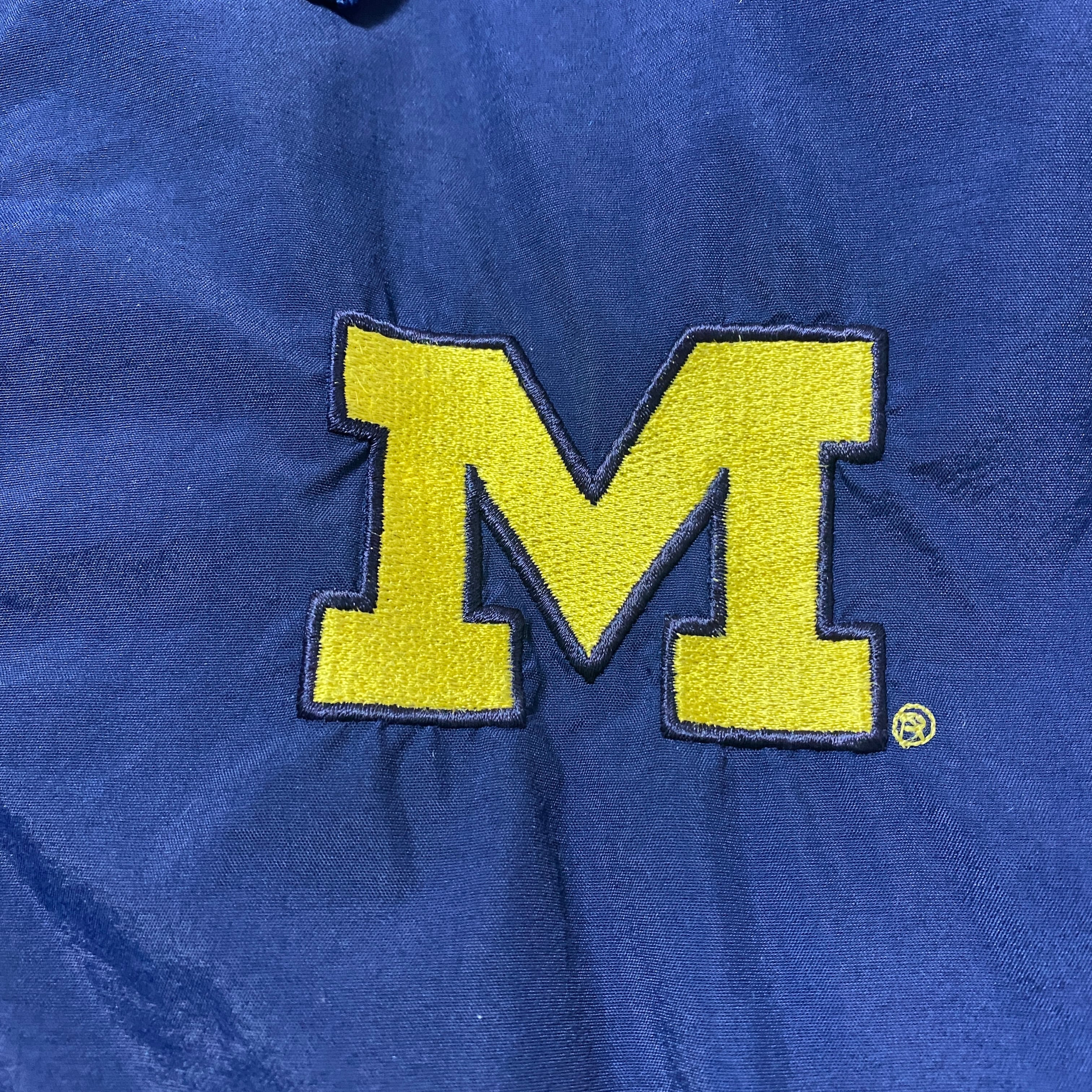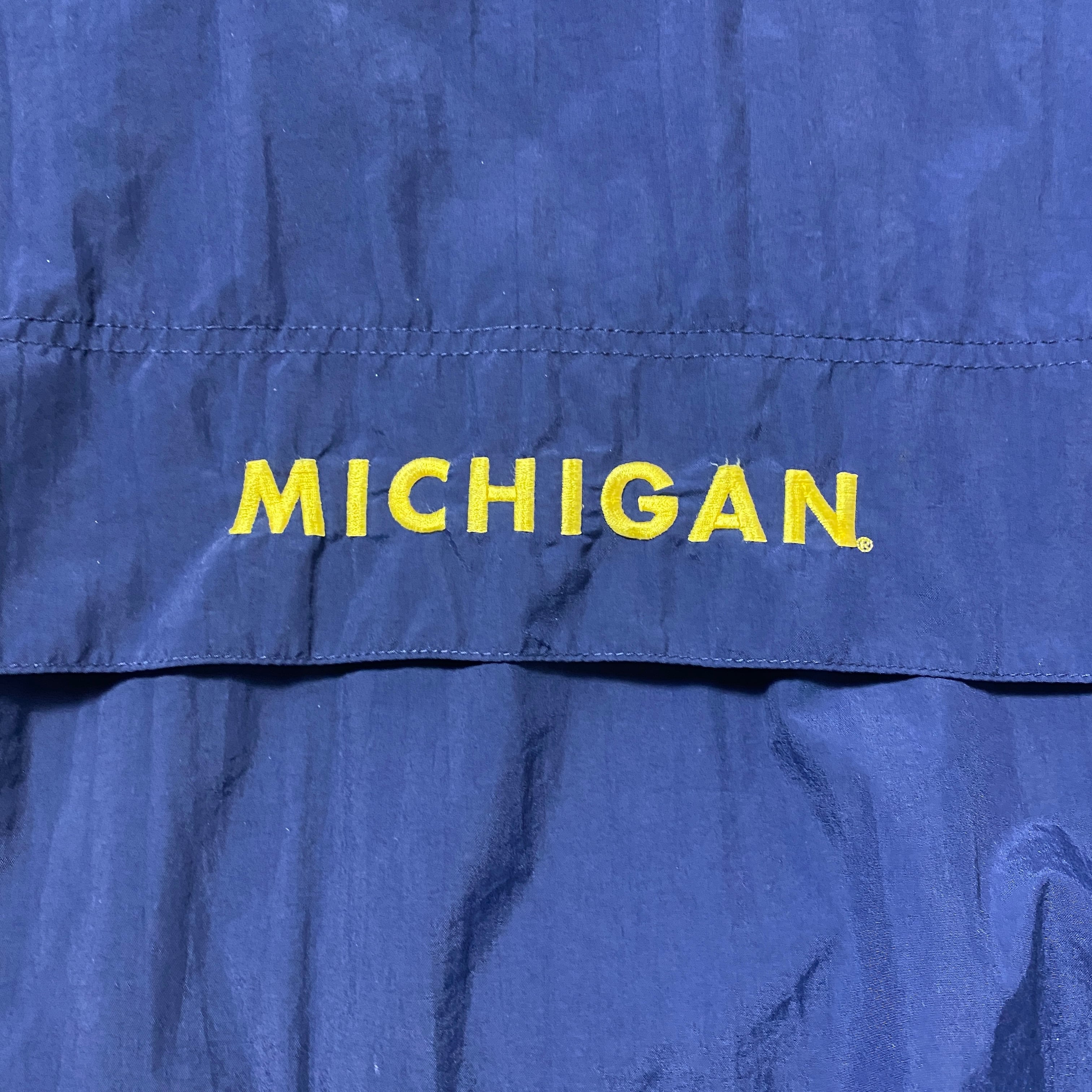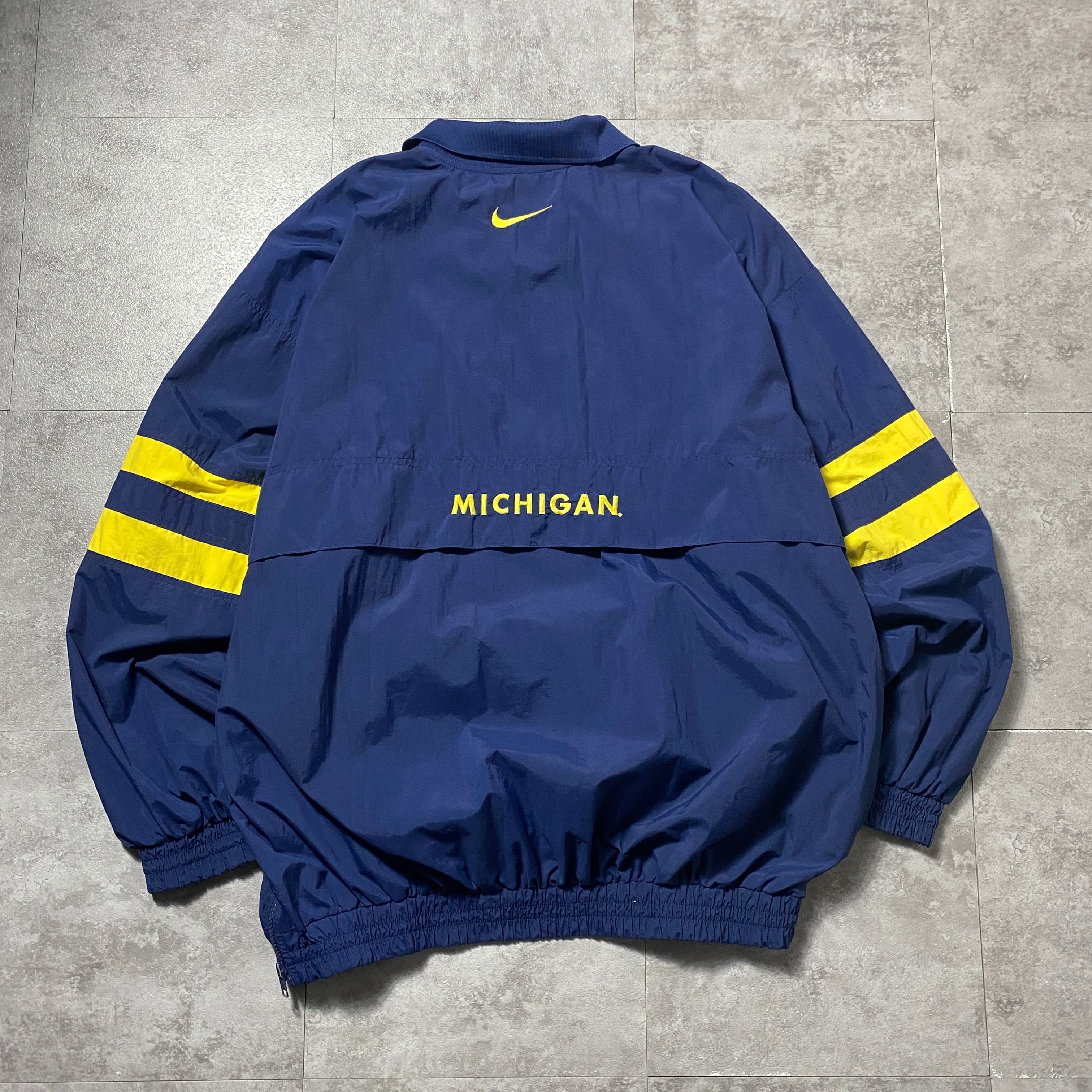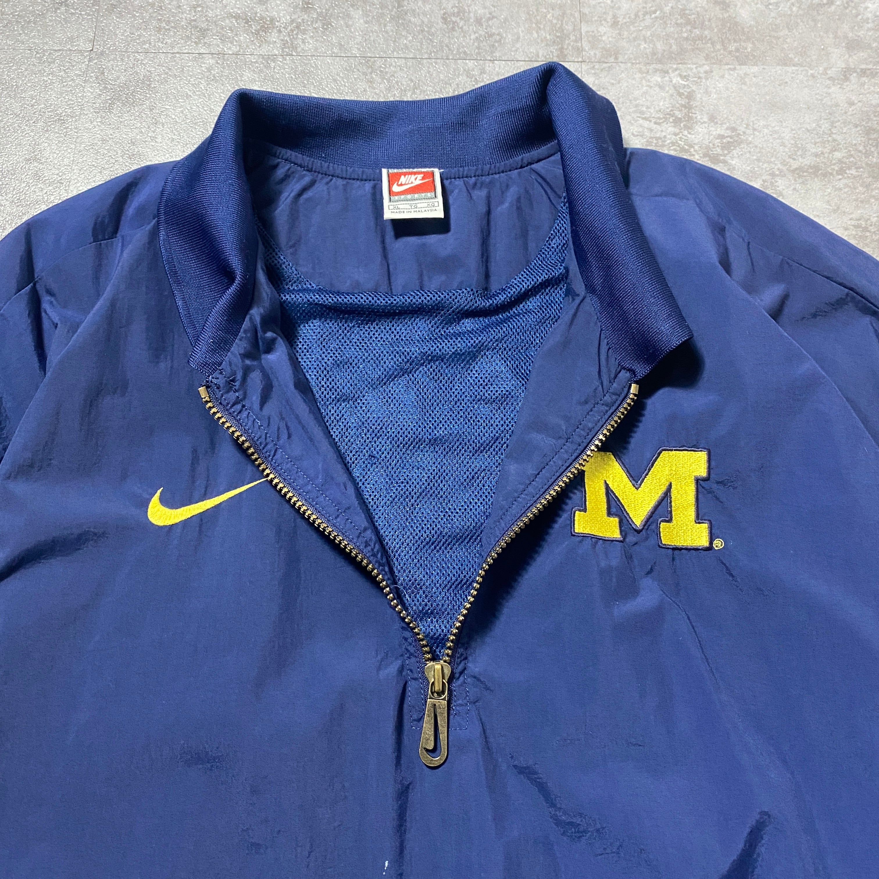 【Size:XL】90's NIKE Michigan ナイキ ミシガン 刺繍カレッジロゴ ハーフジップ ネイビー ナイロンジャケット ナイロンプルオーバー