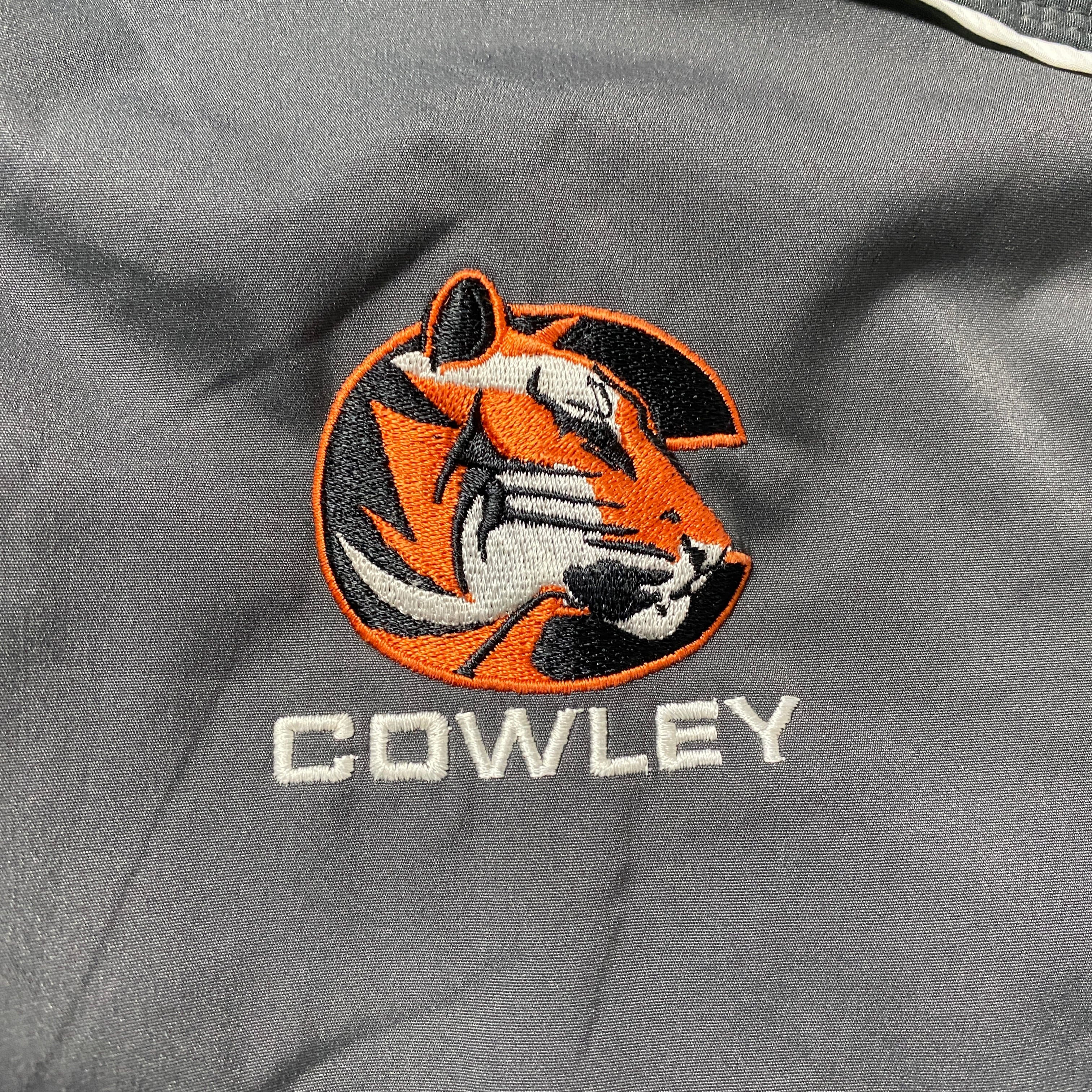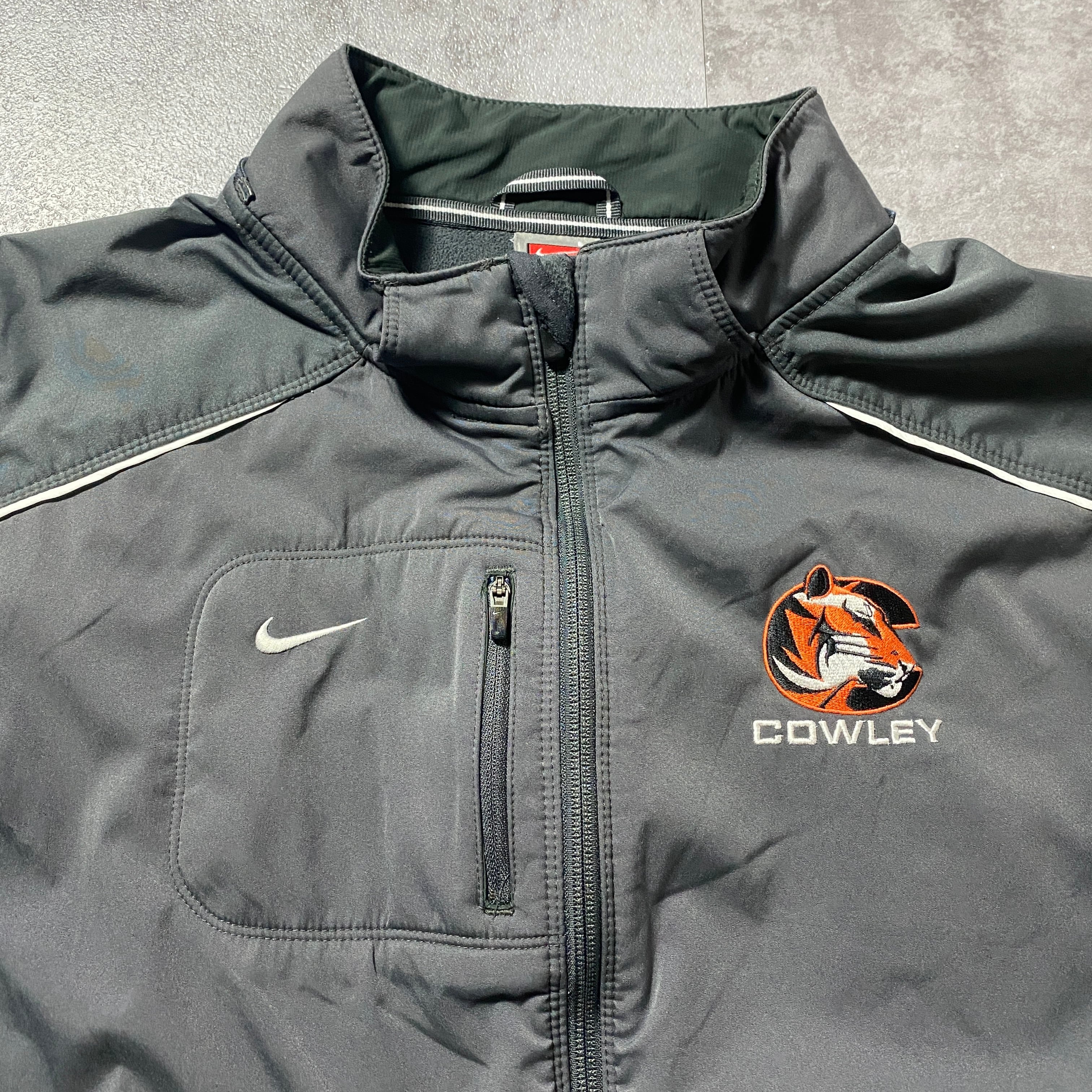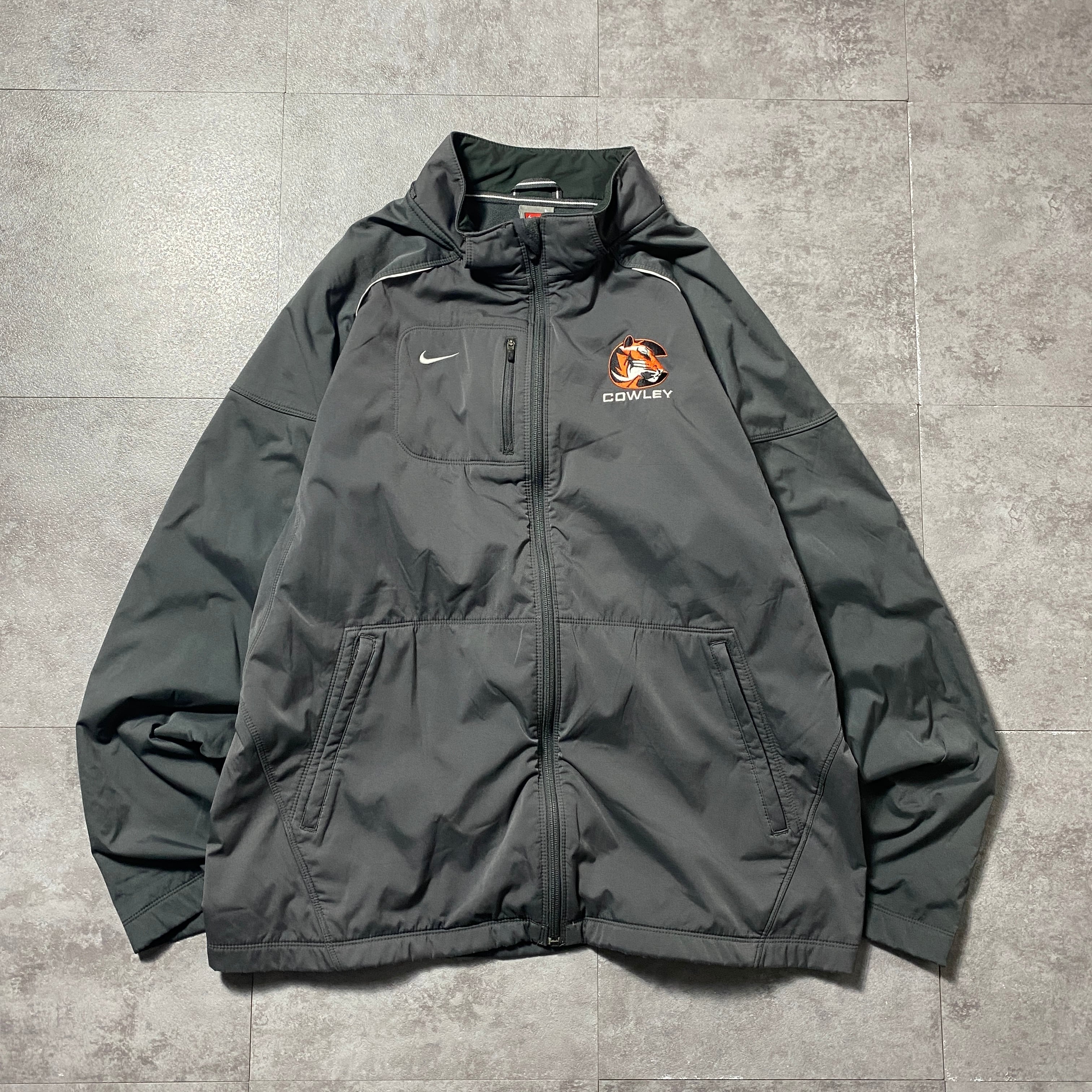00's NIKE ナイキ スウォッシュ 刺繍ロゴ COWLEY タイガーワッペン Y2K フリースライナー グレー ナイロンジャケット