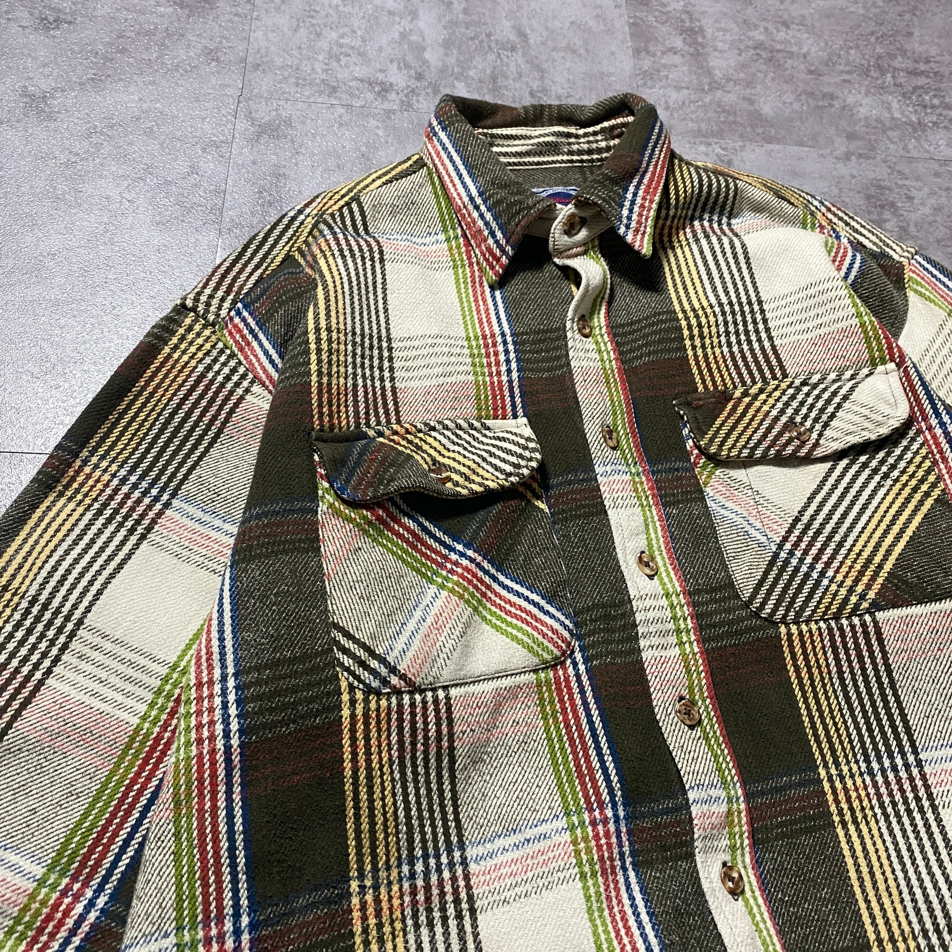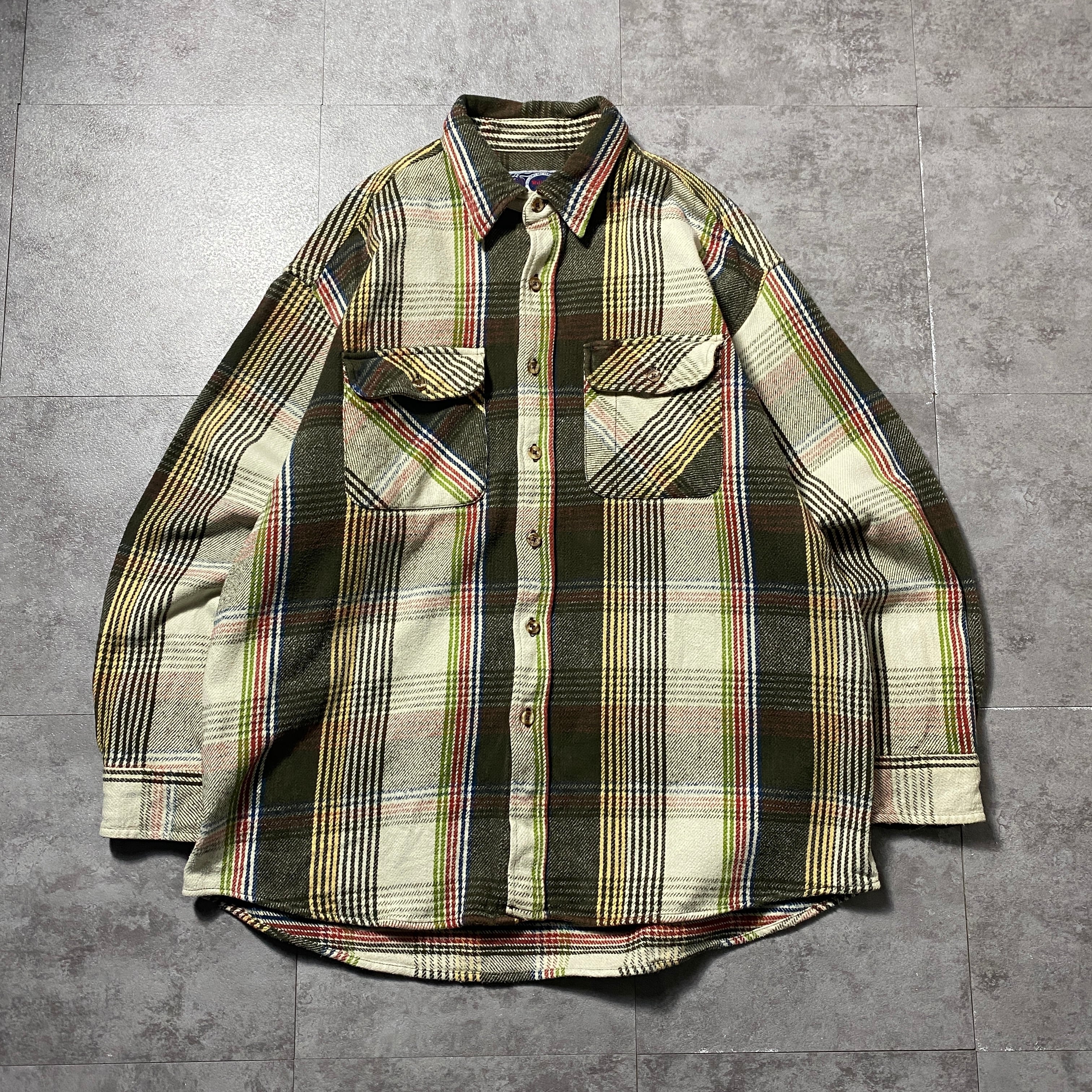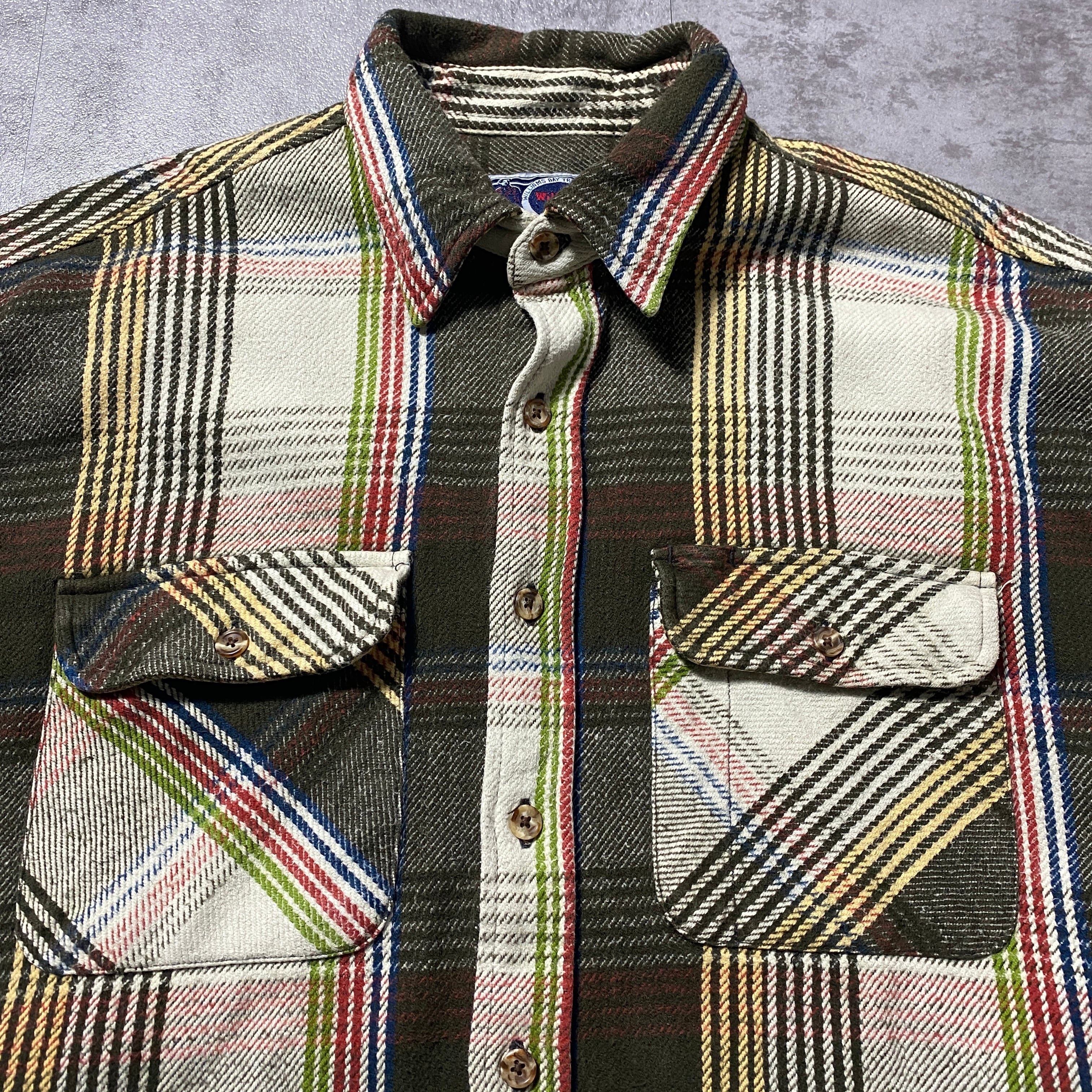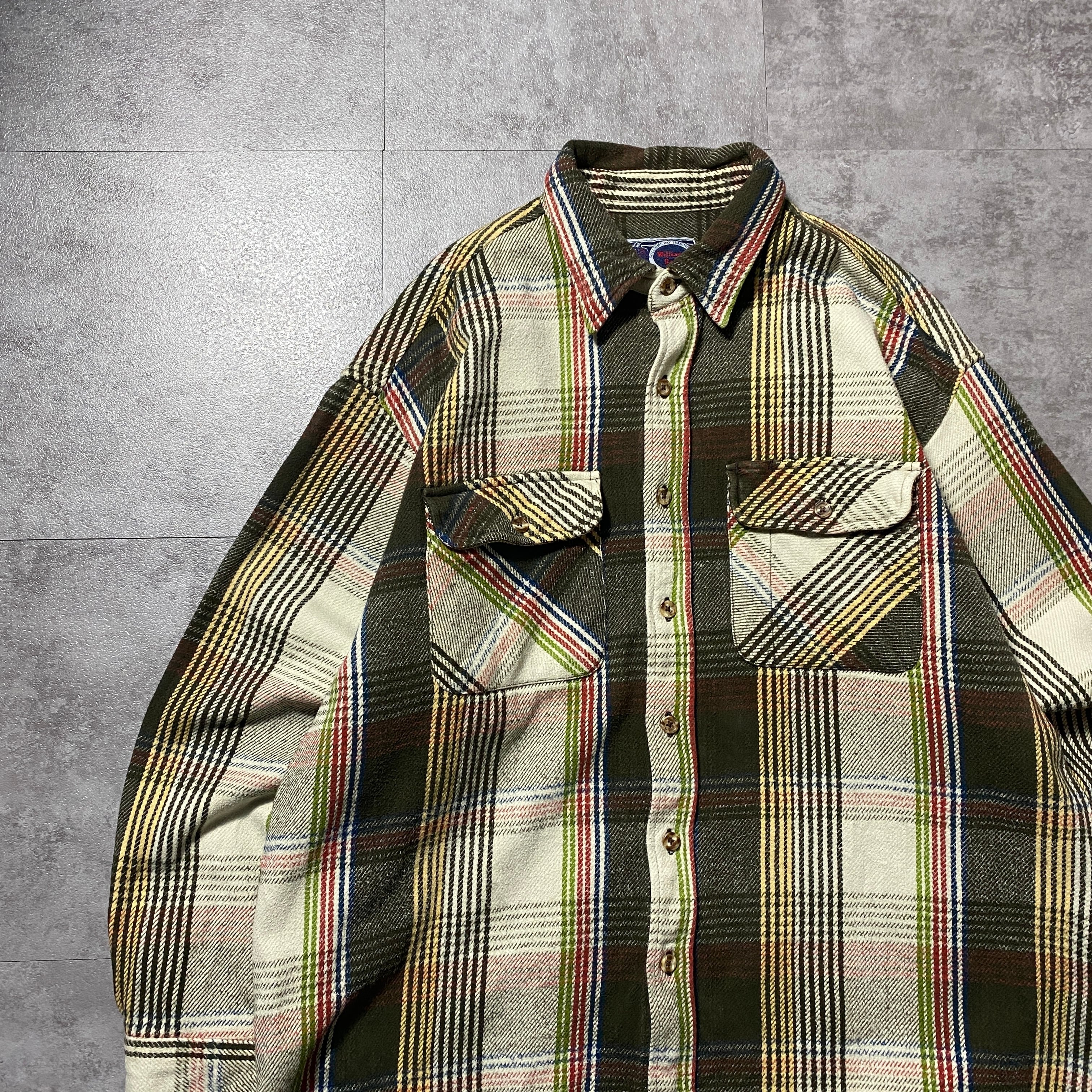 【Size:XL】90's Williams Bay ウィリアムズベイ ダブルポケット タータンチェック ヘビーネル フランネルシャツ