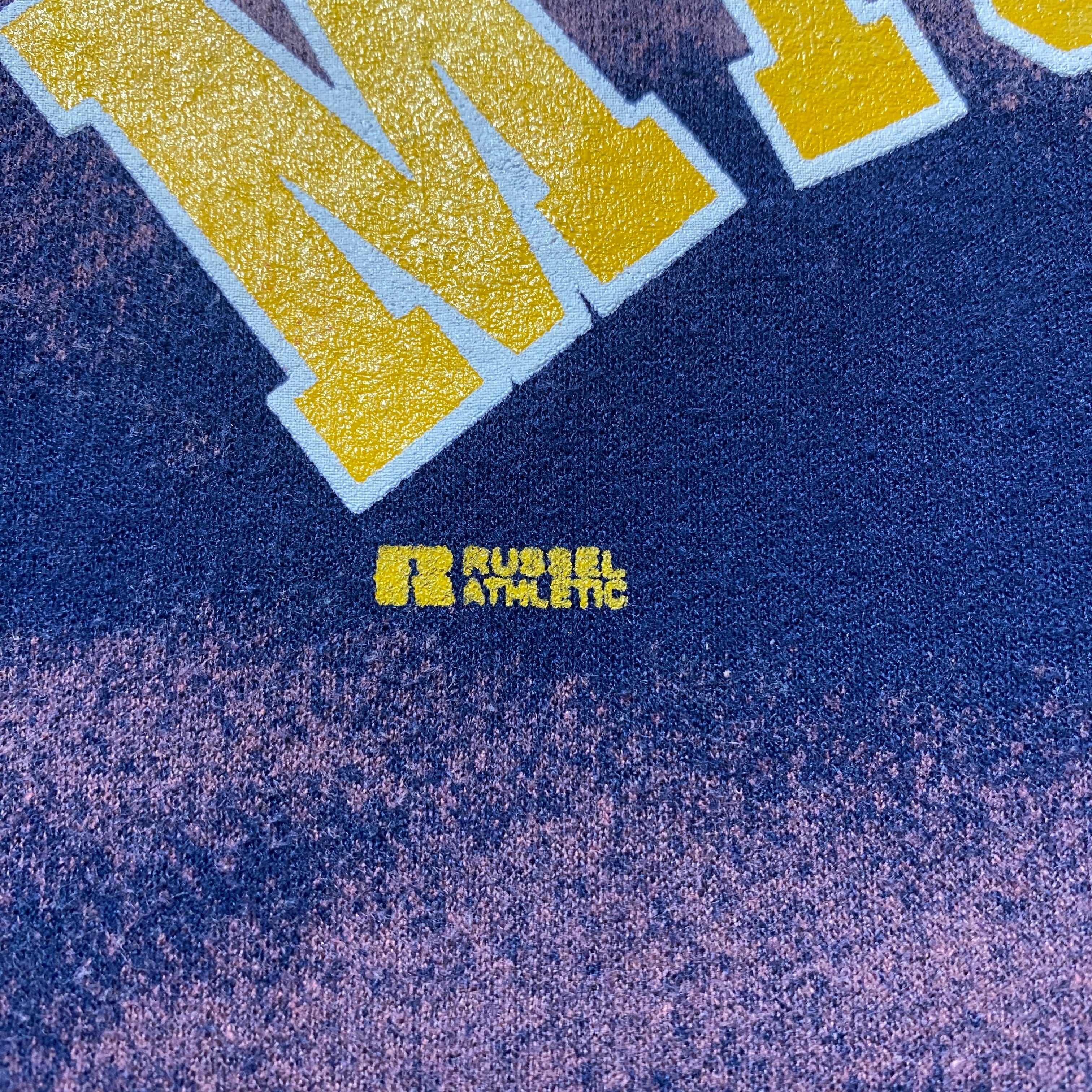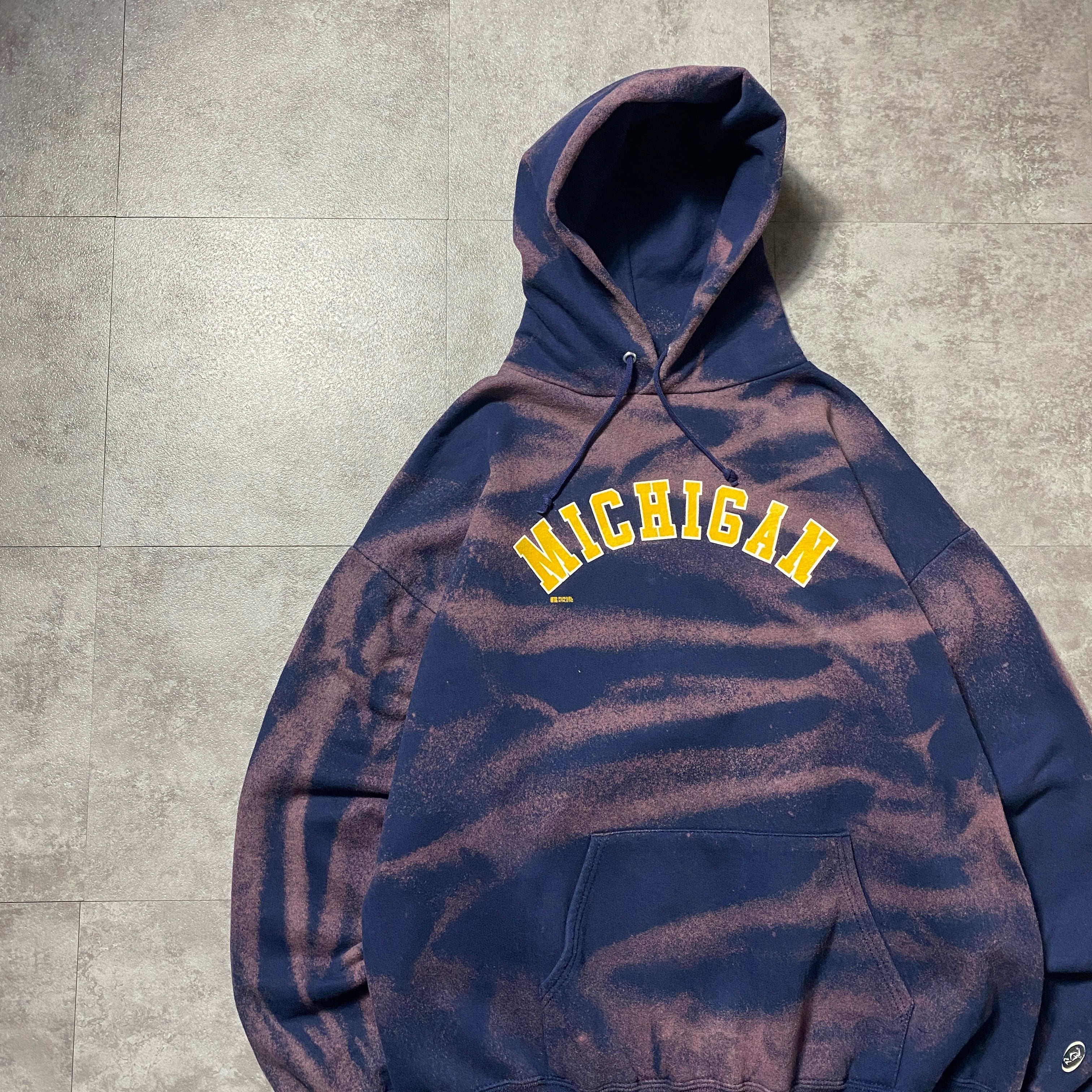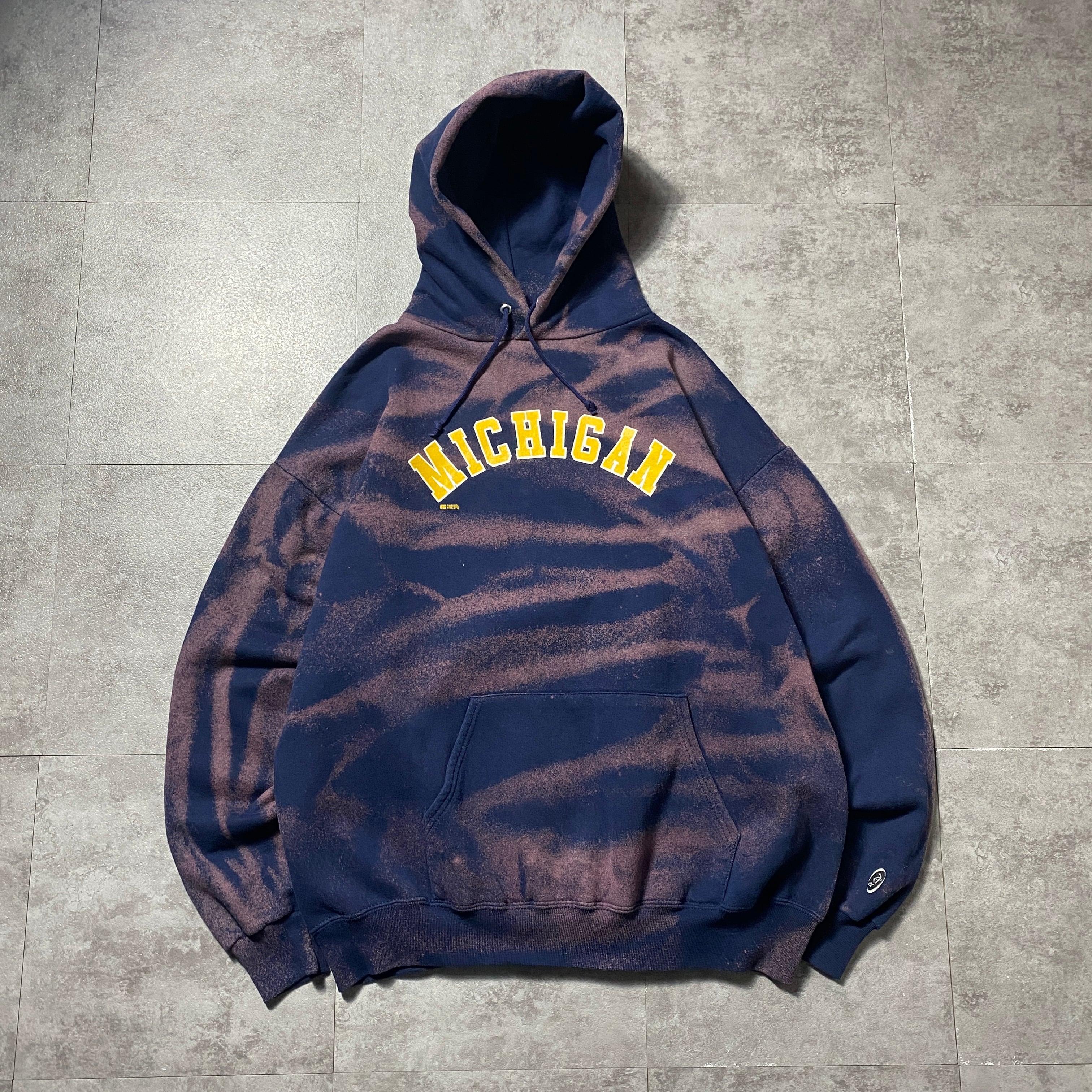 90's RUSSEL ATHLETIC ラッセルアスレチック Michigan ミシガン プリント ブリーチ加工 スウェット パーカー