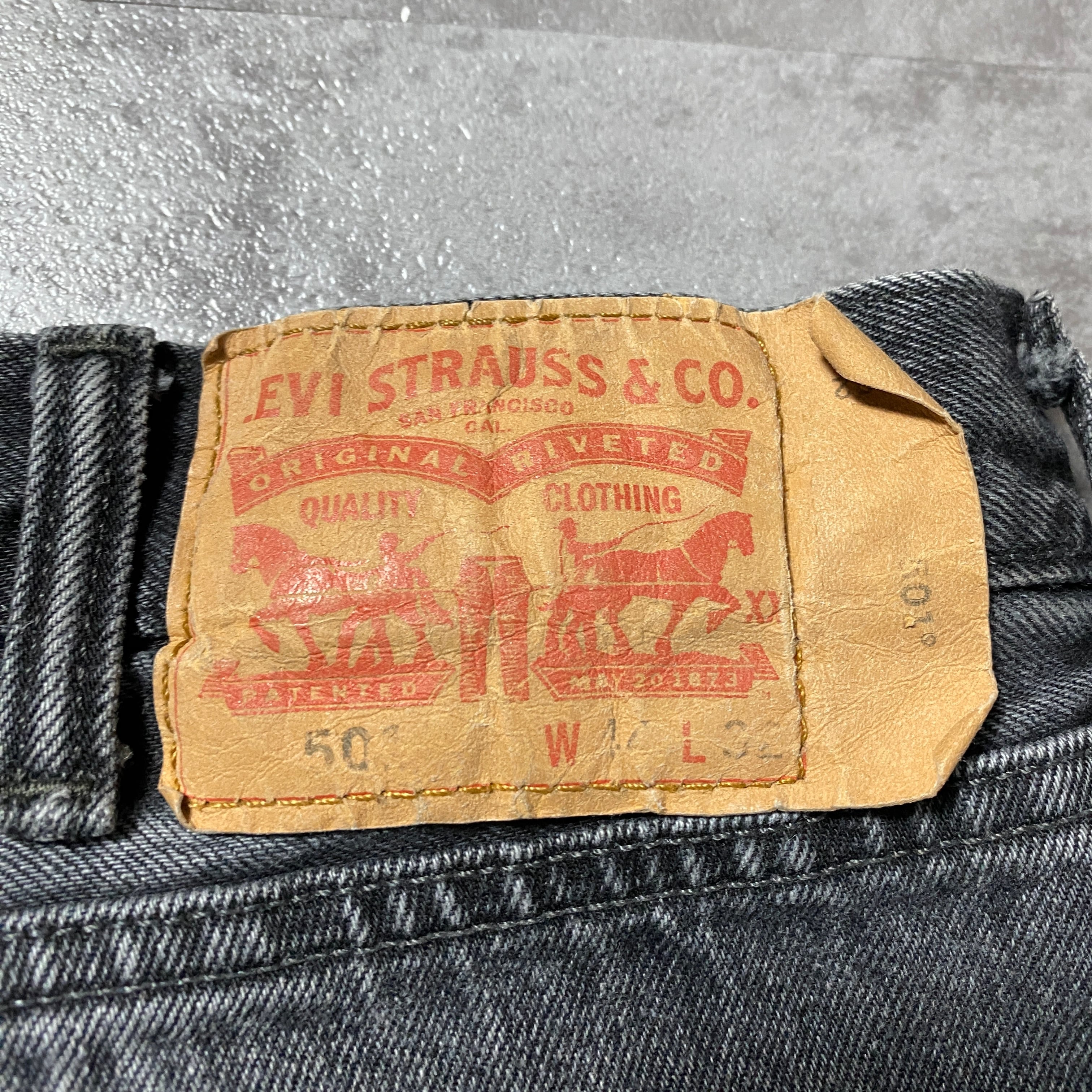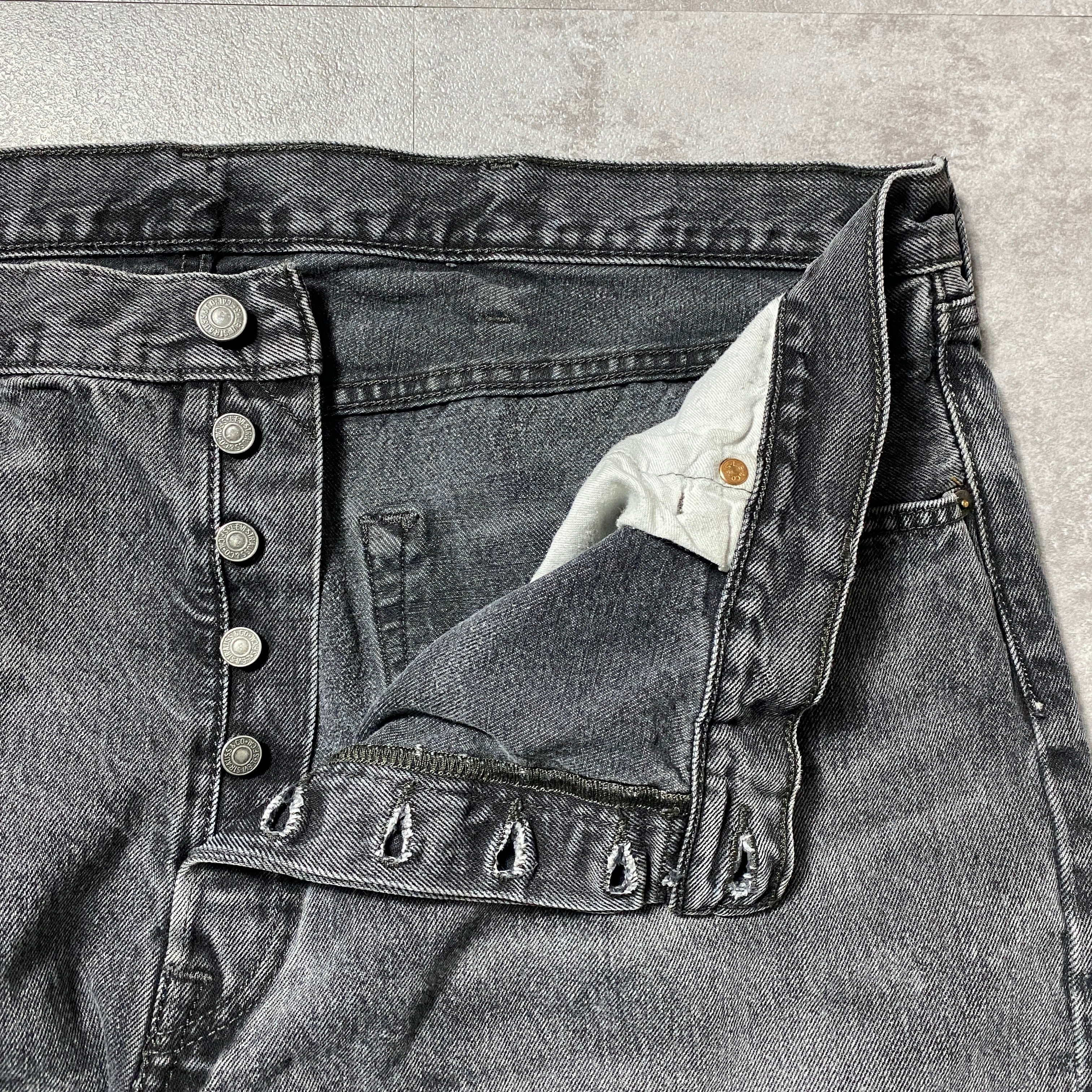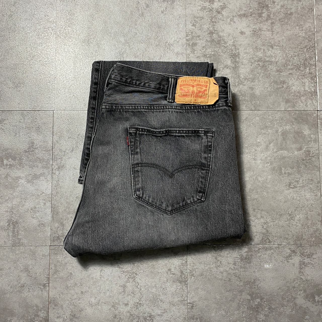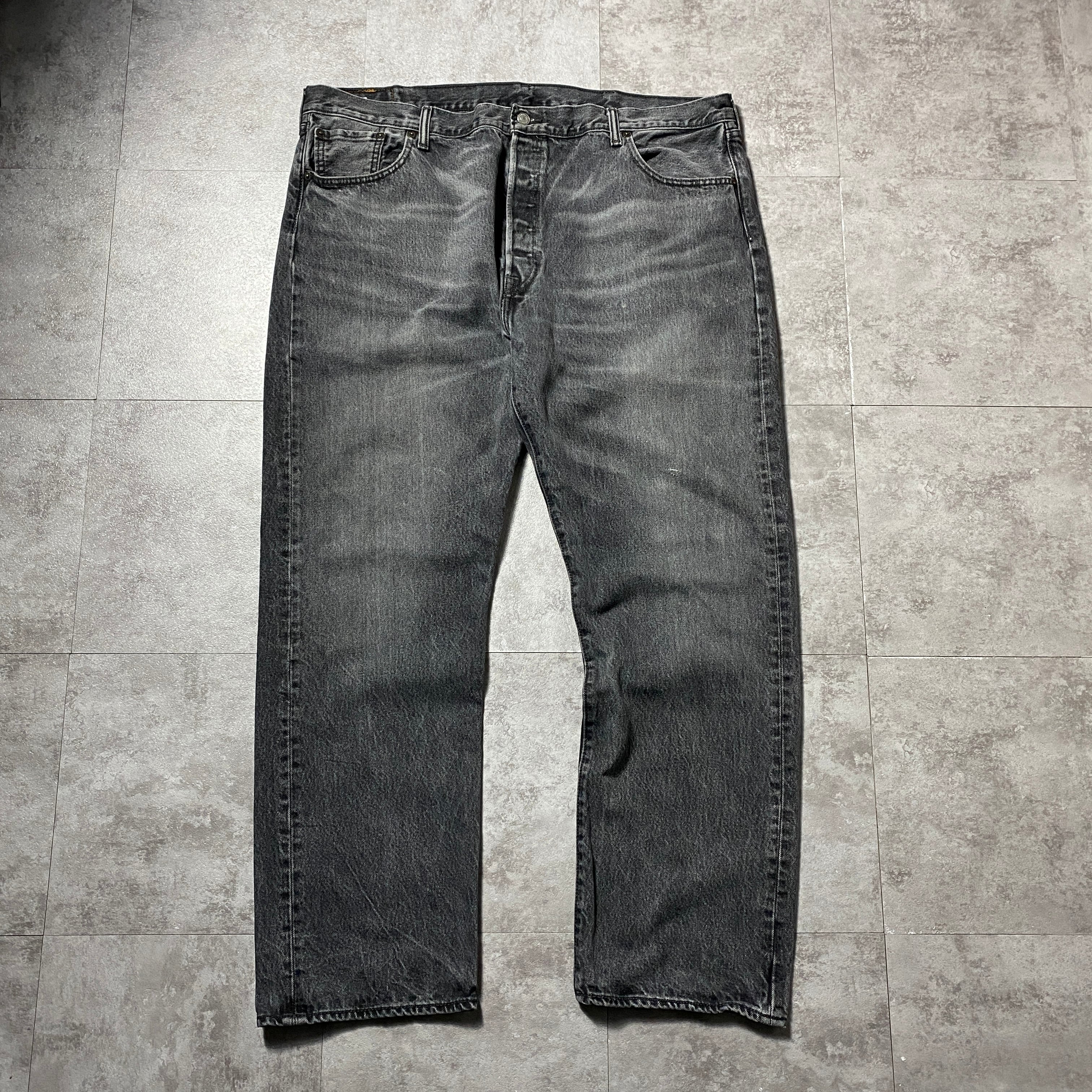 【W44 L32】Levis 501 リーバイス ボタンフライ ストレート 縦落ち ヒゲ 先染め ブラックデニム ジーンズ