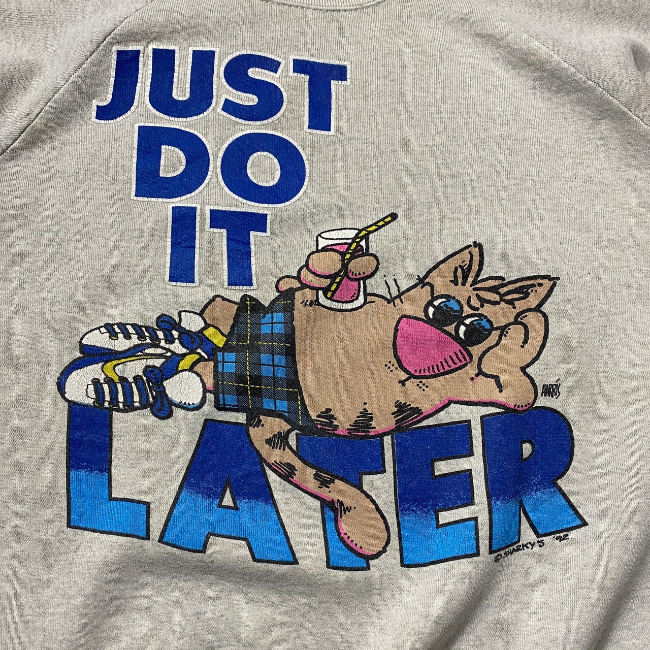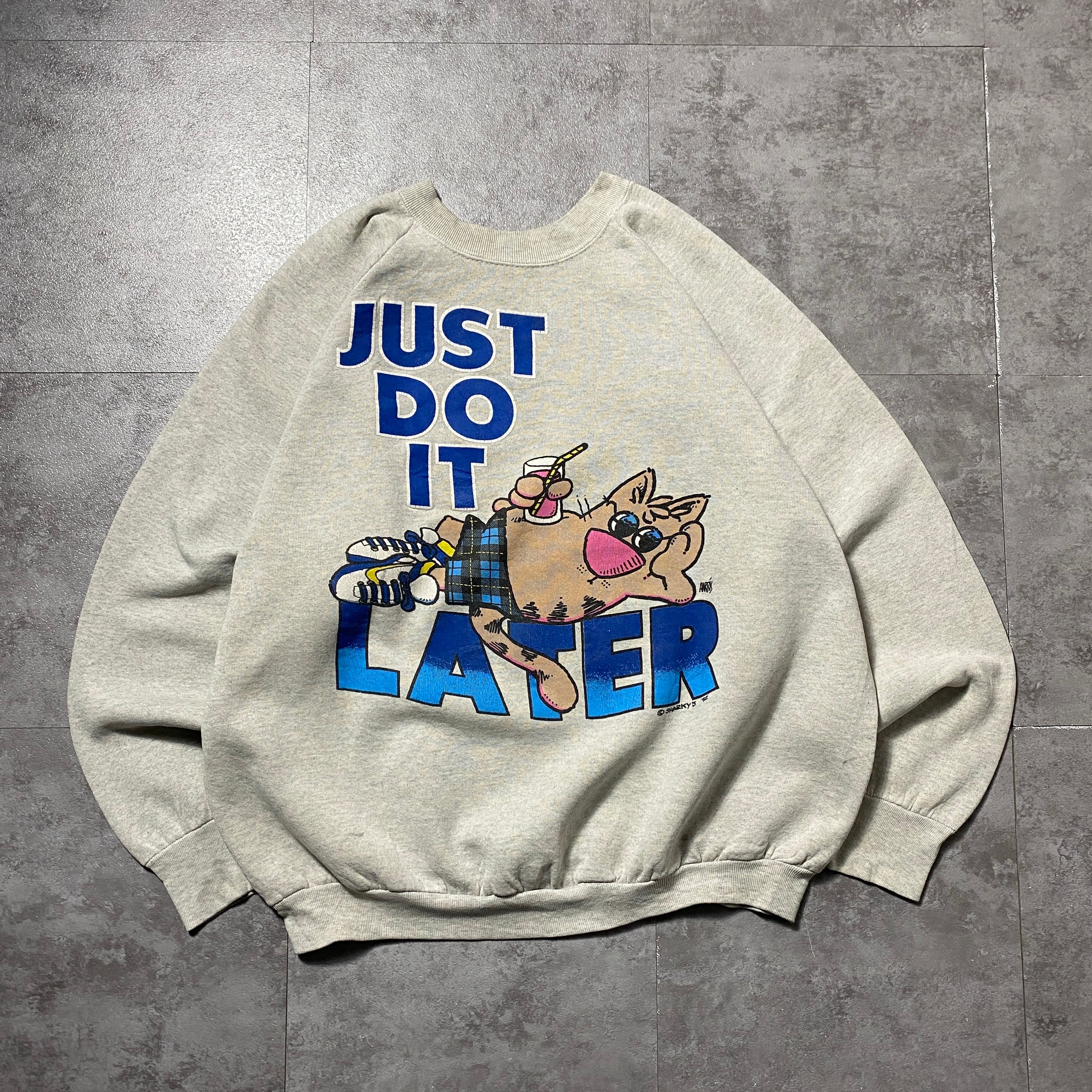 【Size:XL】90's Fruit of the Loom フルーツオブザルーム ナイキパロディ JUST DO IT LATER プリント グレー スウェット トレーナー