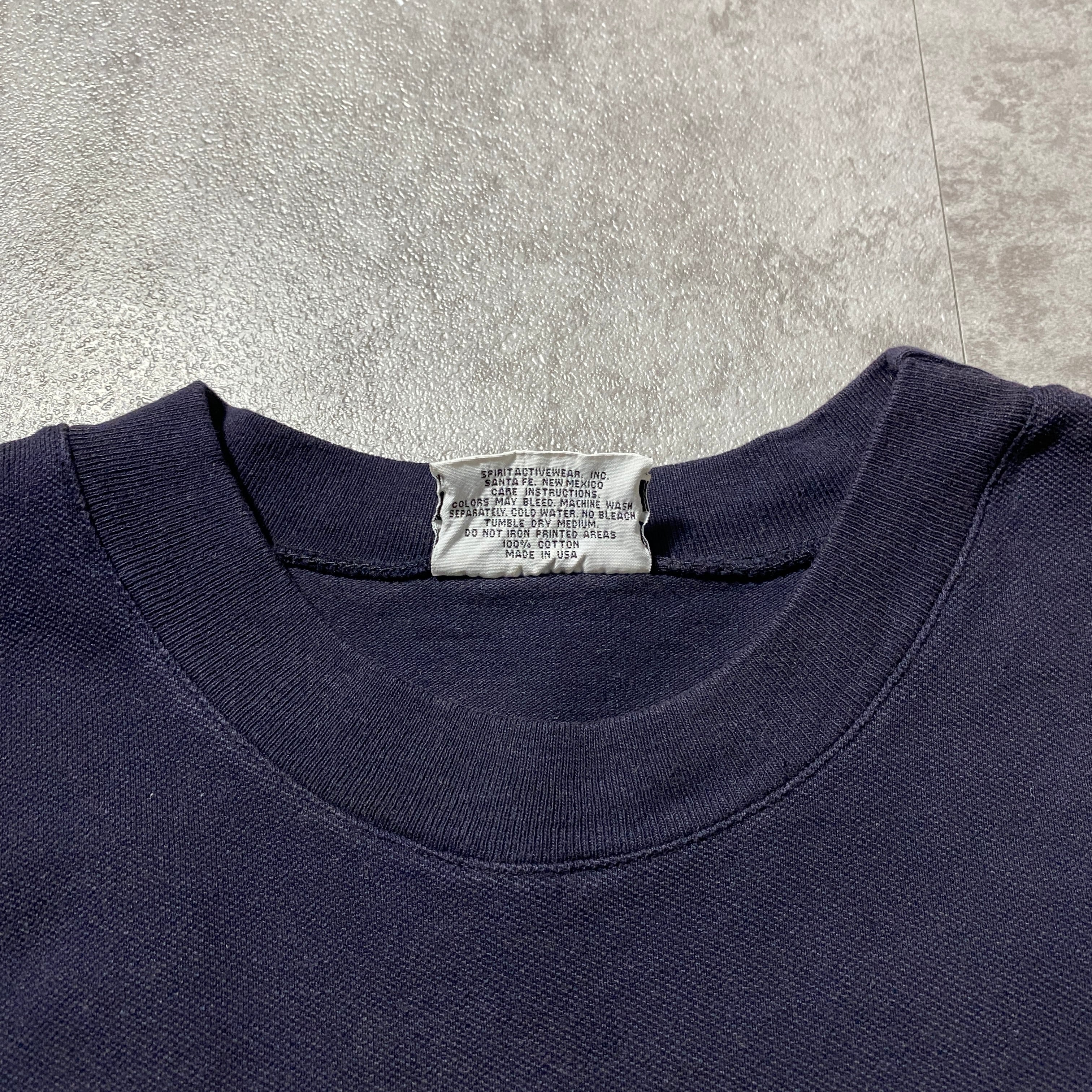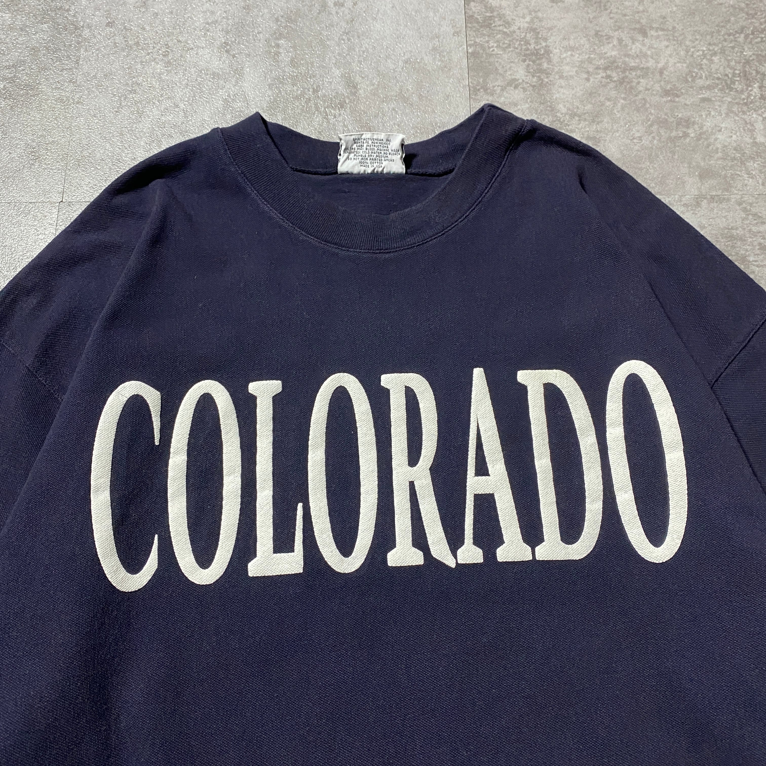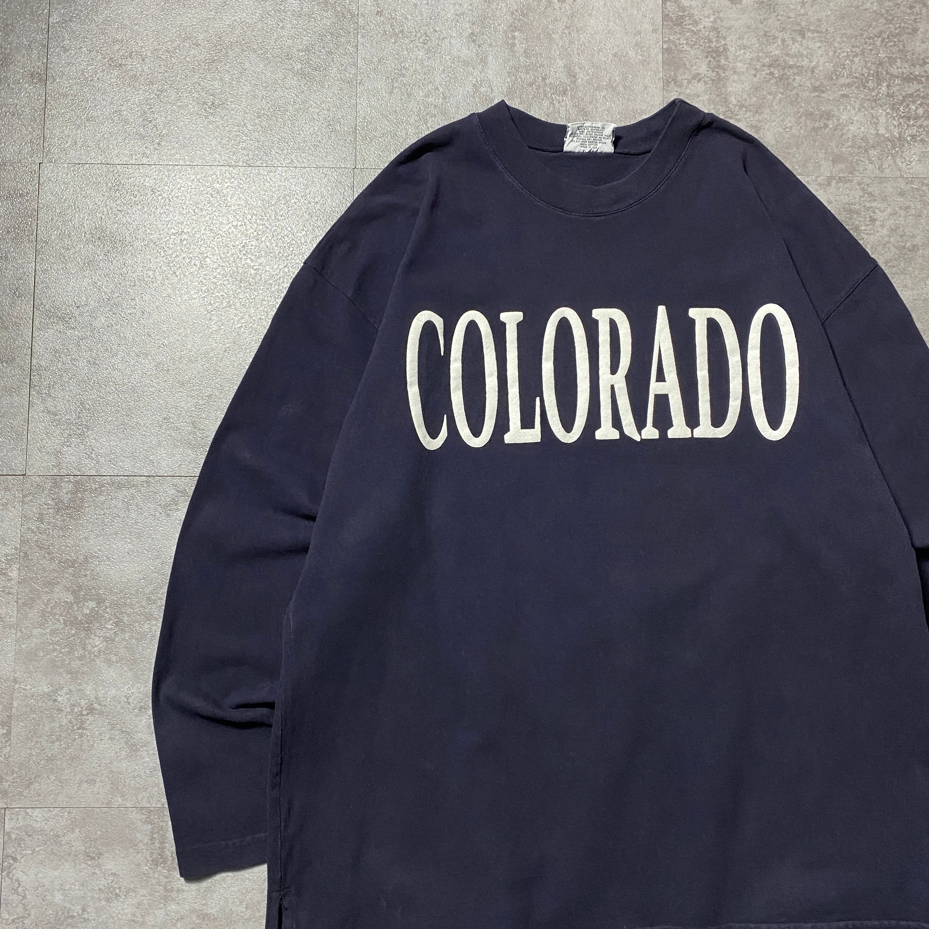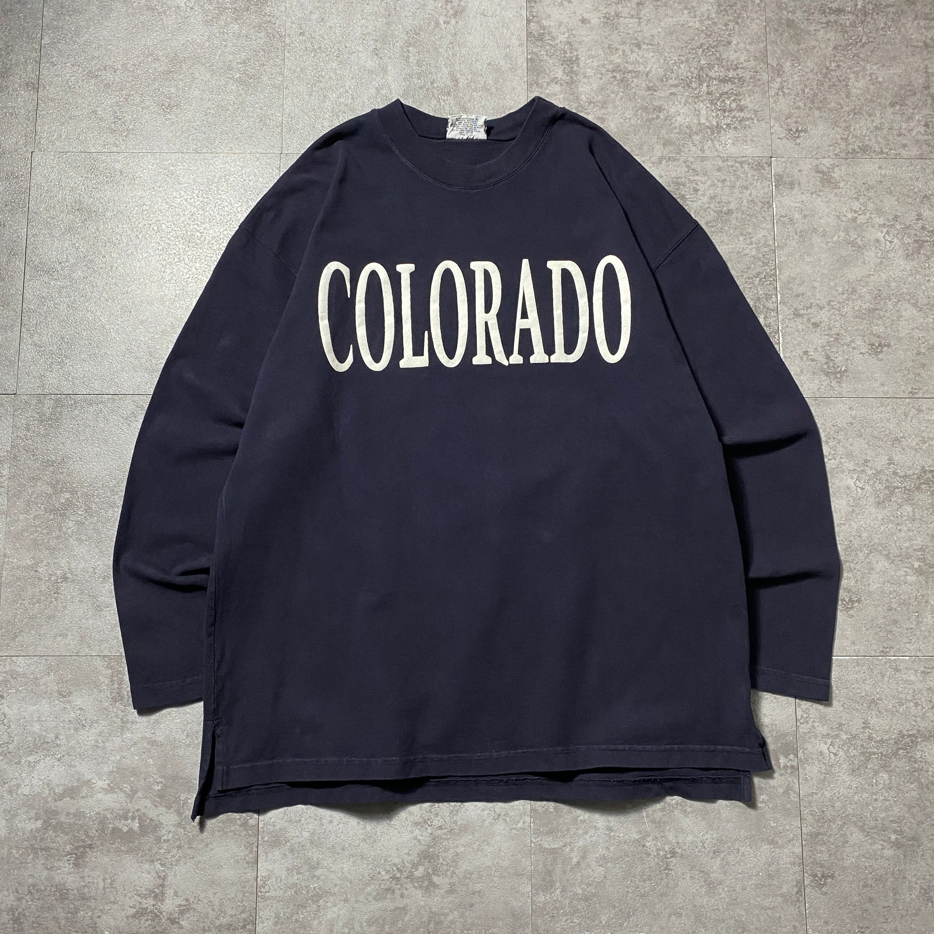 【USA製】90's SPIRIT COLOLADO コロラド プリント カレッジテイスト 鹿の子生地 ネイビー Tシャツ ロンT