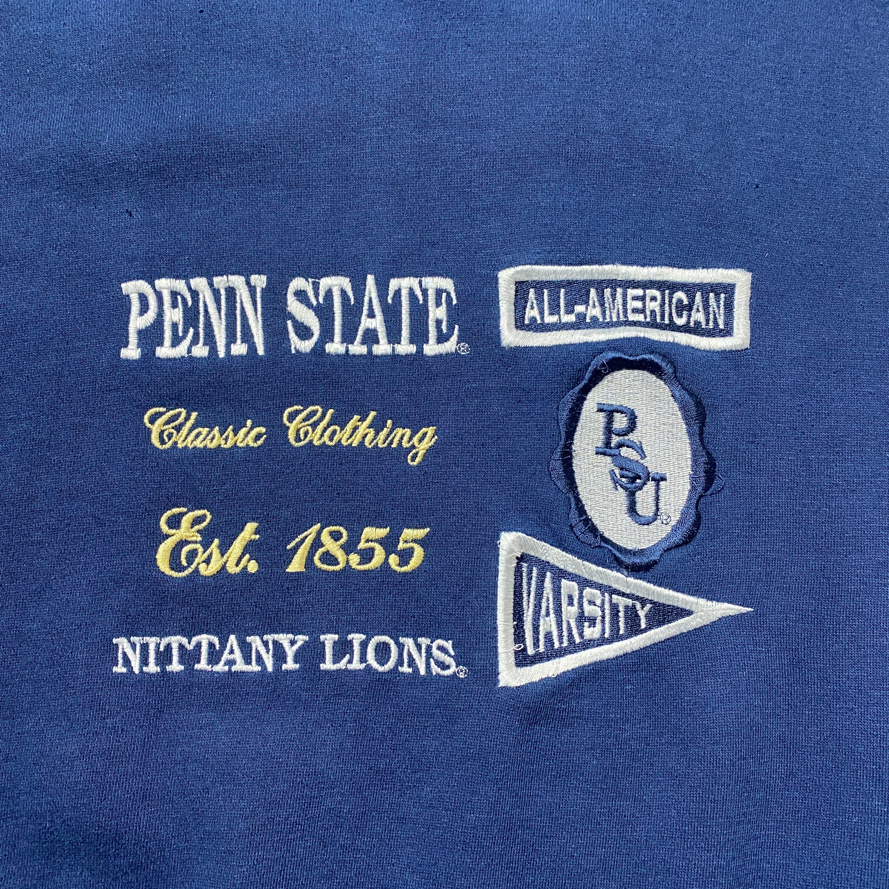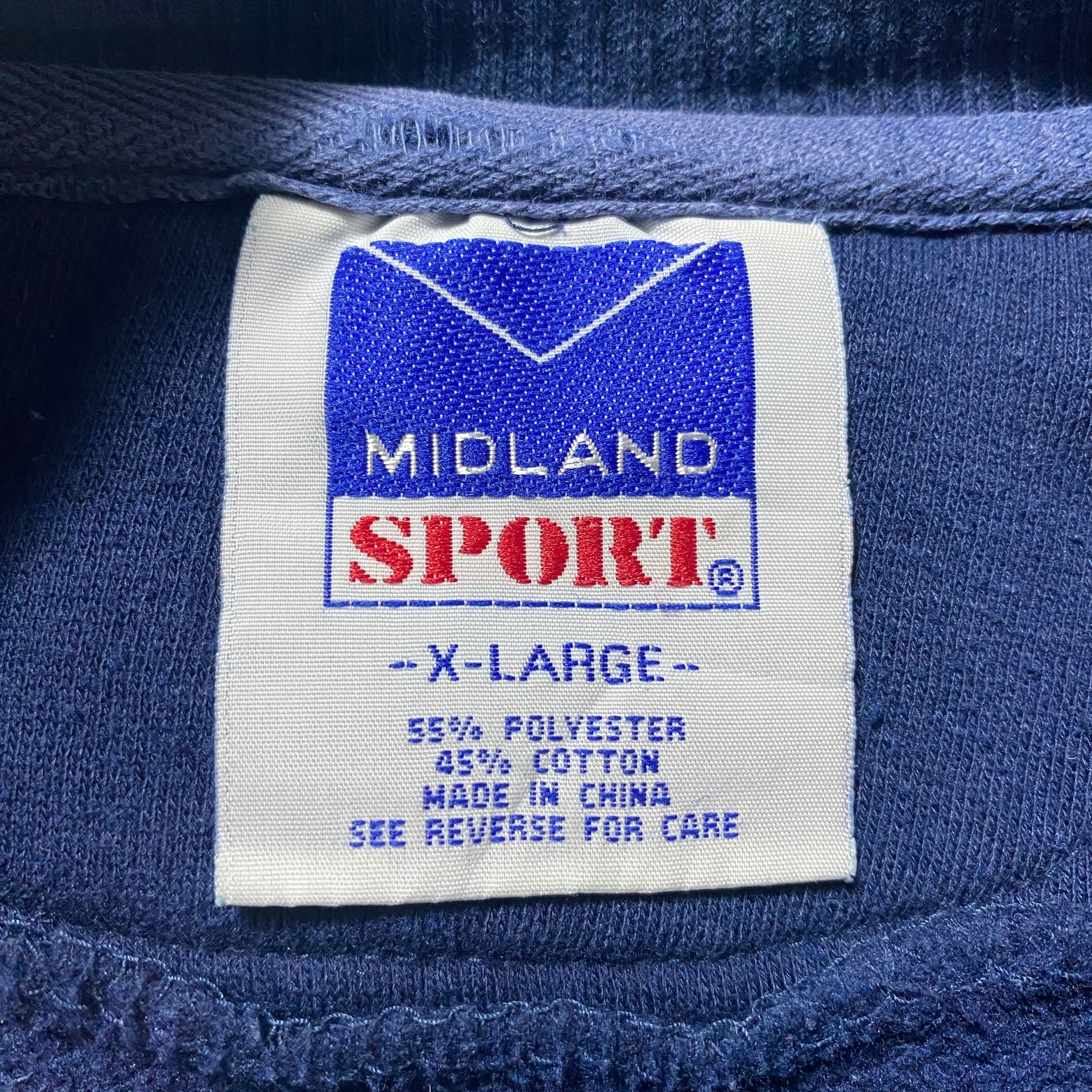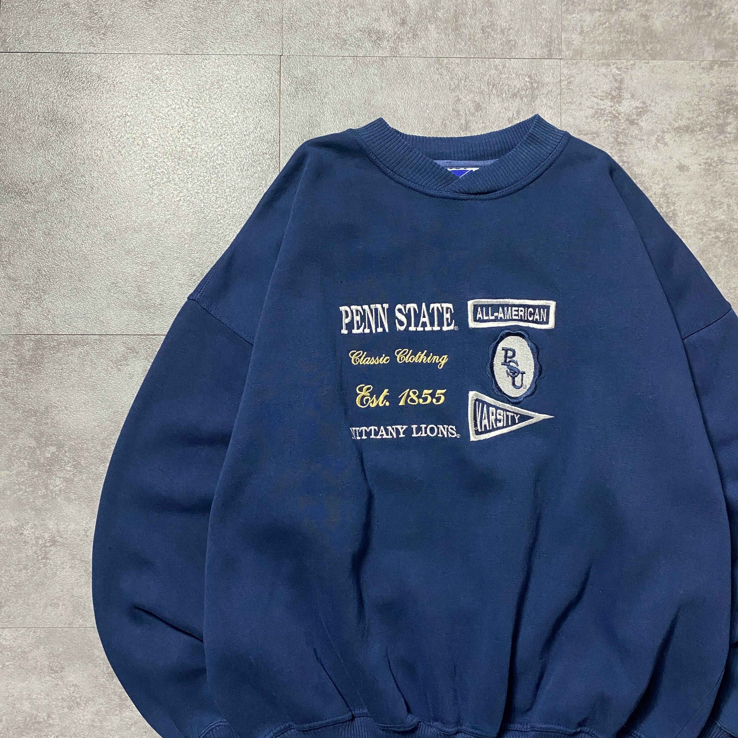 【Size:XL】90's MIDLAND SPORT PENN STATE ペンシルベニア 刺繍&ワッペン ランダムロゴ ヘビーオンス ネイビー スウェット トレーナー