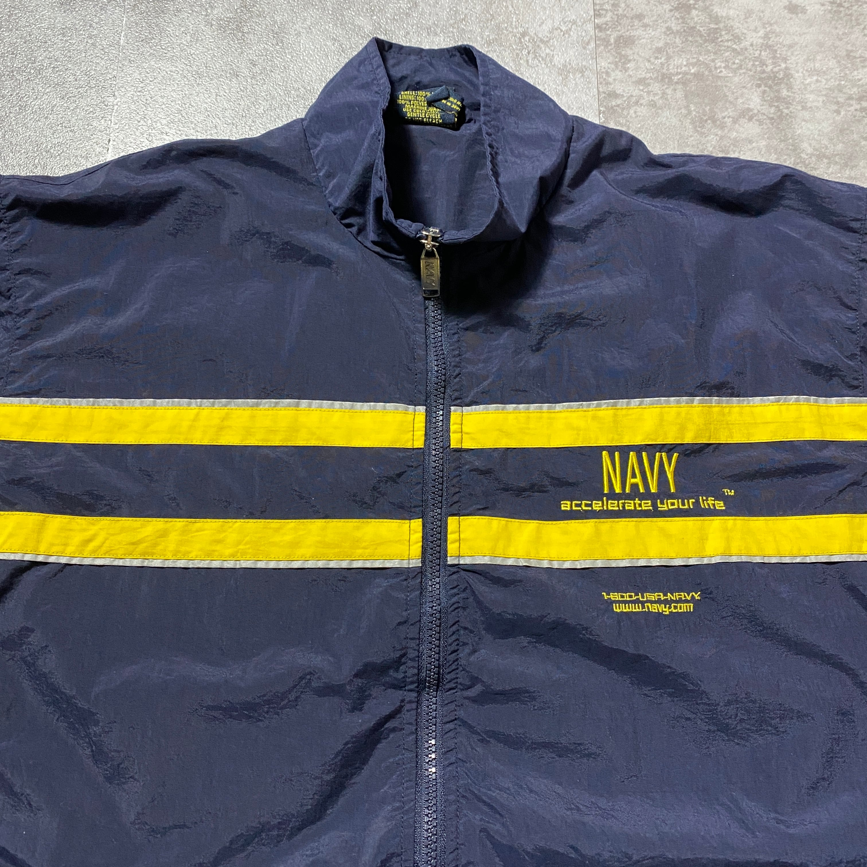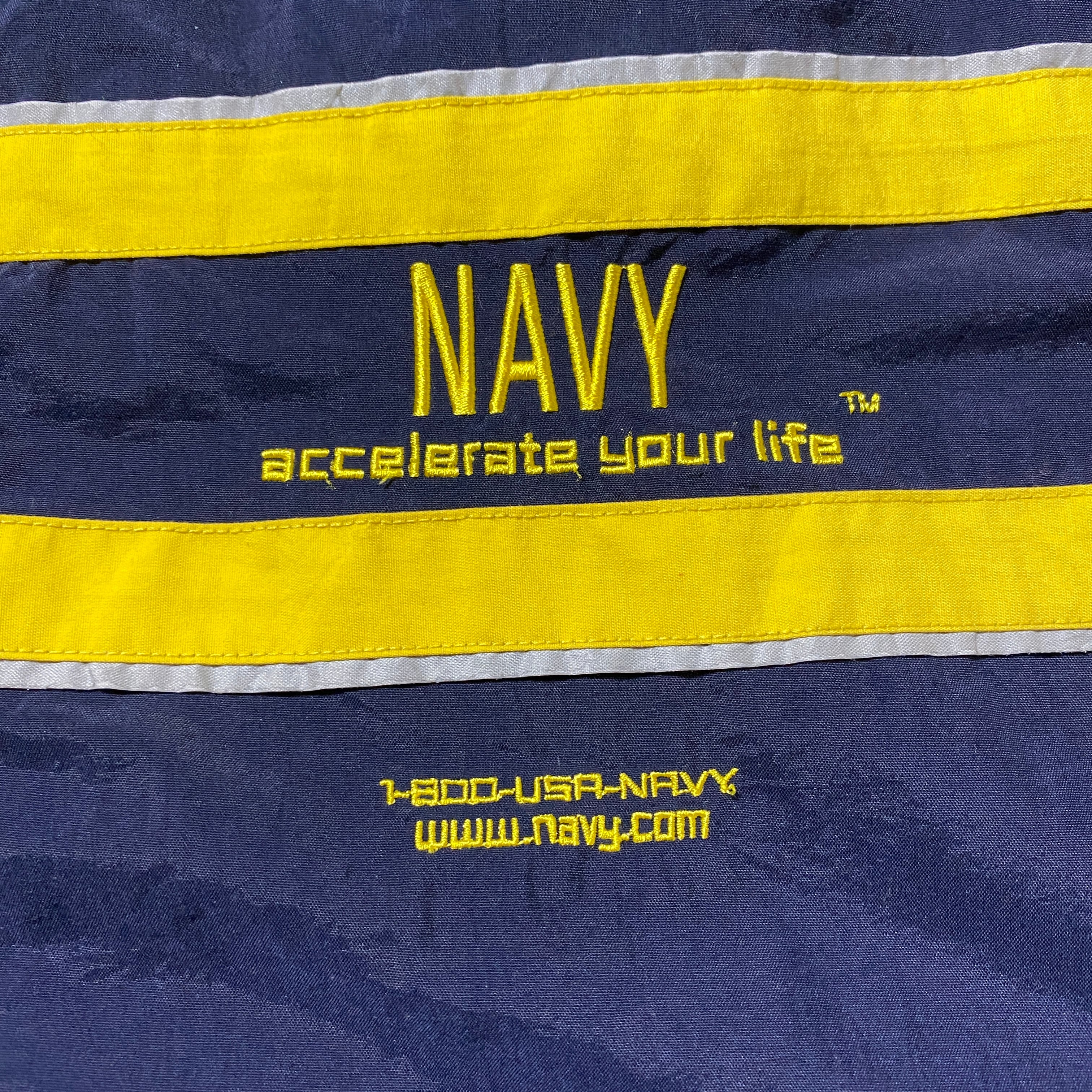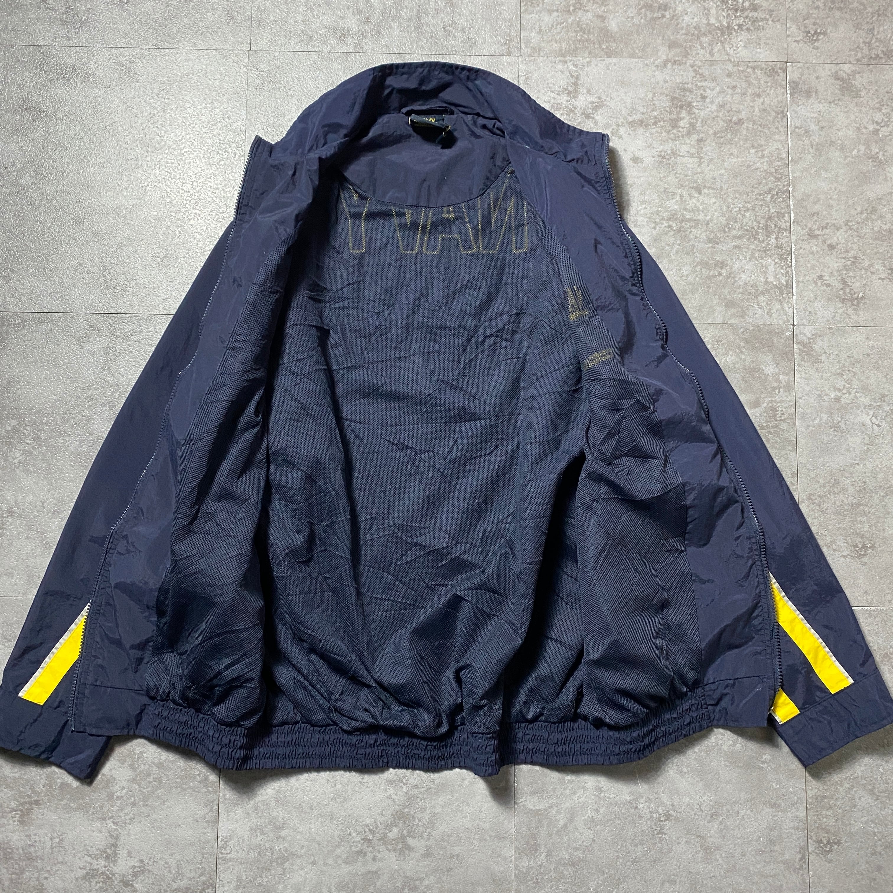 【マカオ製】00's U.S.NAVY アメリカ海軍 刺繍ワンポイント バックロゴ ミリタリー リクルーティング ナイロンジャケット