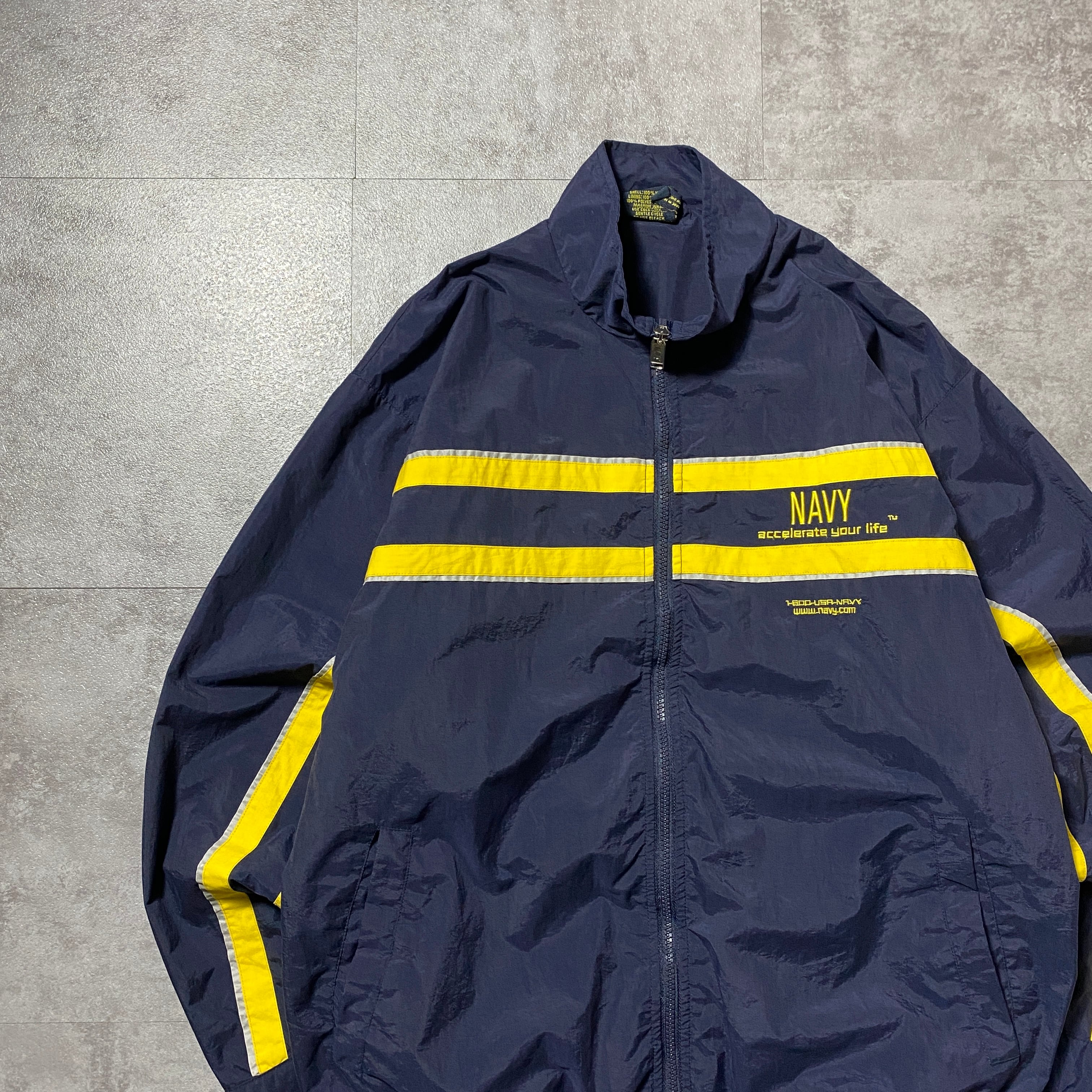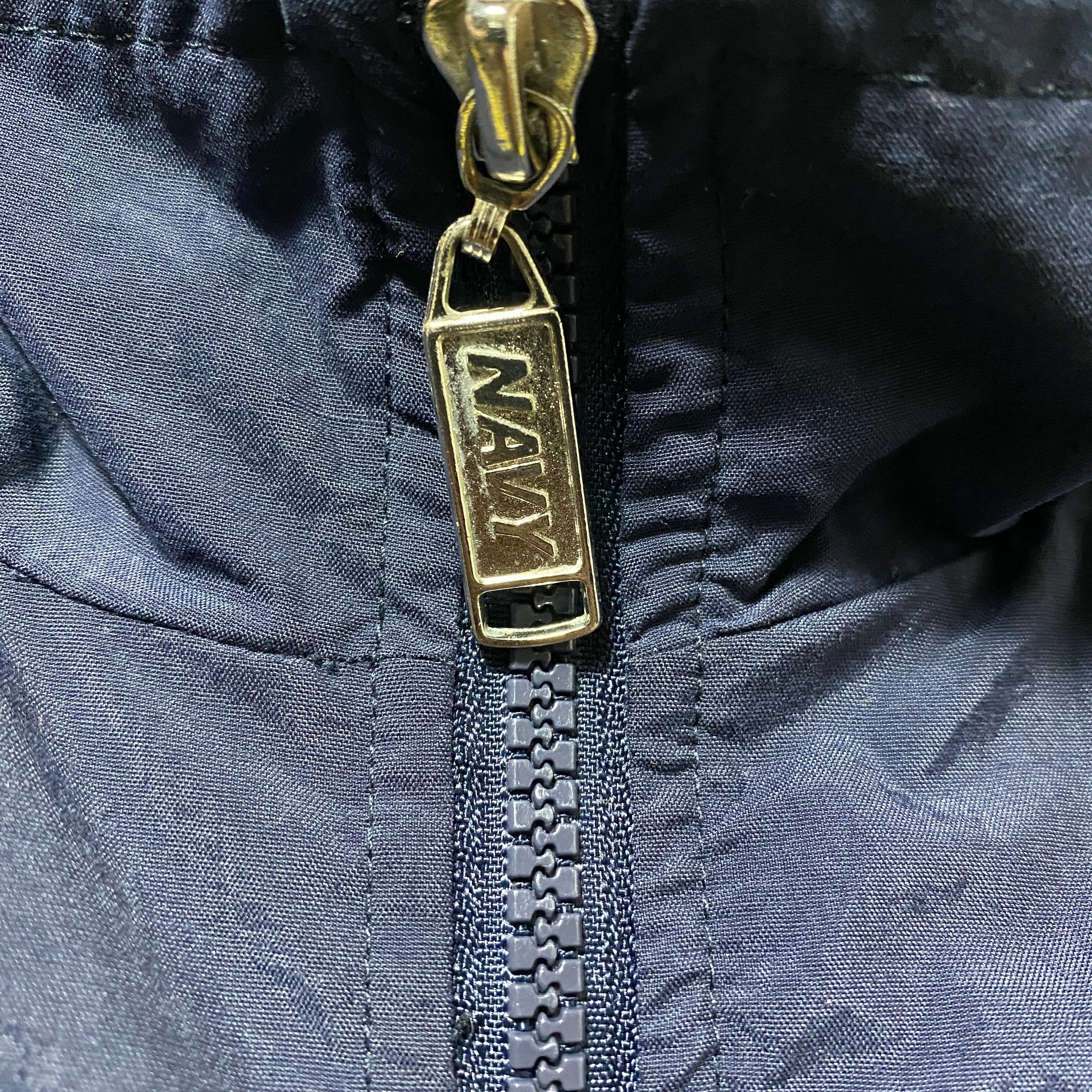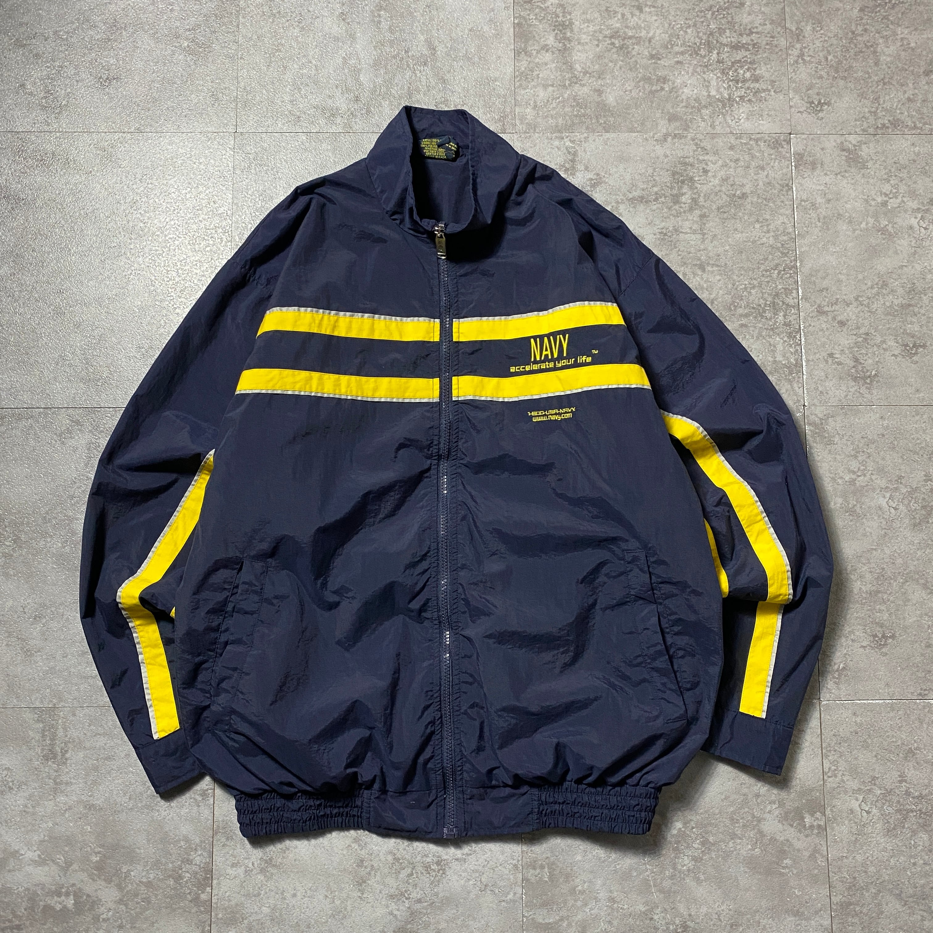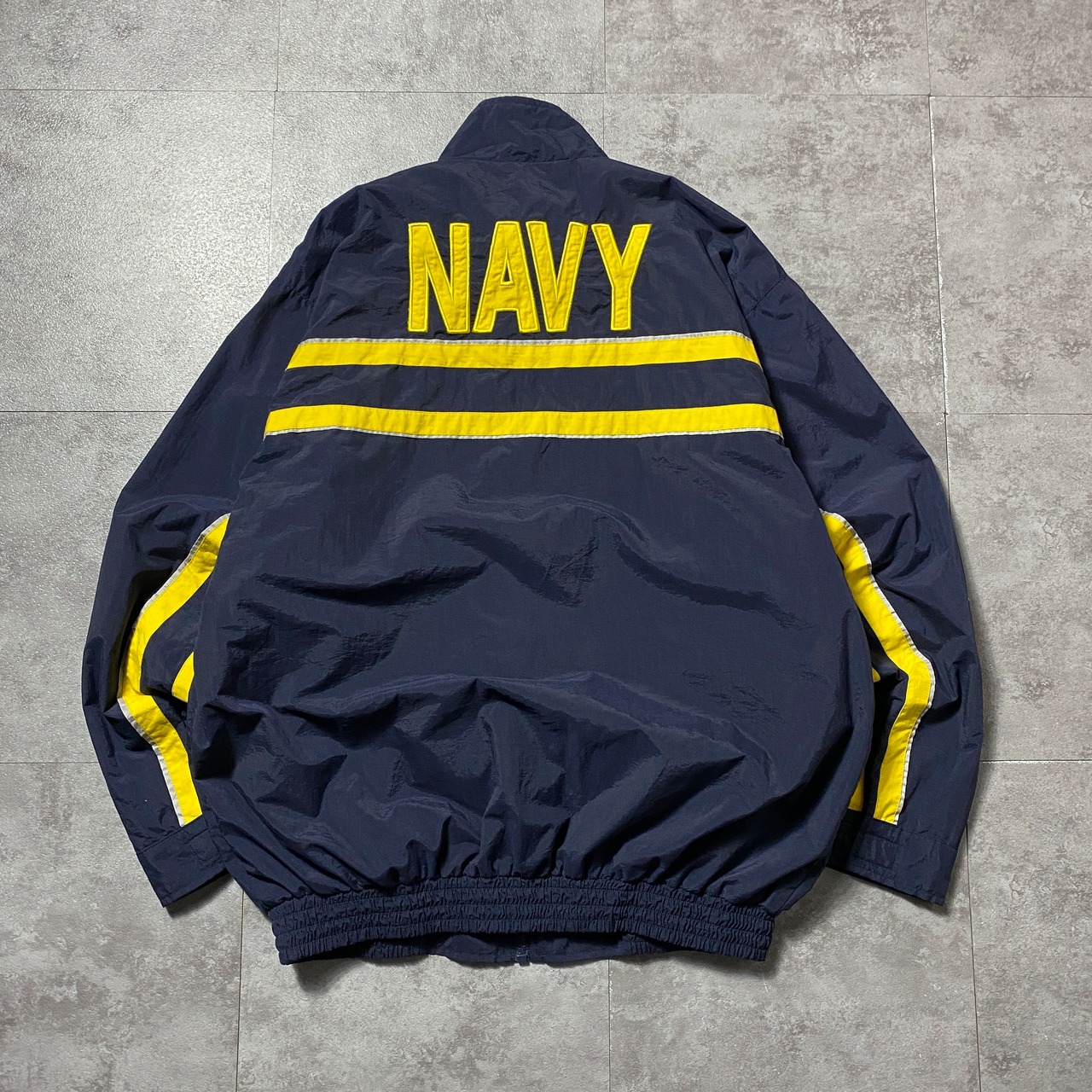 【マカオ製】00's U.S.NAVY アメリカ海軍 刺繍ワンポイント バックロゴ ミリタリー リクルーティング ナイロンジャケット