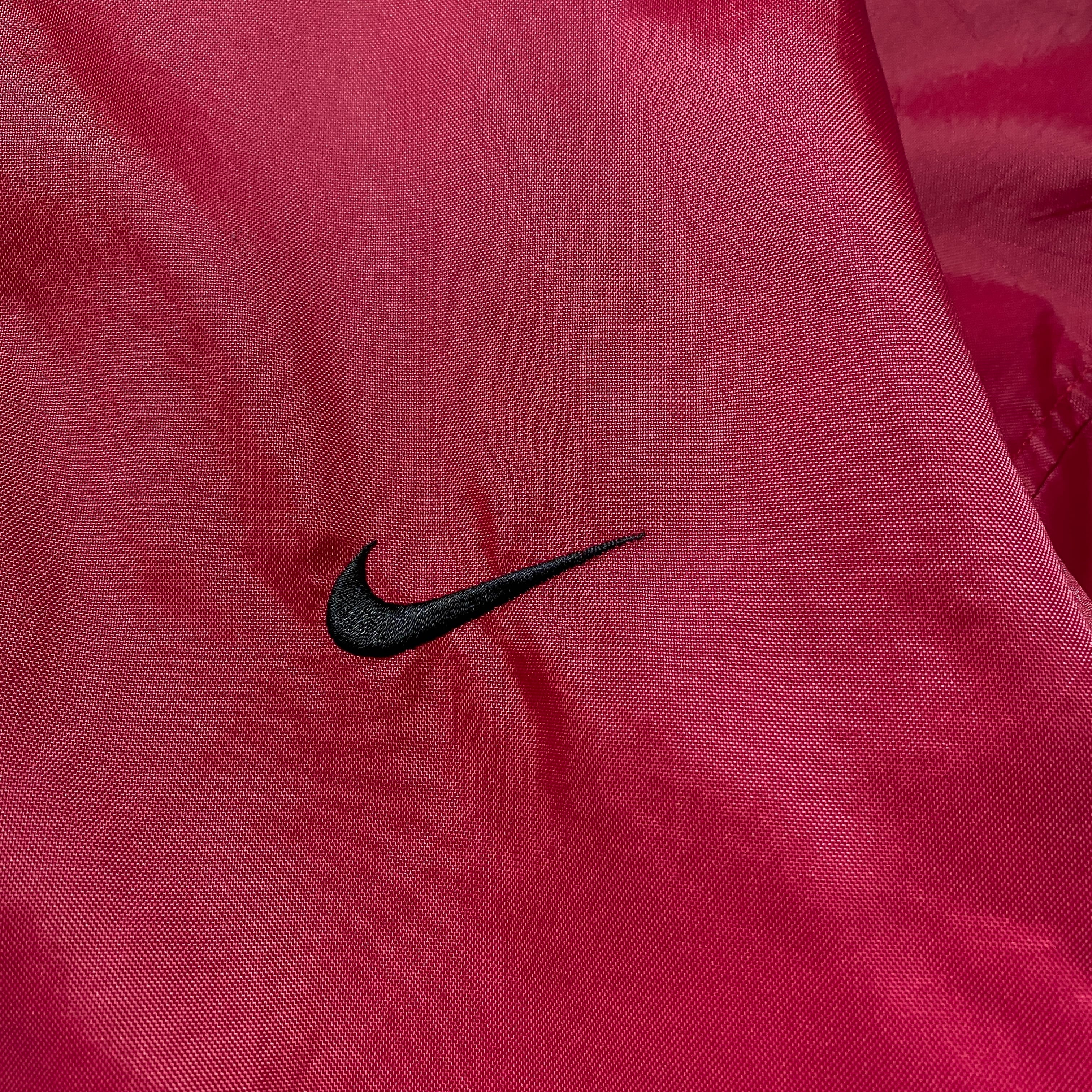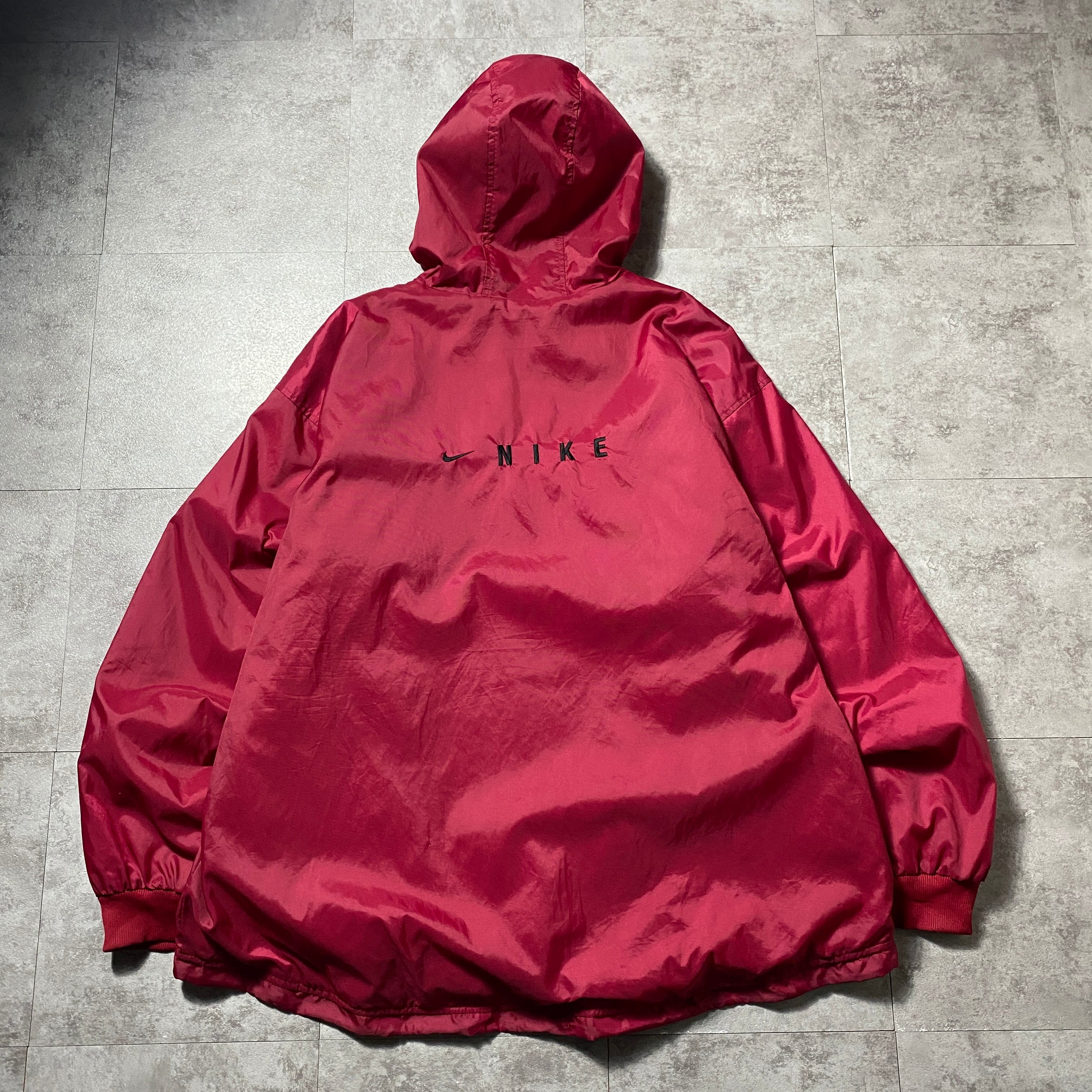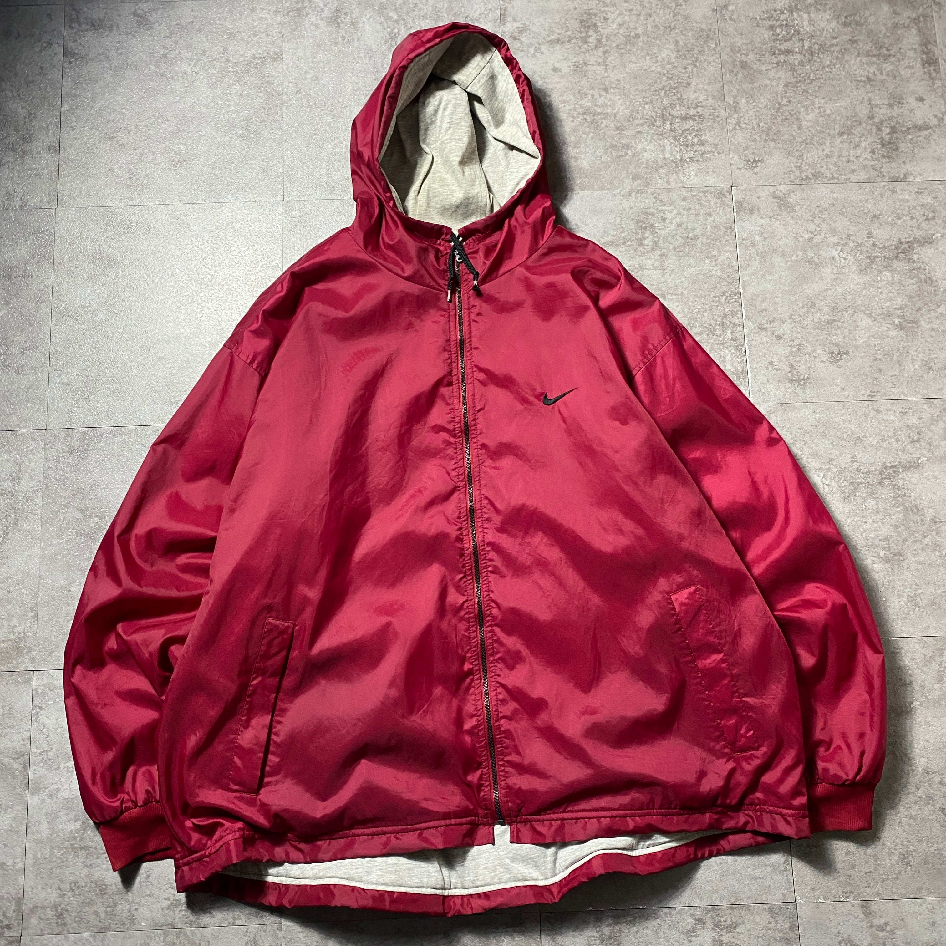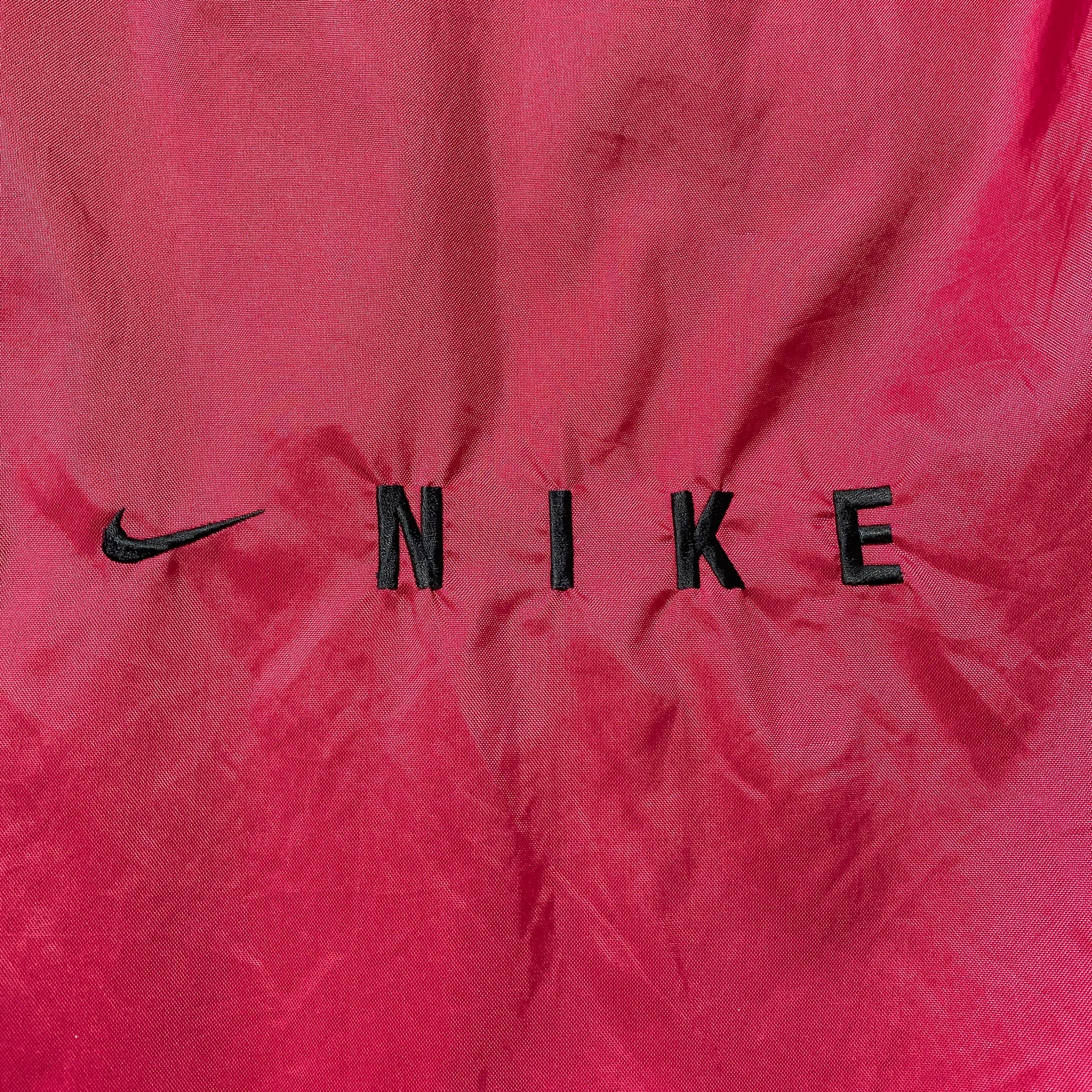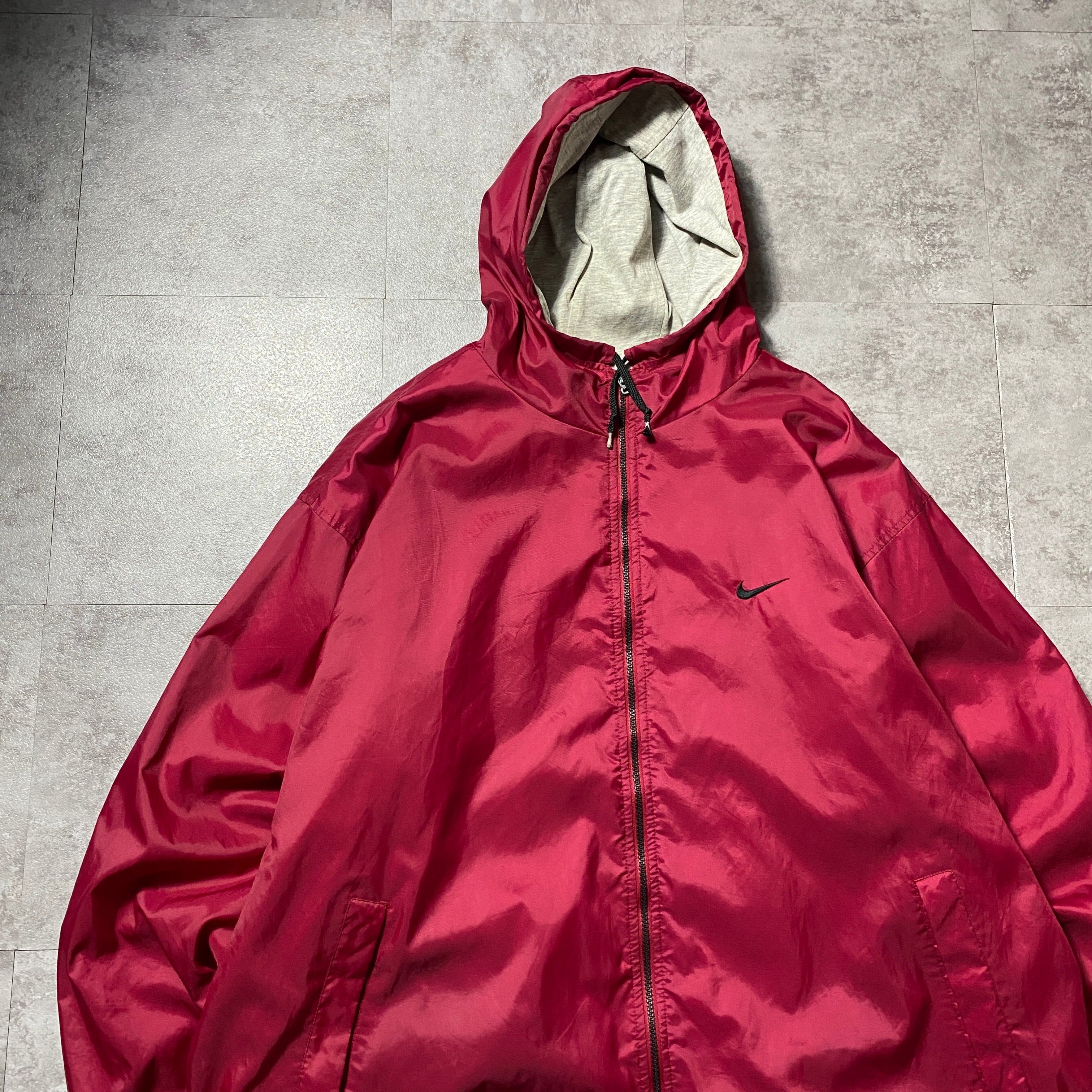 【Size:XXL】90's NIKE ナイキ スウォッシュ 刺繍ワンポイント バックロゴ レッド ナイロンジャケット