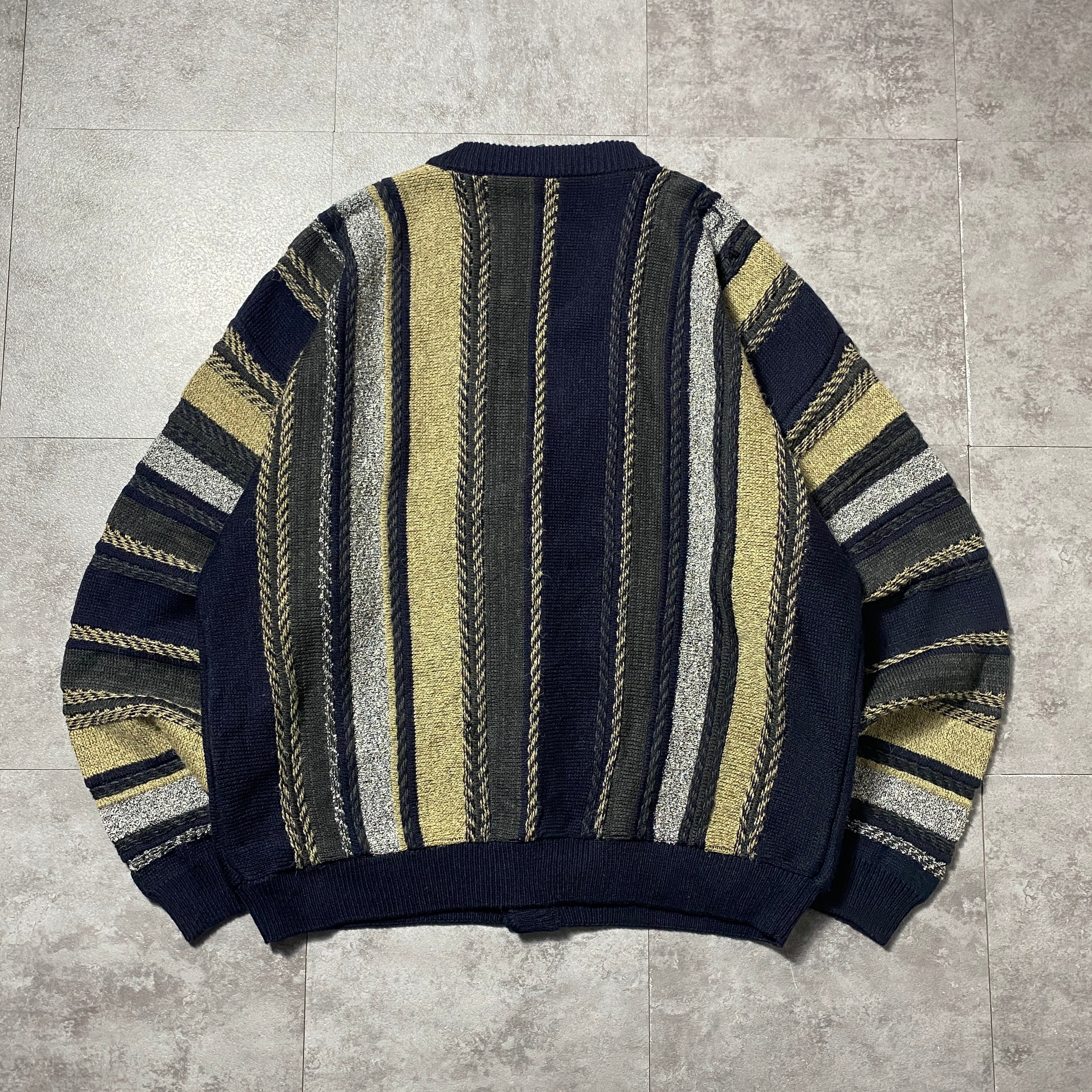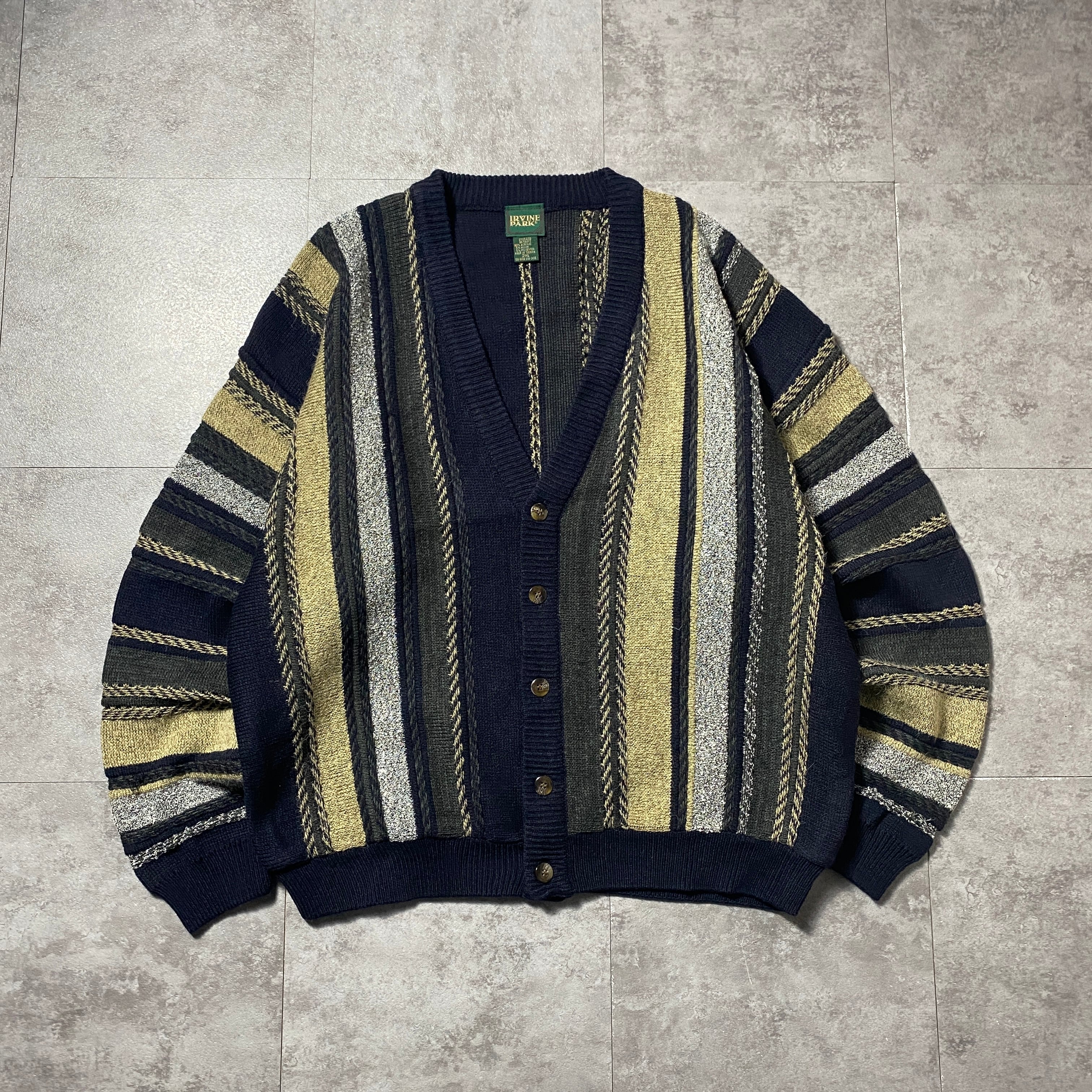 【Size:2XL】90's IRVINE PARK マルチカラー 3Dニット カーディガン