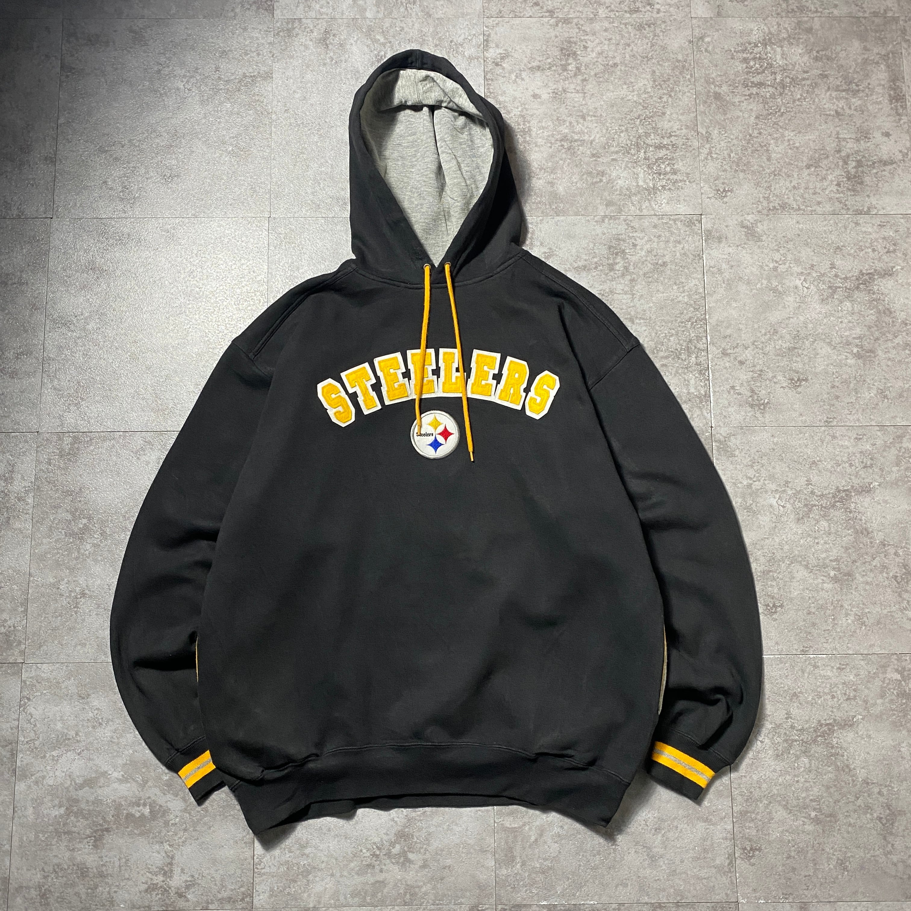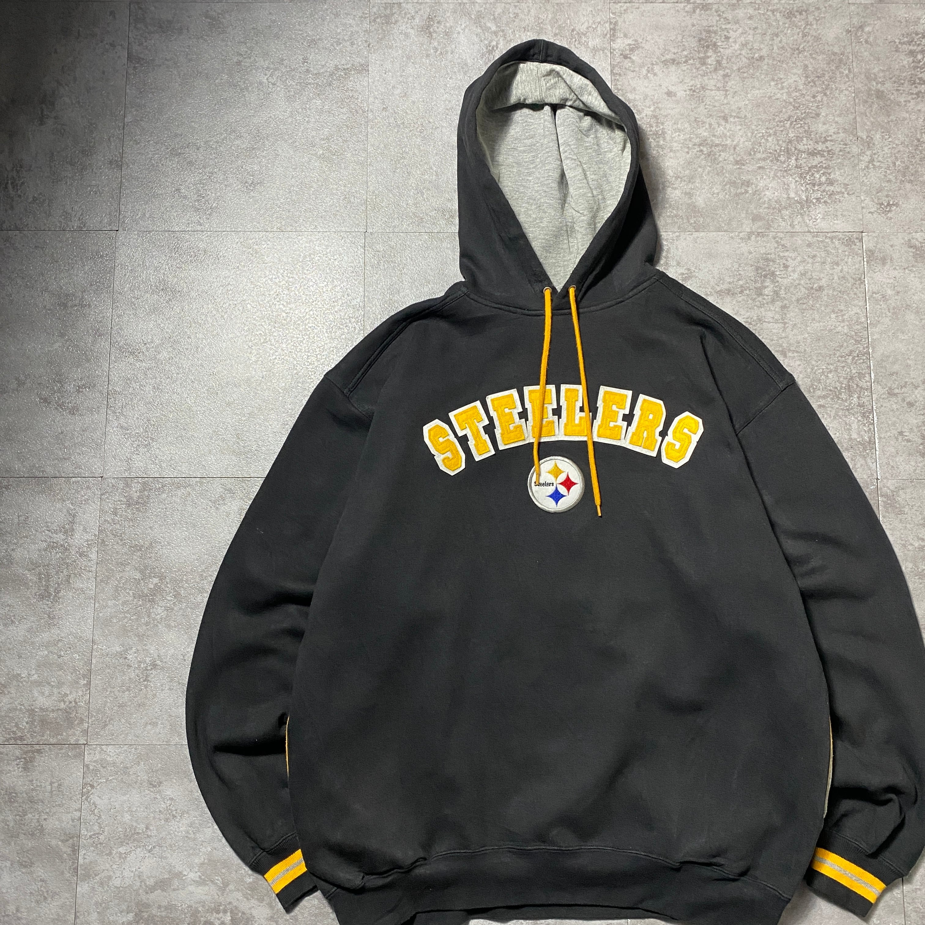 NFL Steelers スティーラーズ ワッペンロゴ ラインリブ ブラック スウェット パーカー