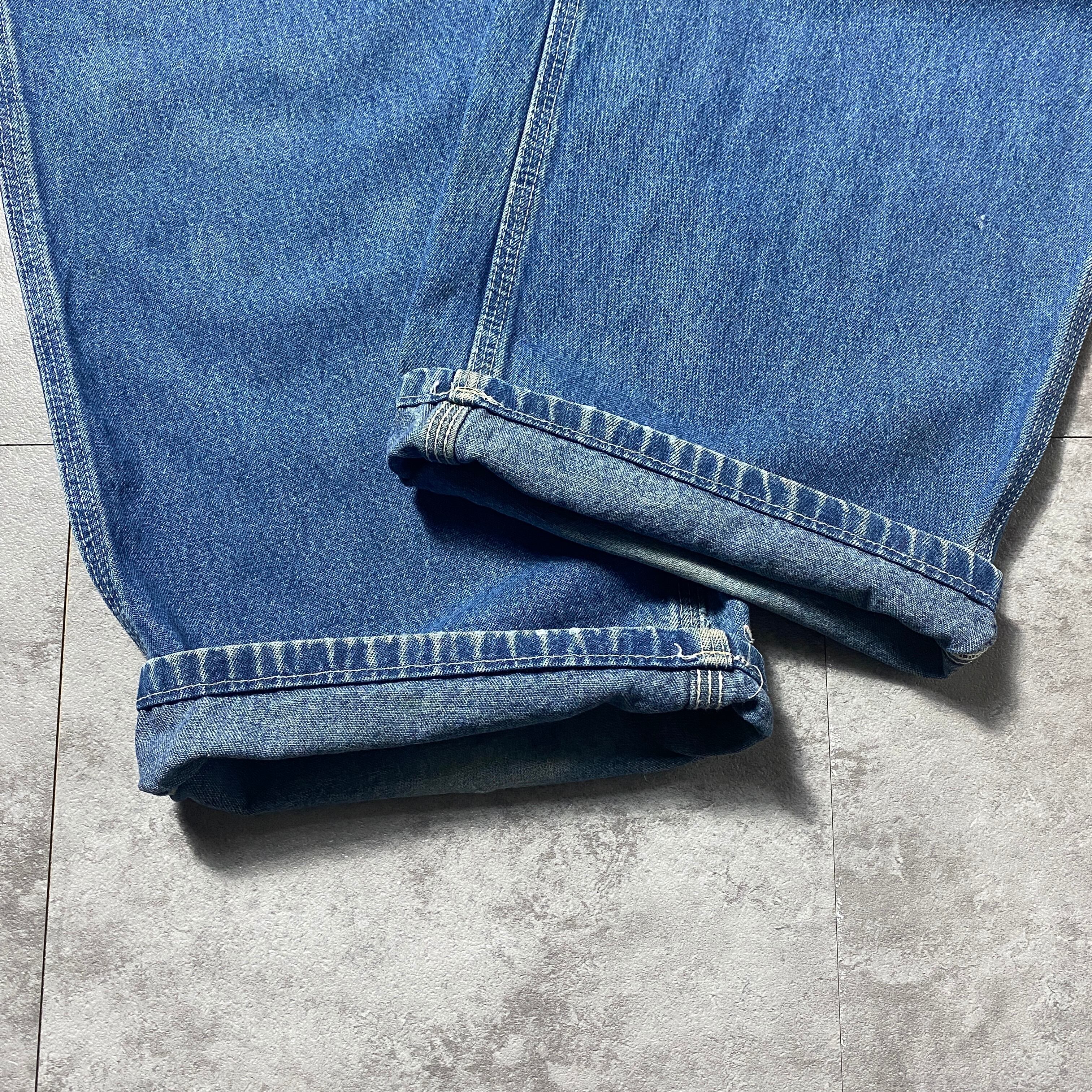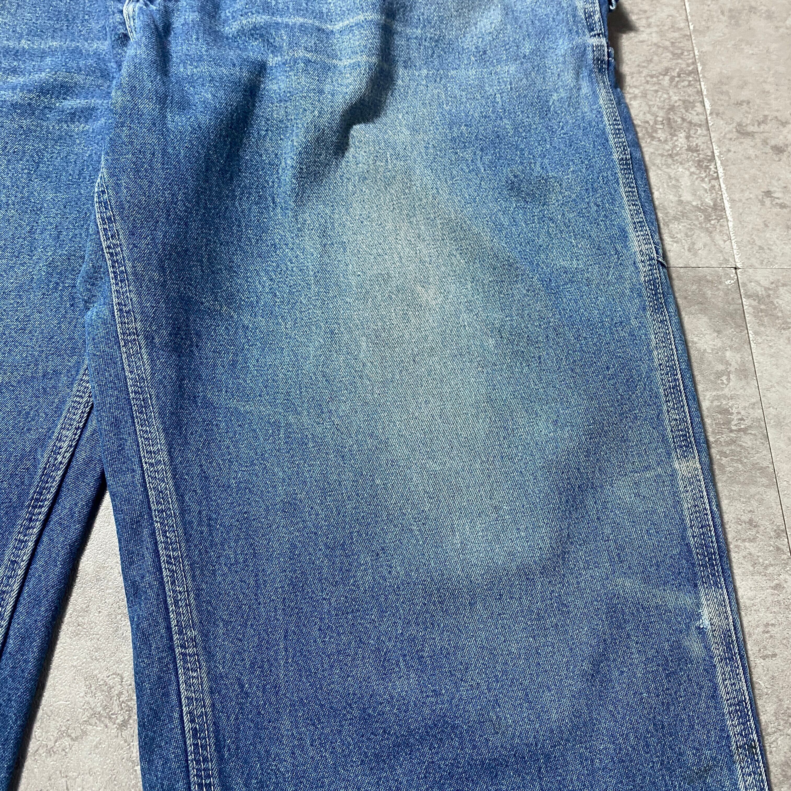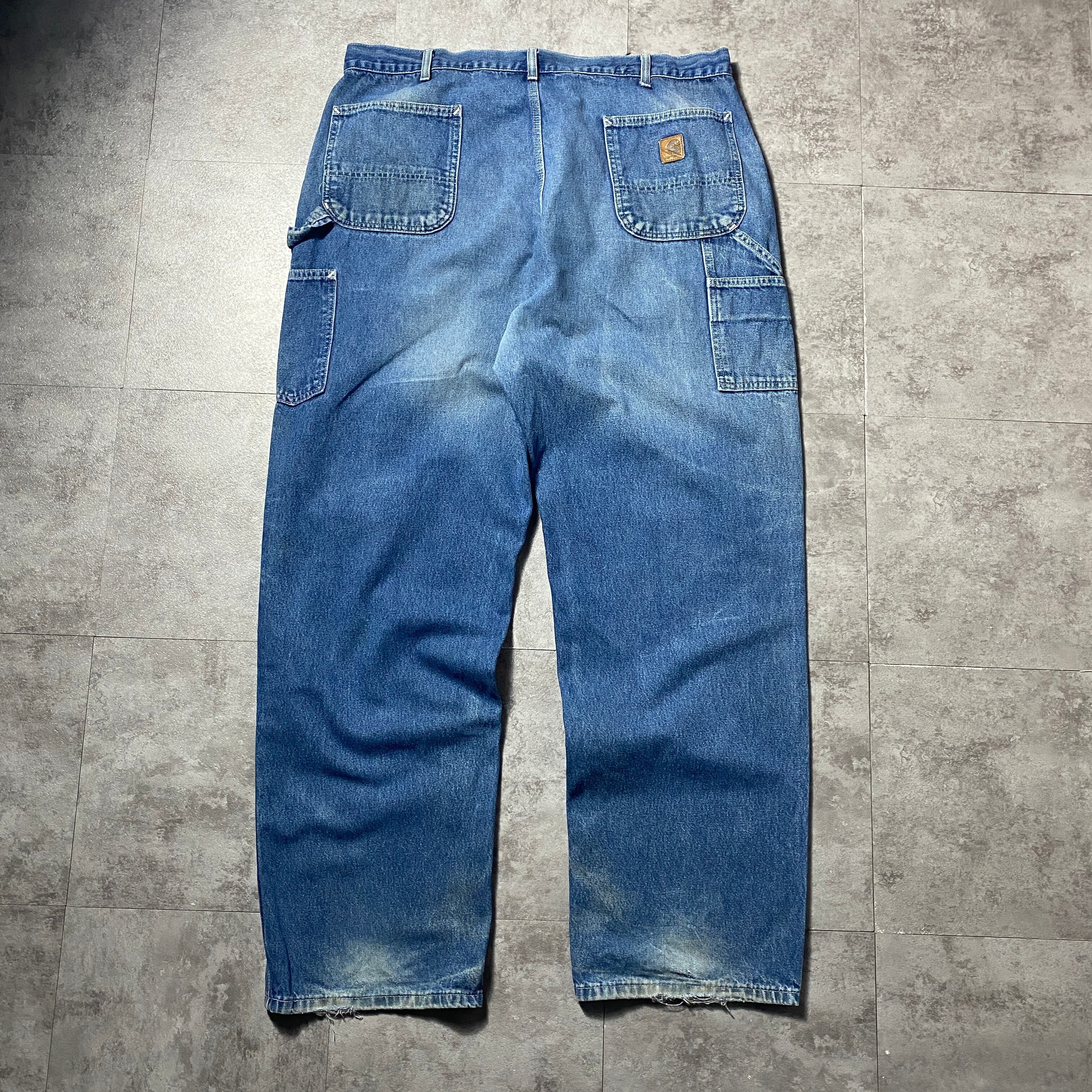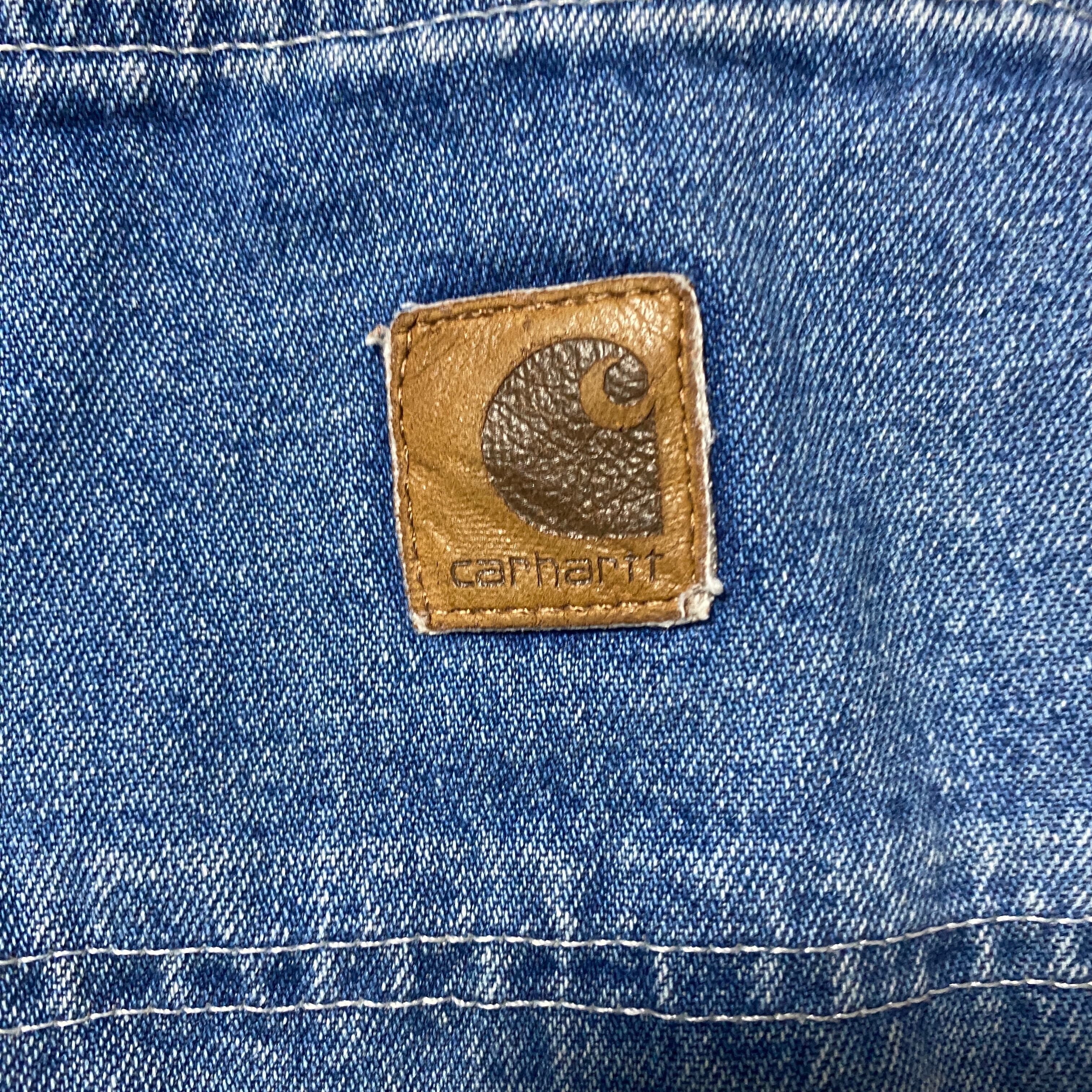 【42×34】00's carhartt カーハート ジッパーフライ レザーパッチ 縦落ち ヒゲ デニム ペインターパンツ