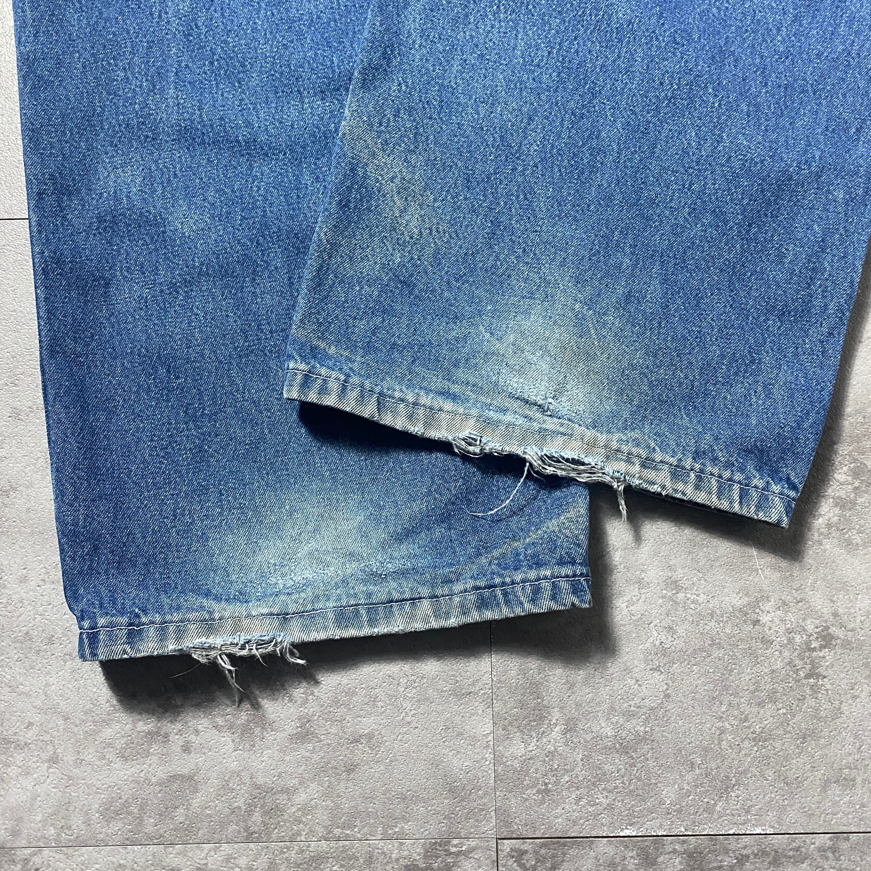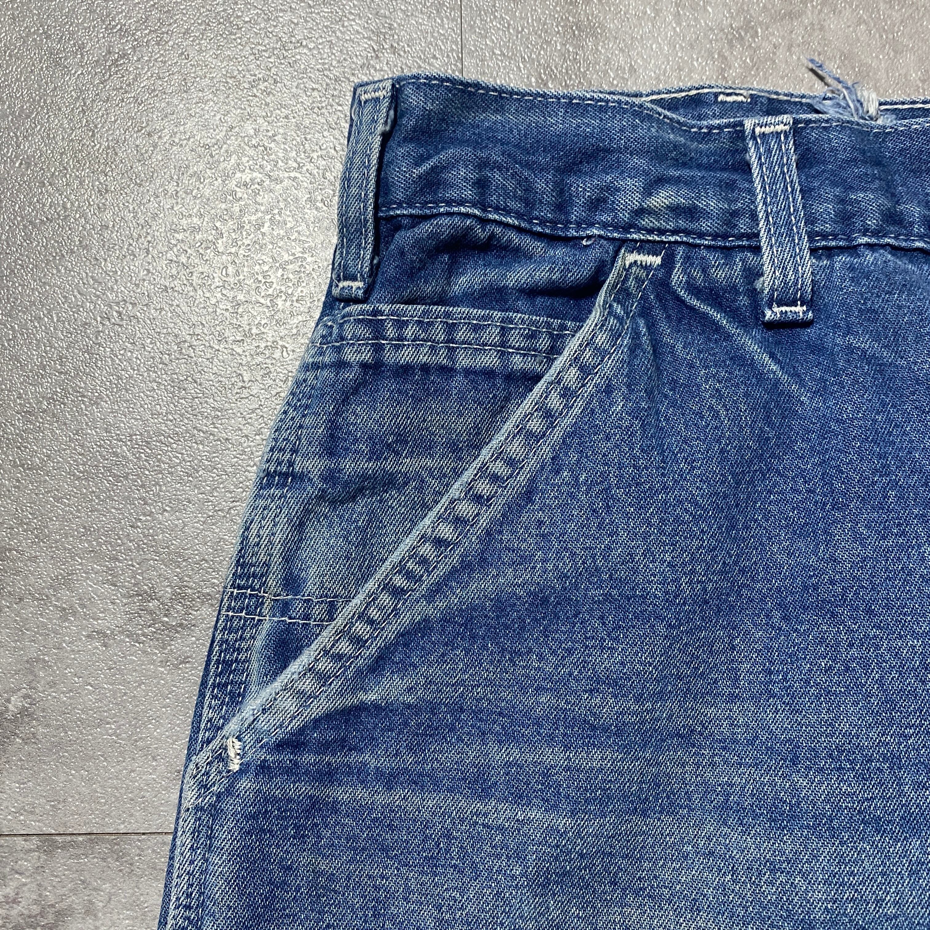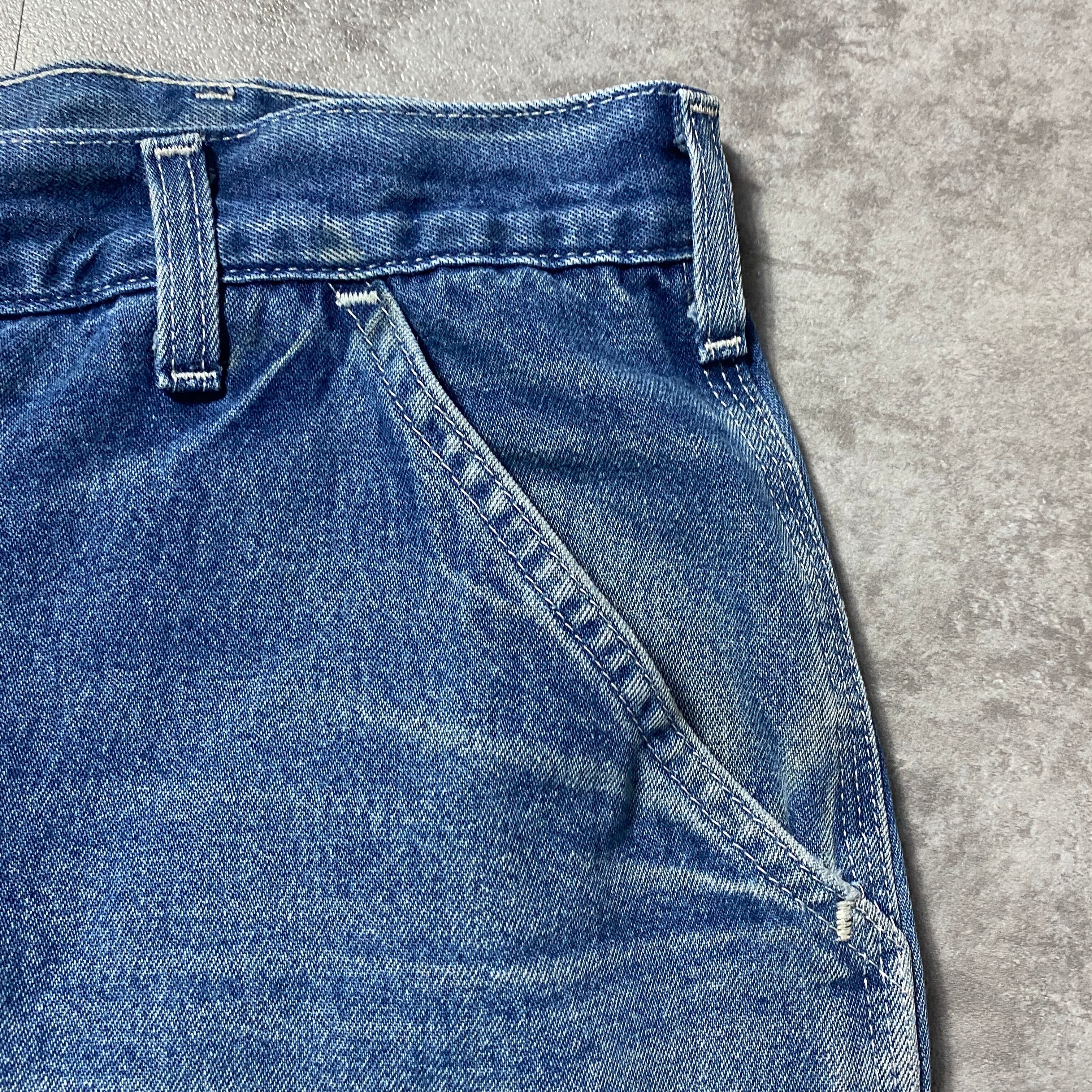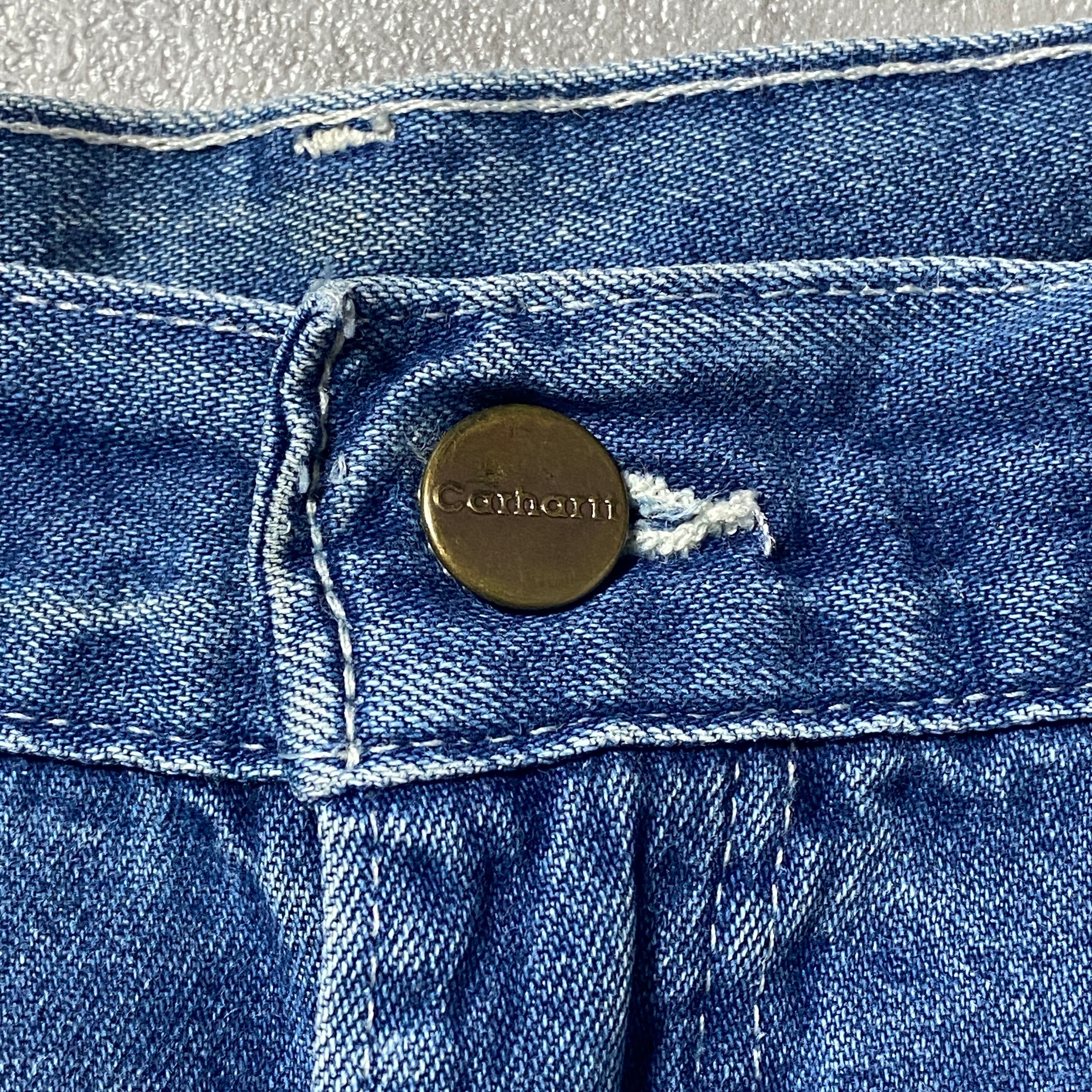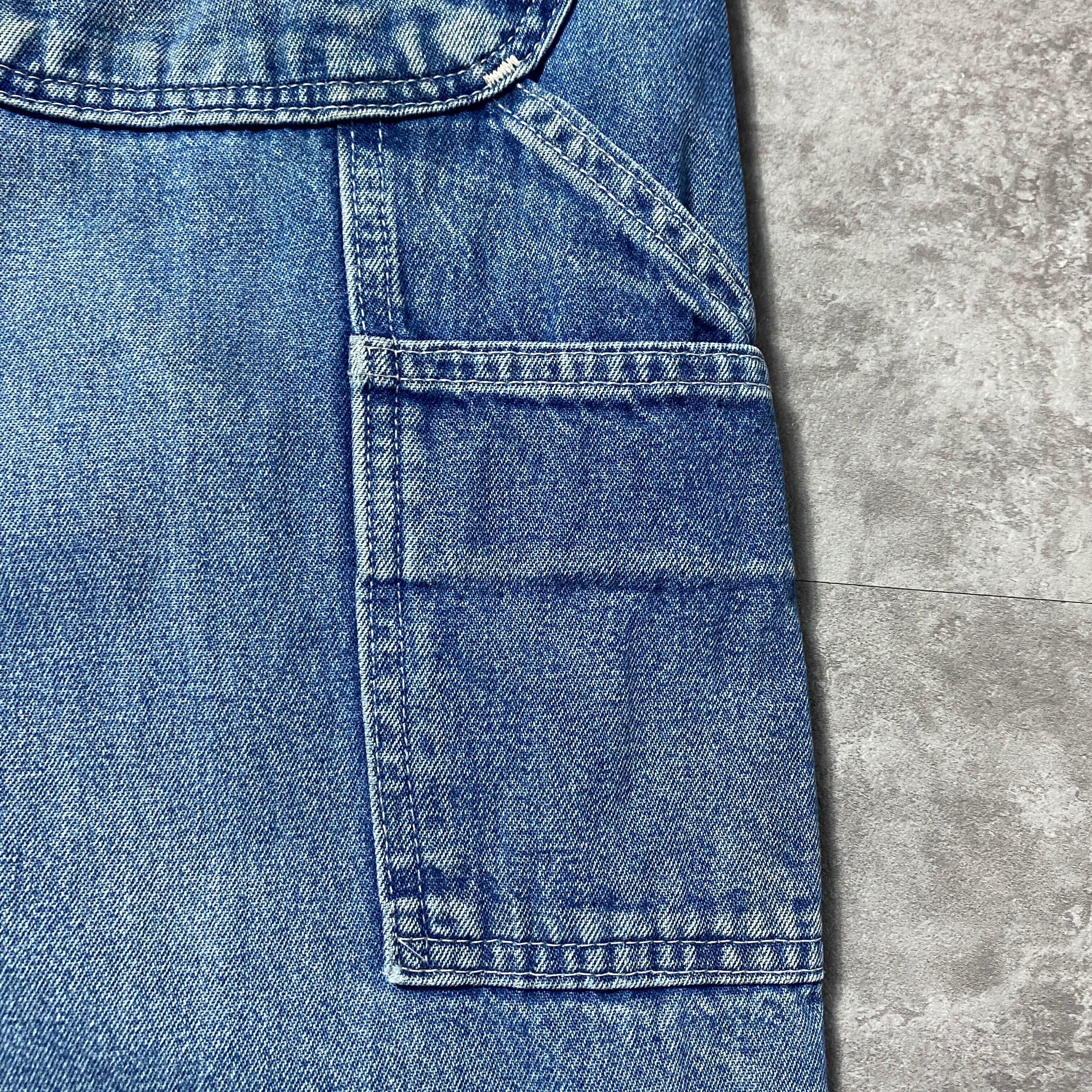 【42×34】00's carhartt カーハート ジッパーフライ レザーパッチ 縦落ち ヒゲ デニム ペインターパンツ