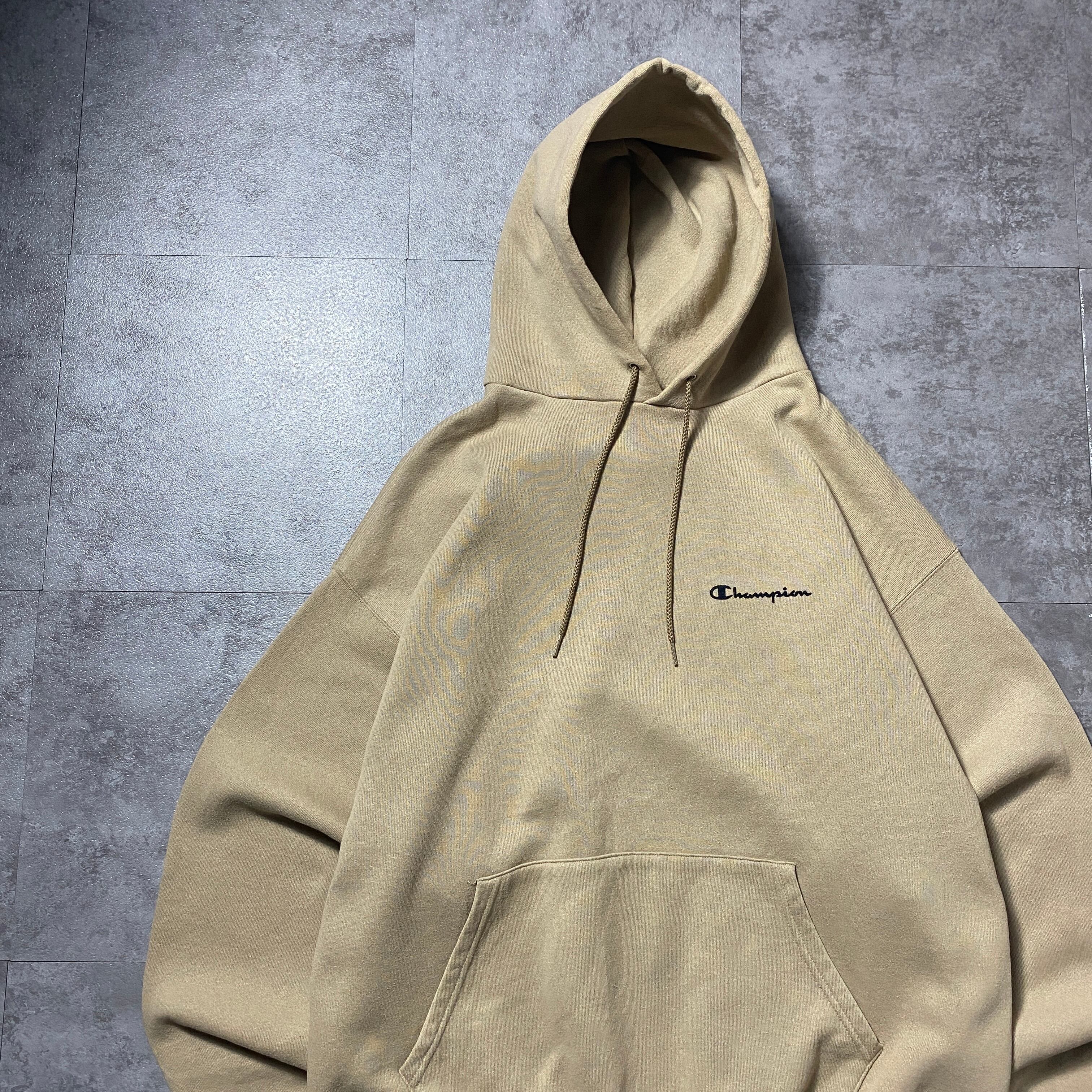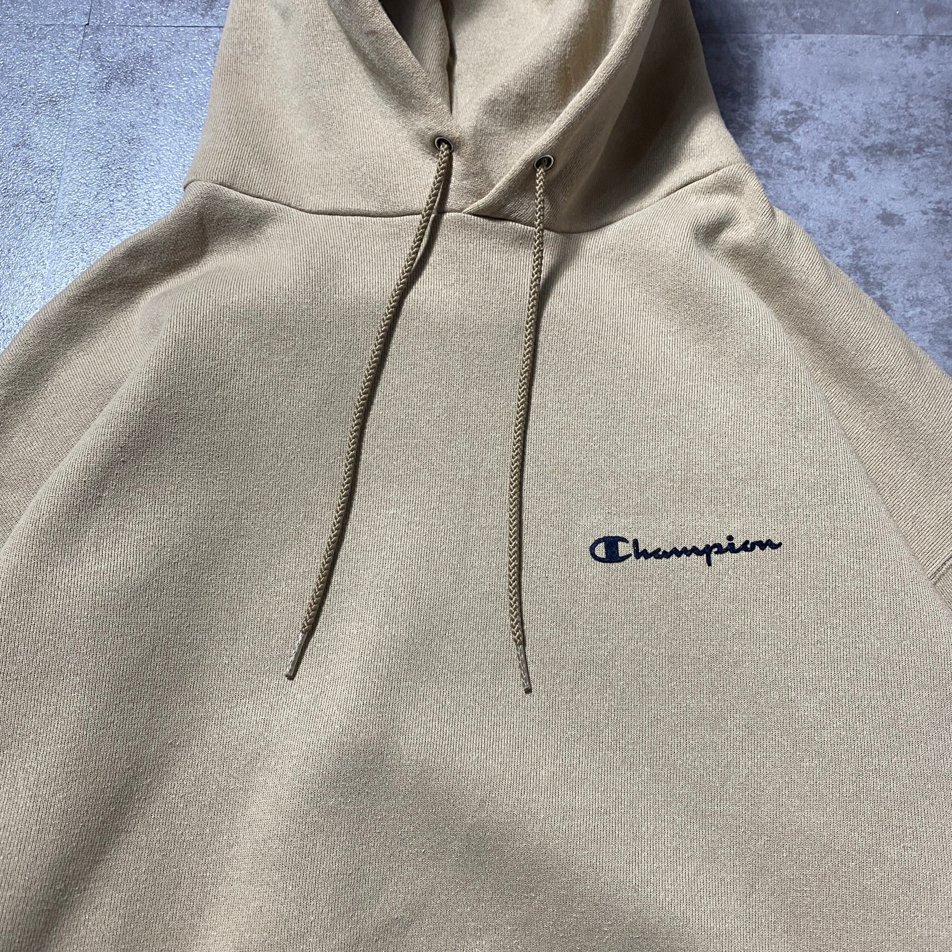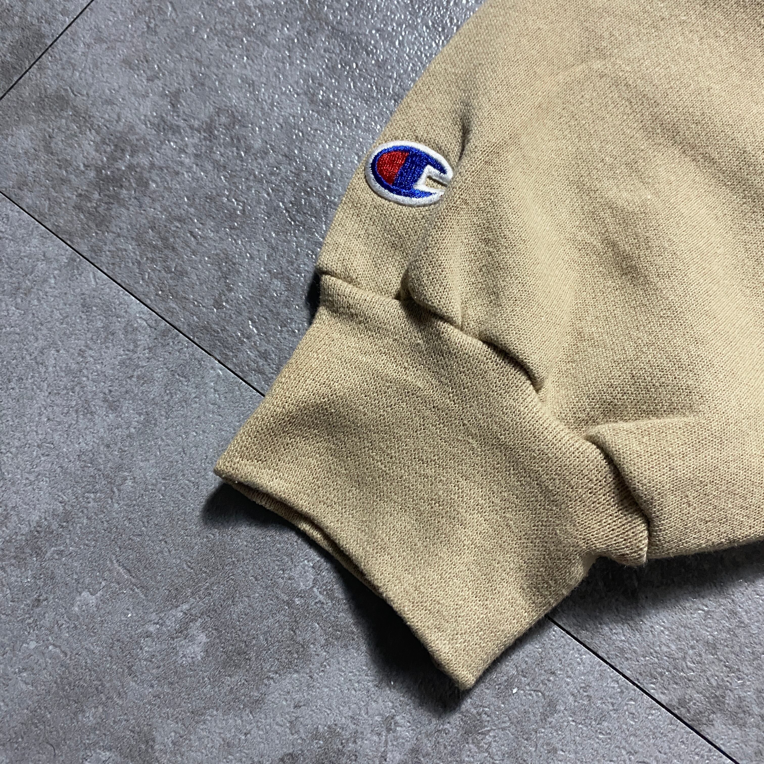 【Size:XL】90's 00's Champion チャンピオン ワンポイント フェルトロゴ ベージュ スウェット パーカー