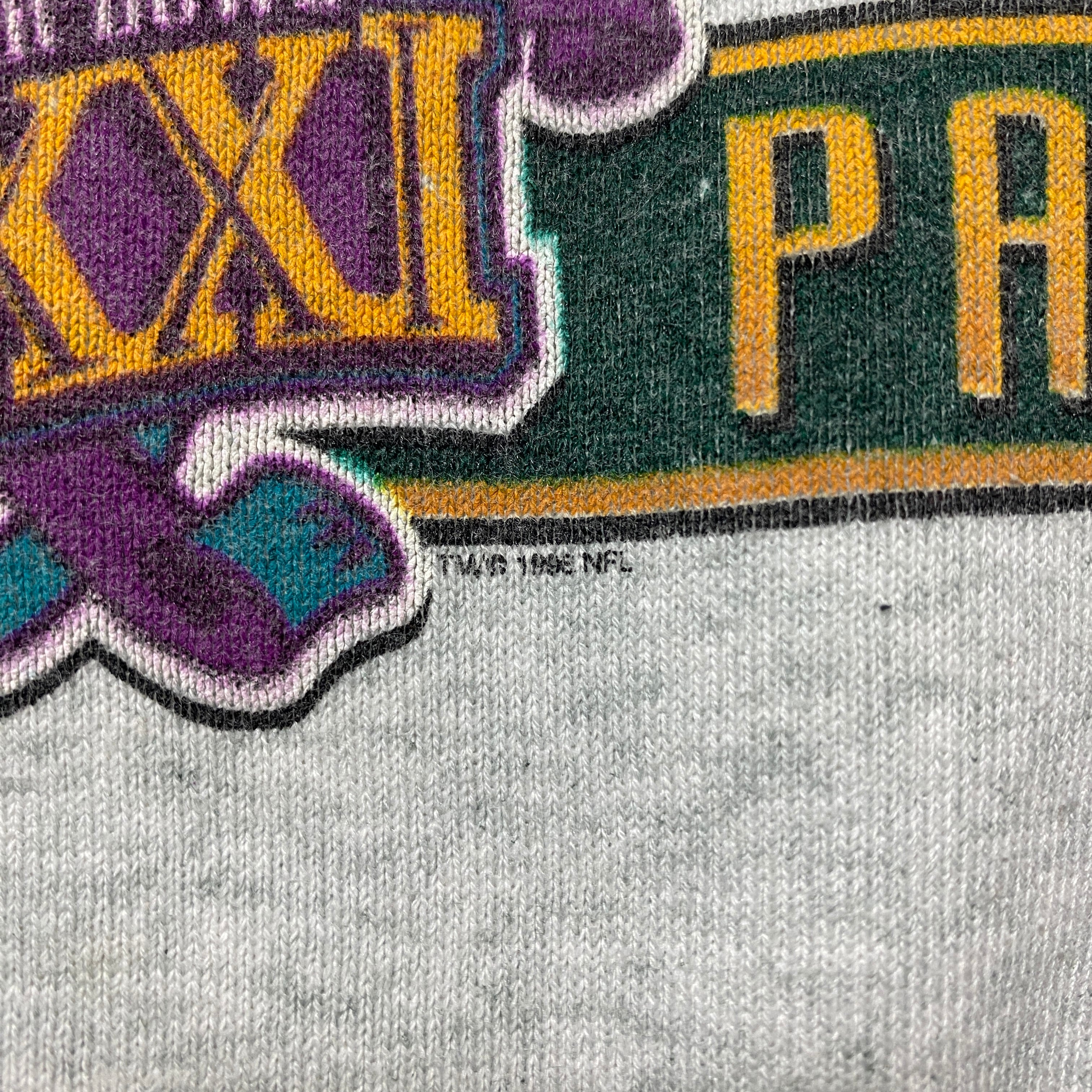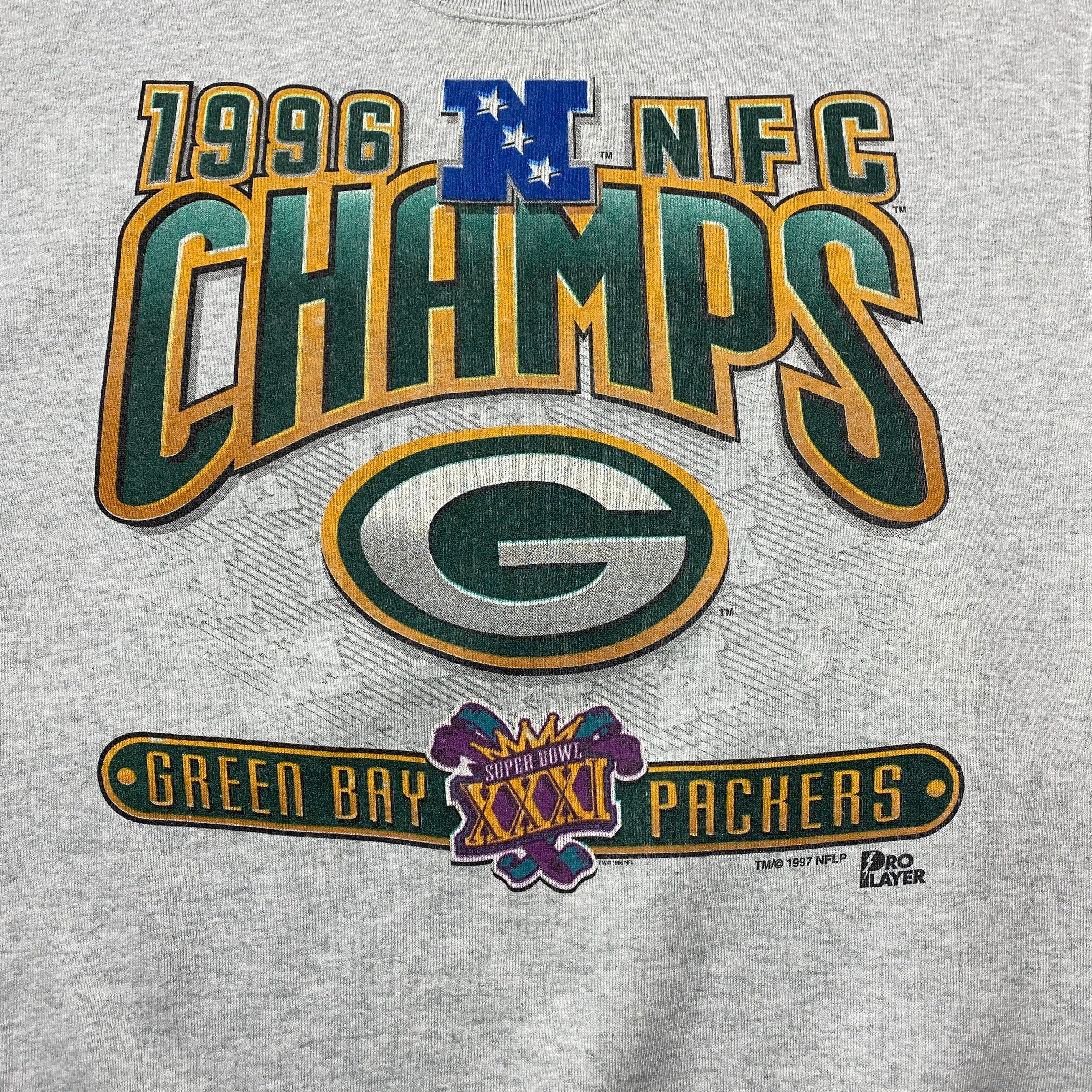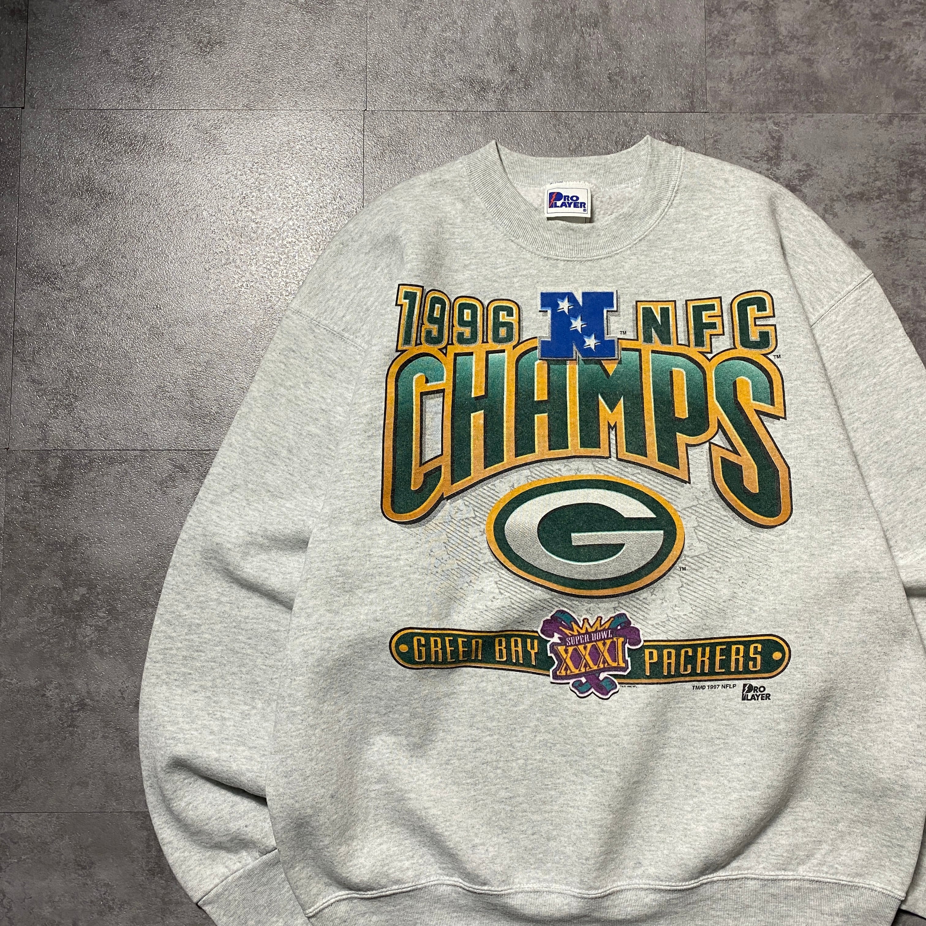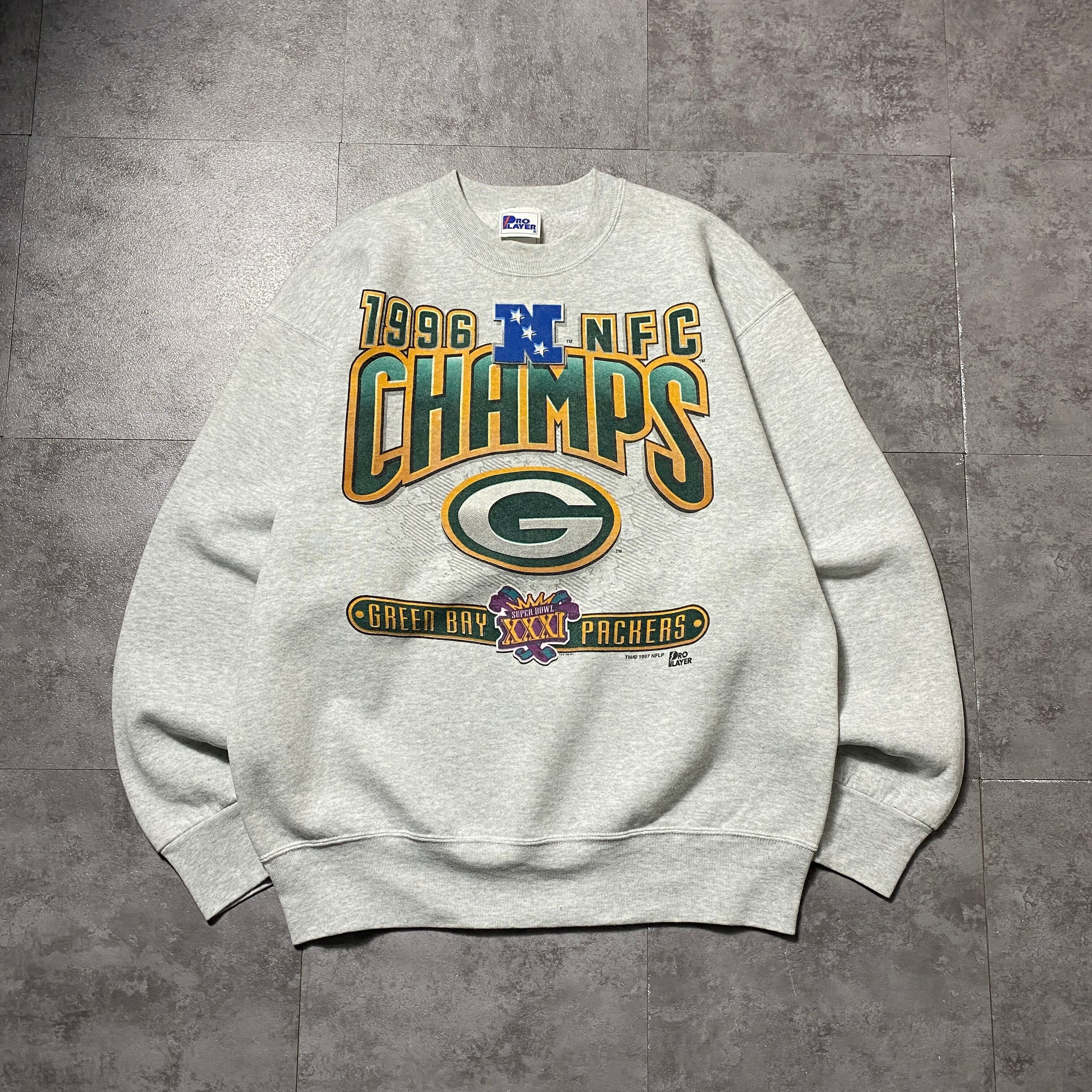 【USA製】90's PRO PLAYER NFL GREEN BAY PACKERS グリーンベイパッカーズ プリント グレー スウェット トレーナー