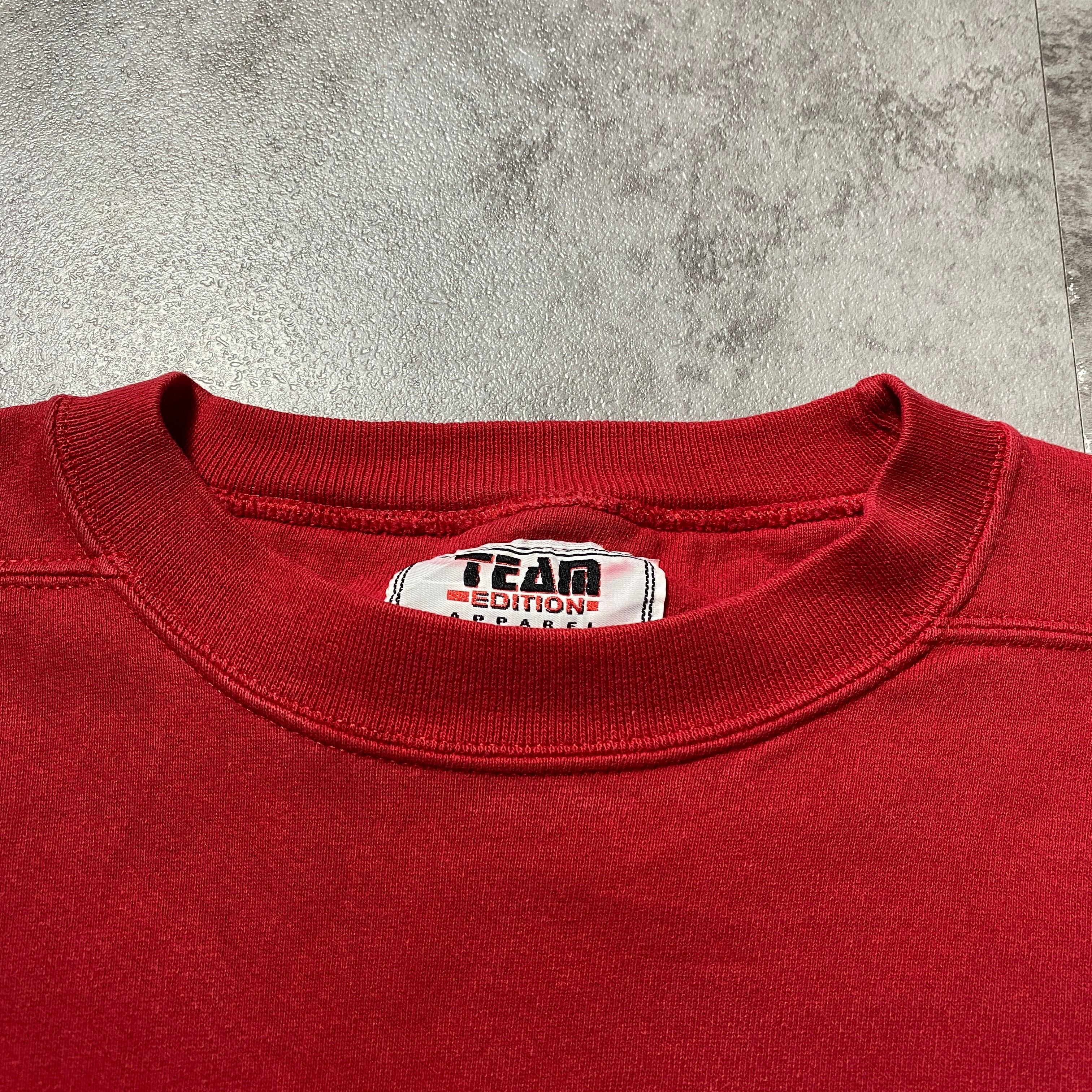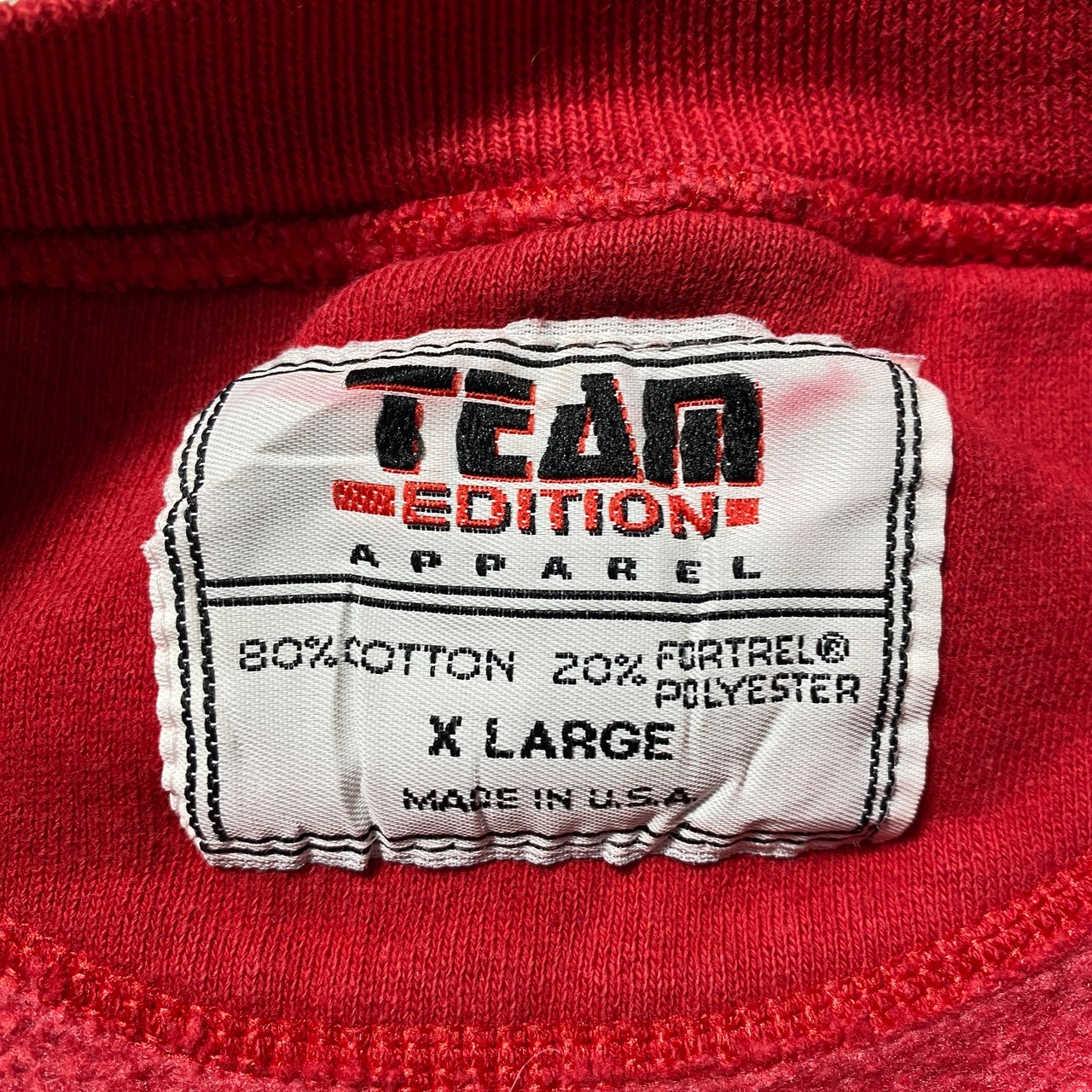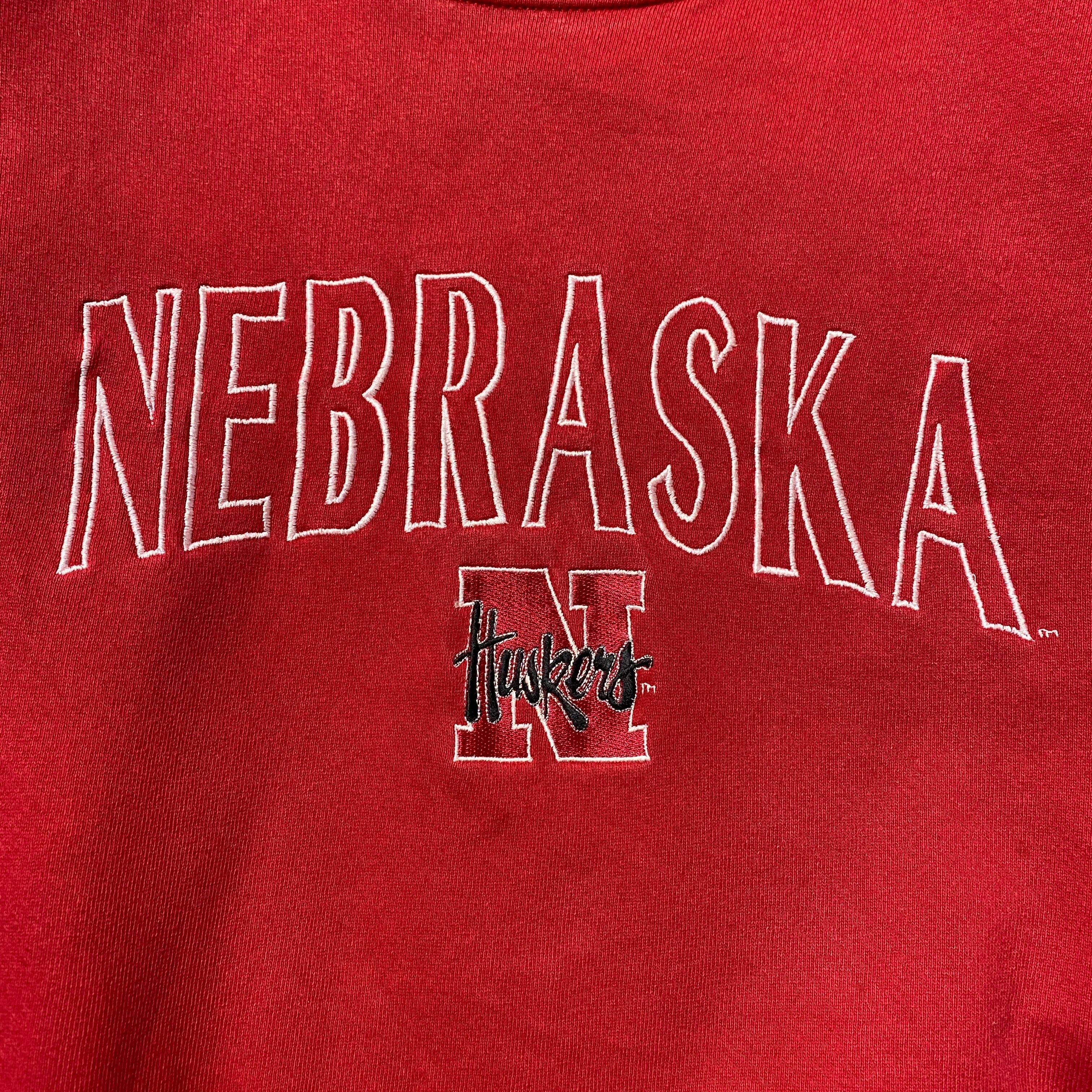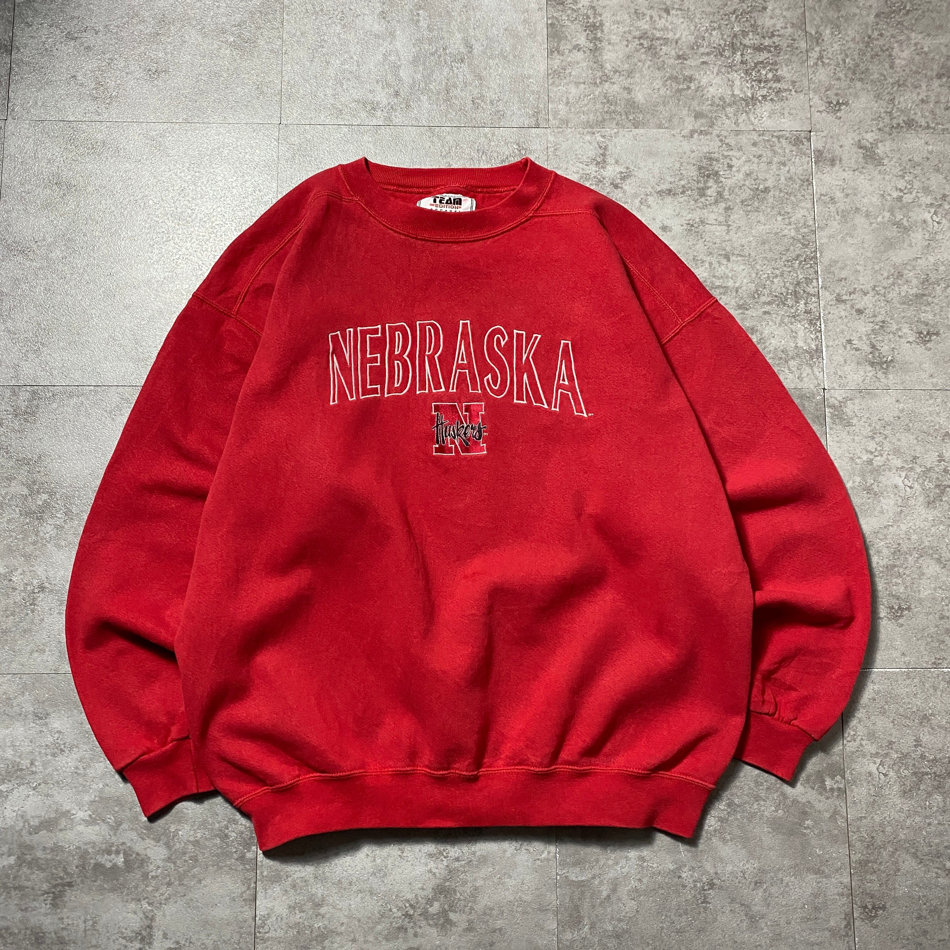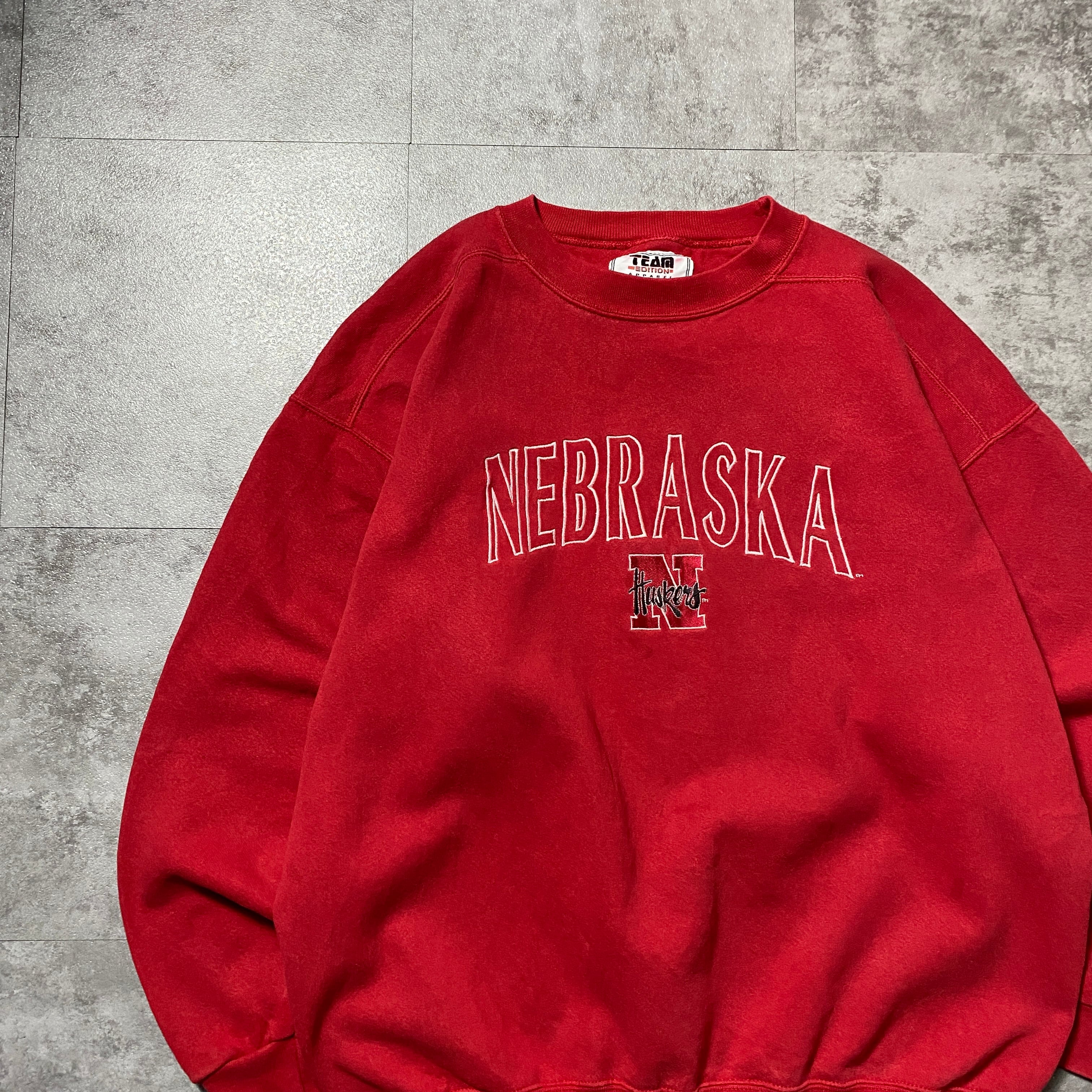 【USA製】90's TEAM EDITION Nebraska Cornhuskers ネブラスカ・コーンハスカーズ 刺繍ロゴ XLサイズ レッド スウェット トレーナー