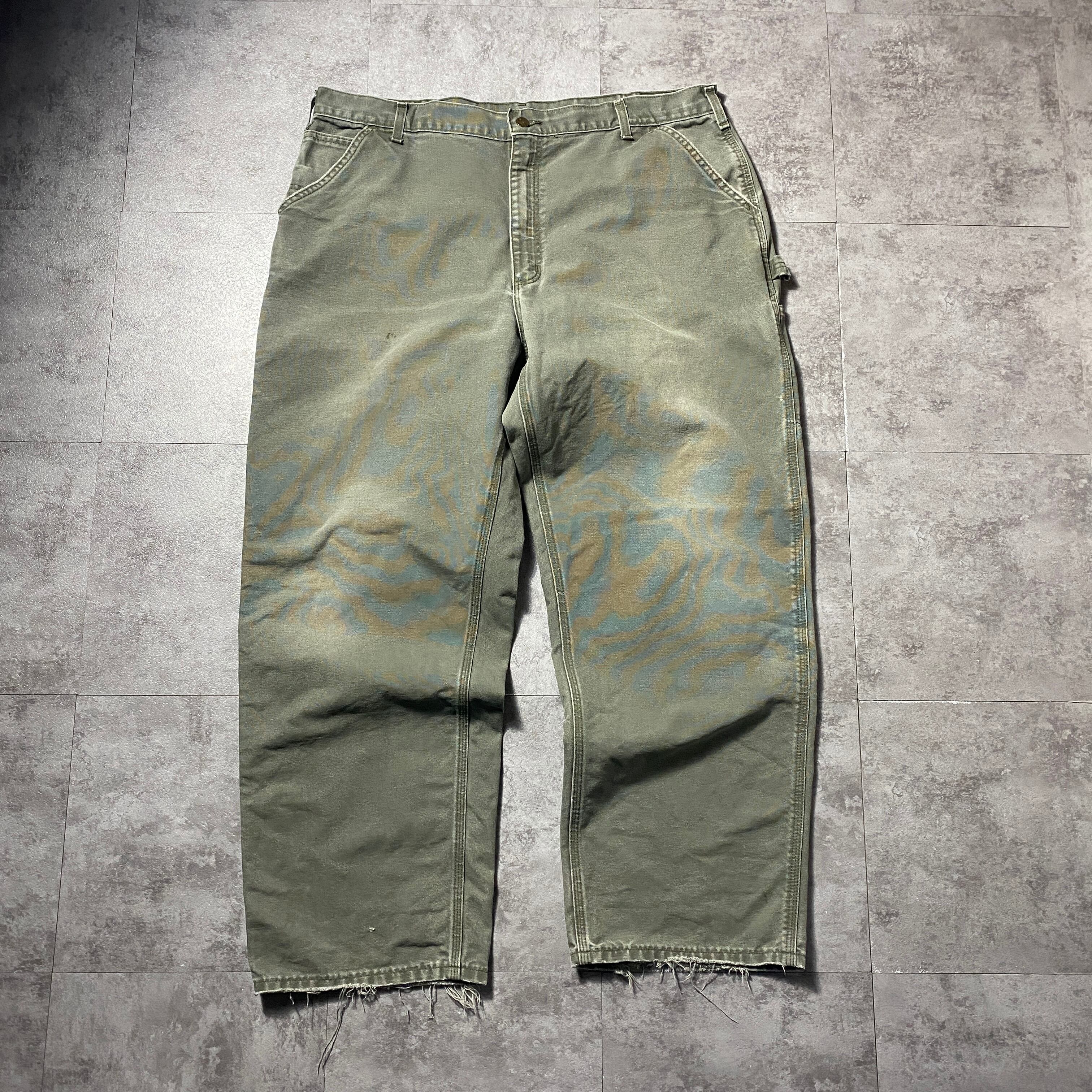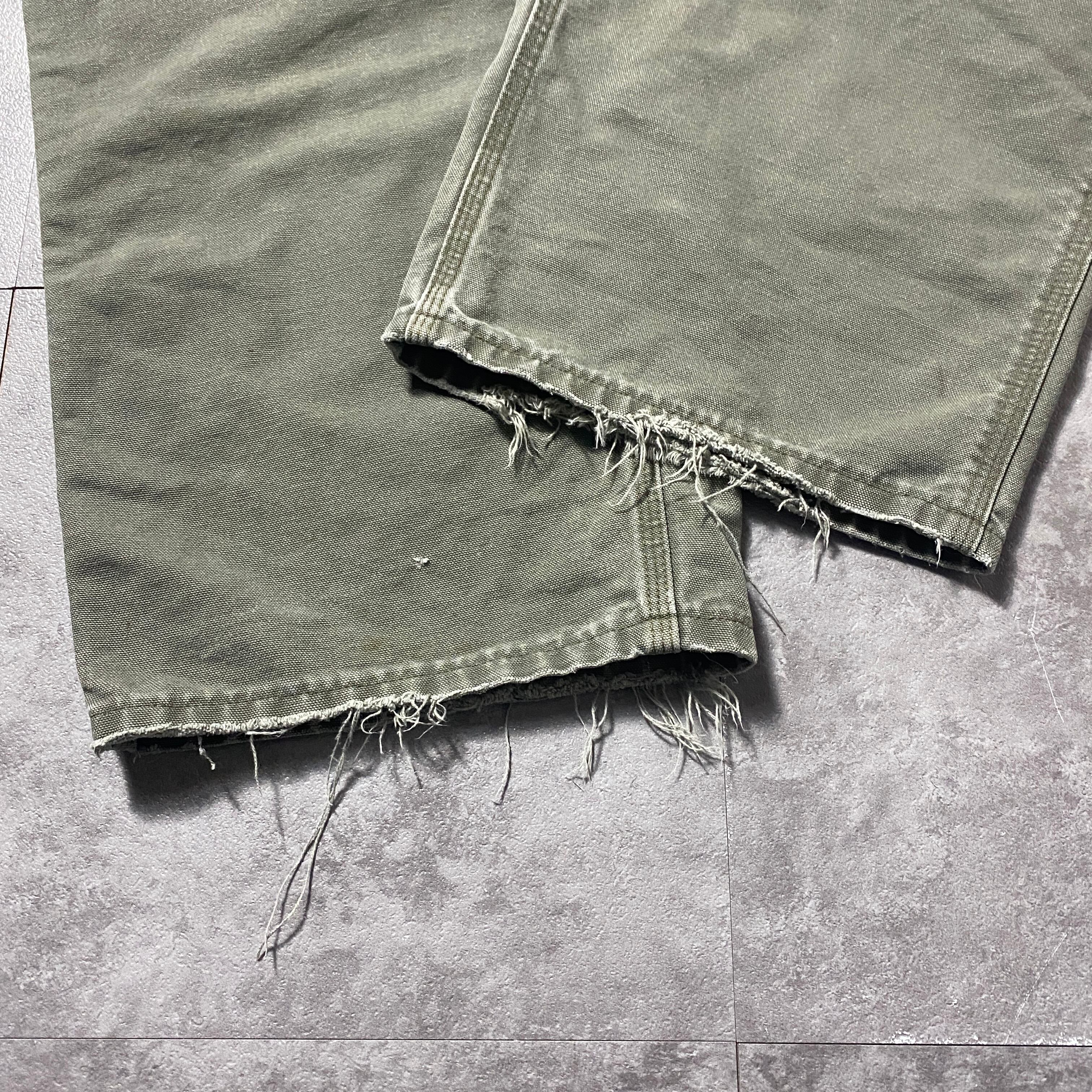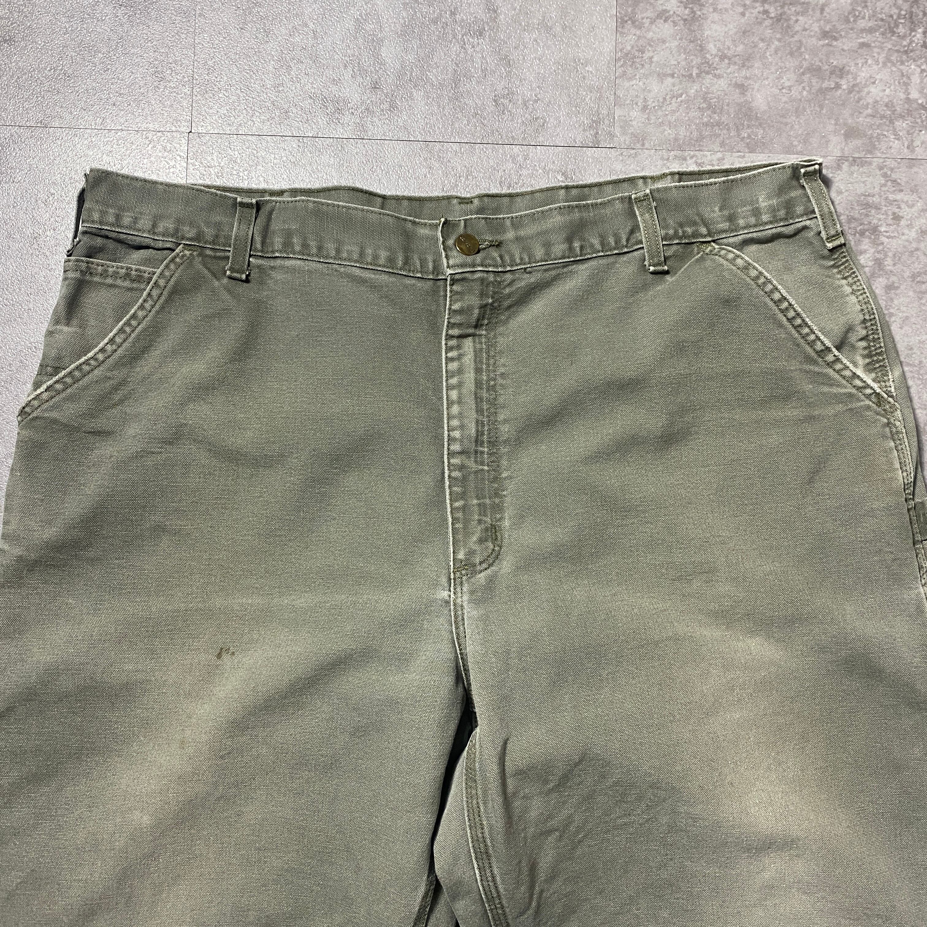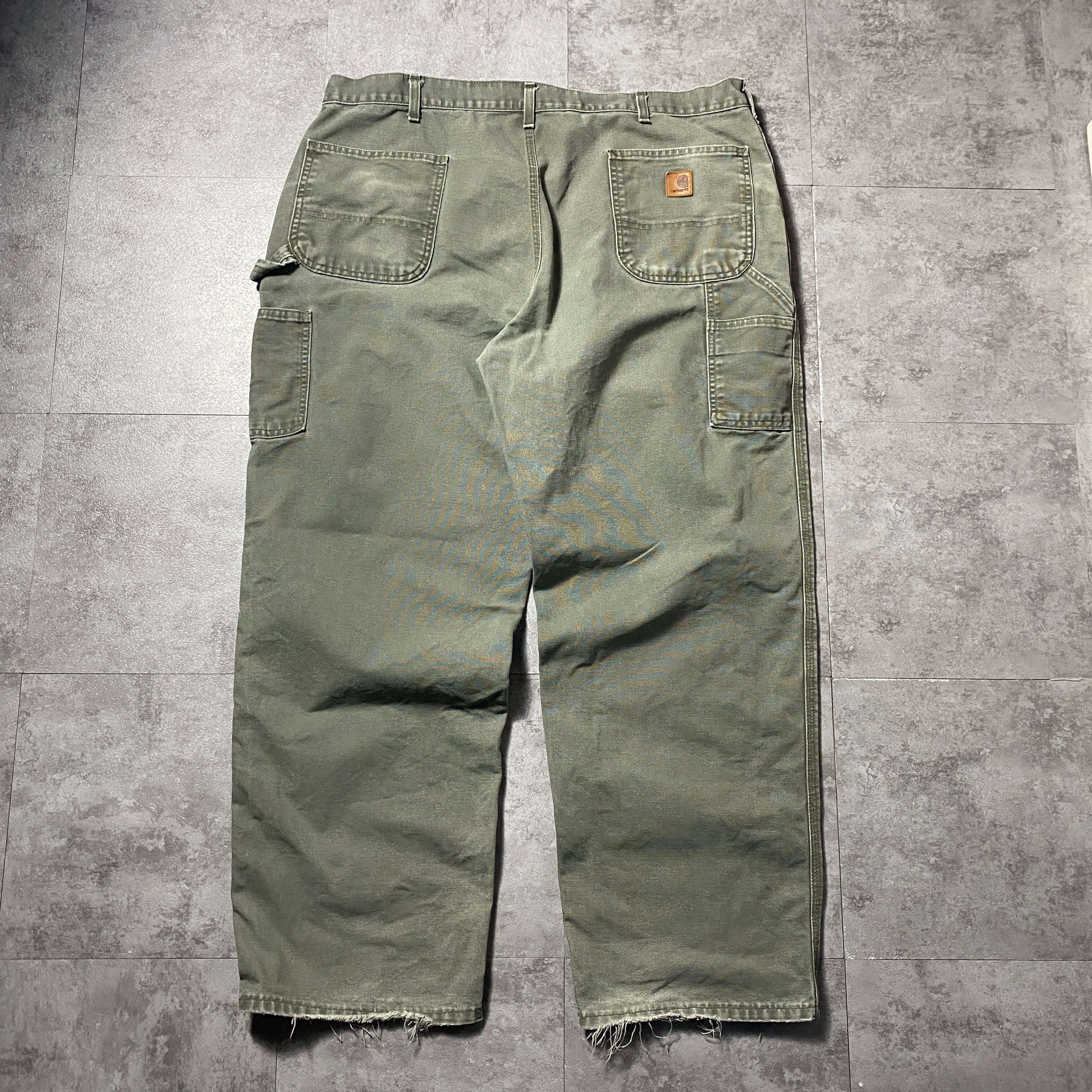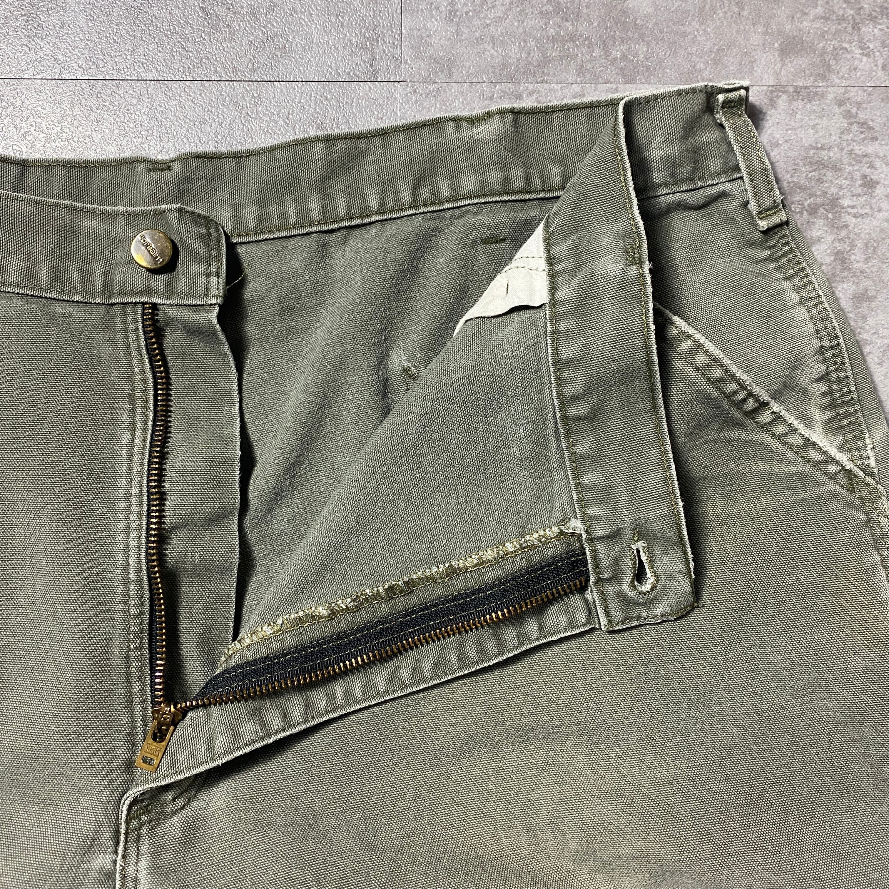 【42×32】carhartt カーハート ジッパーフライ カーキグリーン ダック生地 ペインターパンツ ワークパンツ