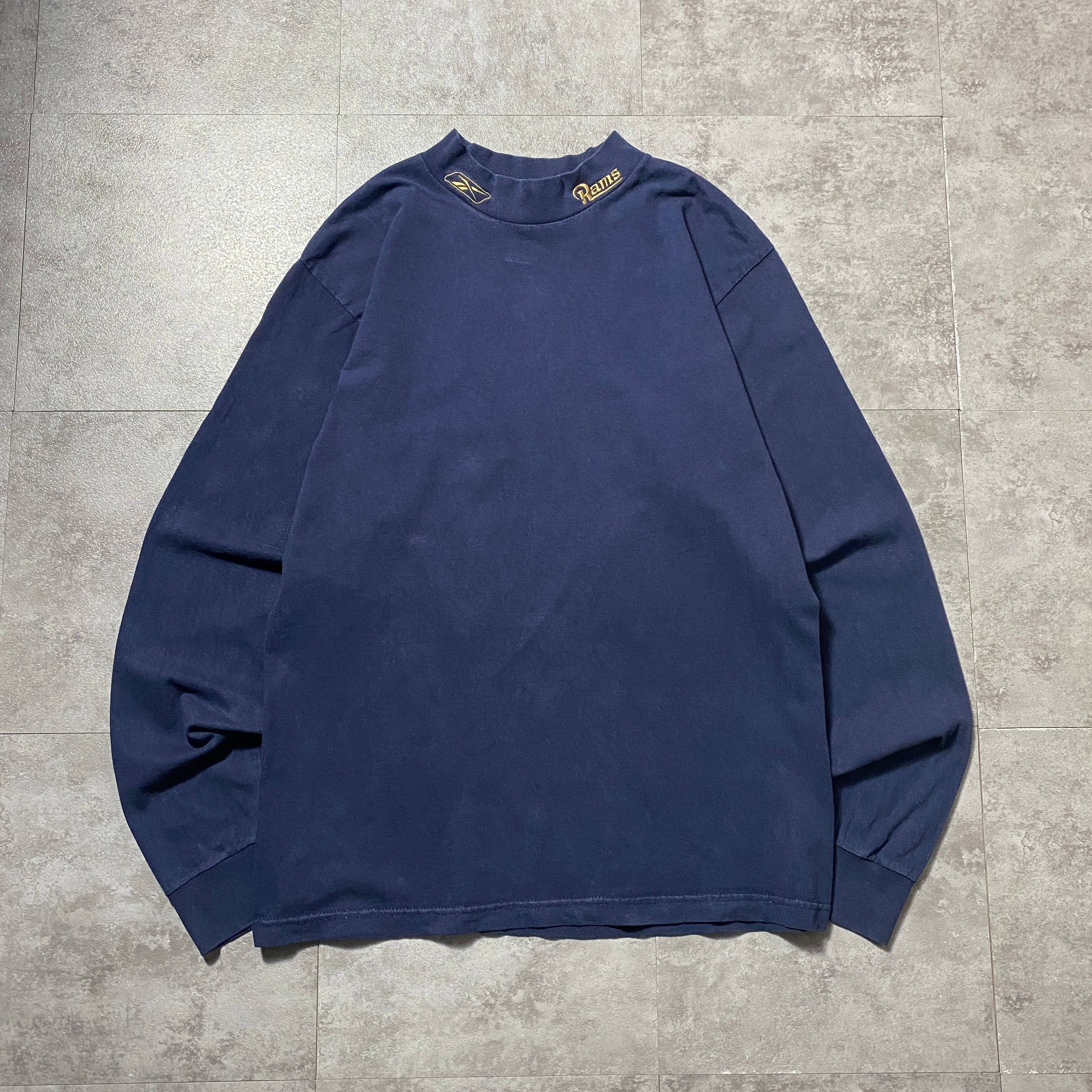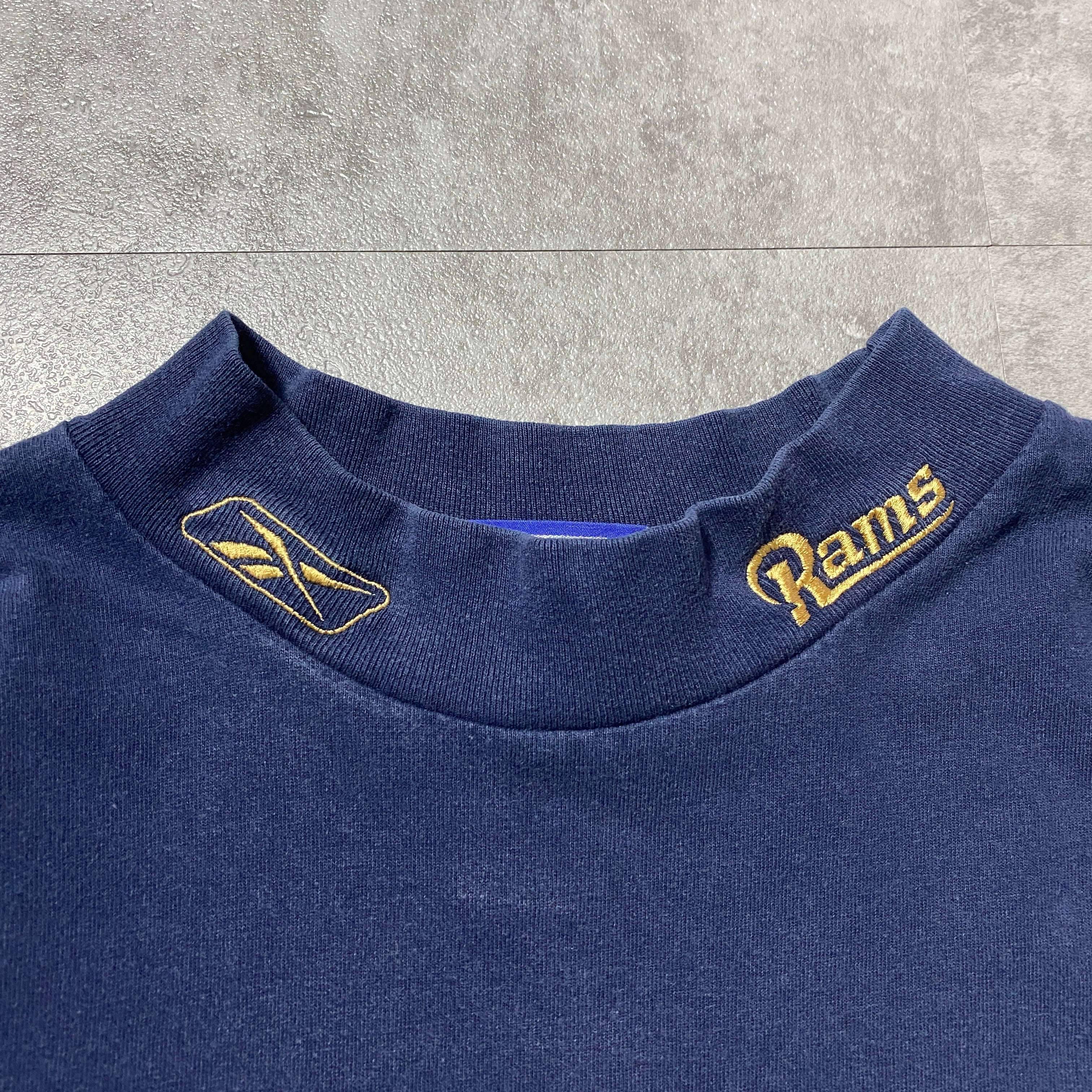 00's Reebok NFL RAMS セントルイス・ラムズ ハイネック 刺繍ネックロゴ ネイビー Tシャツ ロンT