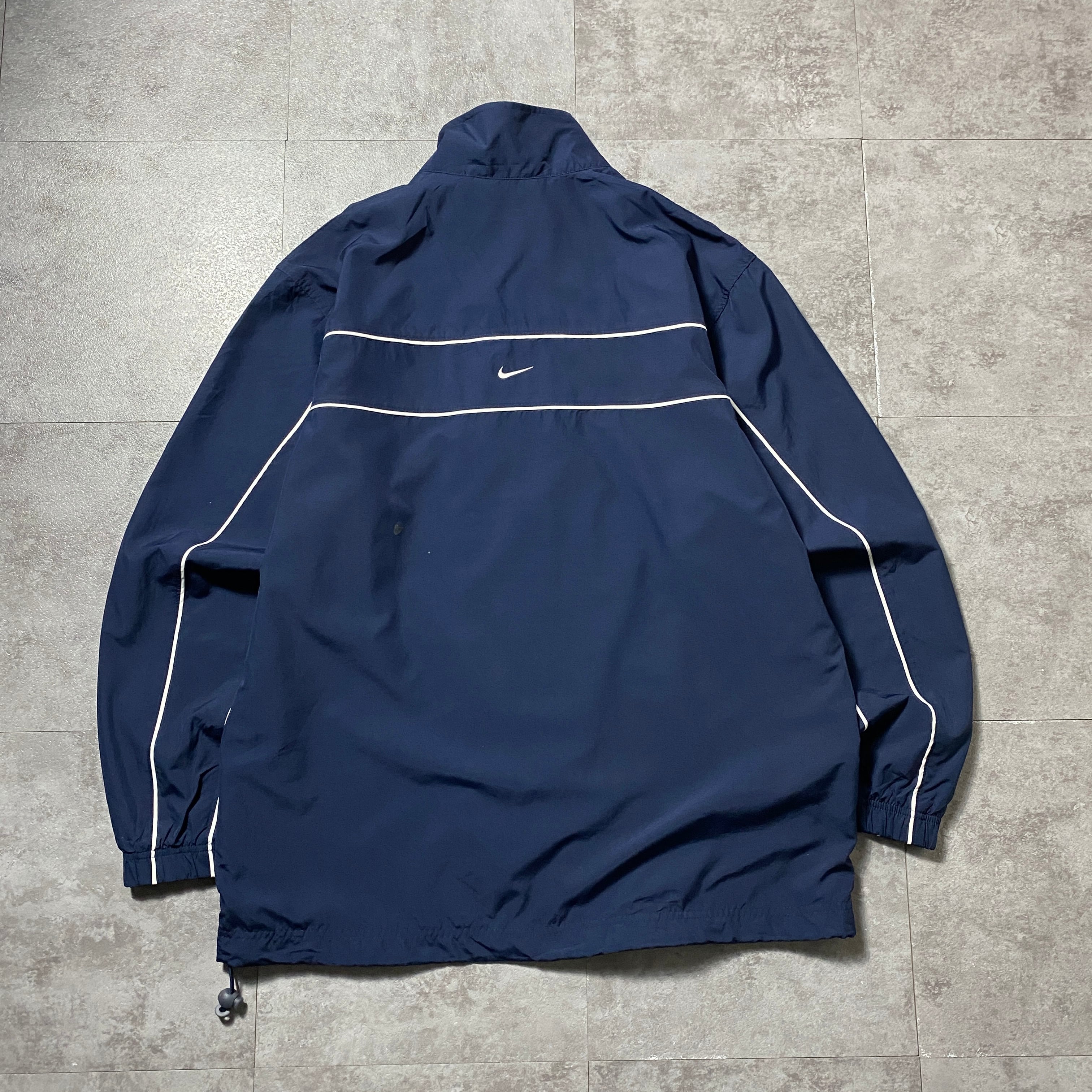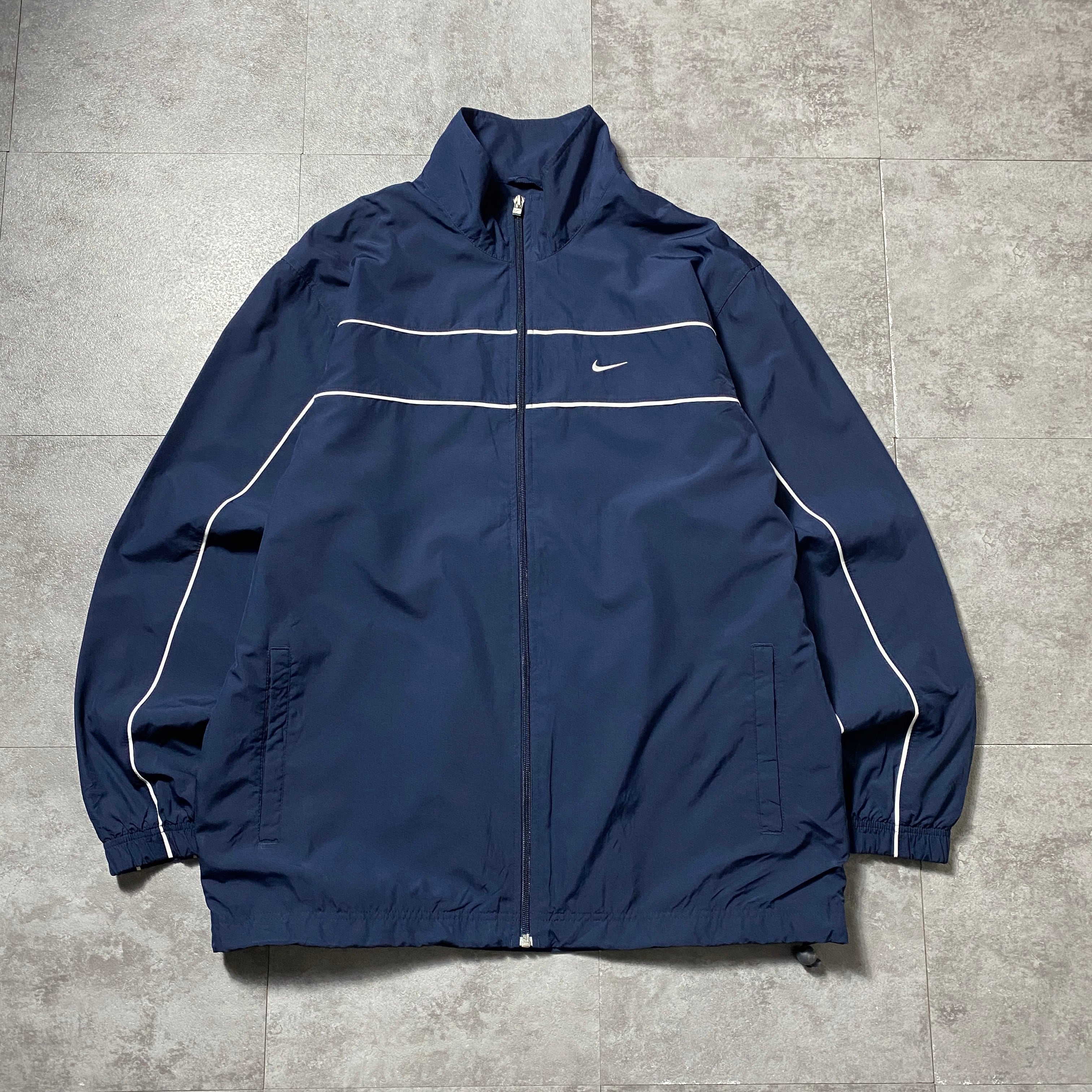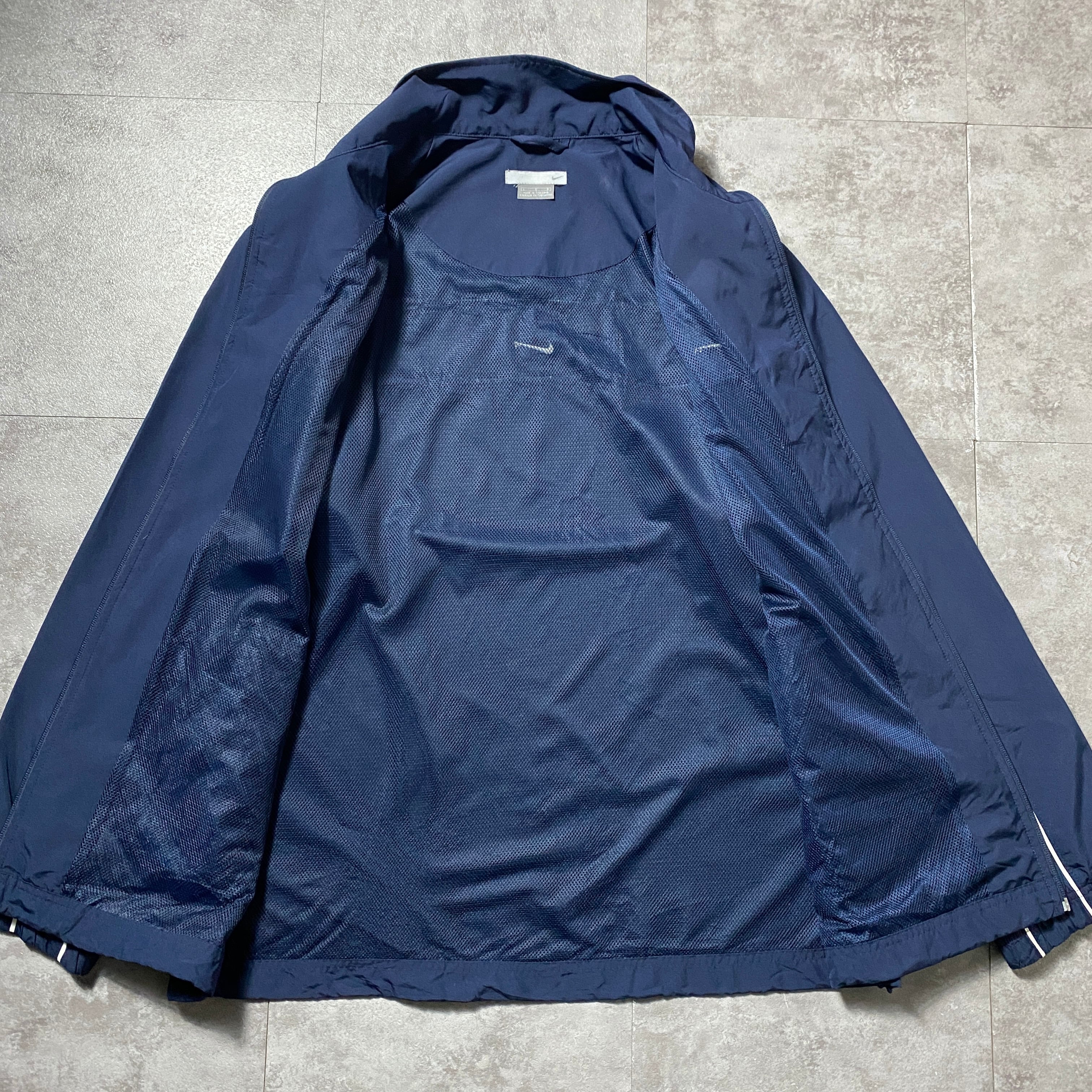 00's NIKE ナイキ スウォッシュ 刺繍ワンポイント バックロゴ ネイビー ナイロンジャケット